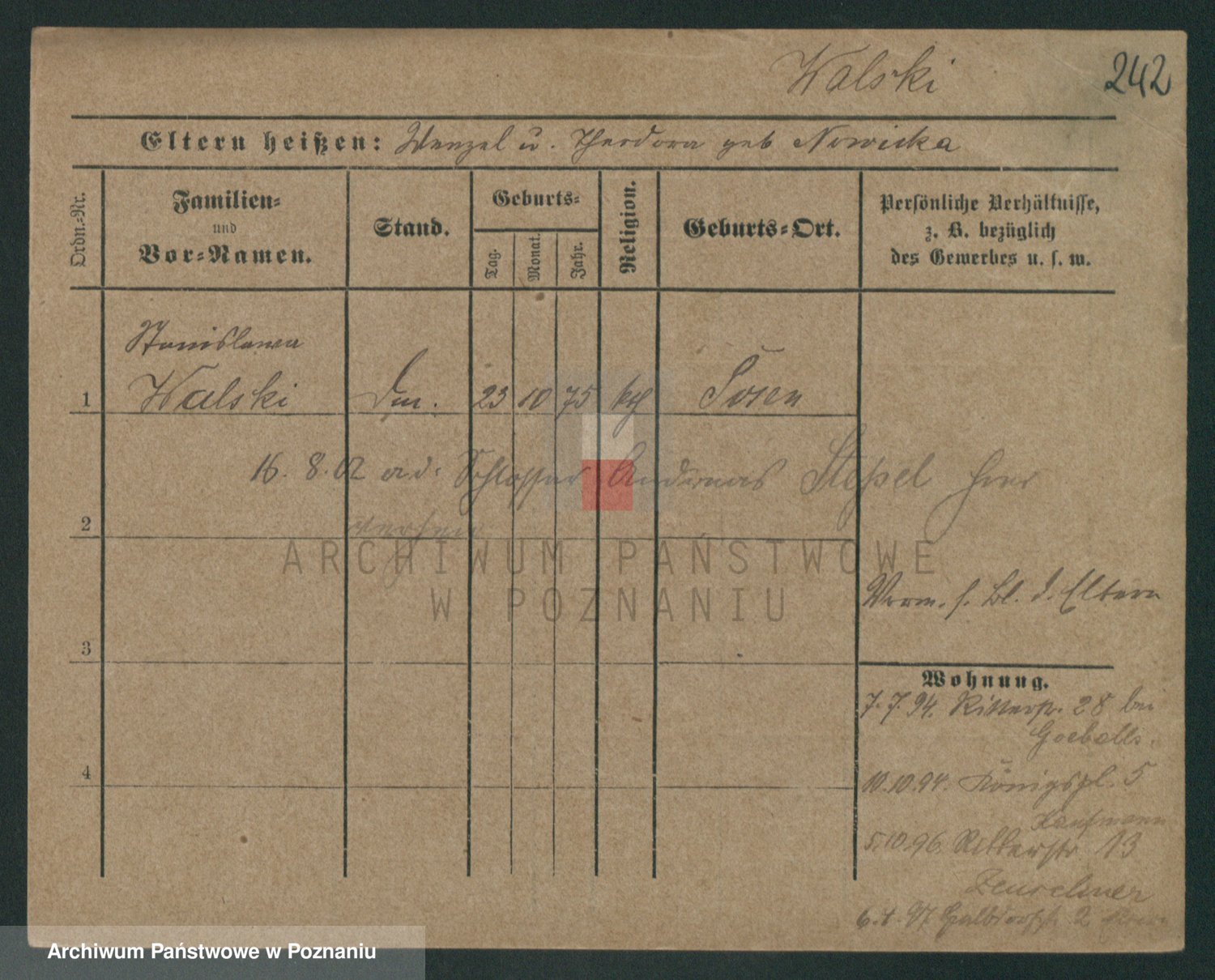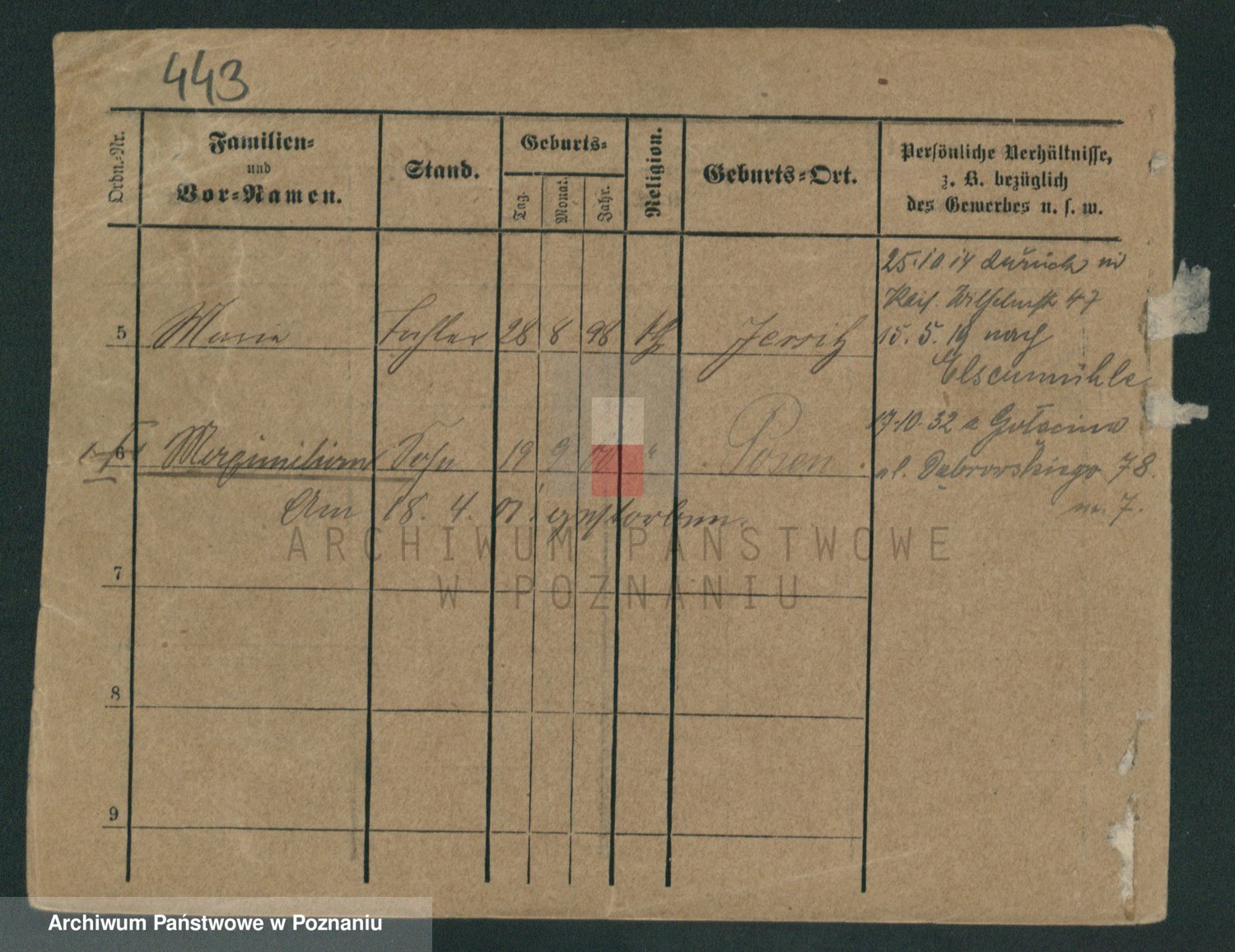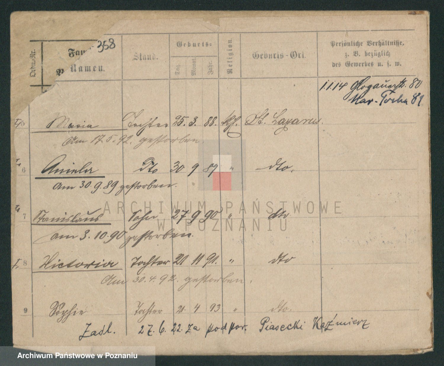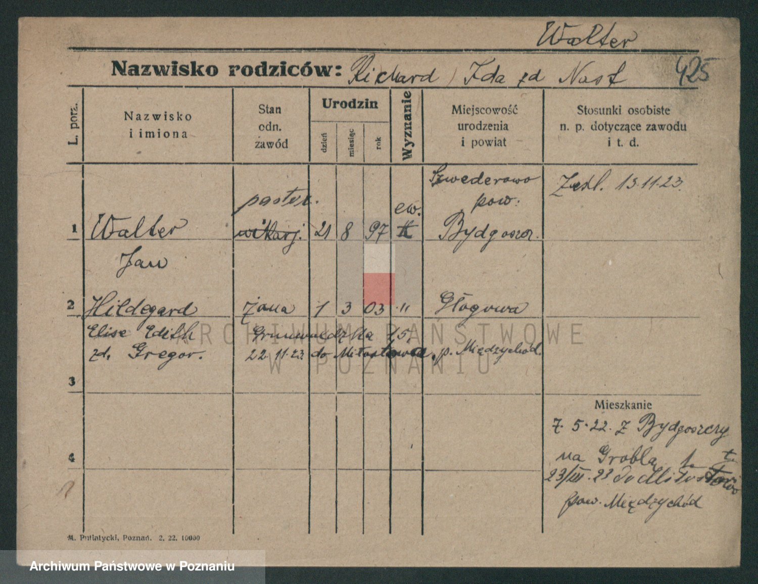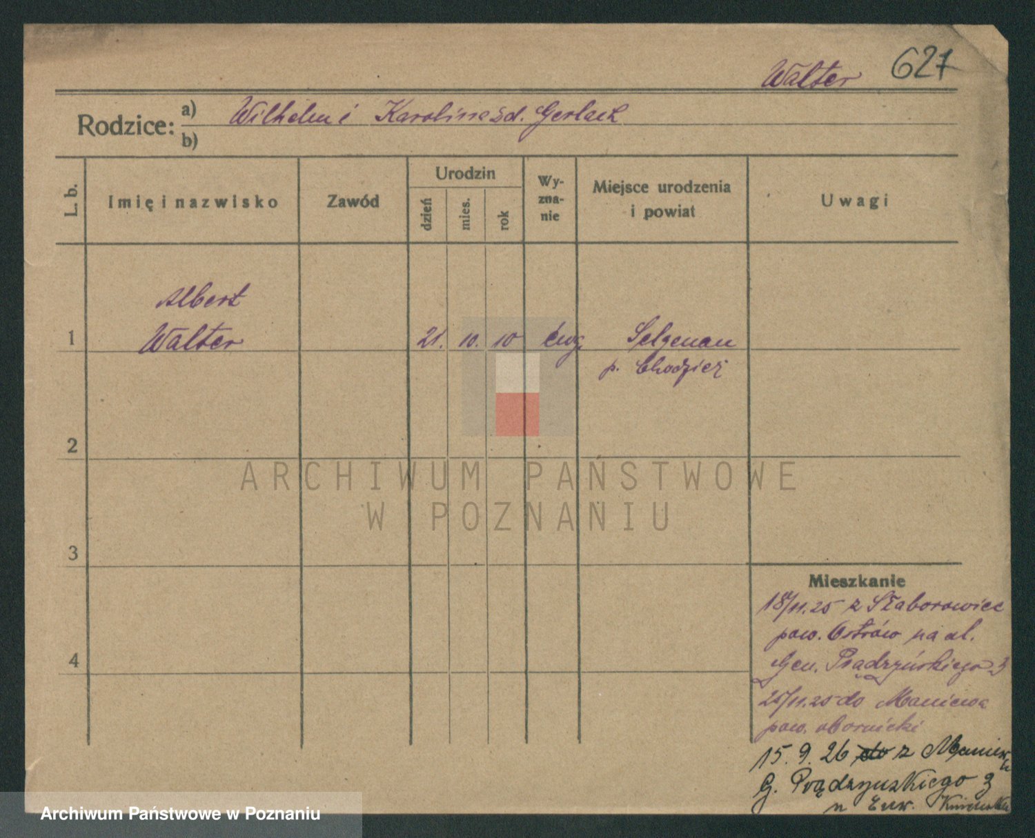 Podgląd karty osobowej dostępny jest po kliknięciu na nazwisko lub ikonkę karty. Można dokonywać powiększenia (ikony na górze) lub przechodzić między kolejnymi skanami (strzałki po bokach).