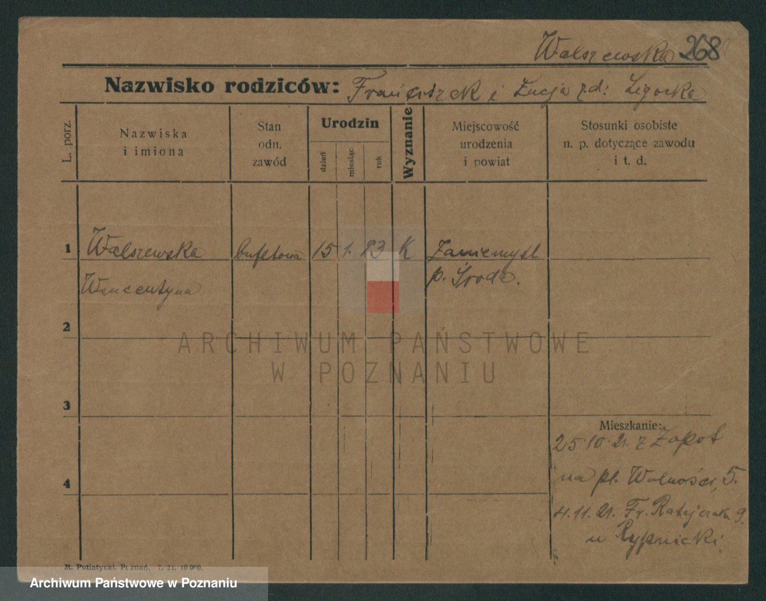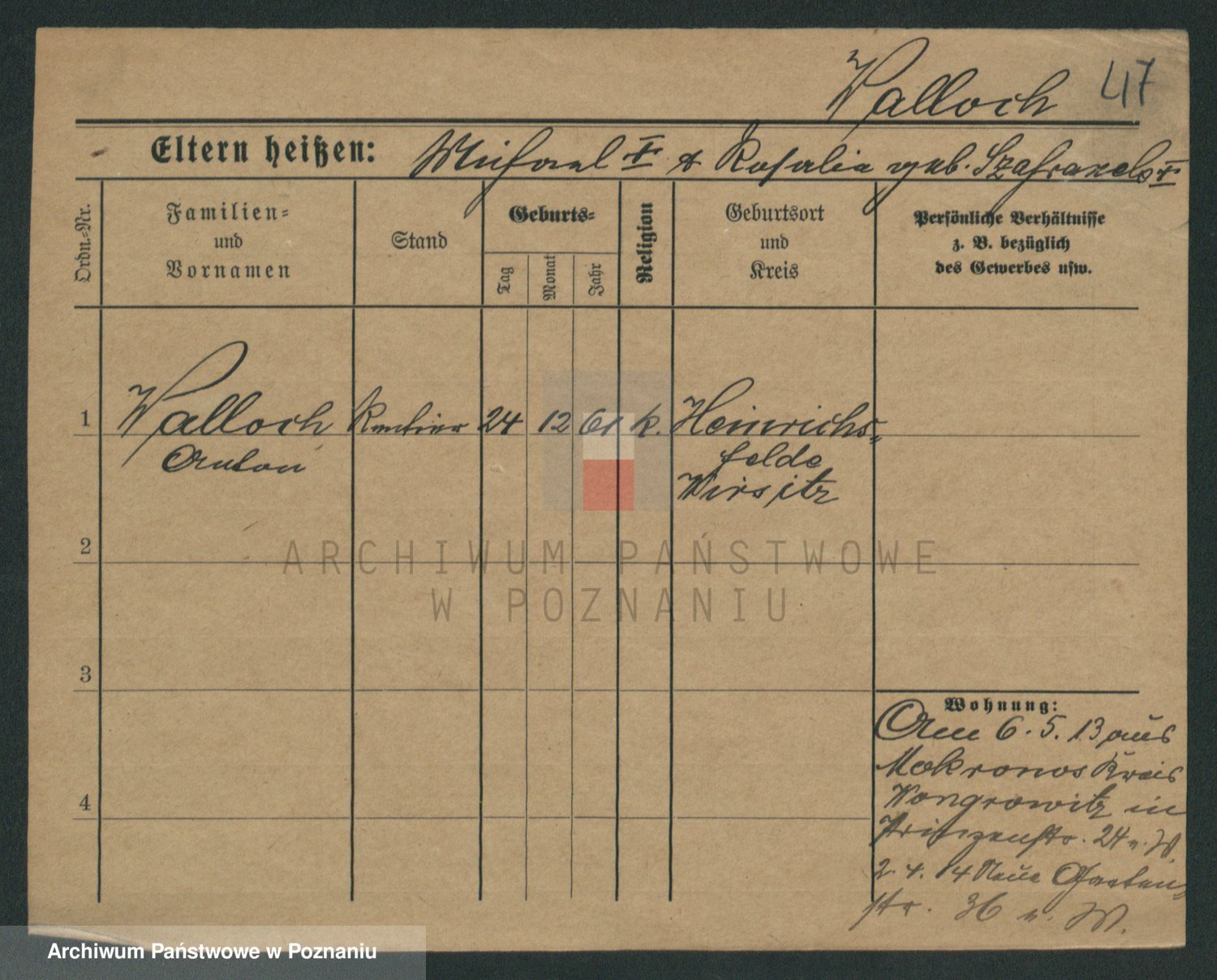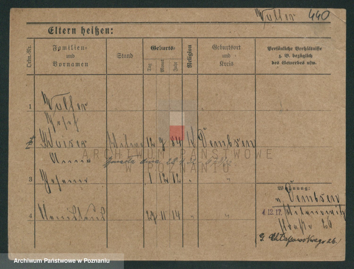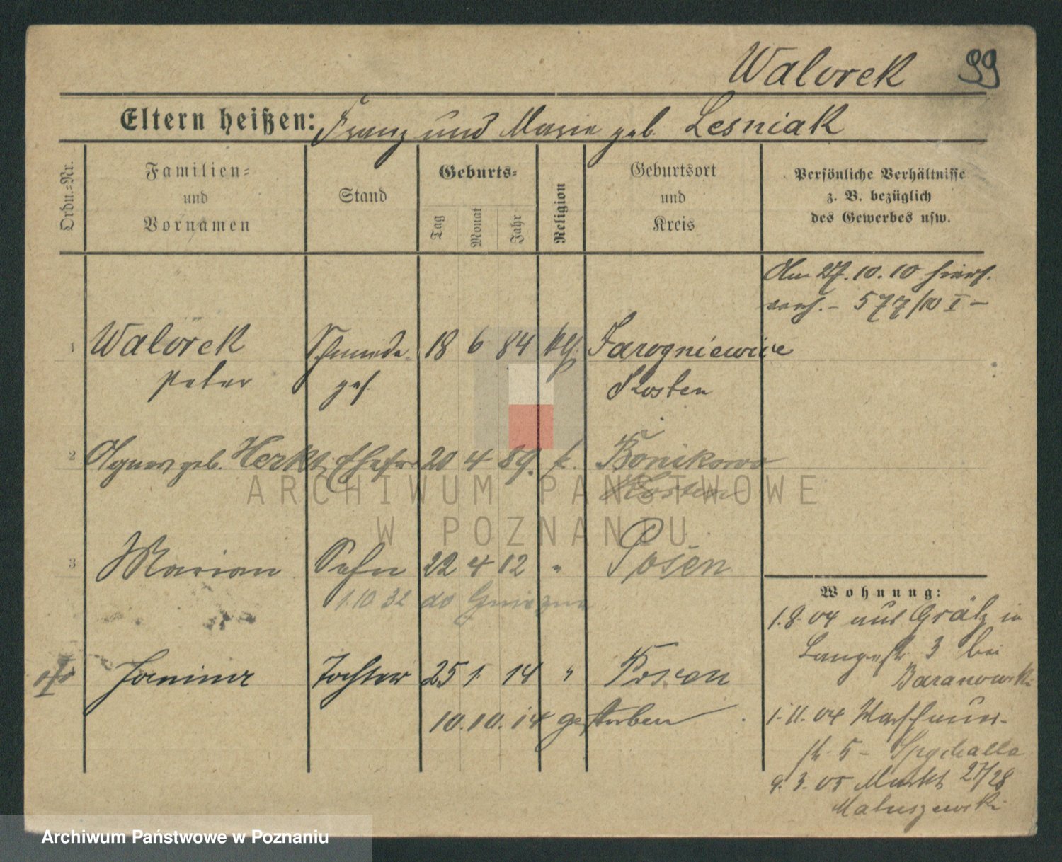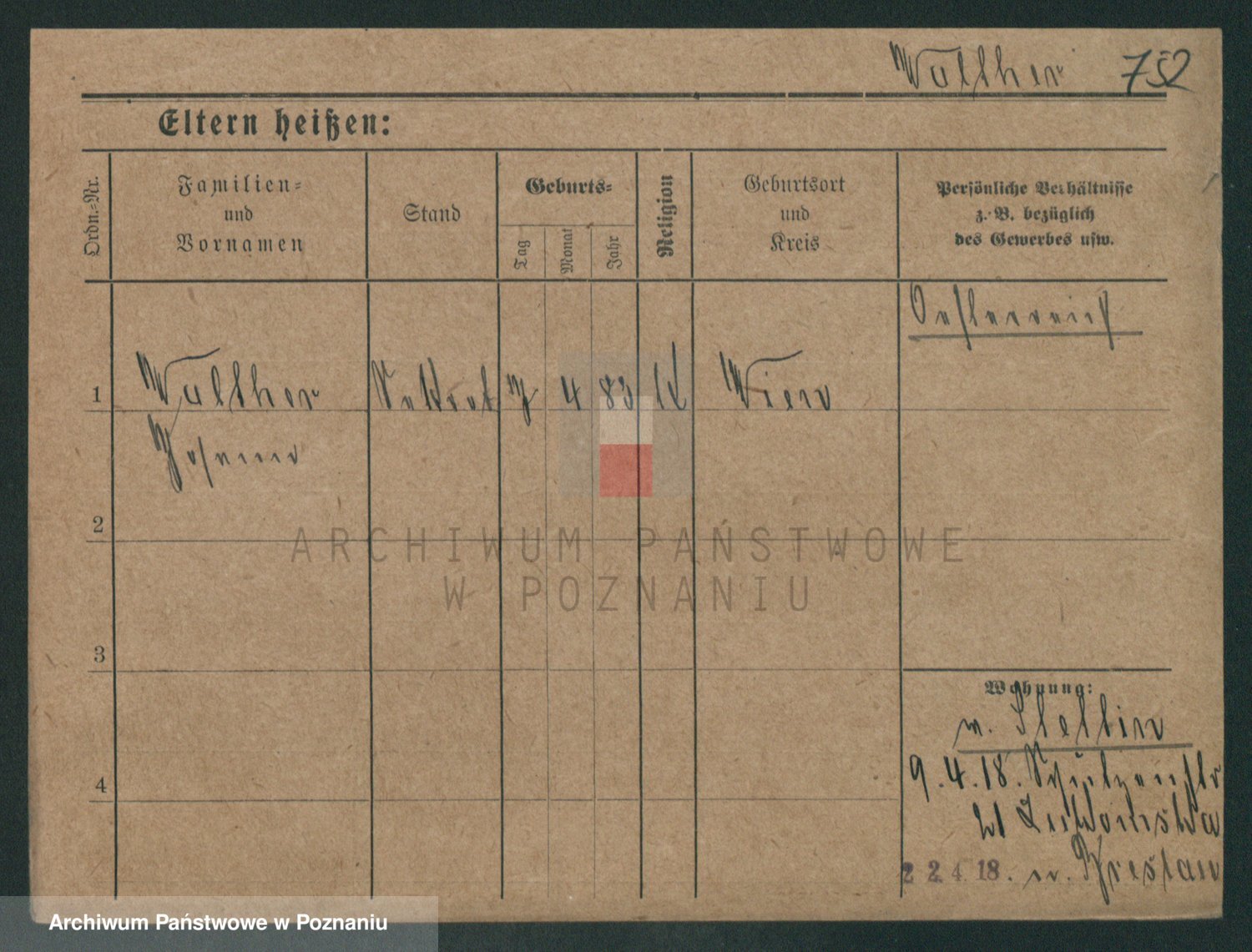 Podgląd karty osobowej dostępny jest po kliknięciu na nazwisko lub ikonkę karty. Można dokonywać powiększenia (ikony na górze) lub przechodzić między kolejnymi skanami (strzałki po bokach).