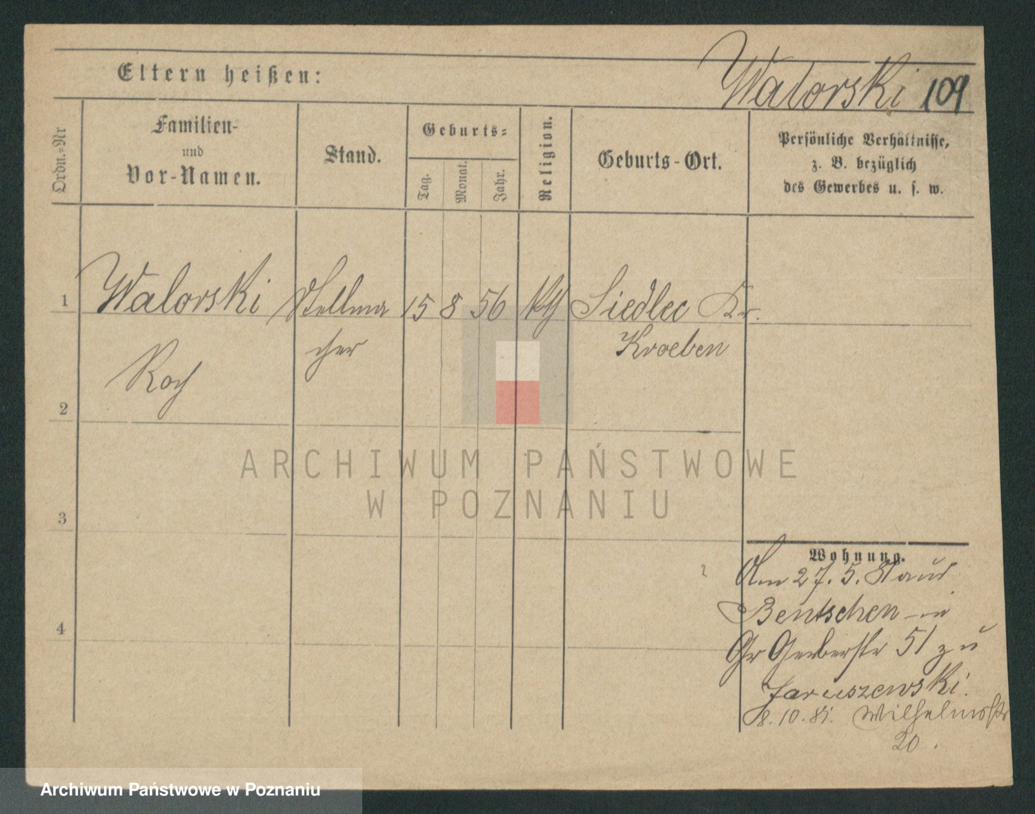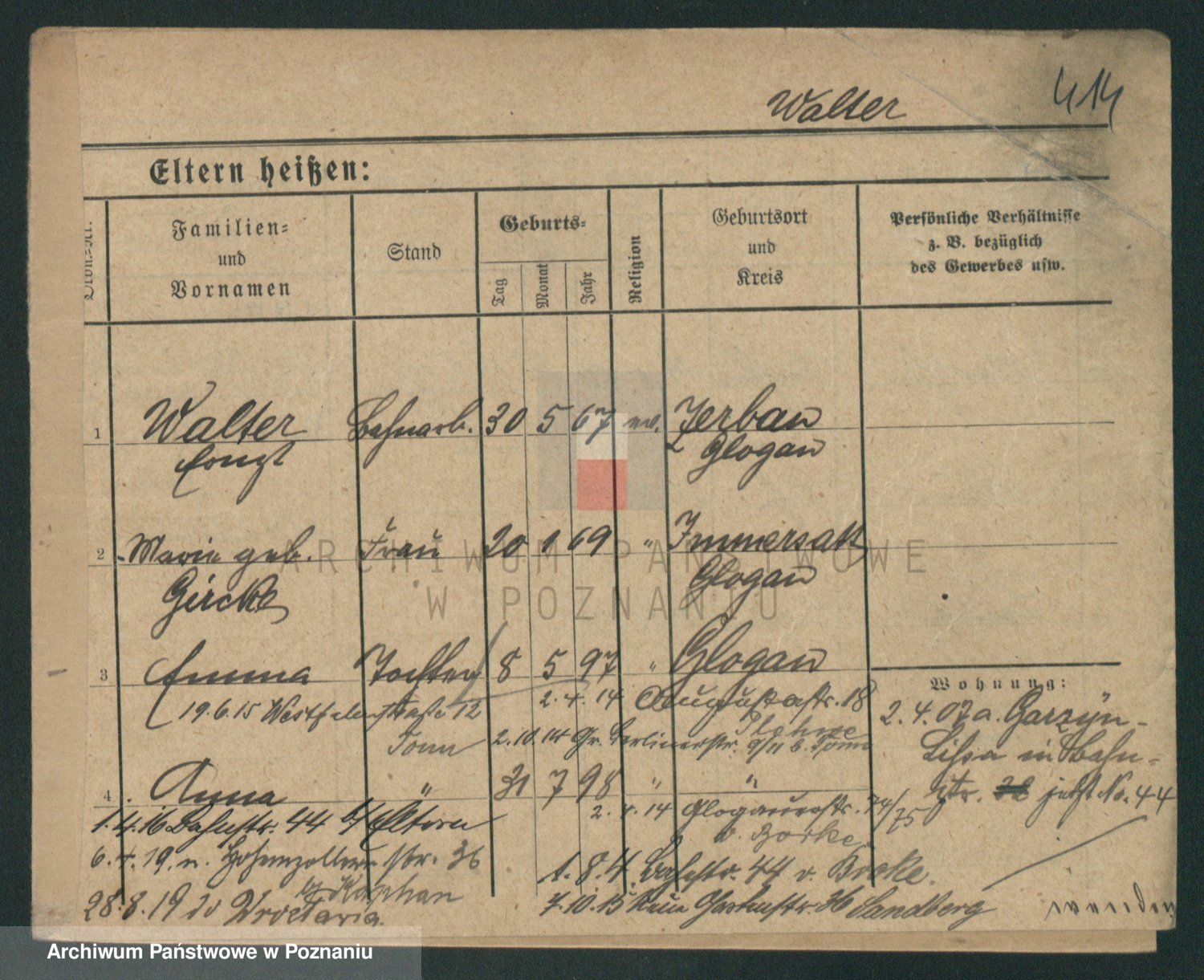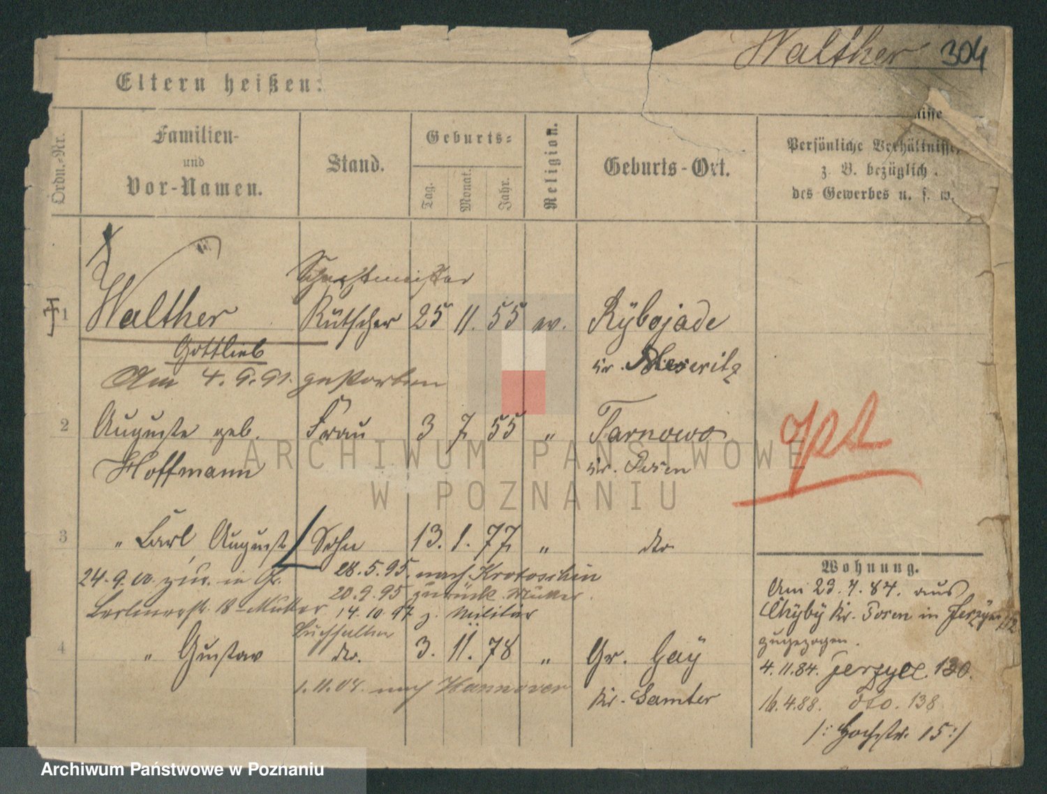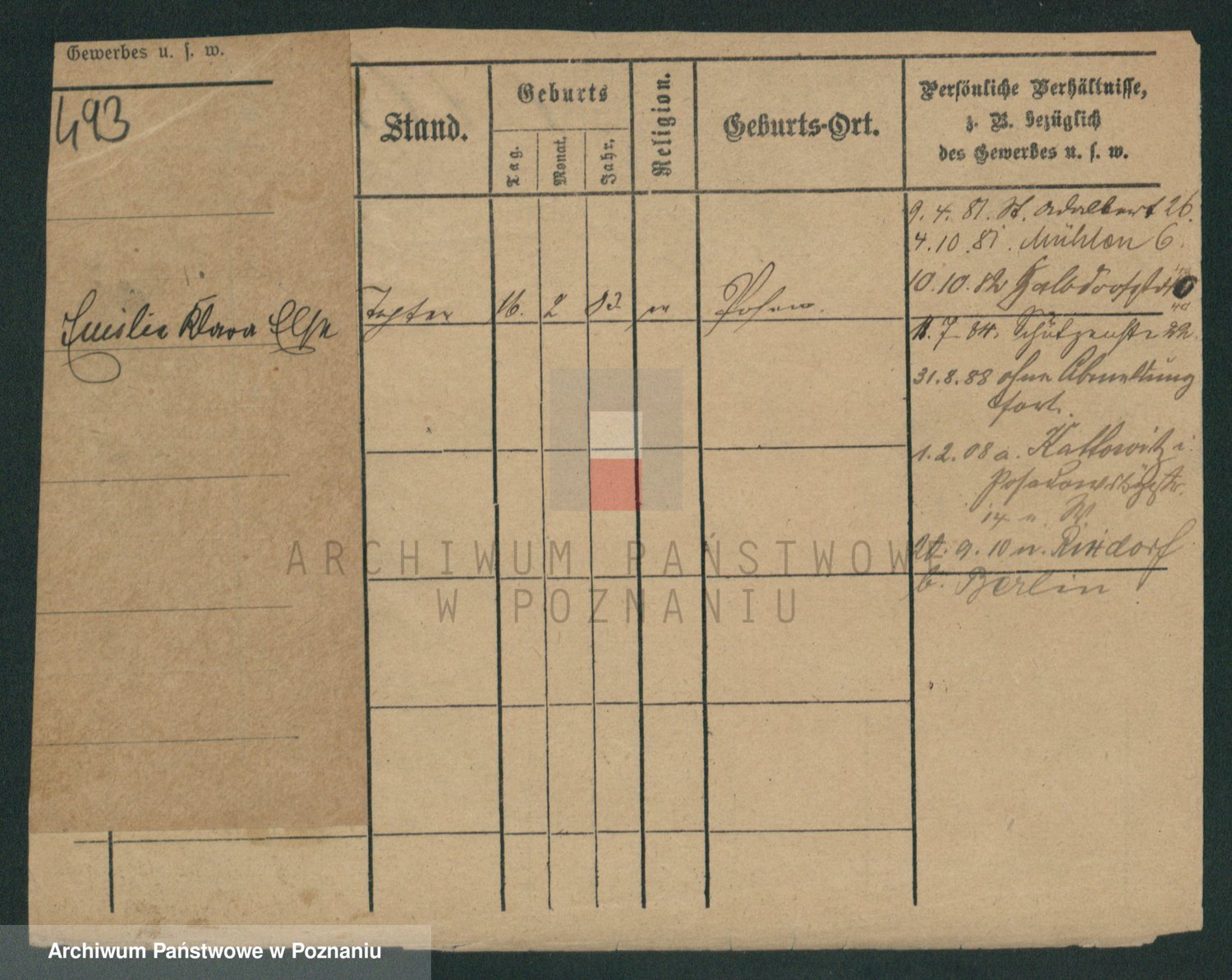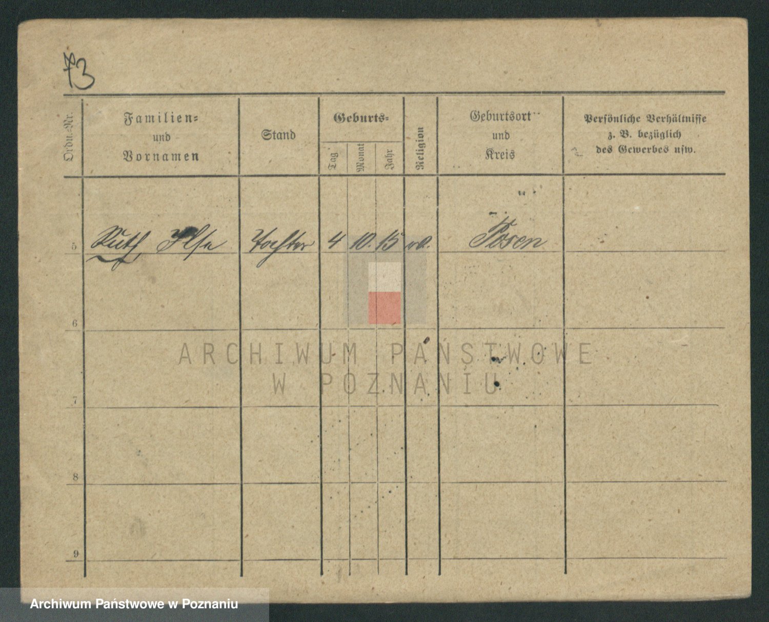 Podgląd karty osobowej dostępny jest po kliknięciu na nazwisko lub ikonkę karty. Można dokonywać powiększenia (ikony na górze) lub przechodzić między kolejnymi skanami (strzałki po bokach).