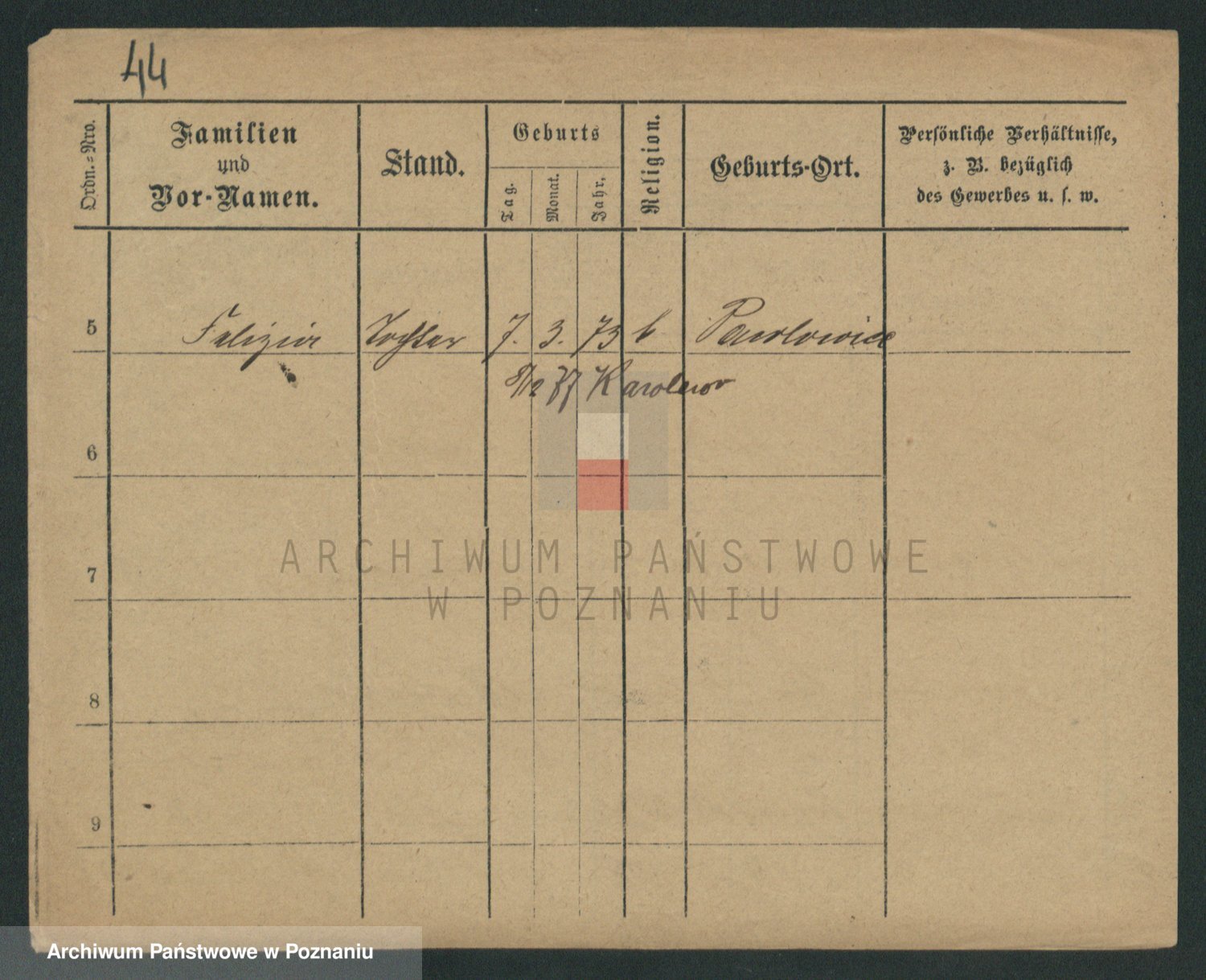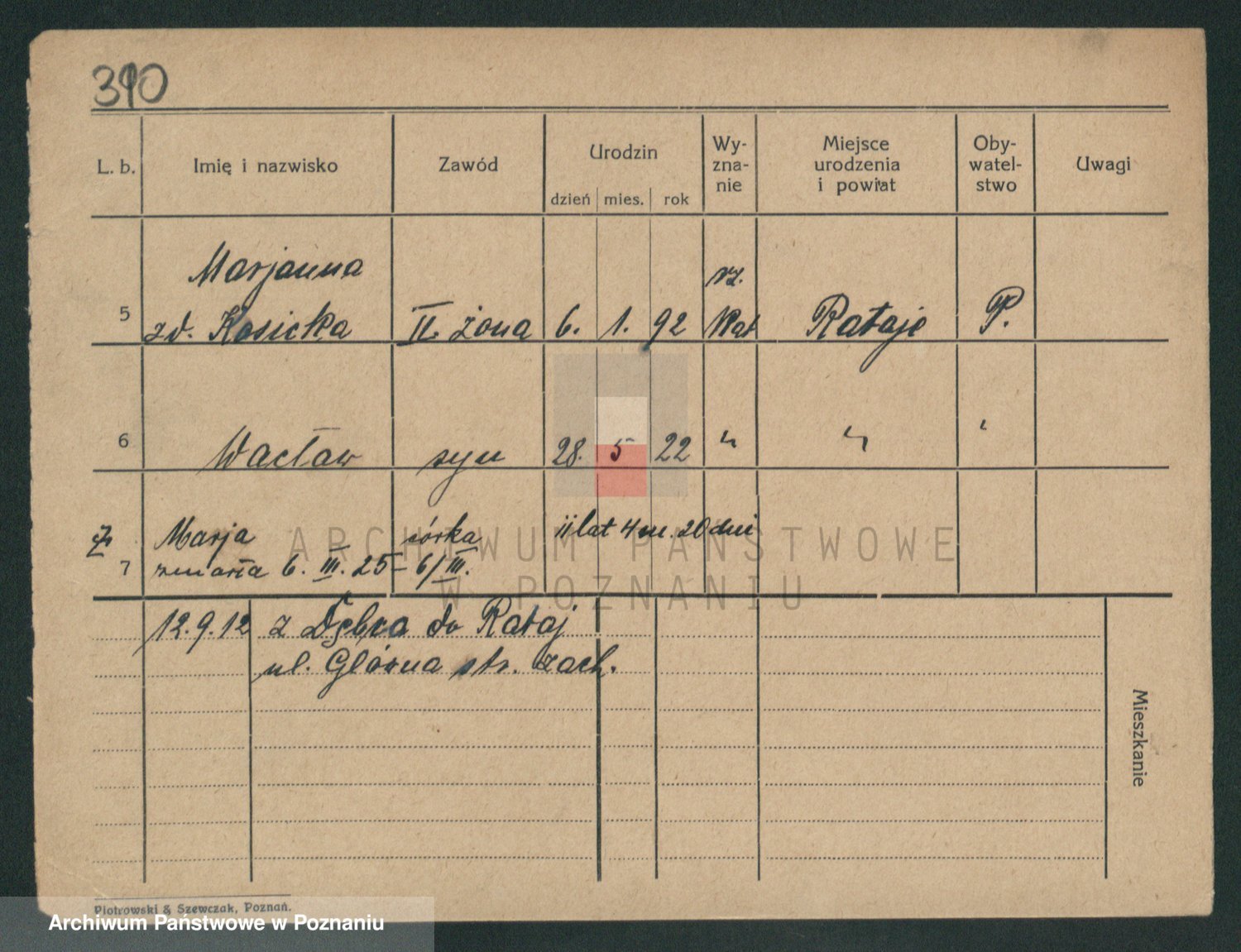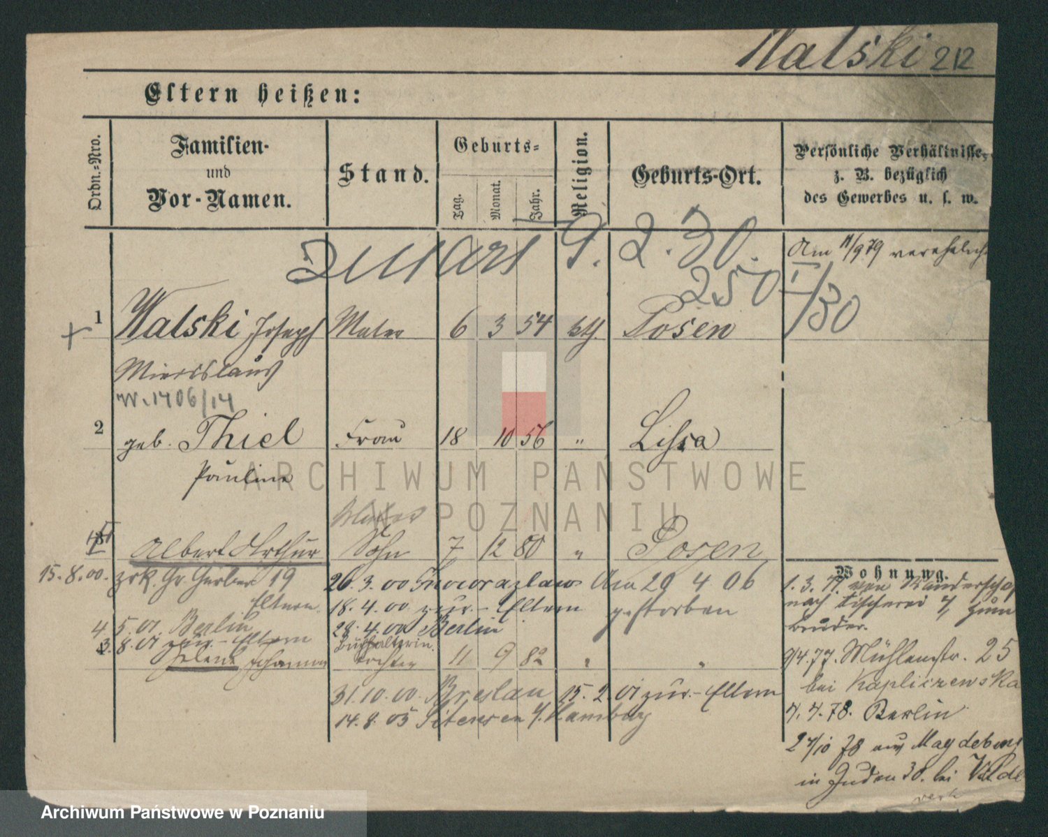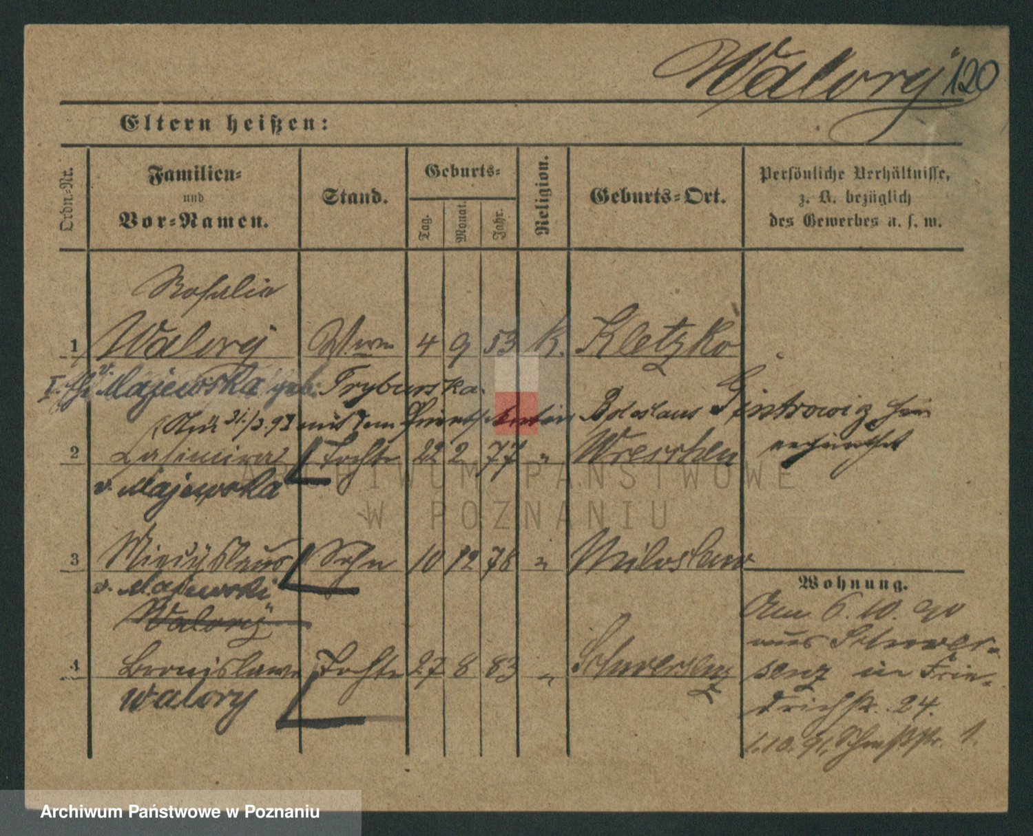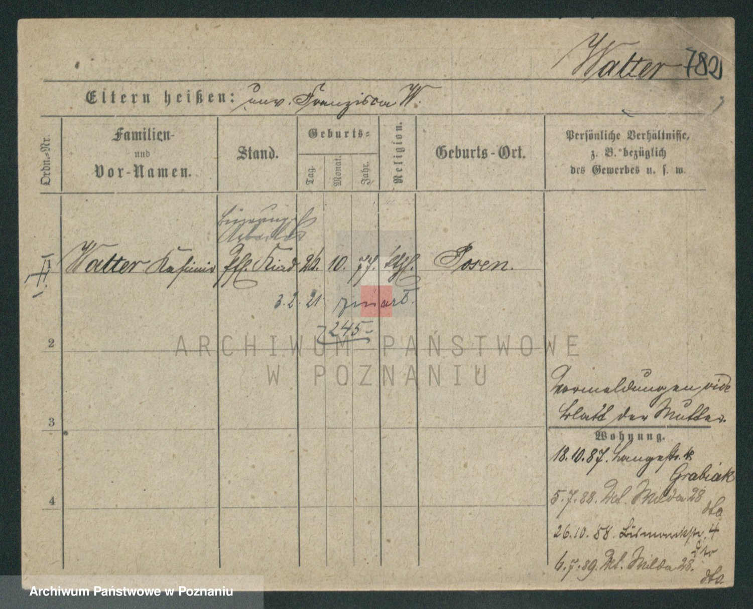 Podgląd karty osobowej dostępny jest po kliknięciu na nazwisko lub ikonkę karty. Można dokonywać powiększenia (ikony na górze) lub przechodzić między kolejnymi skanami (strzałki po bokach).