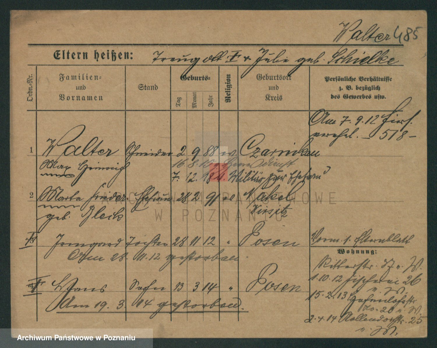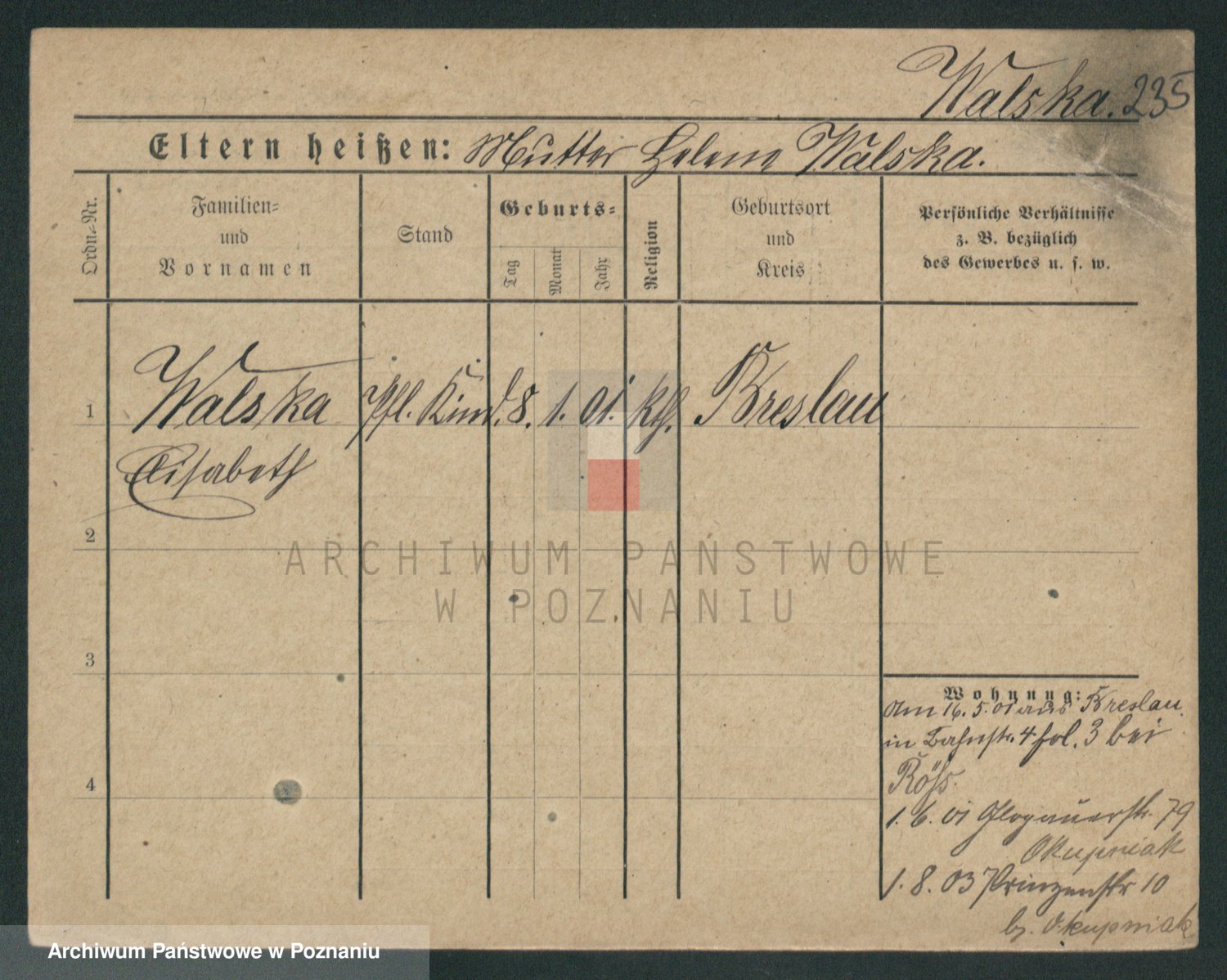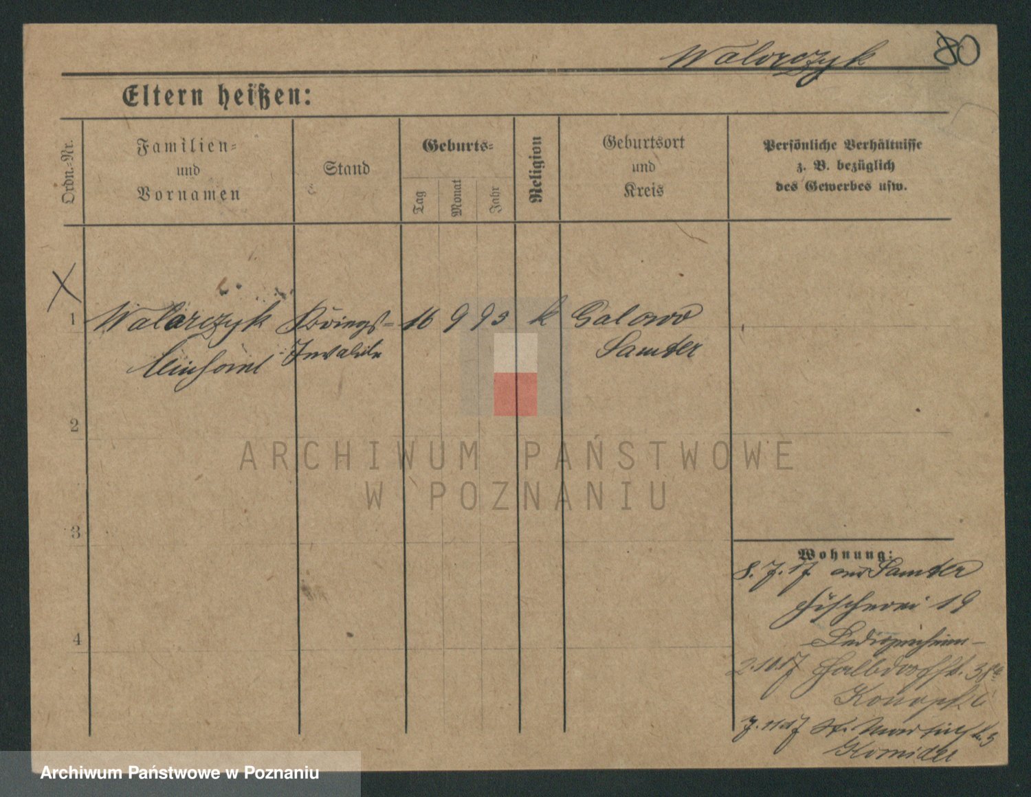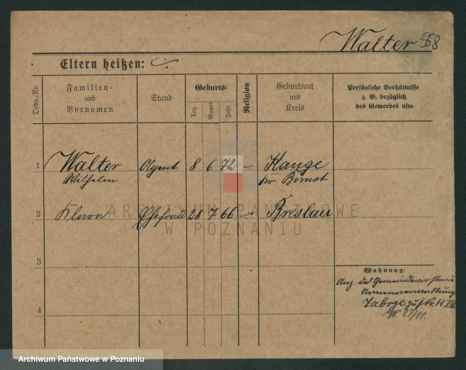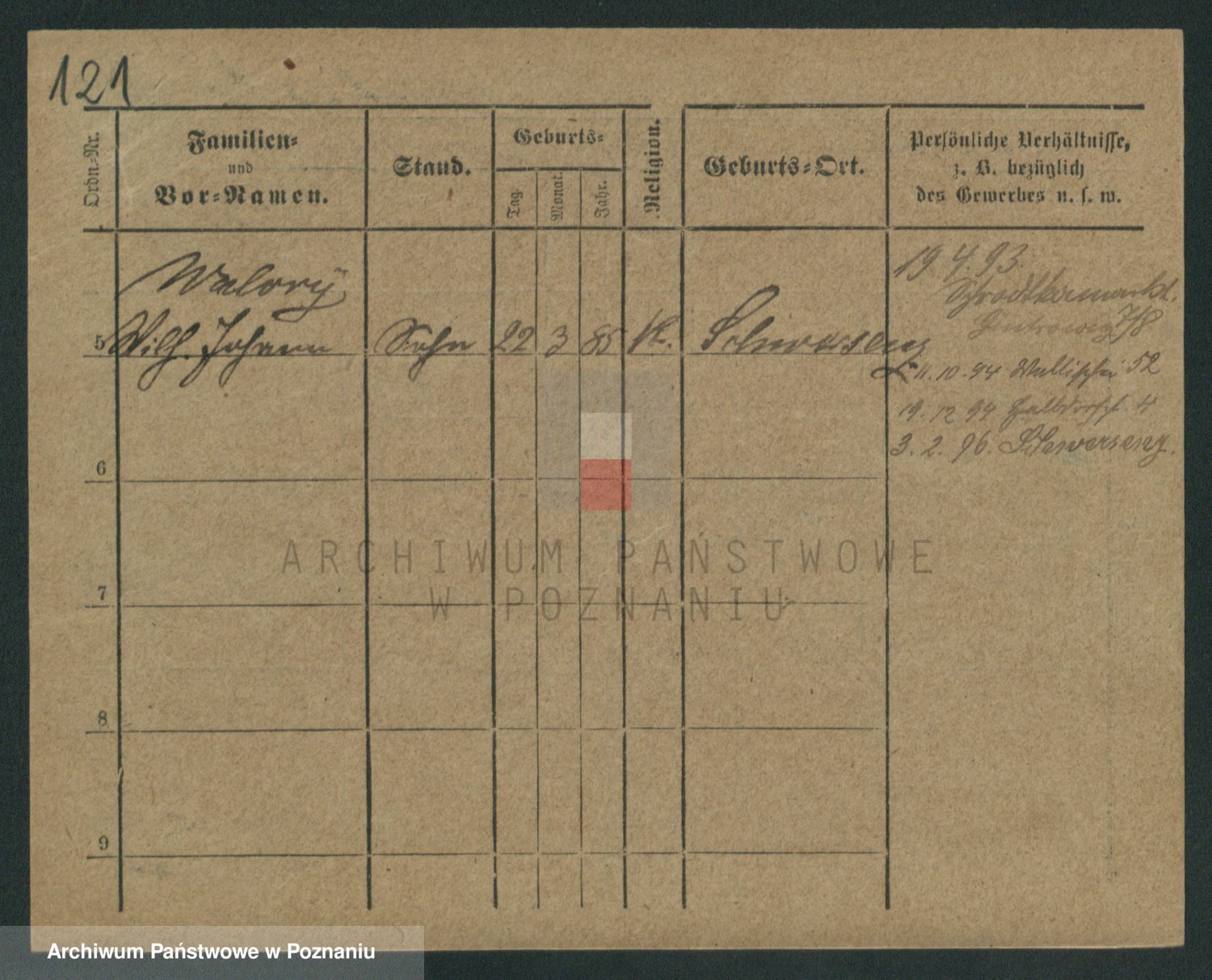 Podgląd karty osobowej dostępny jest po kliknięciu na nazwisko lub ikonkę karty. Można dokonywać powiększenia (ikony na górze) lub przechodzić między kolejnymi skanami (strzałki po bokach).