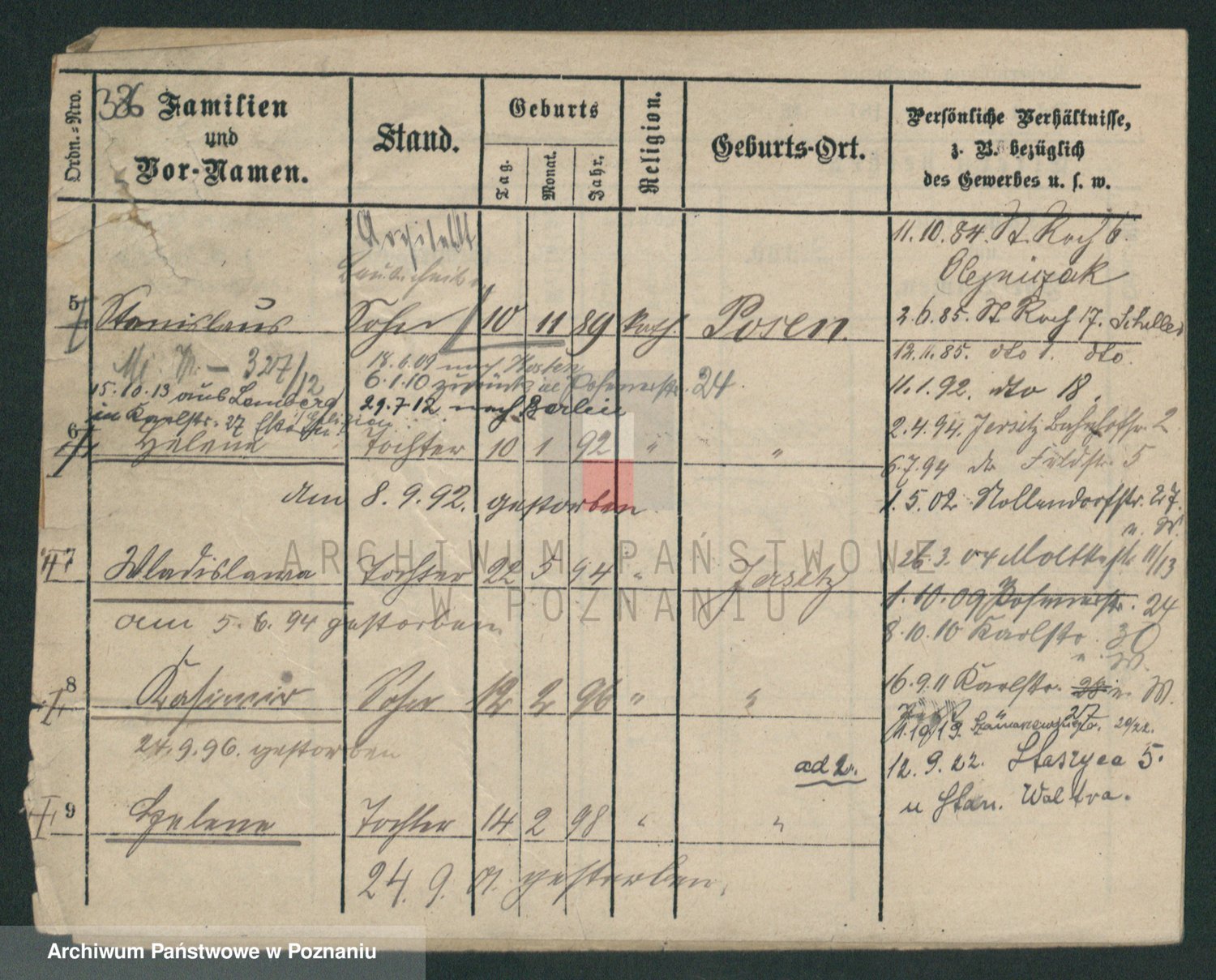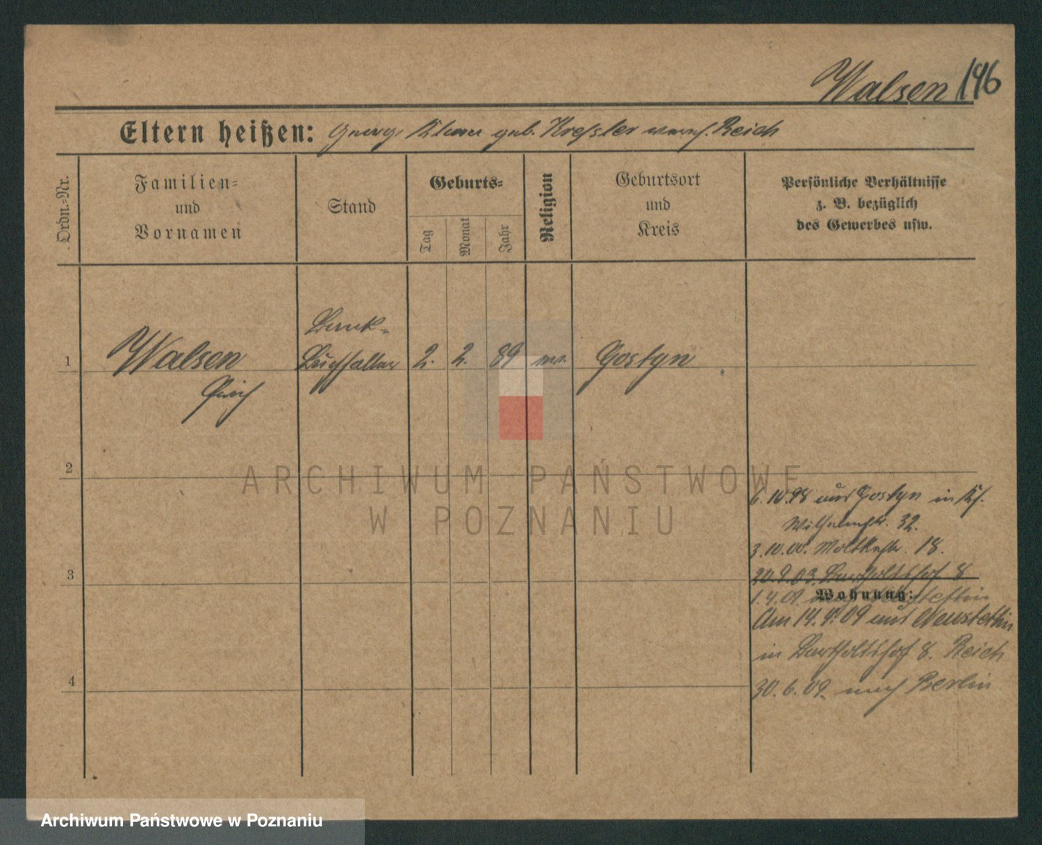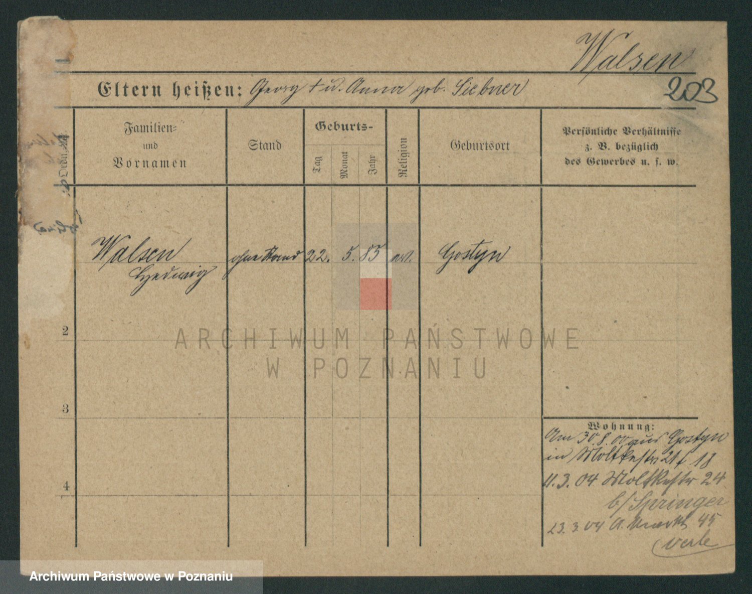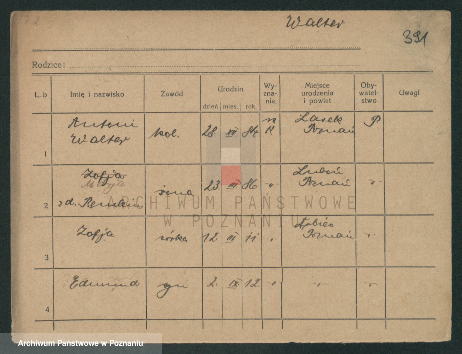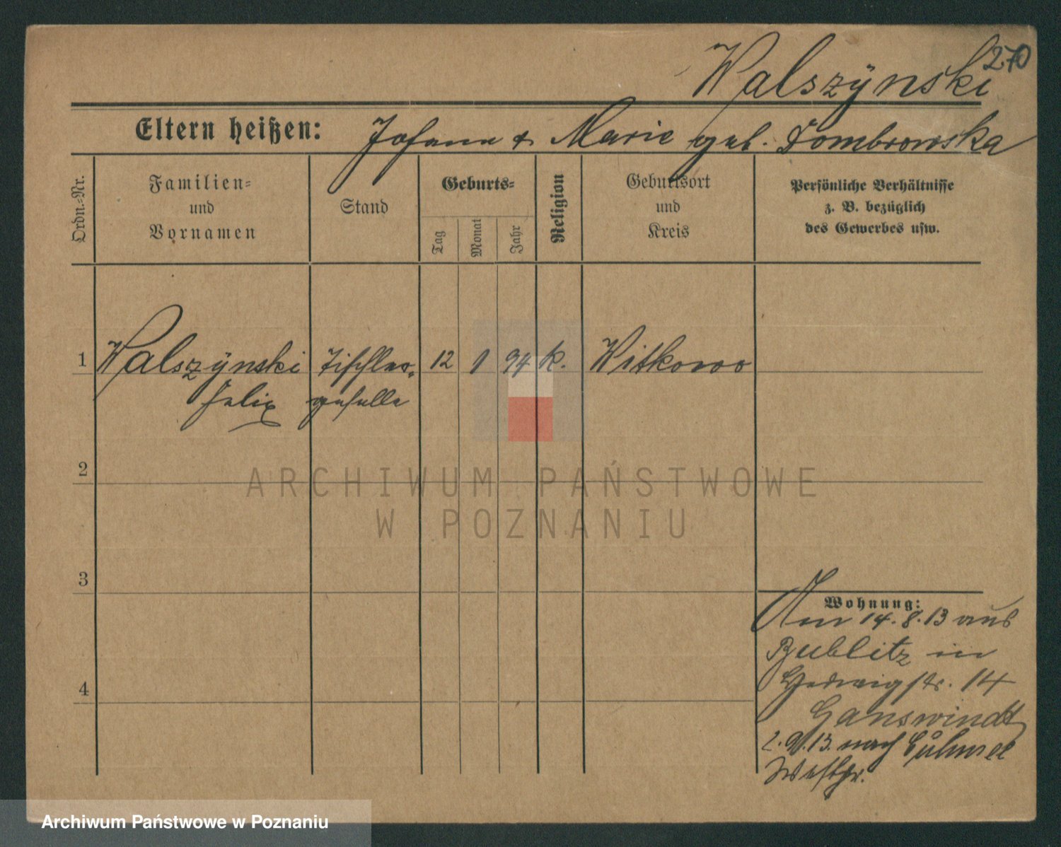 Podgląd karty osobowej dostępny jest po kliknięciu na nazwisko lub ikonkę karty. Można dokonywać powiększenia (ikony na górze) lub przechodzić między kolejnymi skanami (strzałki po bokach).