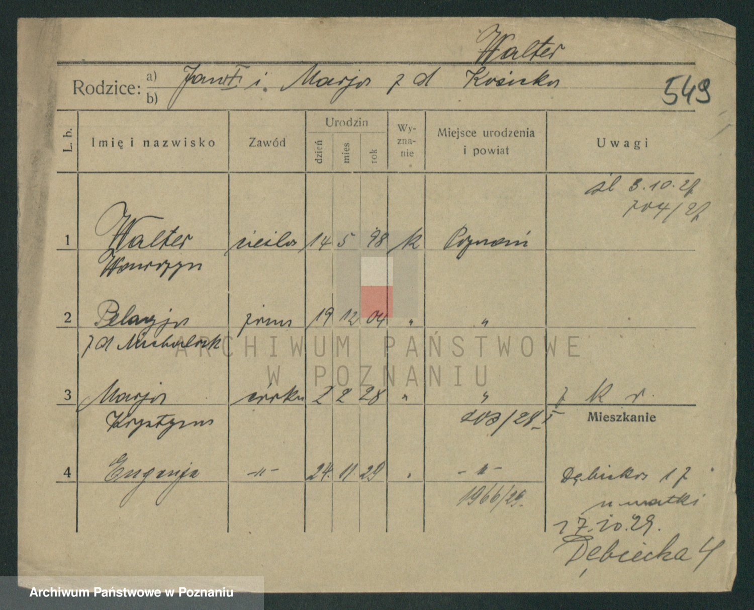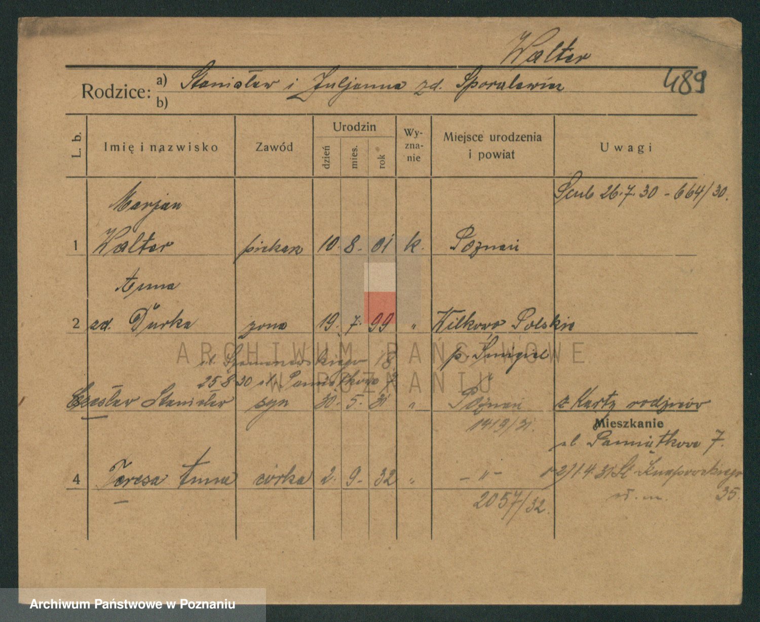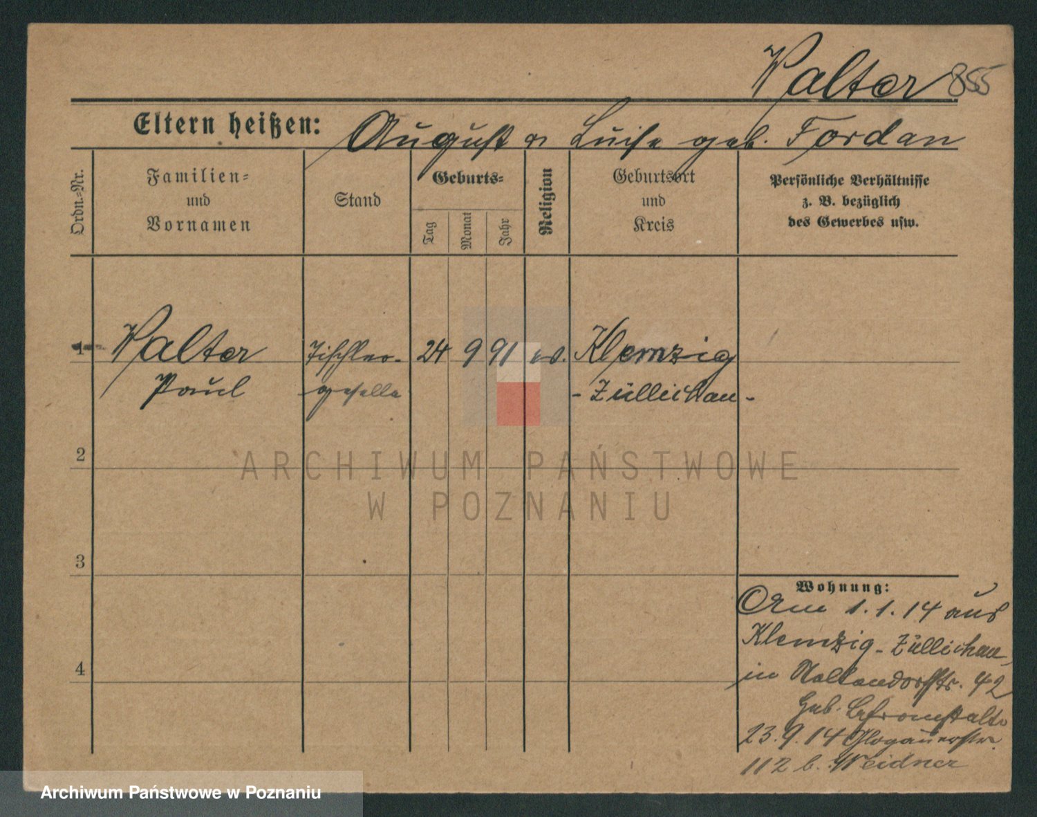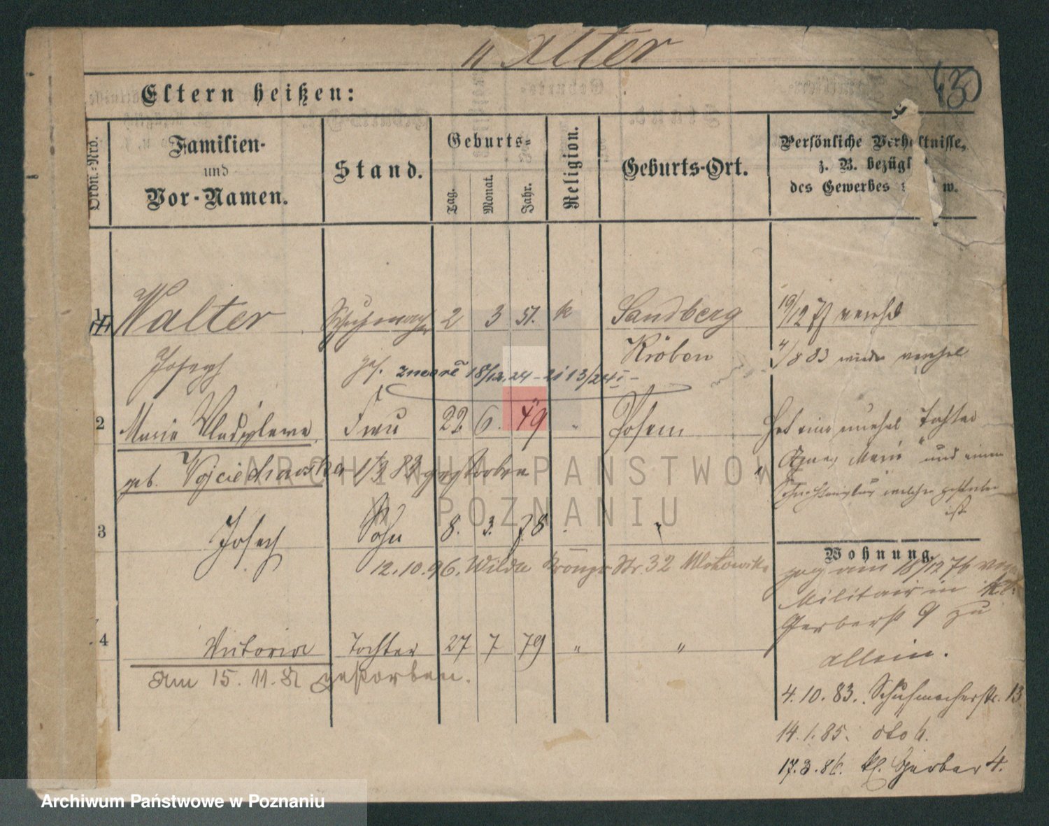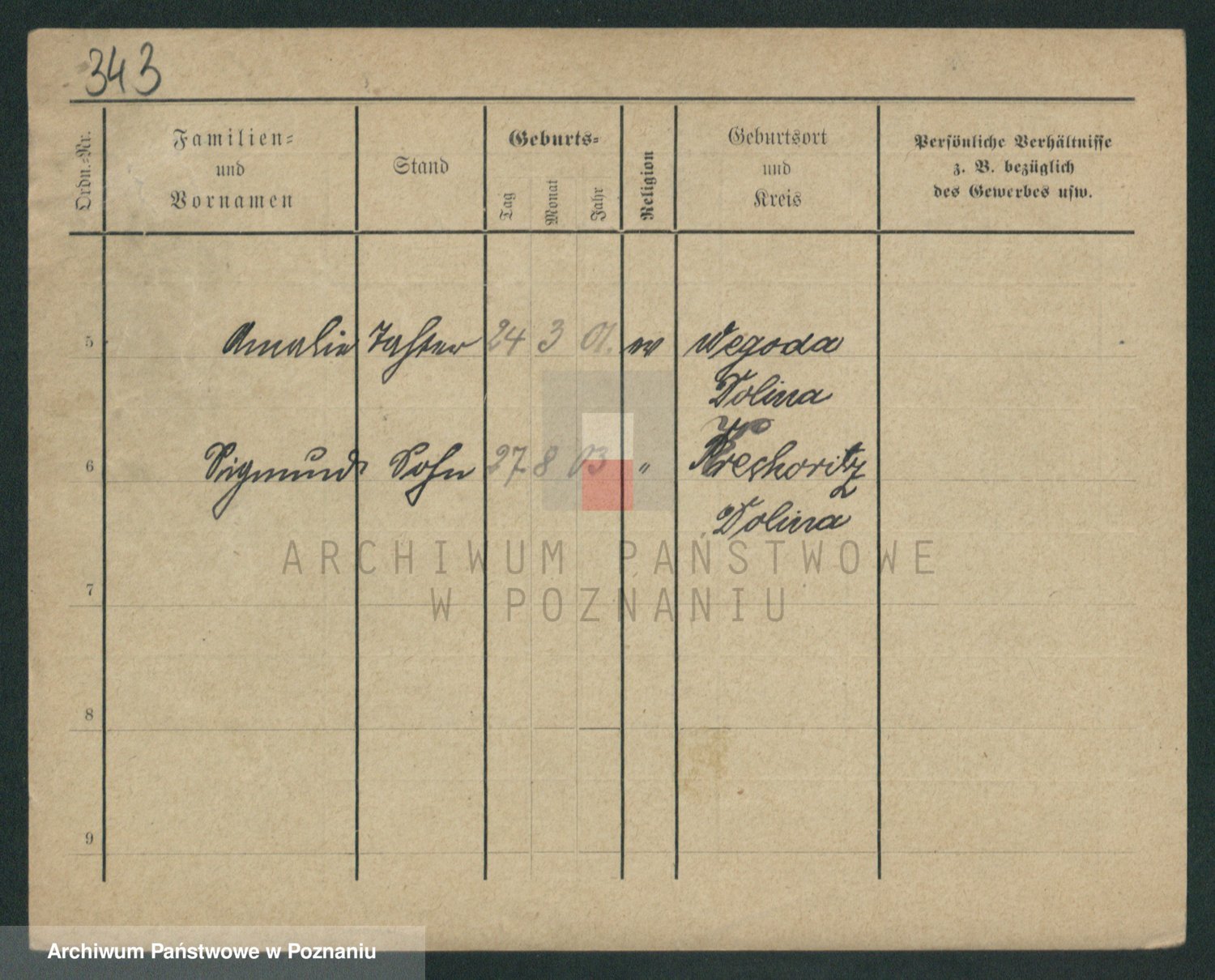Podgląd karty osobowej dostępny jest po kliknięciu na nazwisko lub ikonkę karty. Można dokonywać powiększenia (ikony na górze) lub przechodzić między kolejnymi skanami (strzałki po bokach).