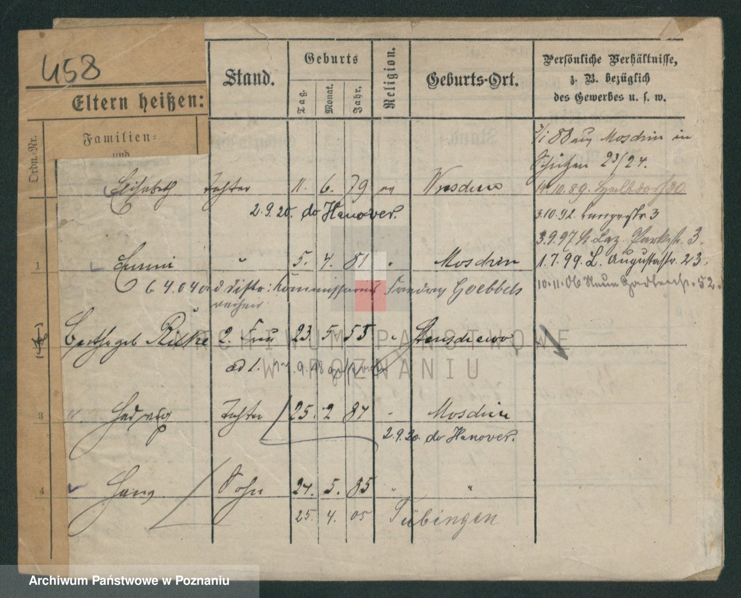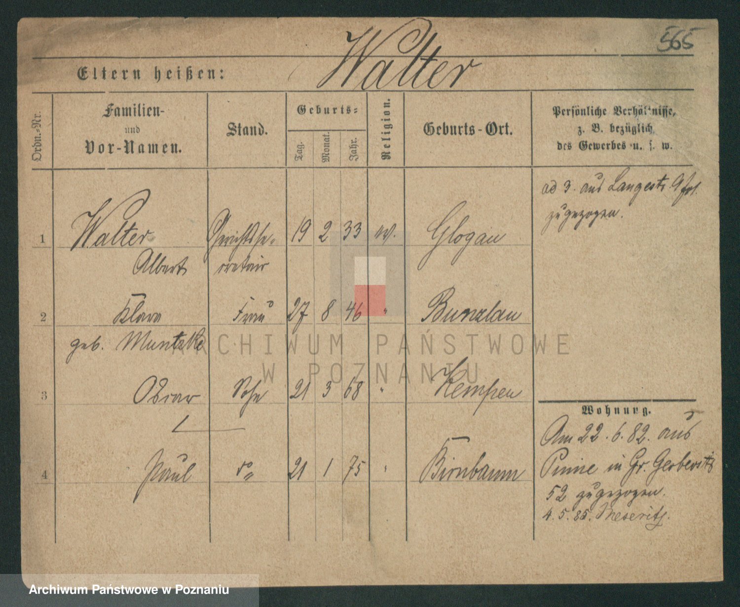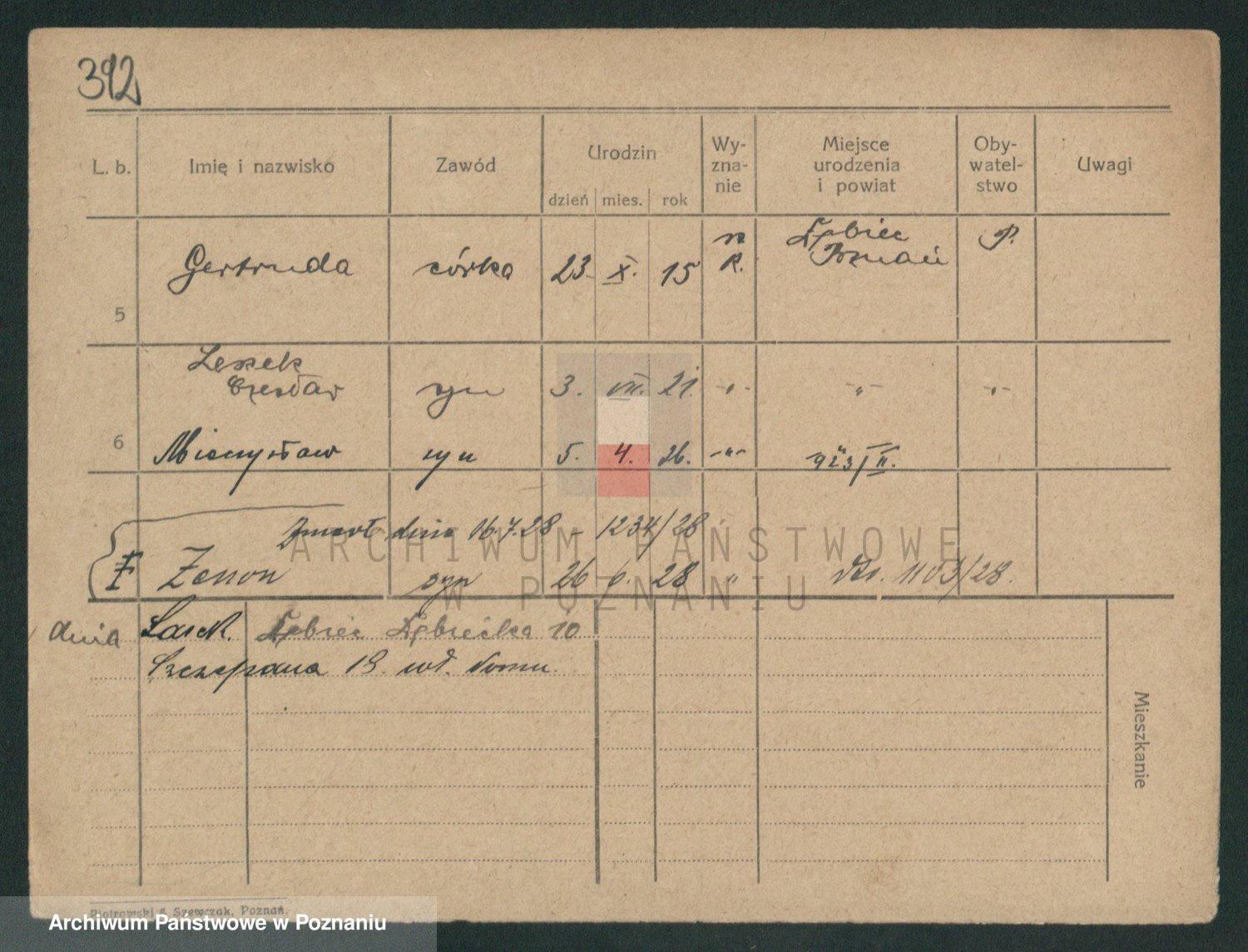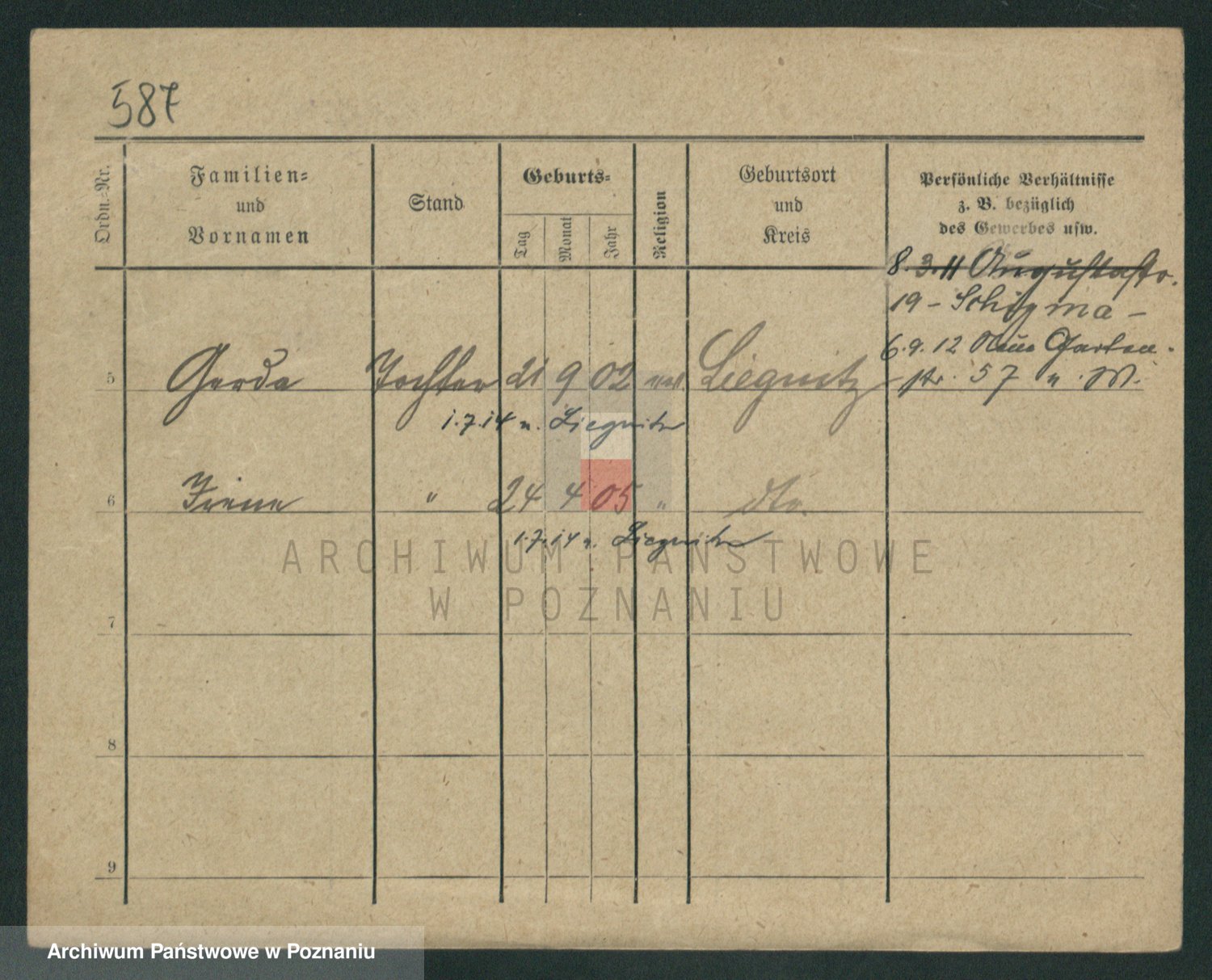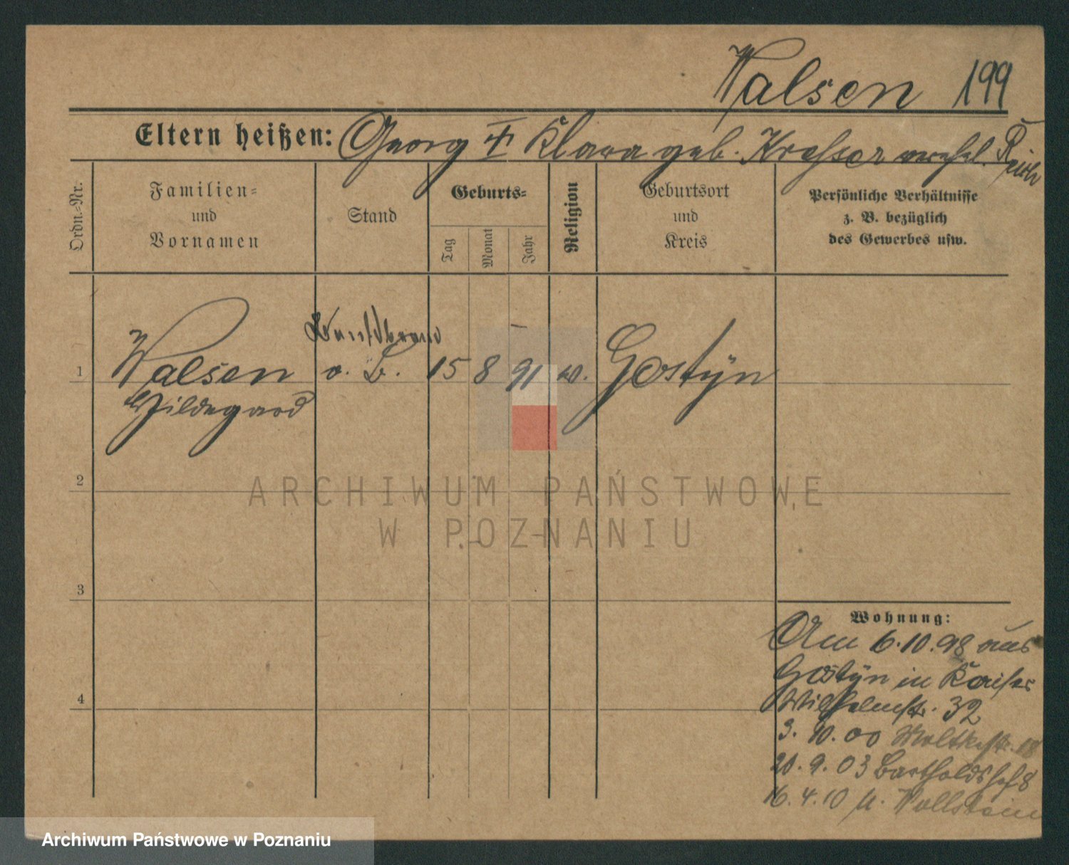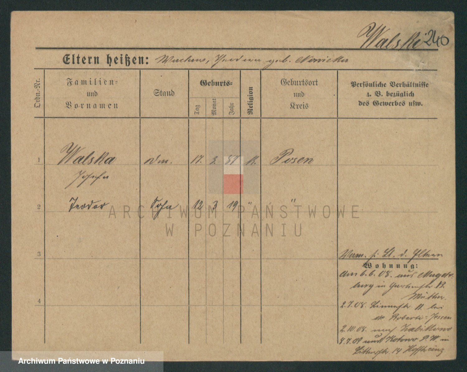 Podgląd karty osobowej dostępny jest po kliknięciu na nazwisko lub ikonkę karty. Można dokonywać powiększenia (ikony na górze) lub przechodzić między kolejnymi skanami (strzałki po bokach).