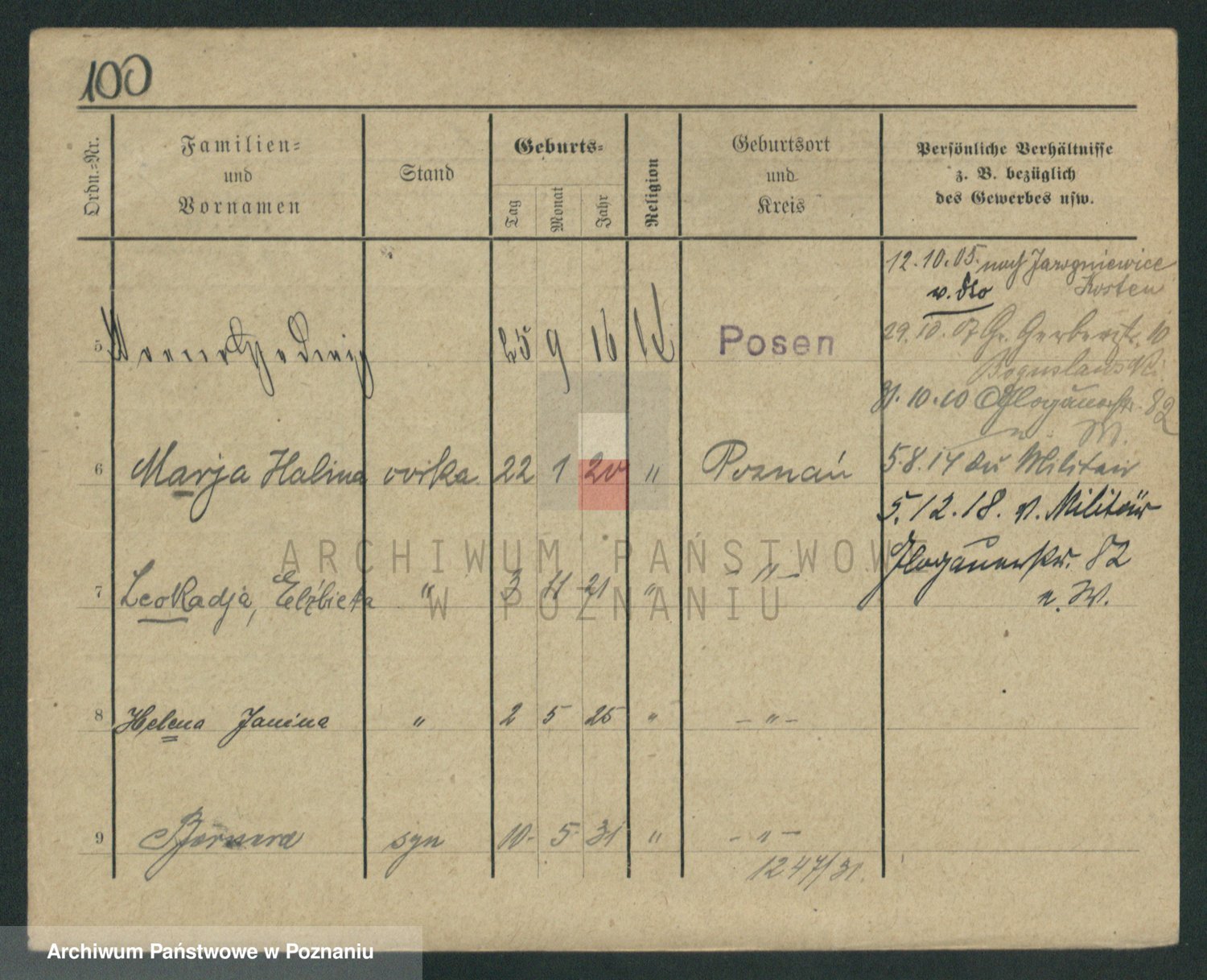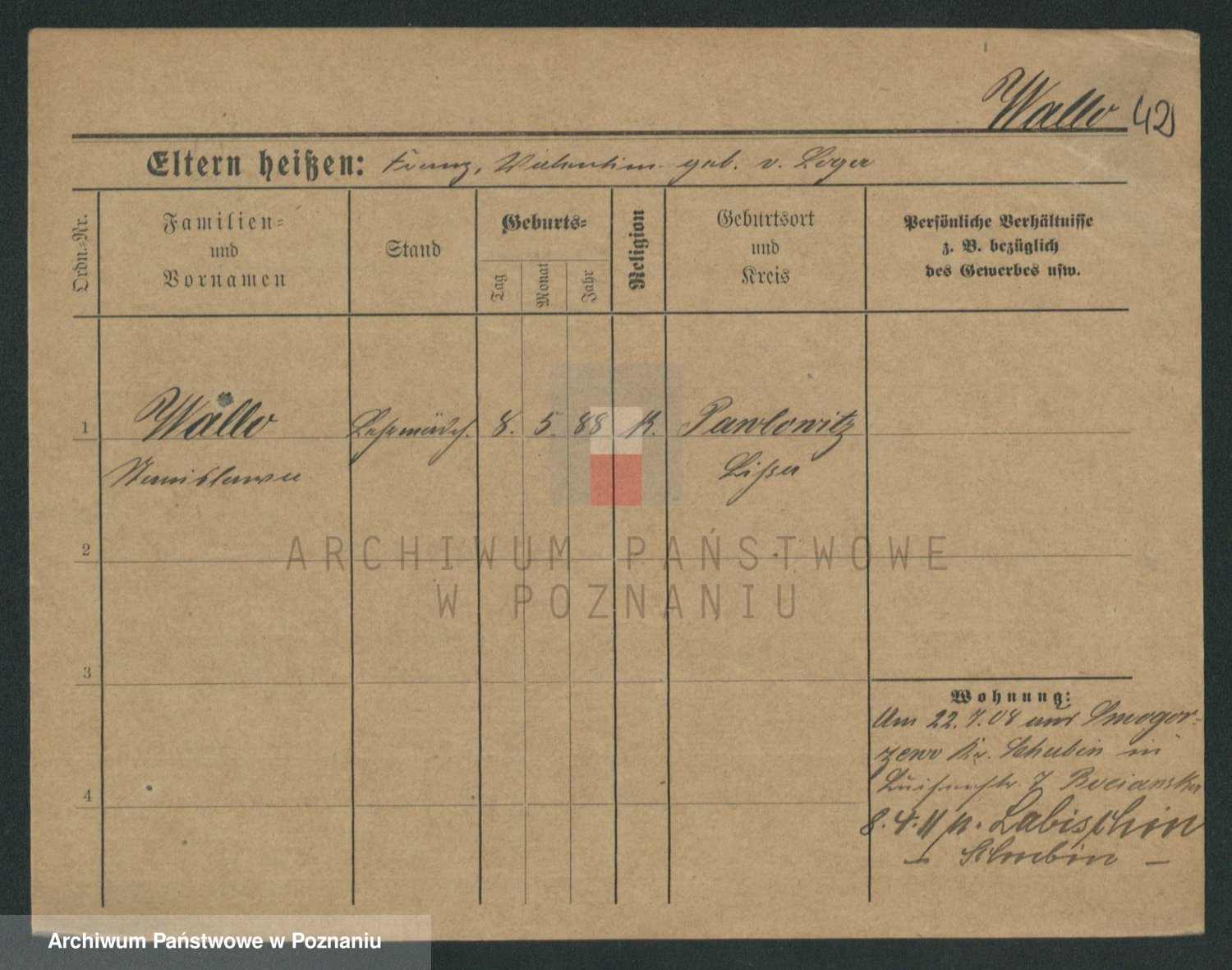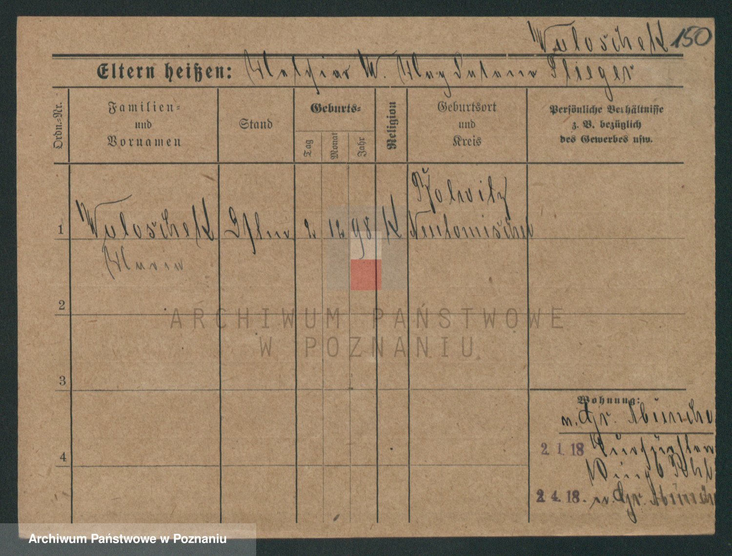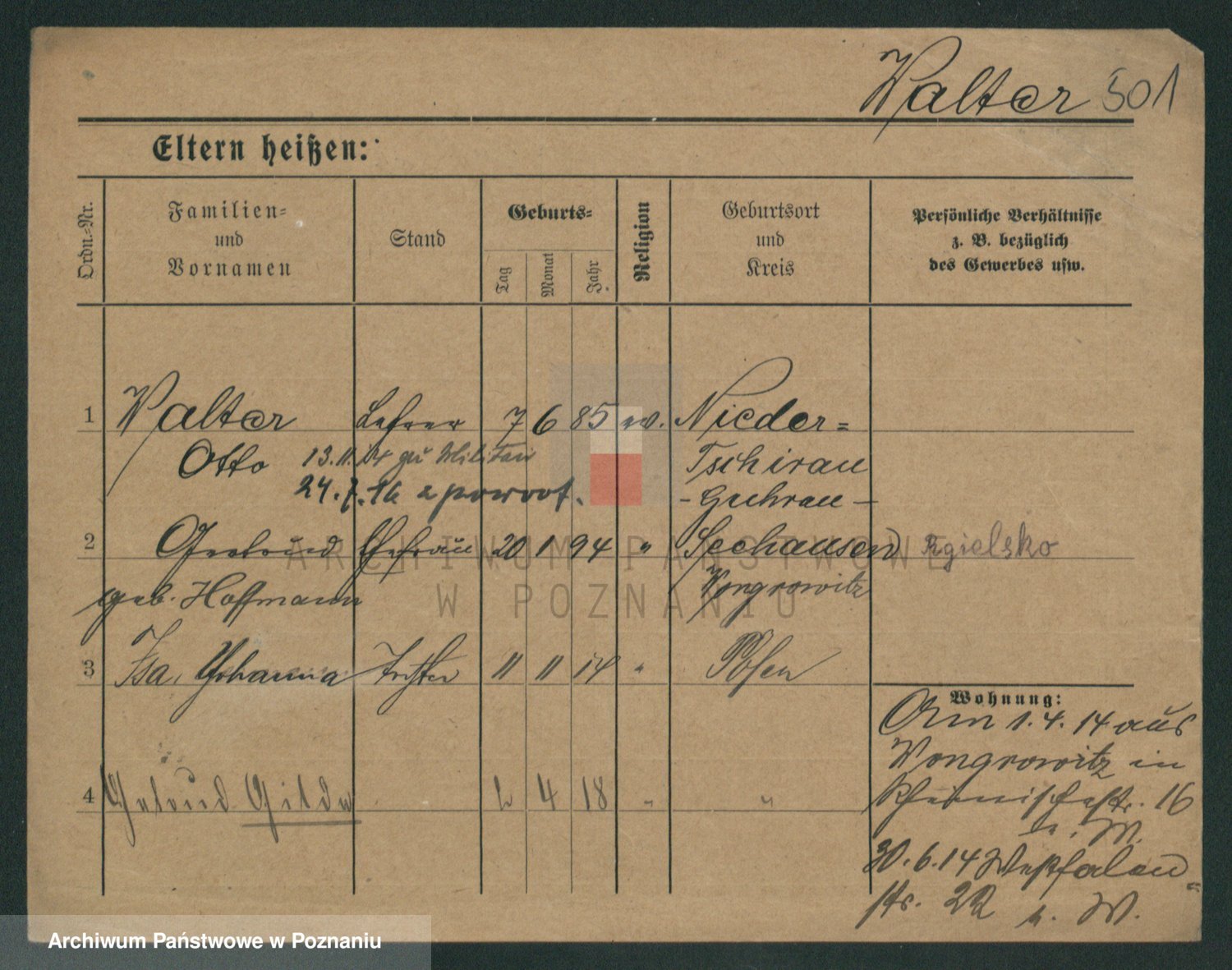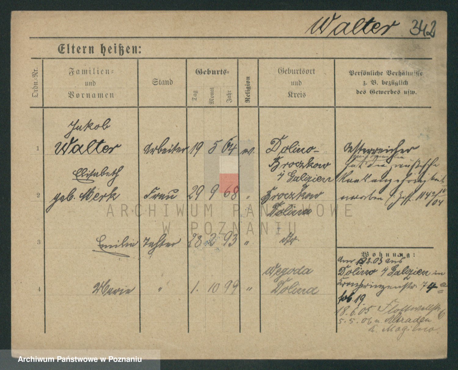 Podgląd karty osobowej dostępny jest po kliknięciu na nazwisko lub ikonkę karty. Można dokonywać powiększenia (ikony na górze) lub przechodzić między kolejnymi skanami (strzałki po bokach).