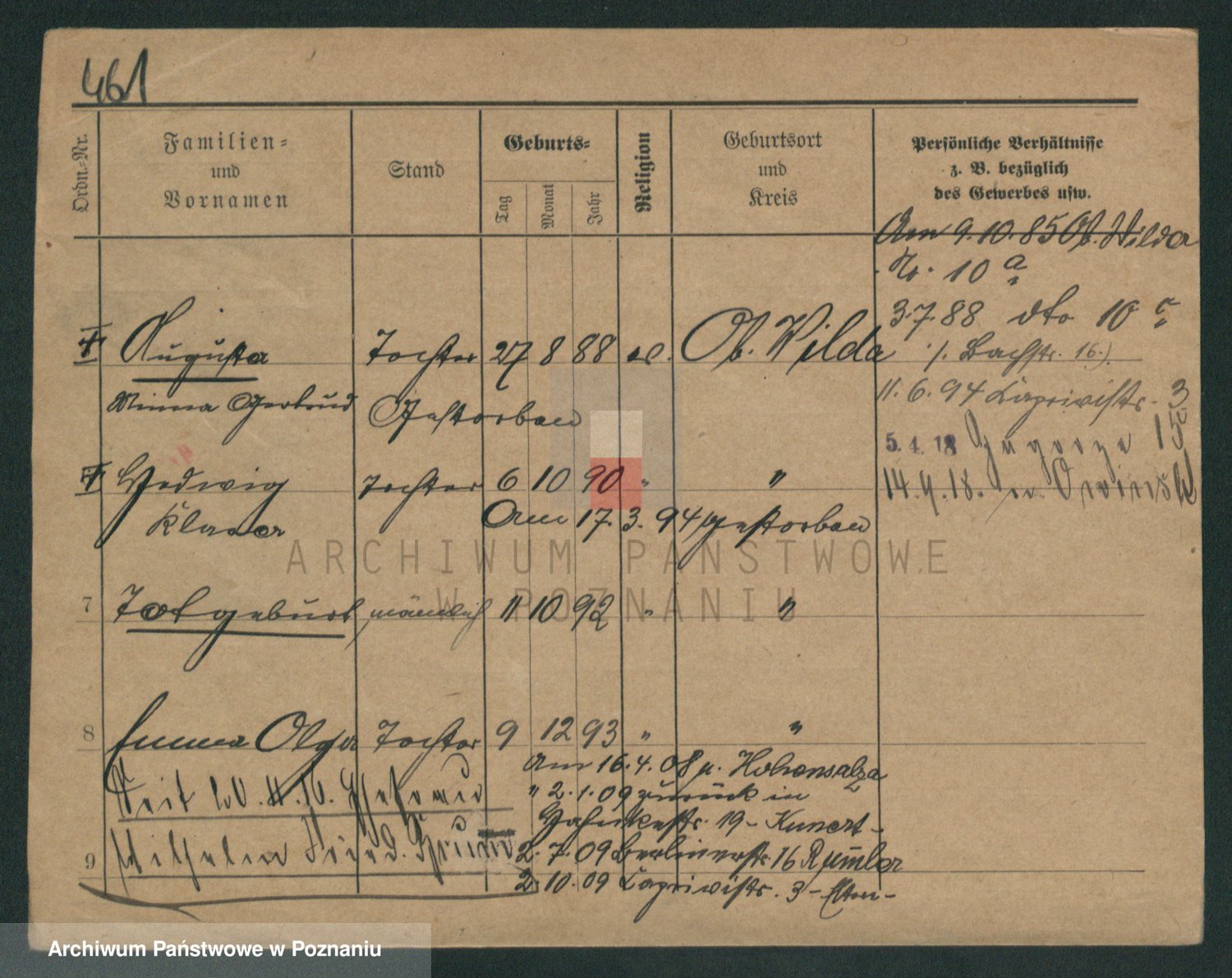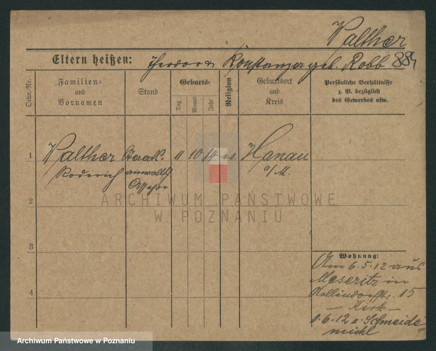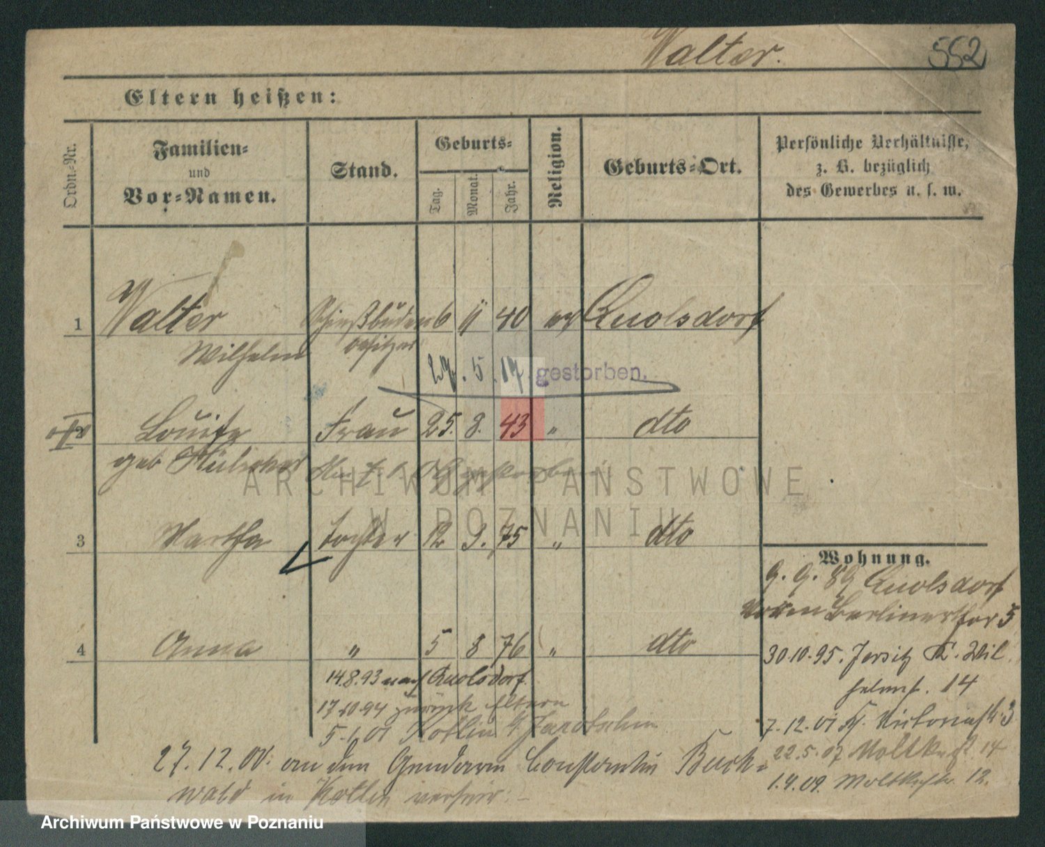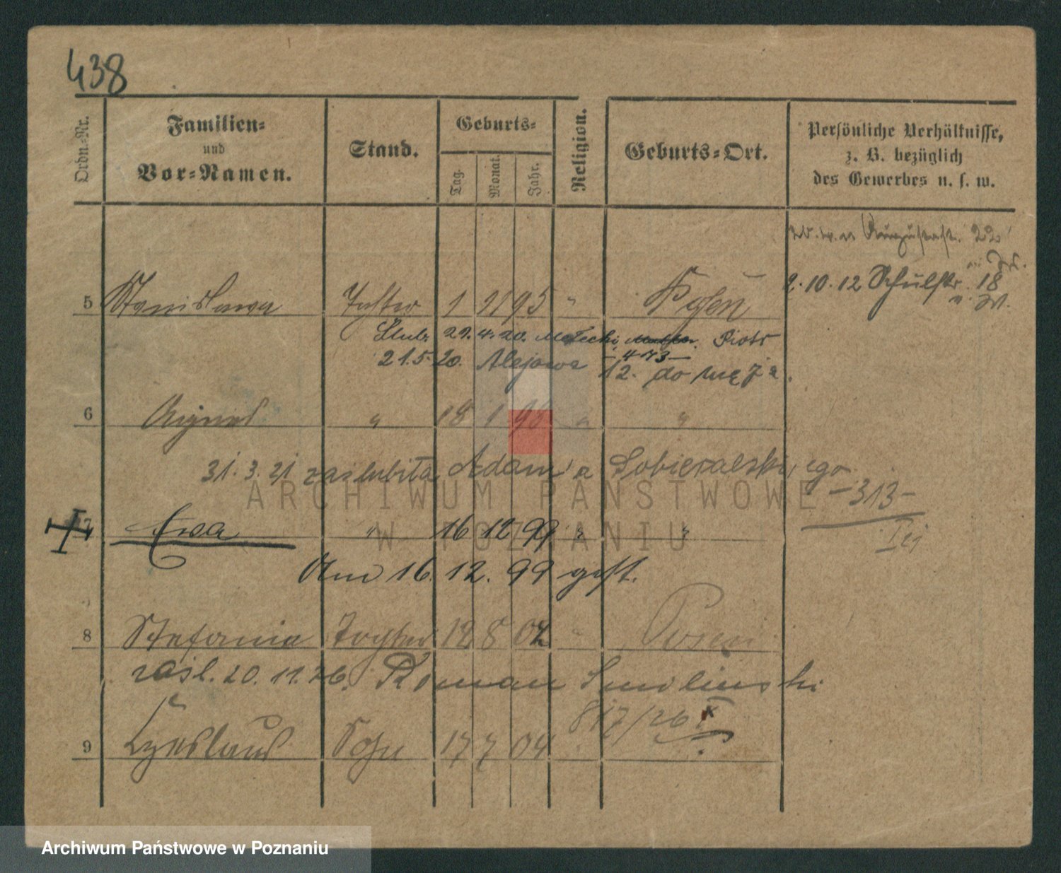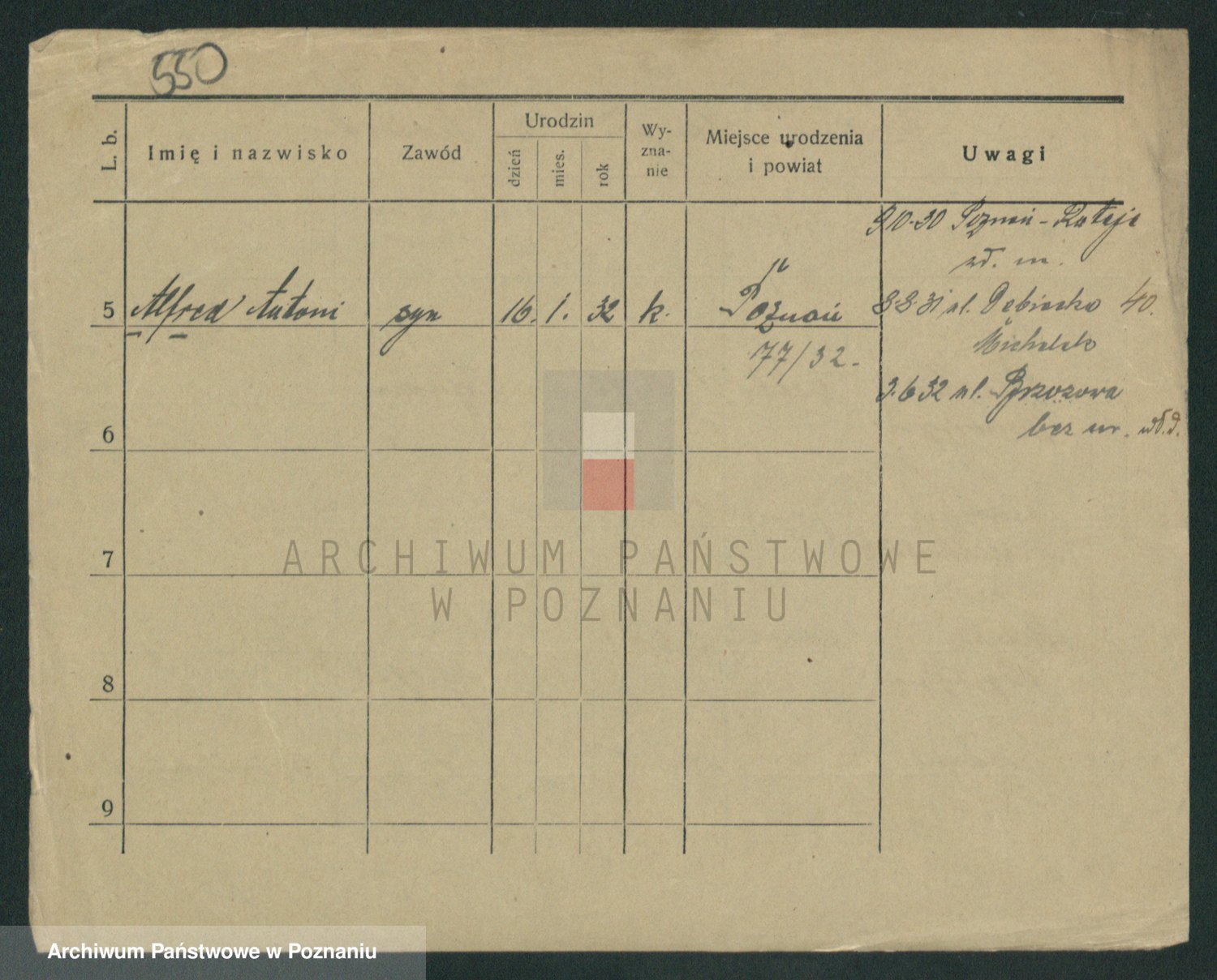 Podgląd karty osobowej dostępny jest po kliknięciu na nazwisko lub ikonkę karty. Można dokonywać powiększenia (ikony na górze) lub przechodzić między kolejnymi skanami (strzałki po bokach).