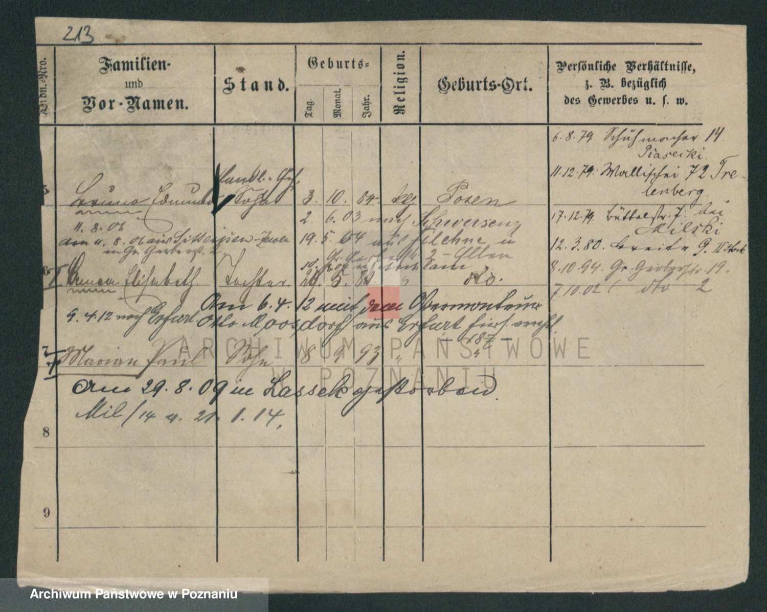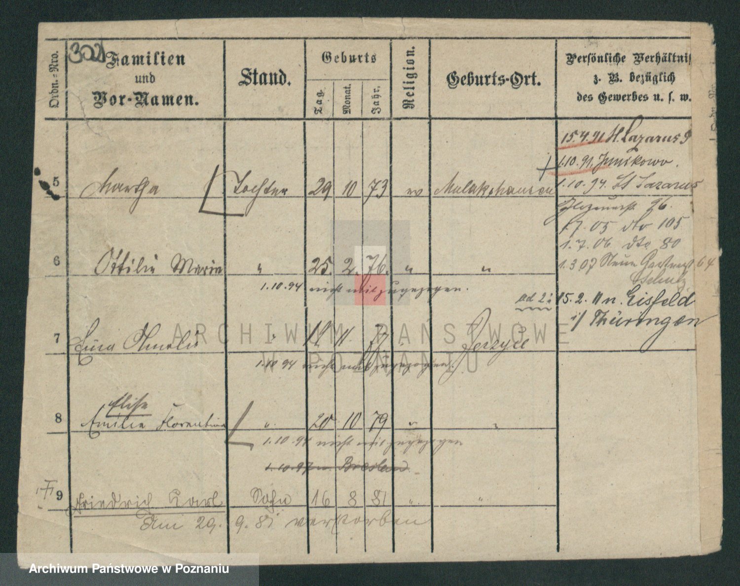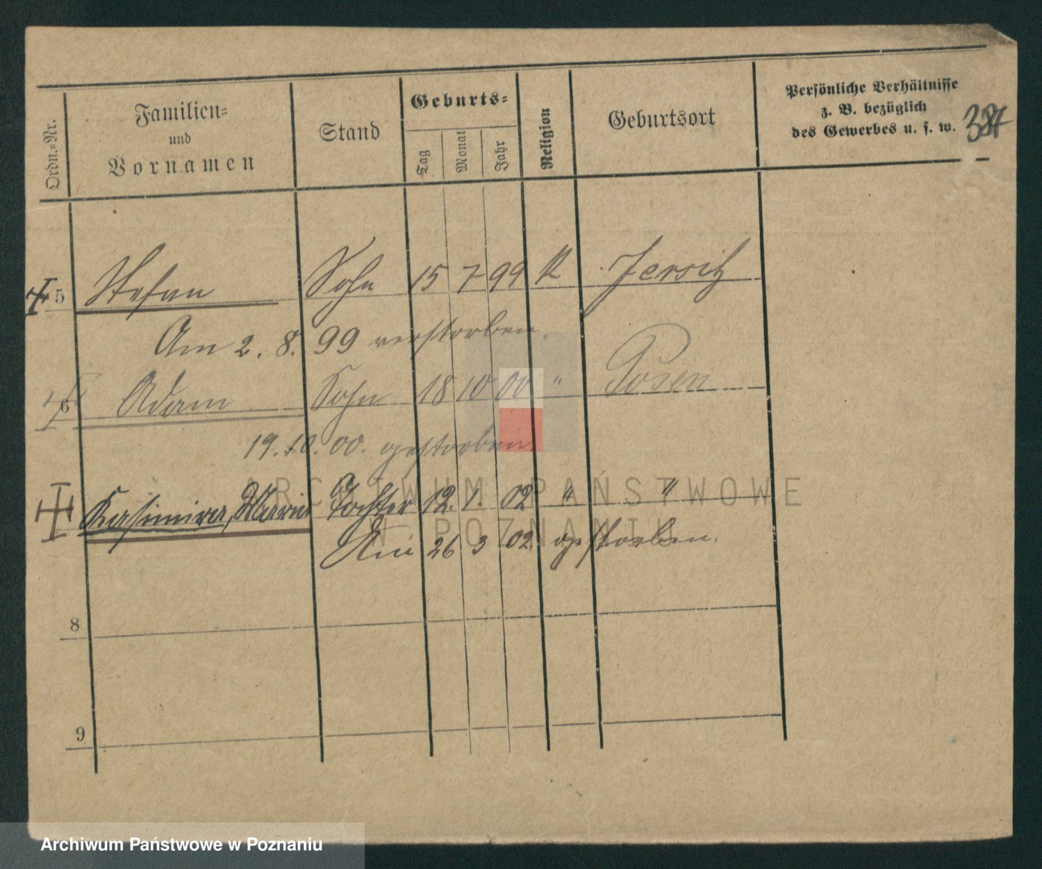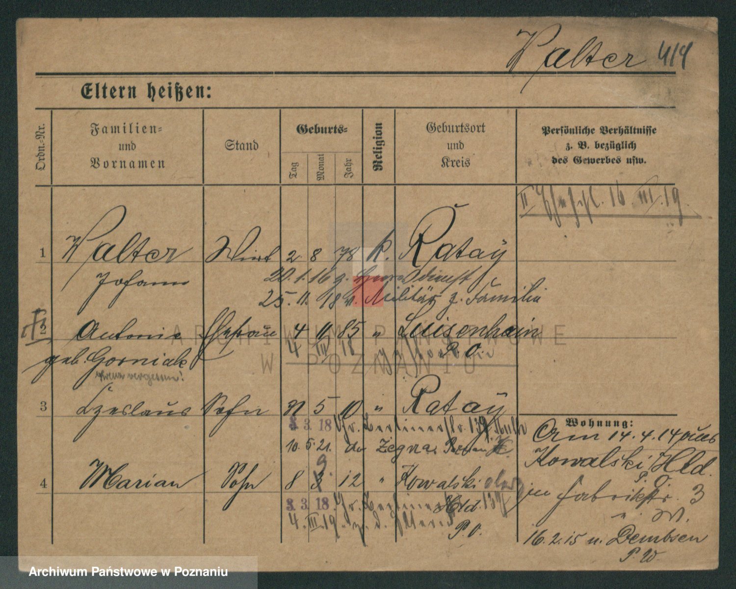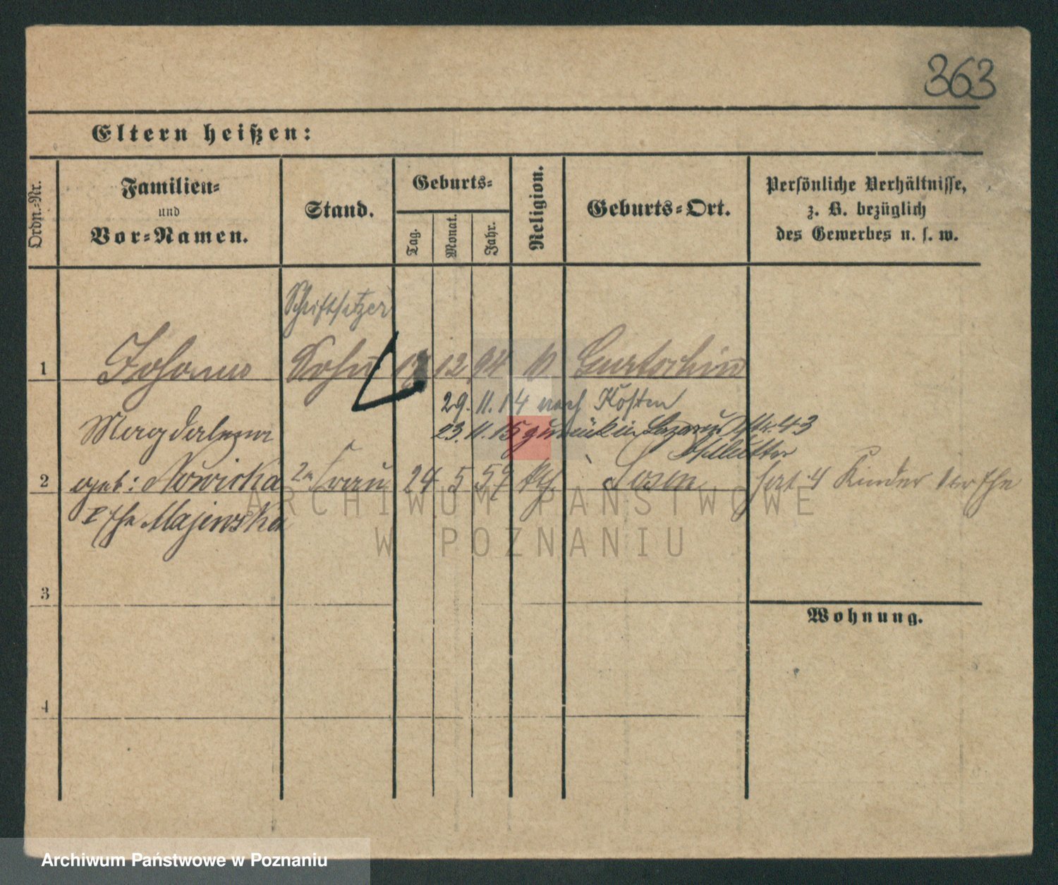 Podgląd karty osobowej dostępny jest po kliknięciu na nazwisko lub ikonkę karty. Można dokonywać powiększenia (ikony na górze) lub przechodzić między kolejnymi skanami (strzałki po bokach).