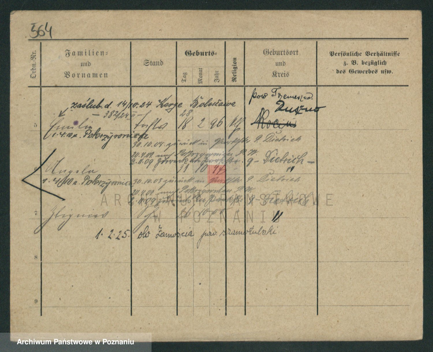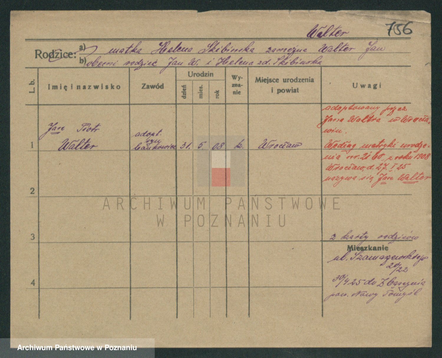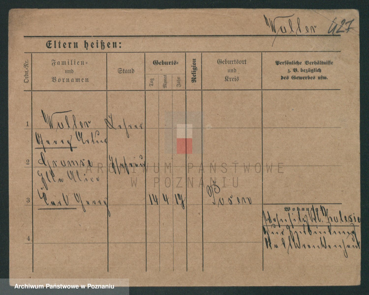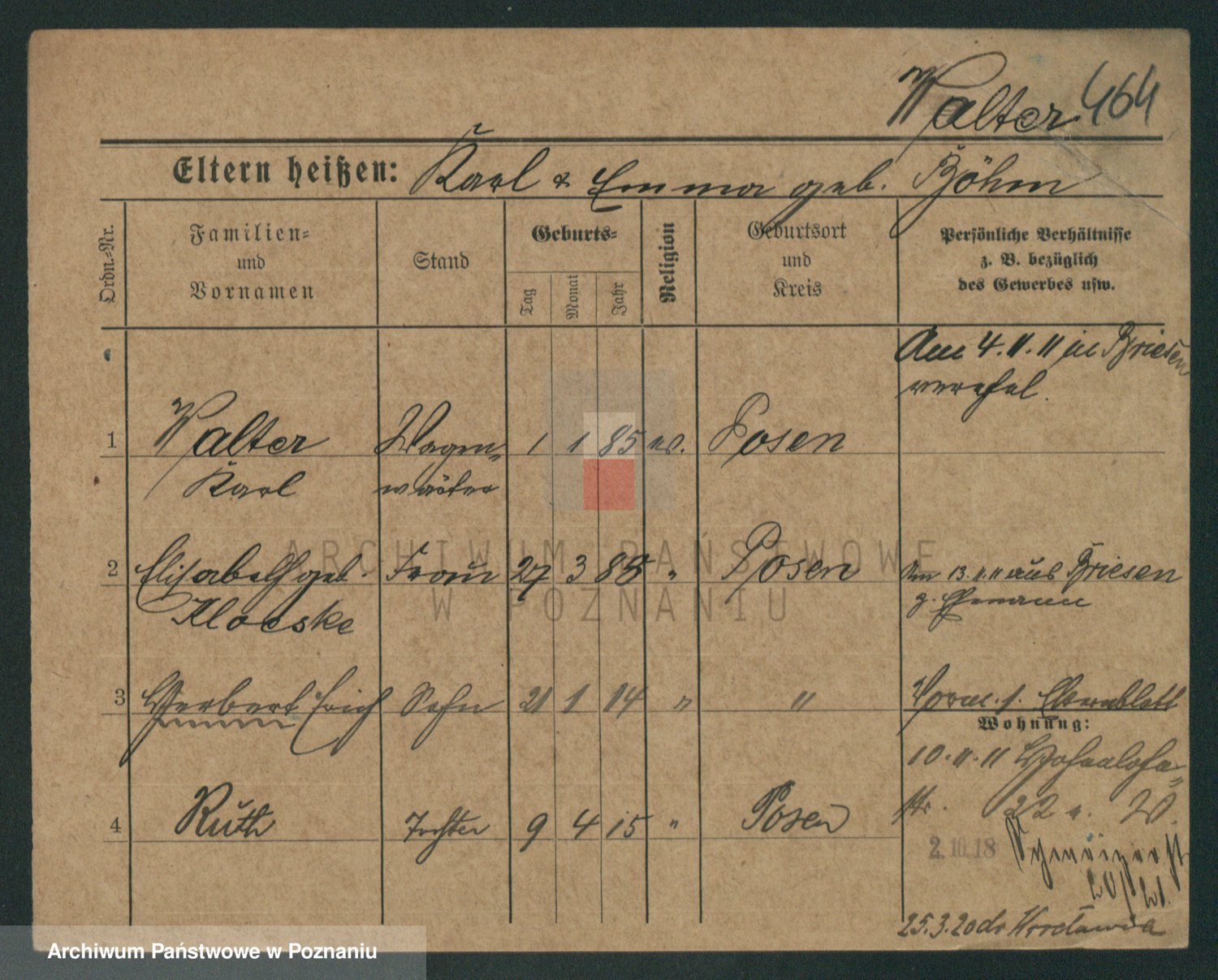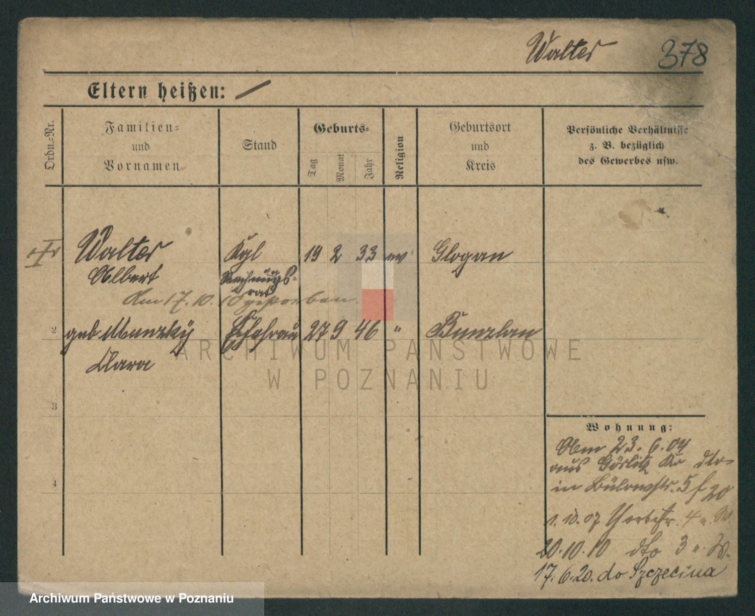 Podgląd karty osobowej dostępny jest po kliknięciu na nazwisko lub ikonkę karty. Można dokonywać powiększenia (ikony na górze) lub przechodzić między kolejnymi skanami (strzałki po bokach).