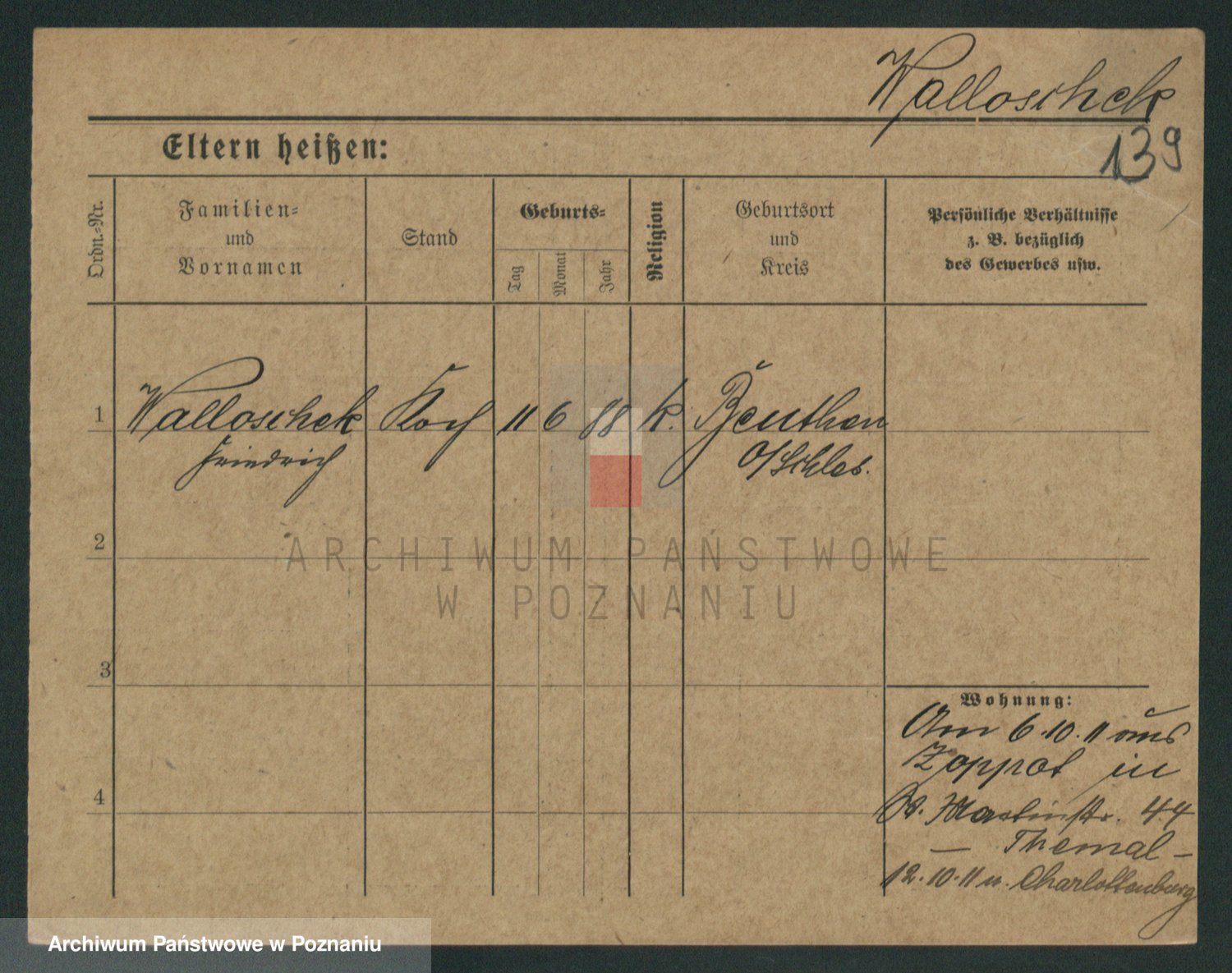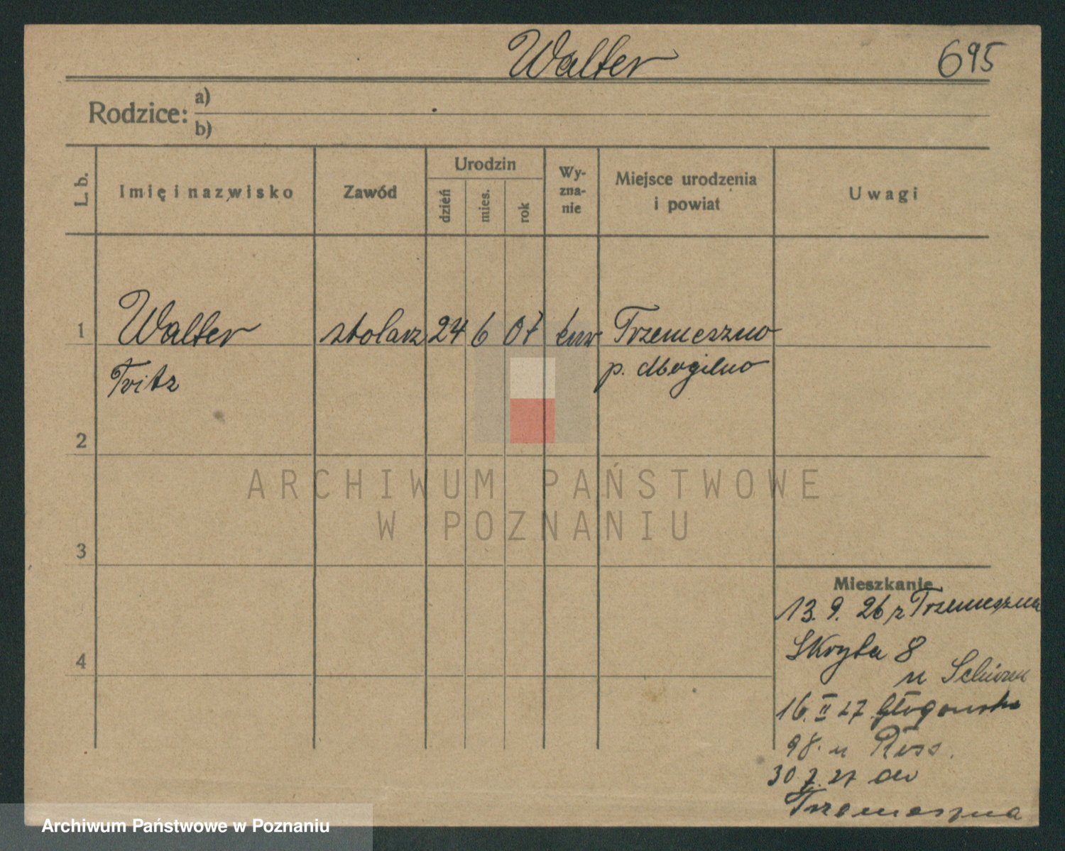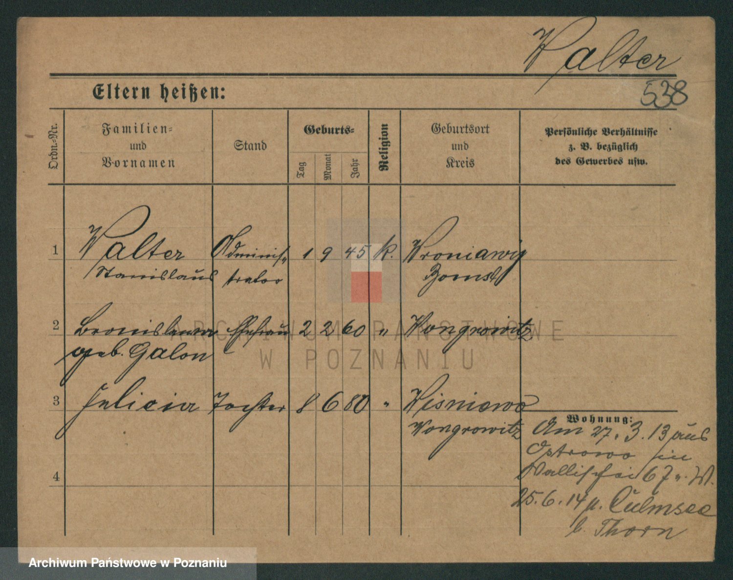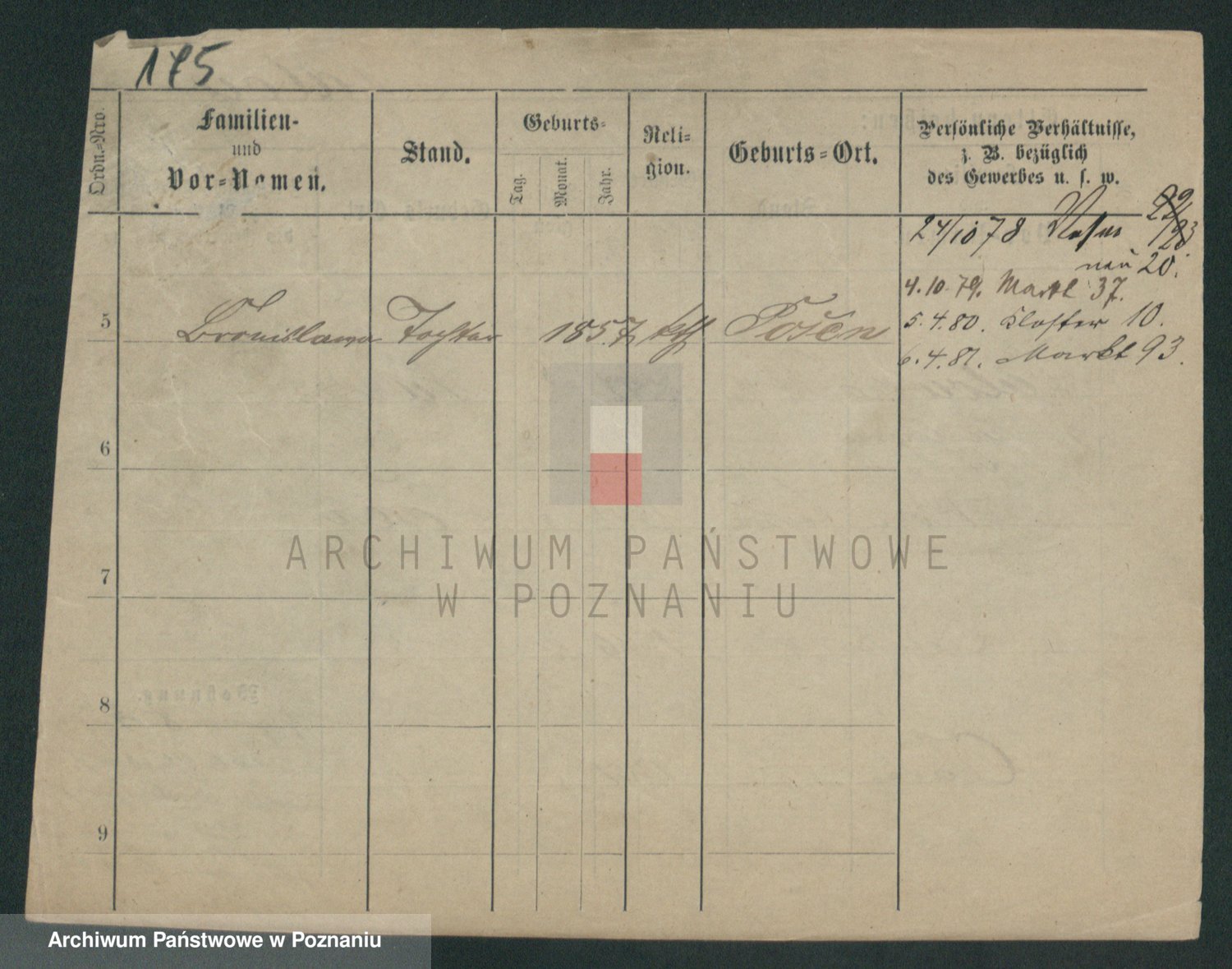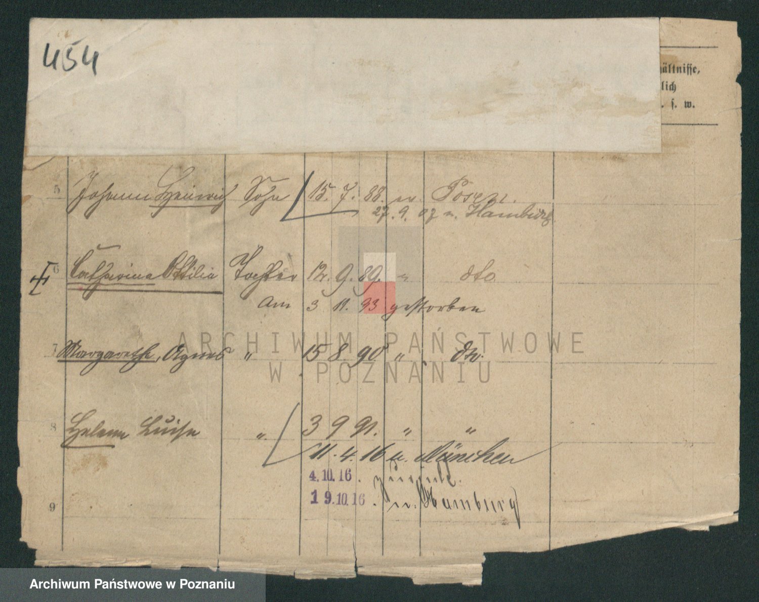 Podgląd karty osobowej dostępny jest po kliknięciu na nazwisko lub ikonkę karty. Można dokonywać powiększenia (ikony na górze) lub przechodzić między kolejnymi skanami (strzałki po bokach).