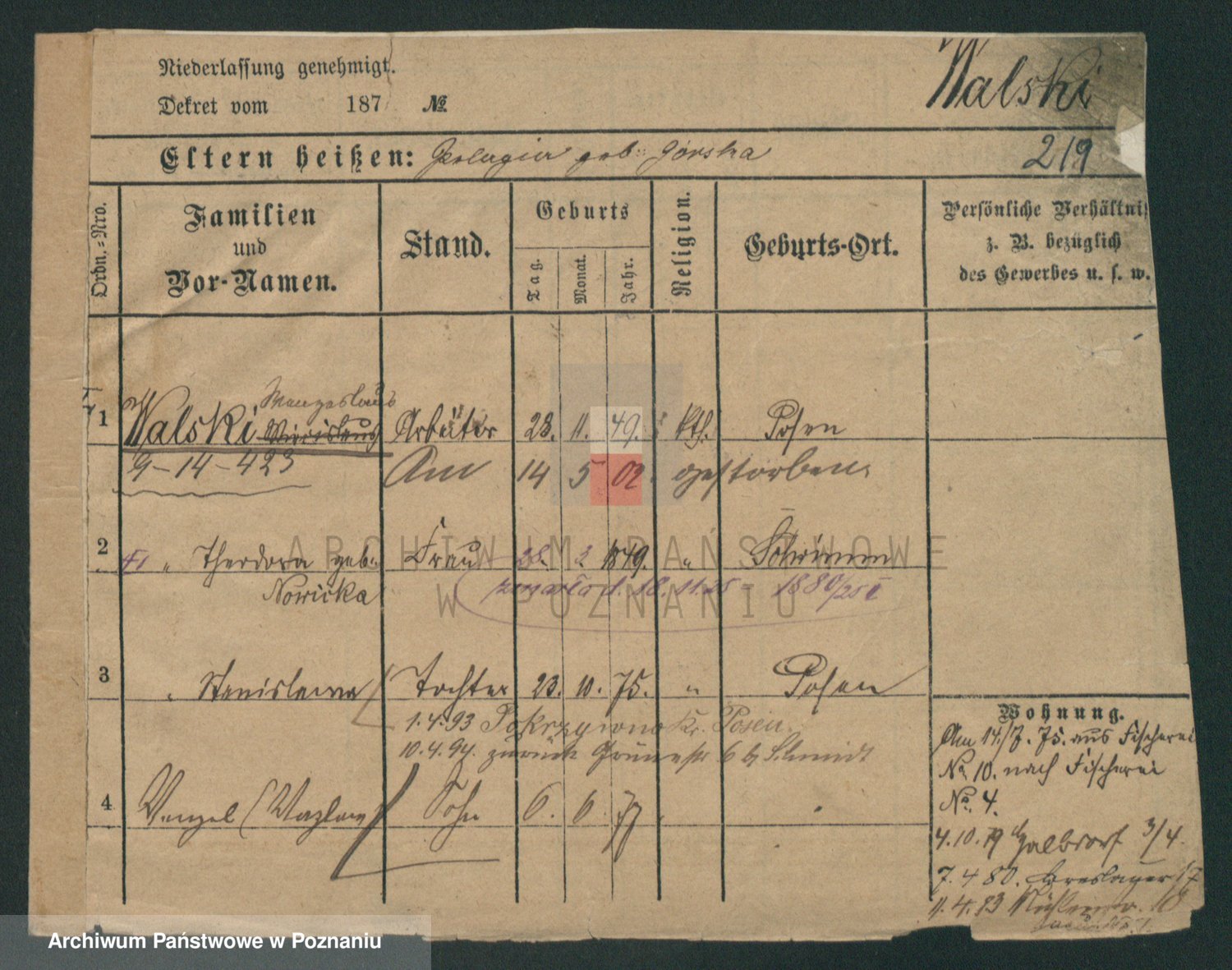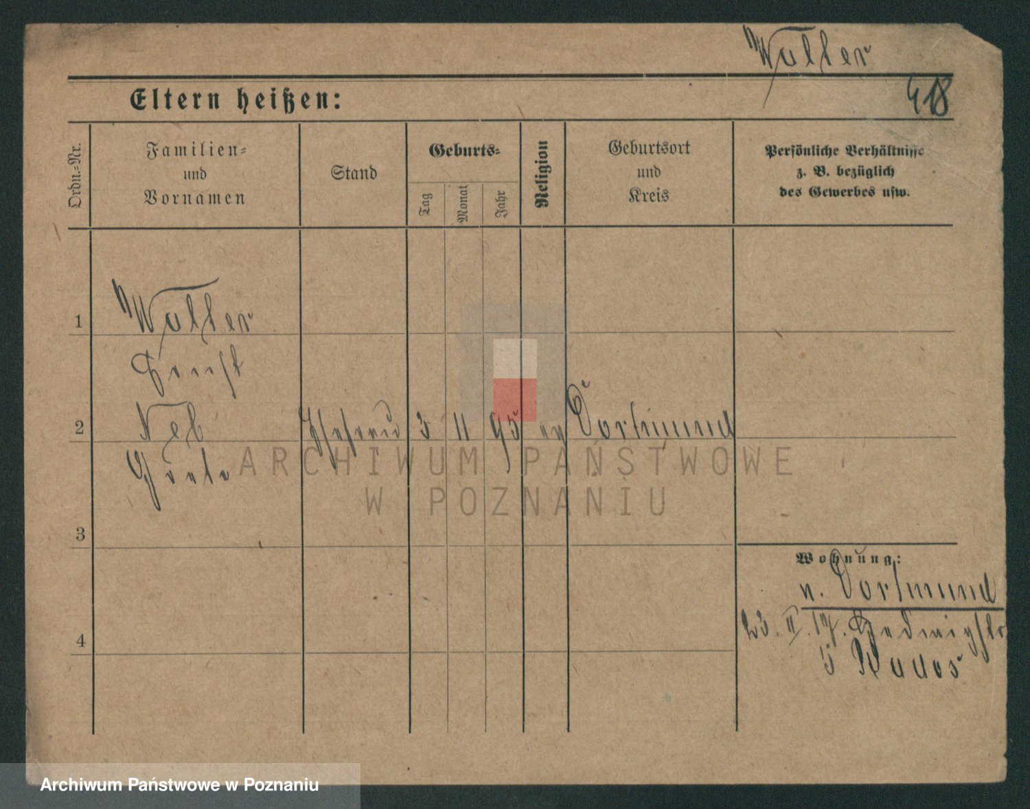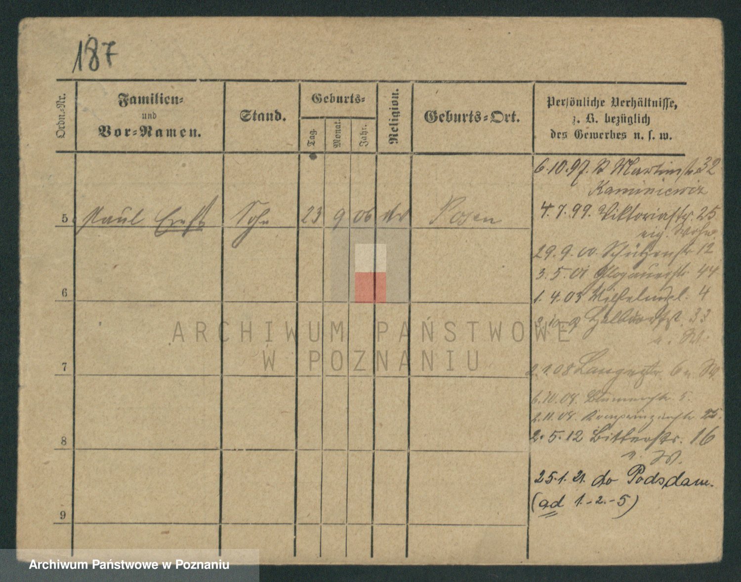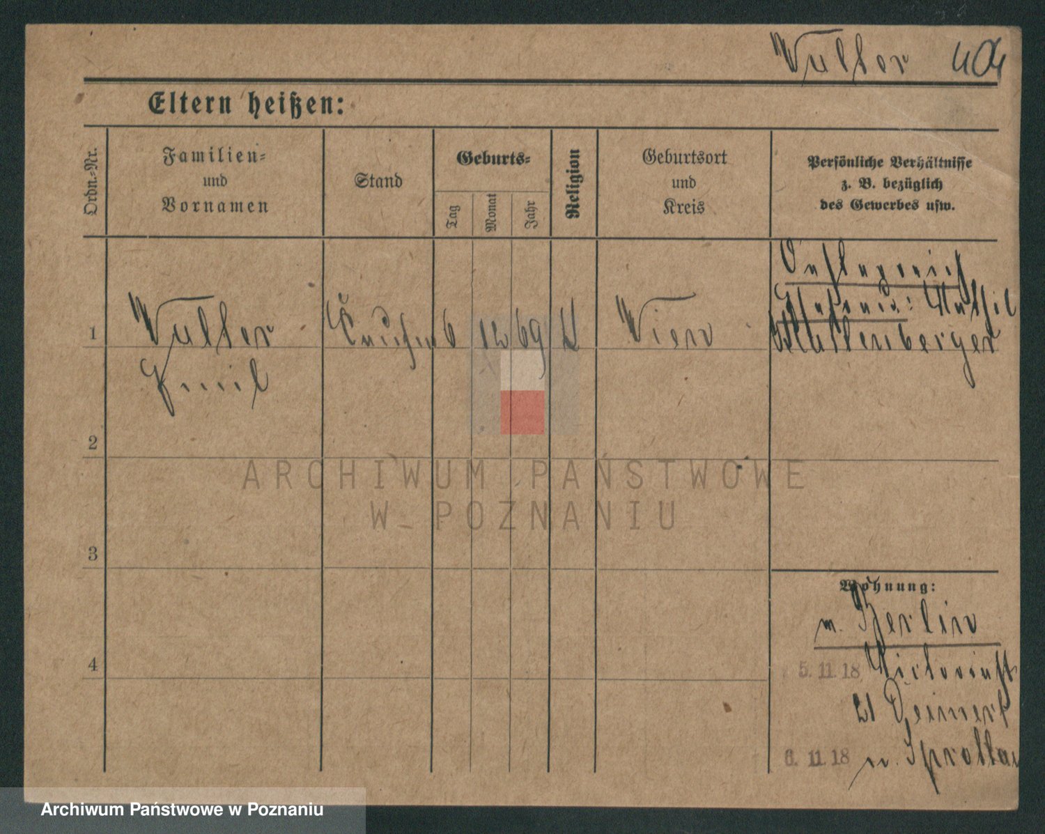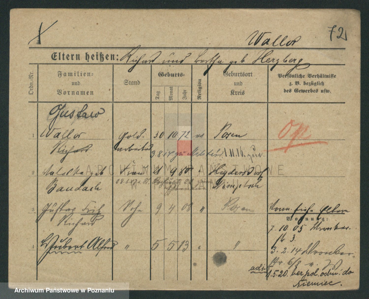 Podgląd karty osobowej dostępny jest po kliknięciu na nazwisko lub ikonkę karty. Można dokonywać powiększenia (ikony na górze) lub przechodzić między kolejnymi skanami (strzałki po bokach).