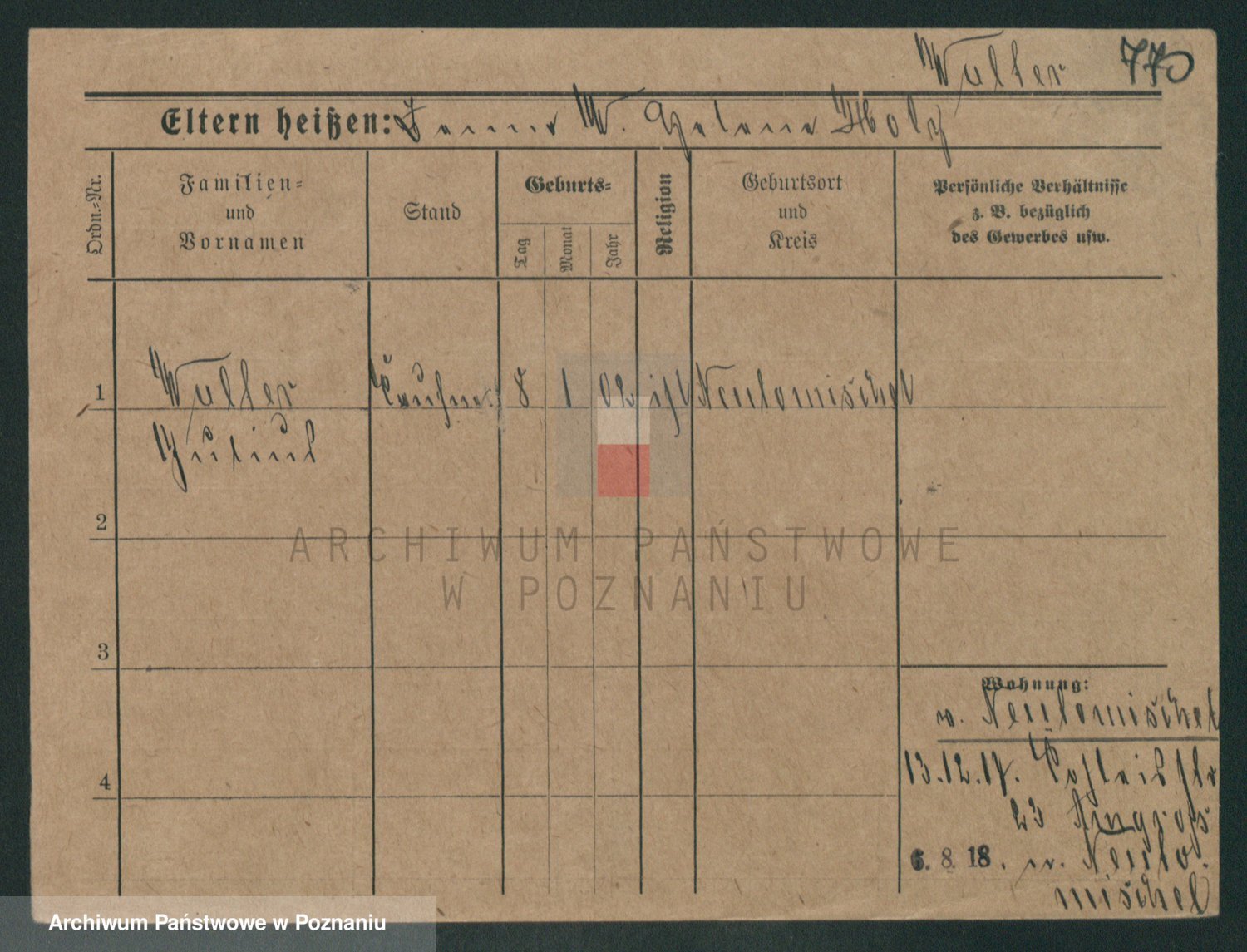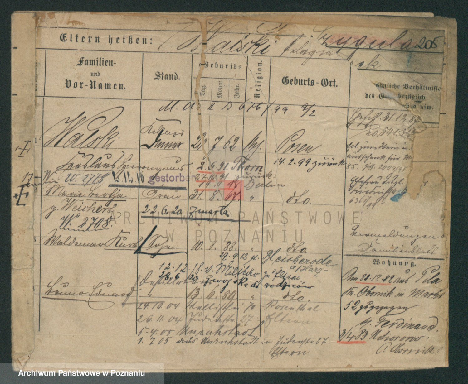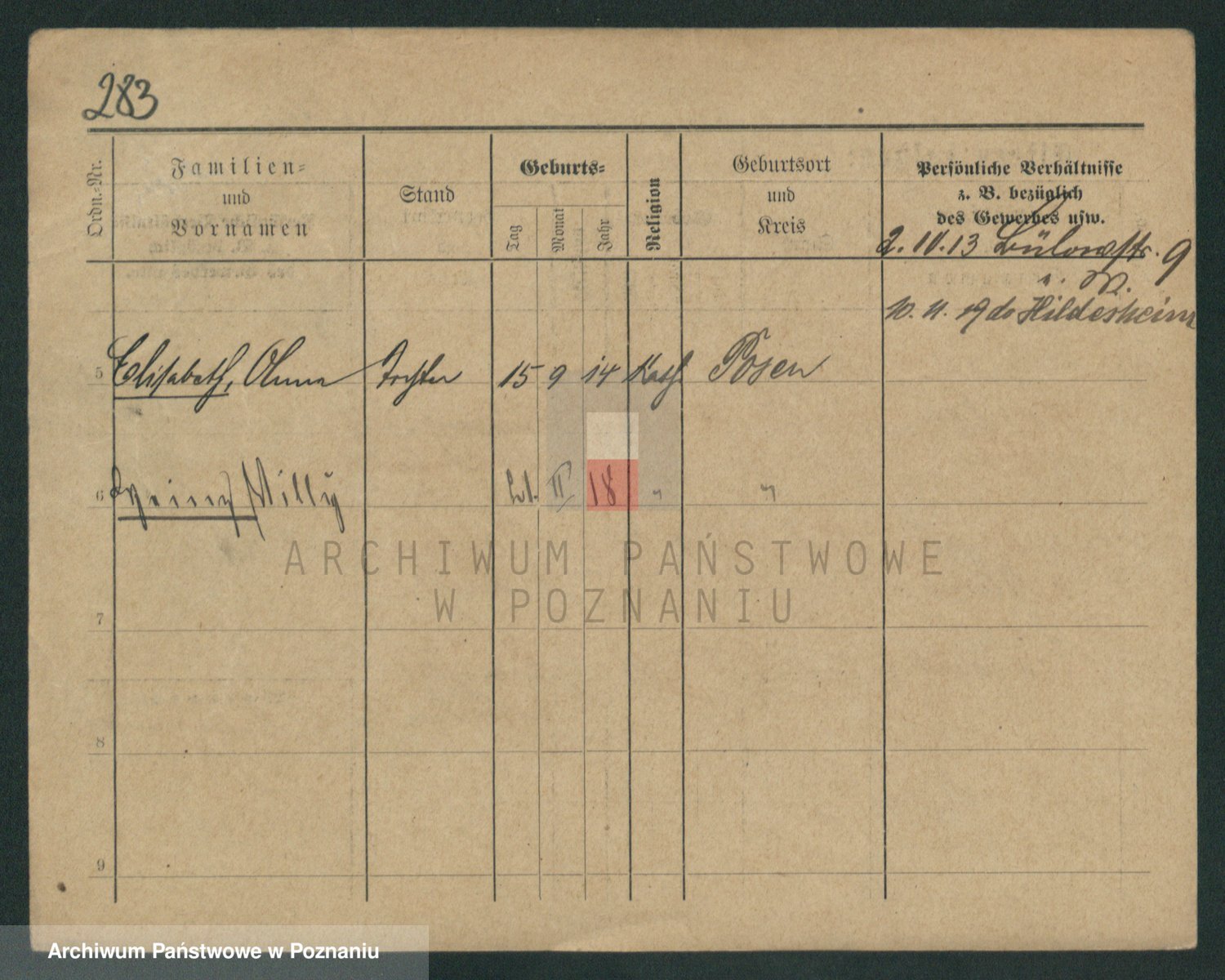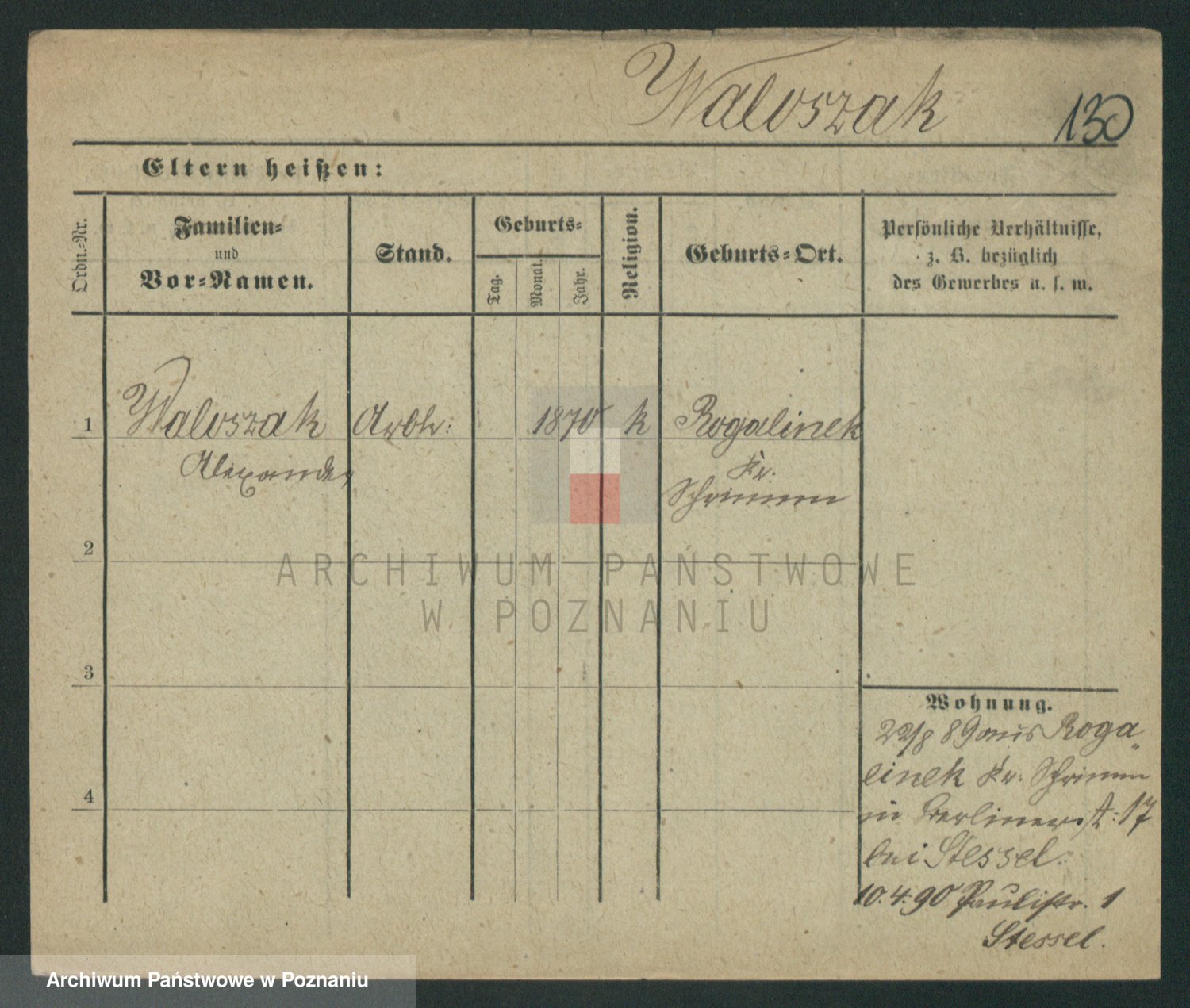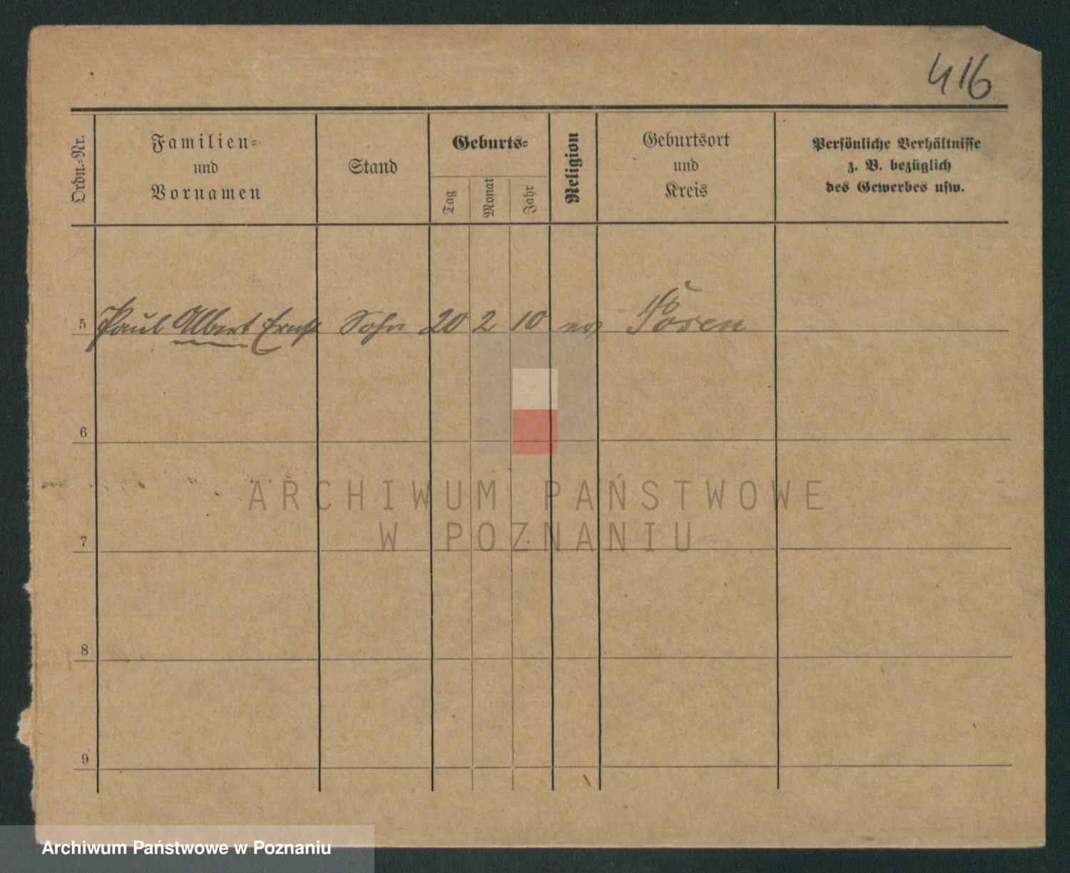Podgląd karty osobowej dostępny jest po kliknięciu na nazwisko lub ikonkę karty. Można dokonywać powiększenia (ikony na górze) lub przechodzić między kolejnymi skanami (strzałki po bokach).