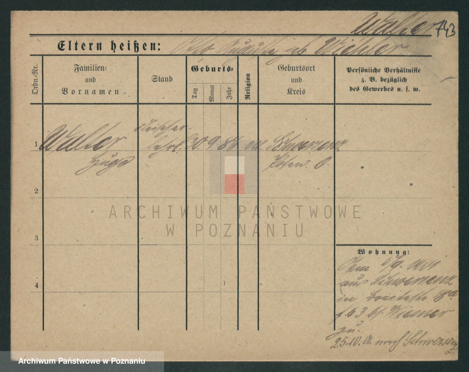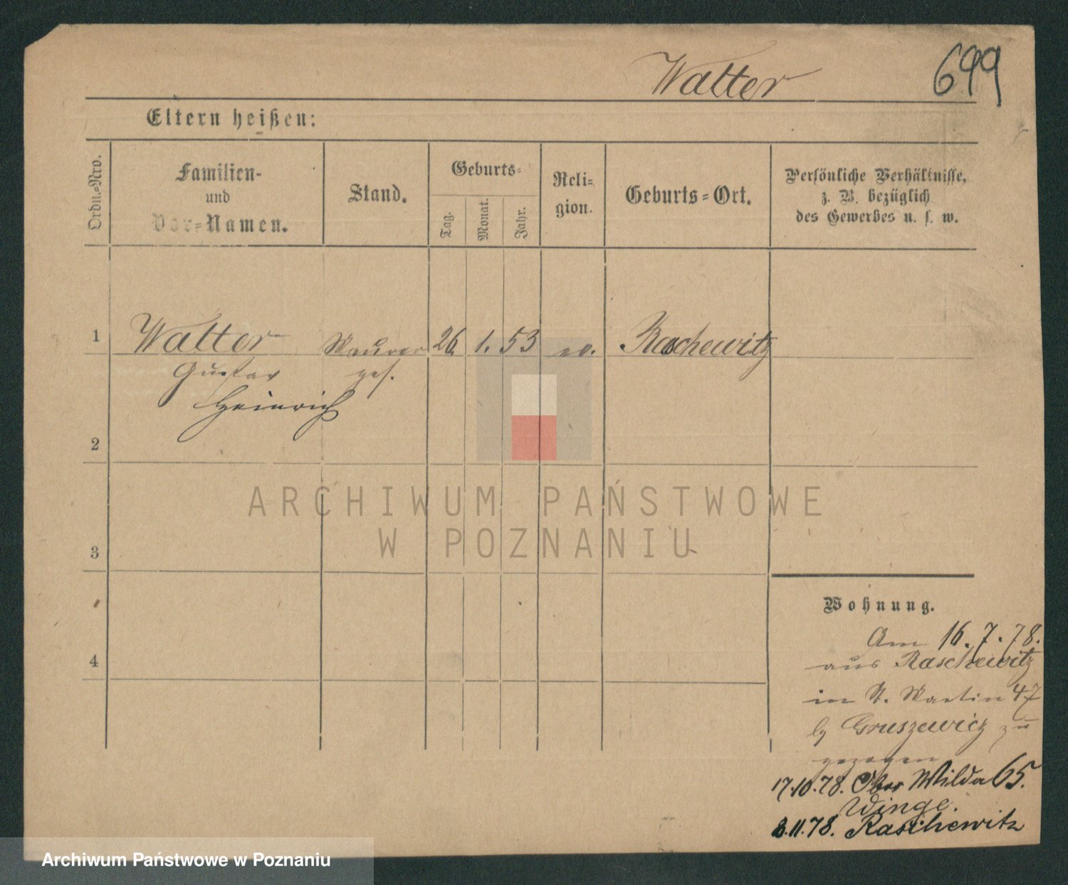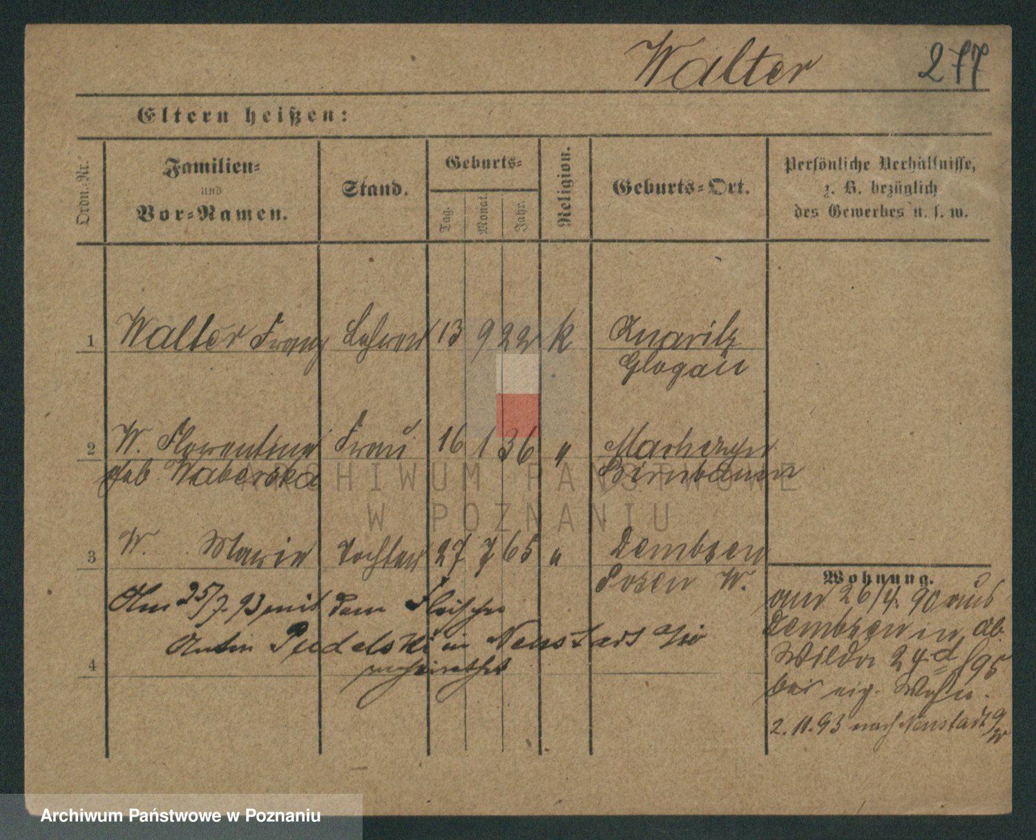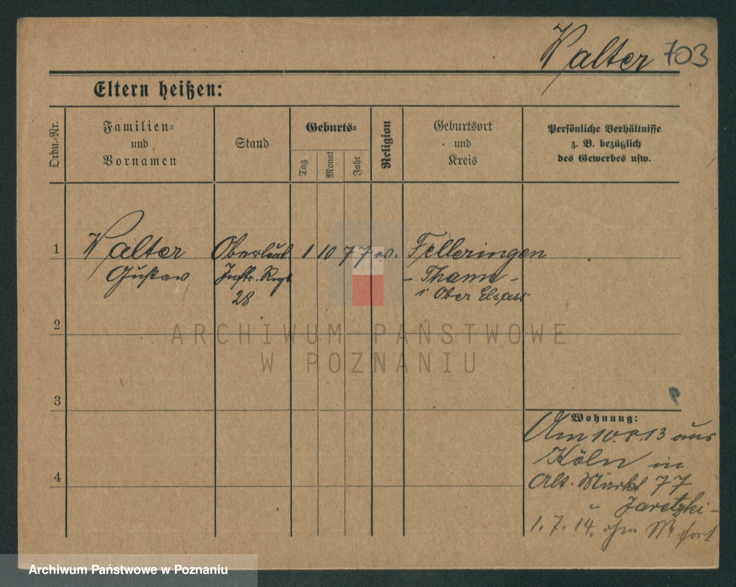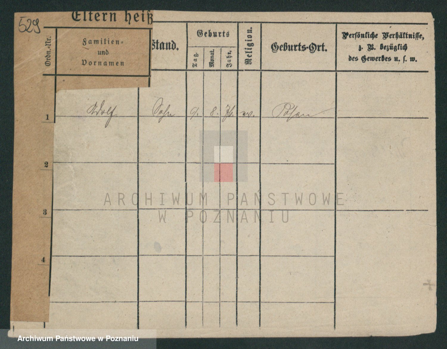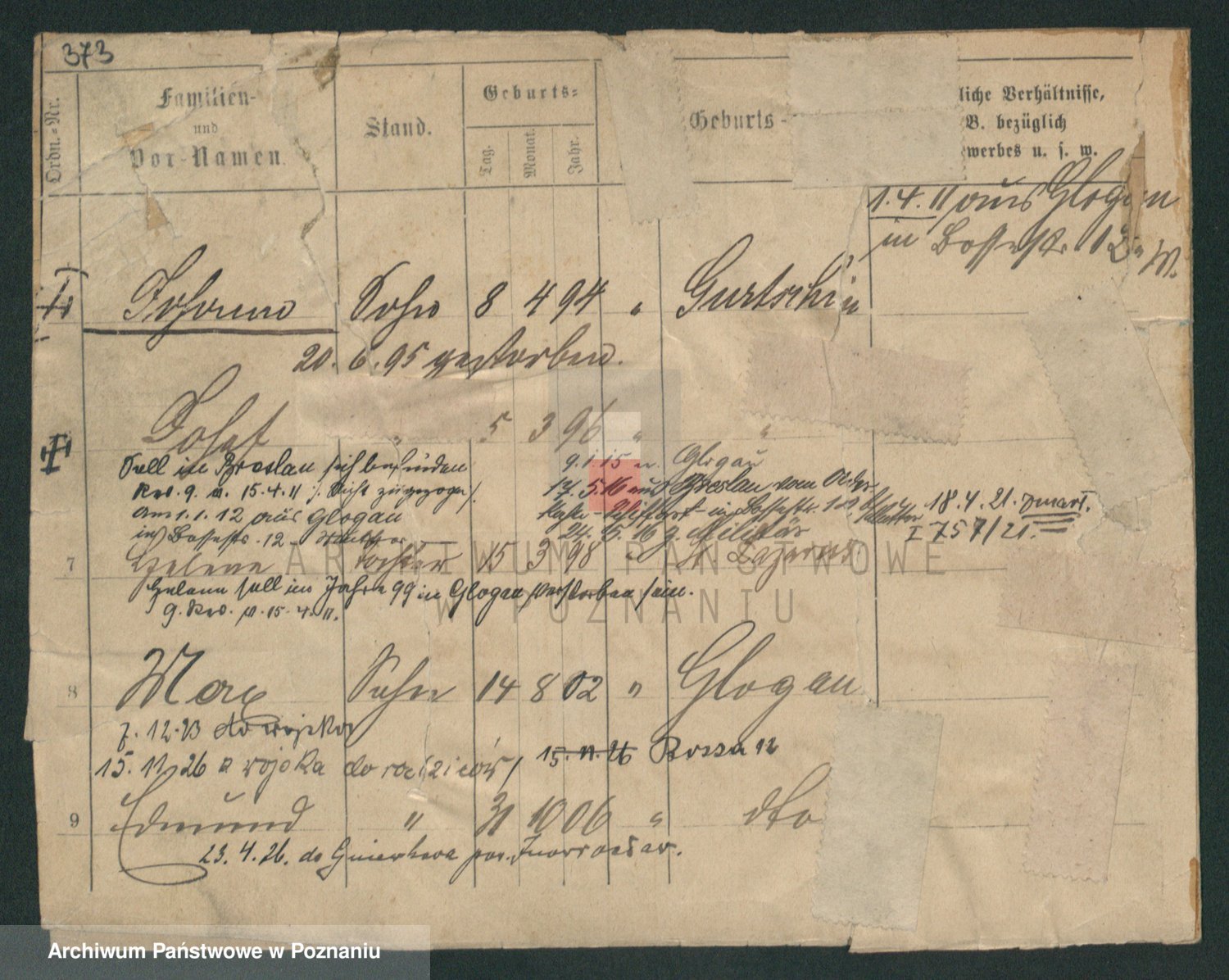 Podgląd karty osobowej dostępny jest po kliknięciu na nazwisko lub ikonkę karty. Można dokonywać powiększenia (ikony na górze) lub przechodzić między kolejnymi skanami (strzałki po bokach).