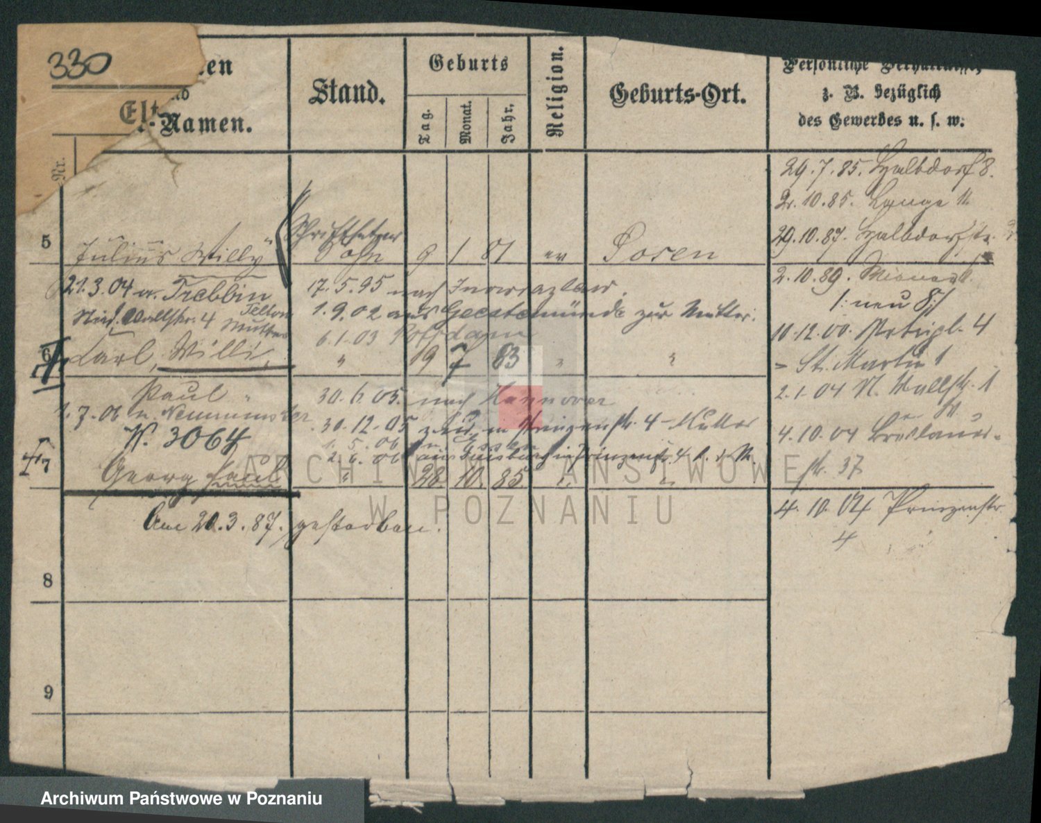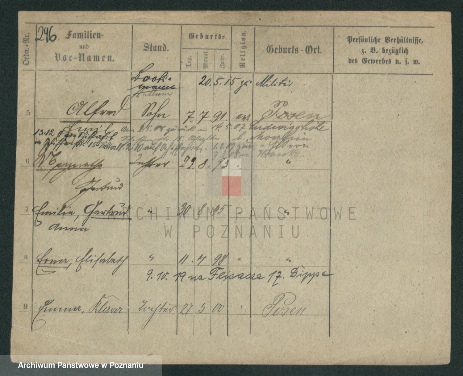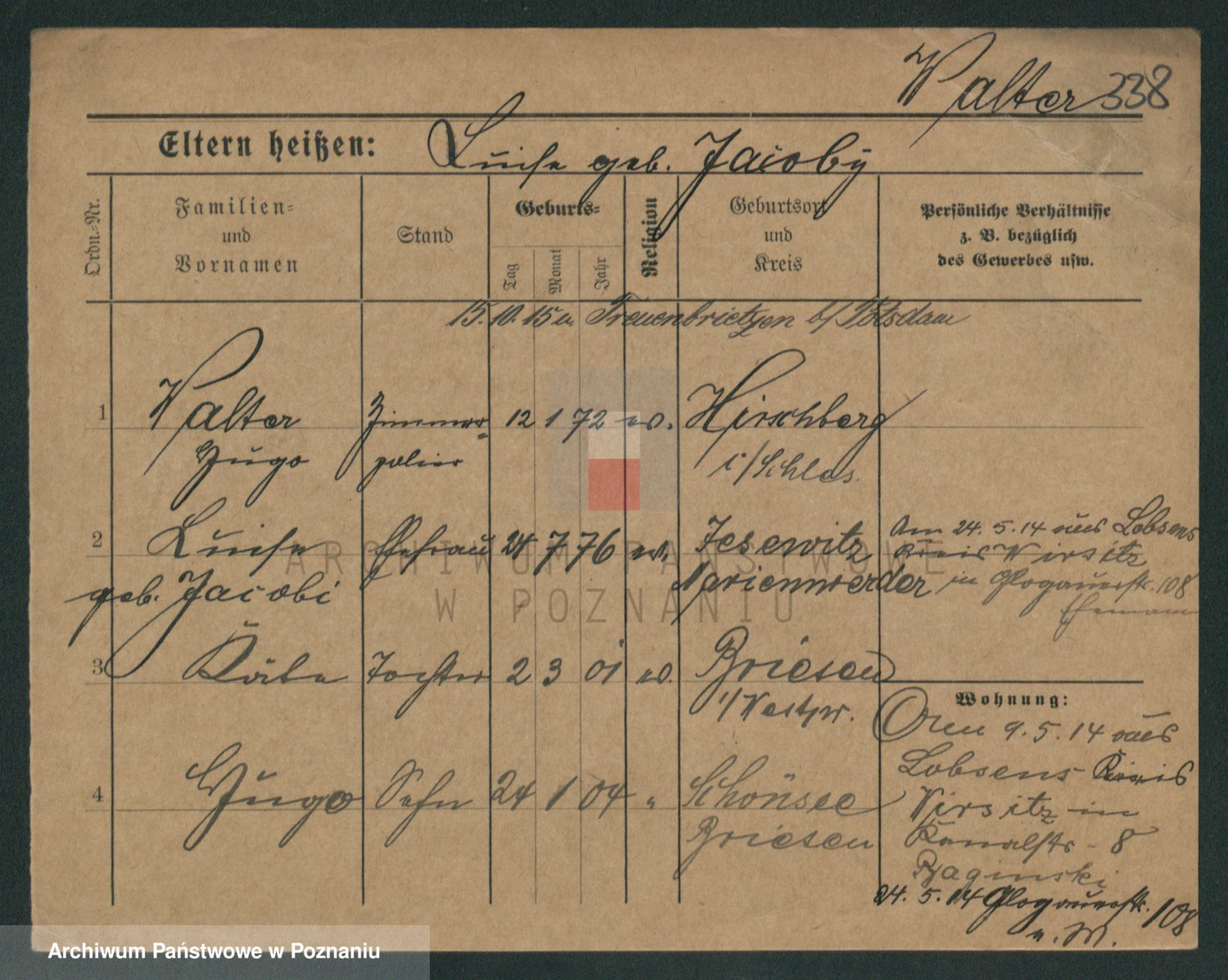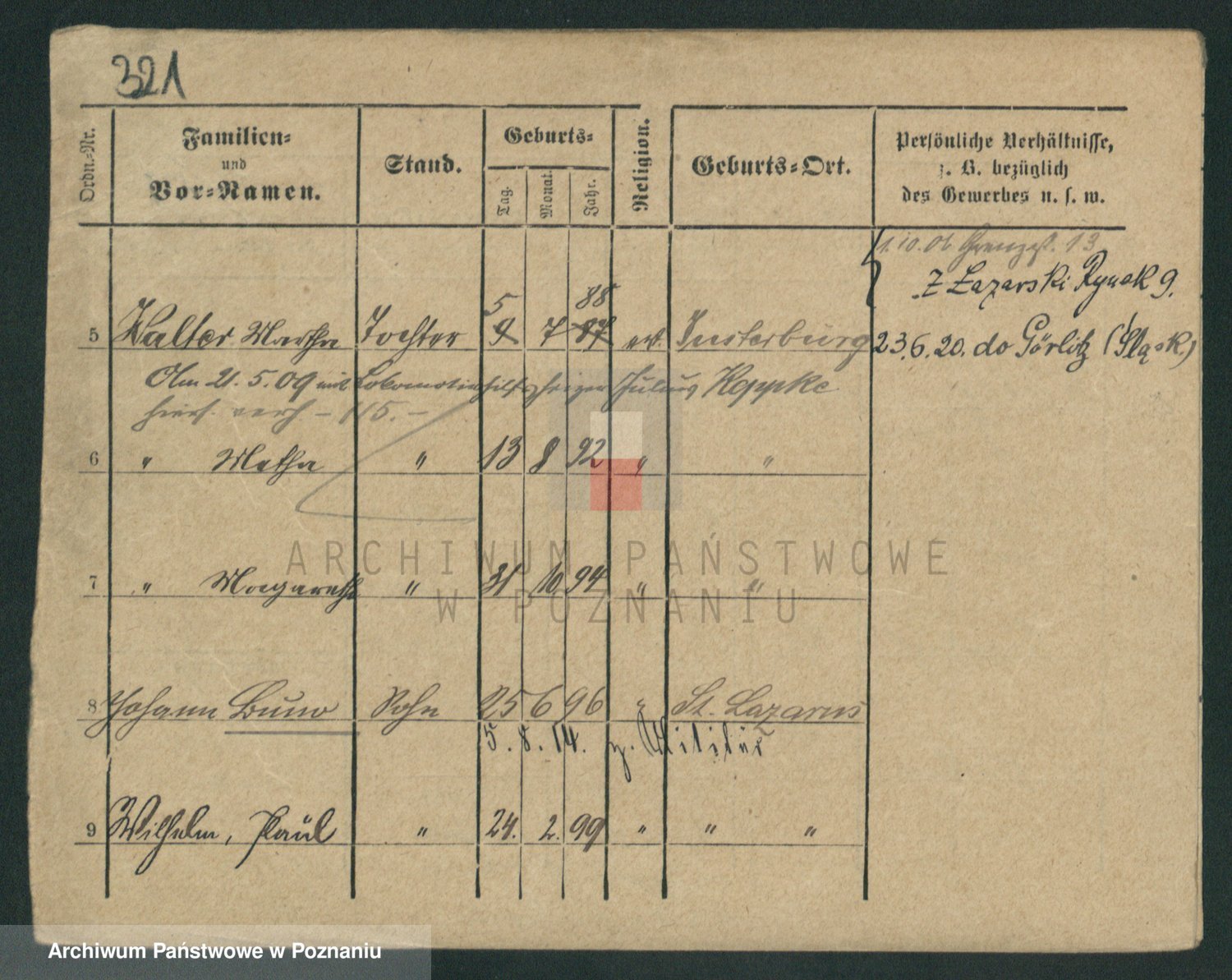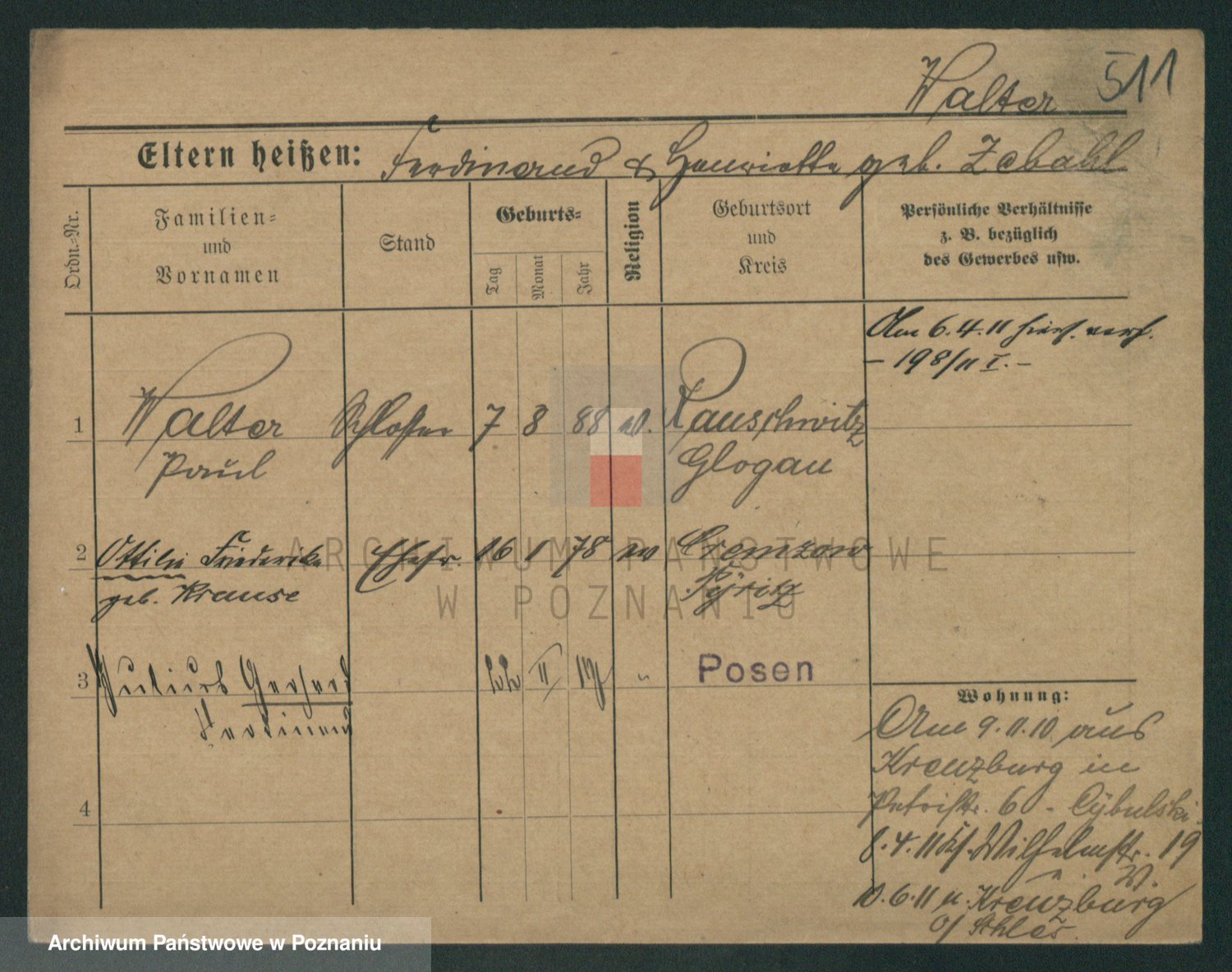 Podgląd karty osobowej dostępny jest po kliknięciu na nazwisko lub ikonkę karty. Można dokonywać powiększenia (ikony na górze) lub przechodzić między kolejnymi skanami (strzałki po bokach).
