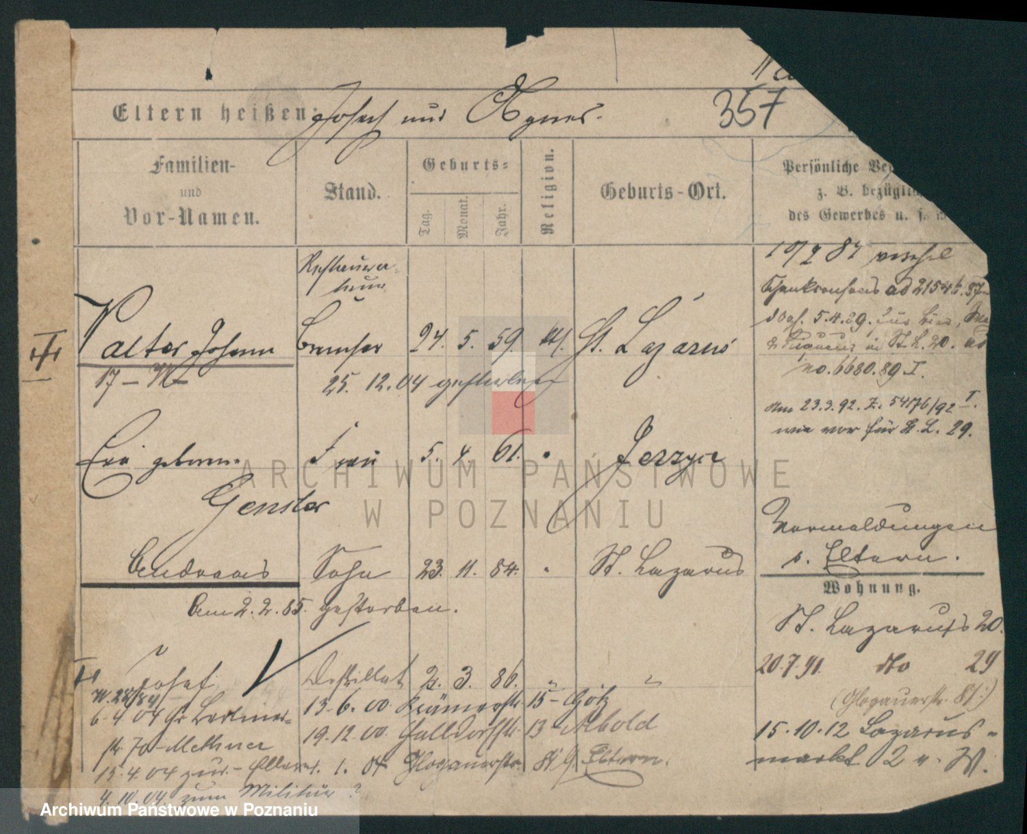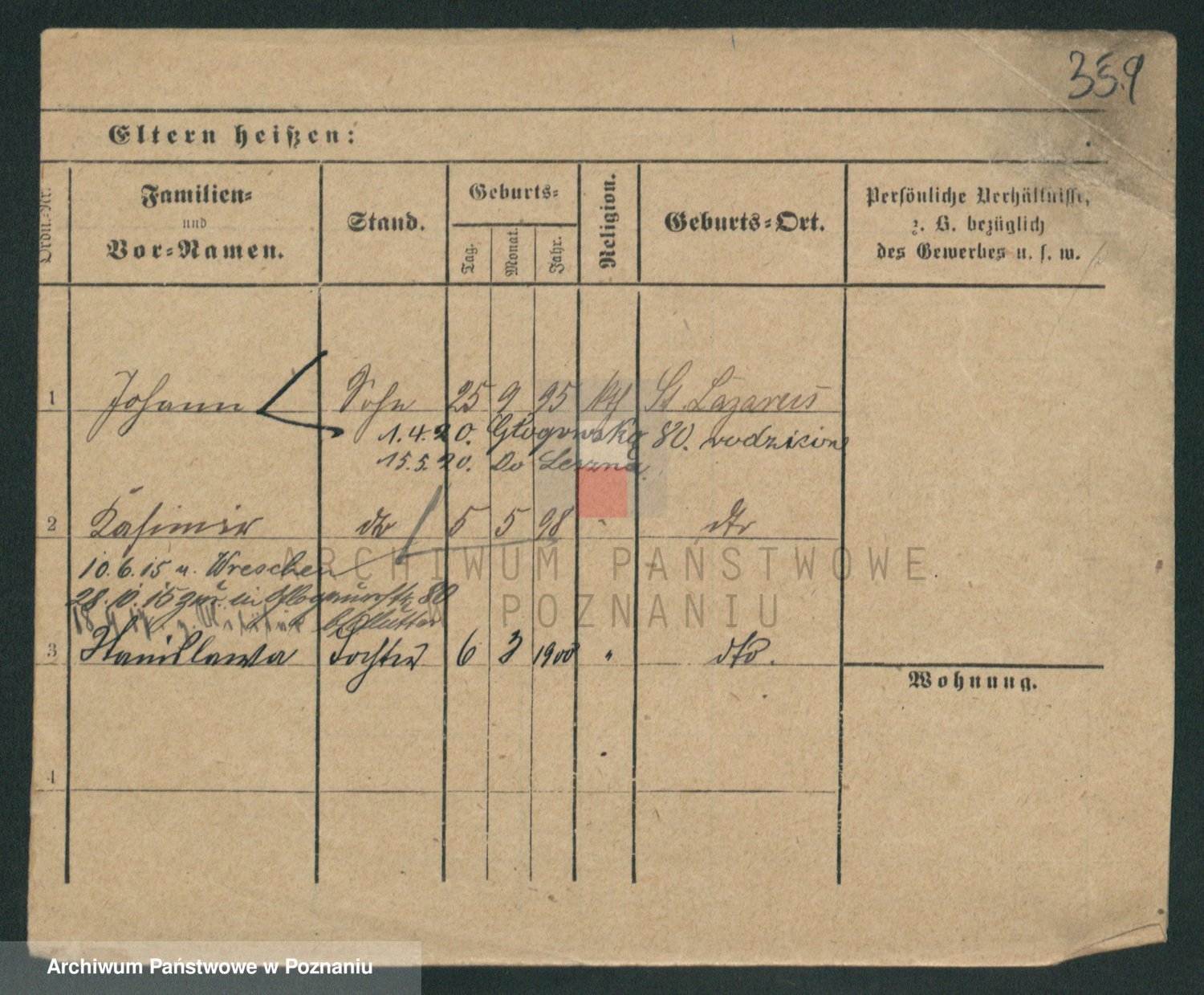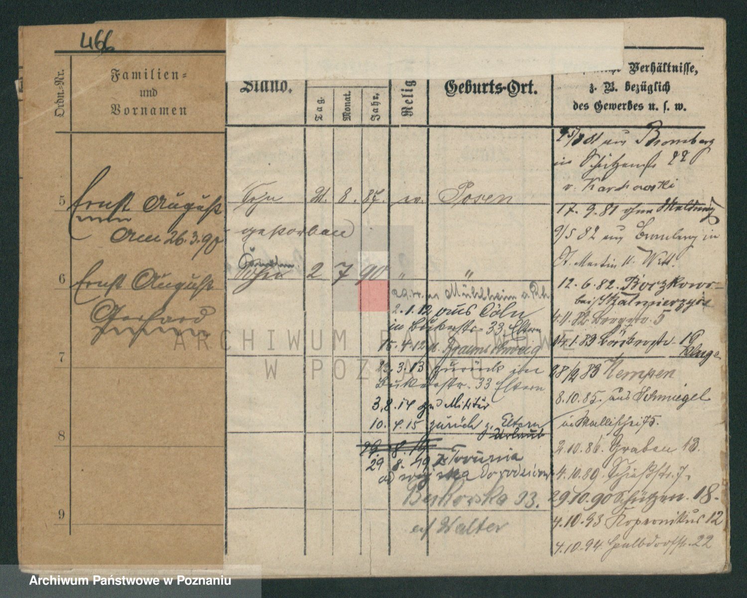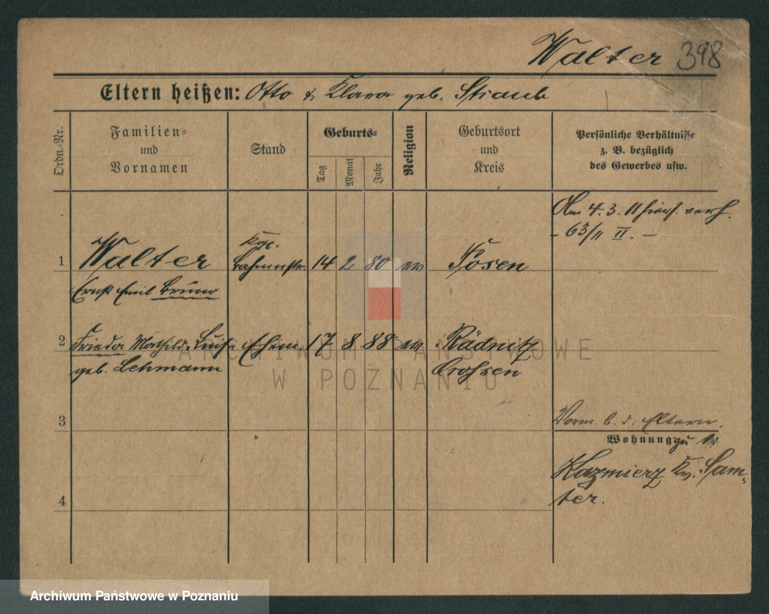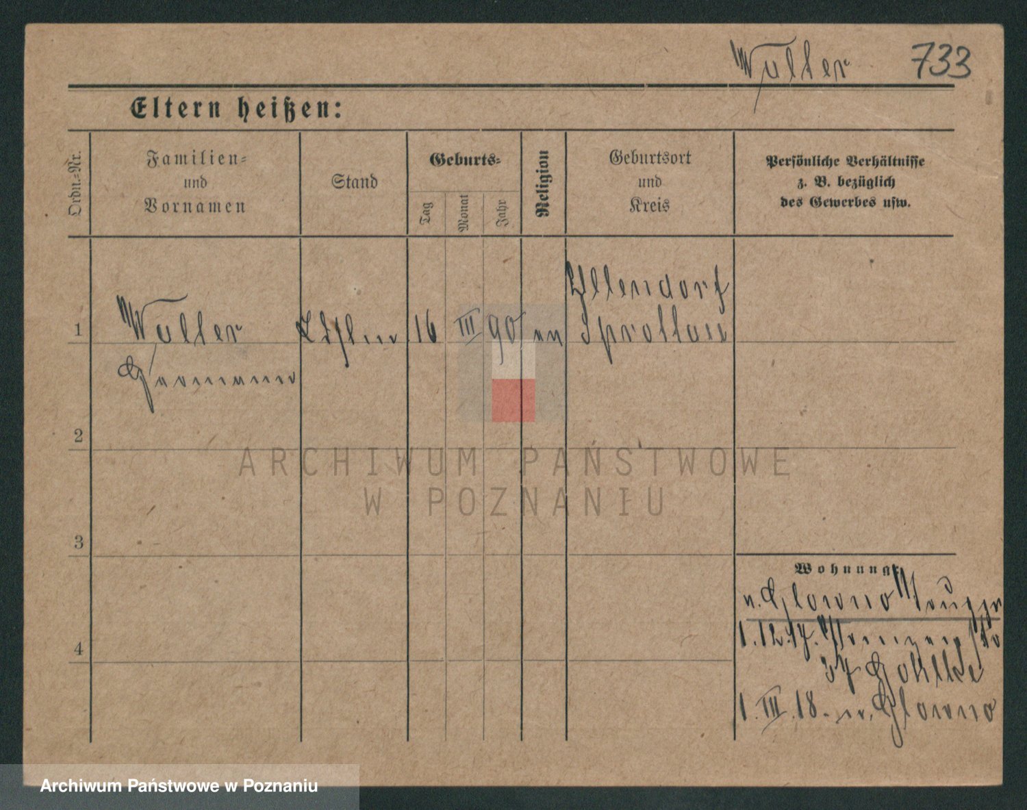 Podgląd karty osobowej dostępny jest po kliknięciu na nazwisko lub ikonkę karty. Można dokonywać powiększenia (ikony na górze) lub przechodzić między kolejnymi skanami (strzałki po bokach).