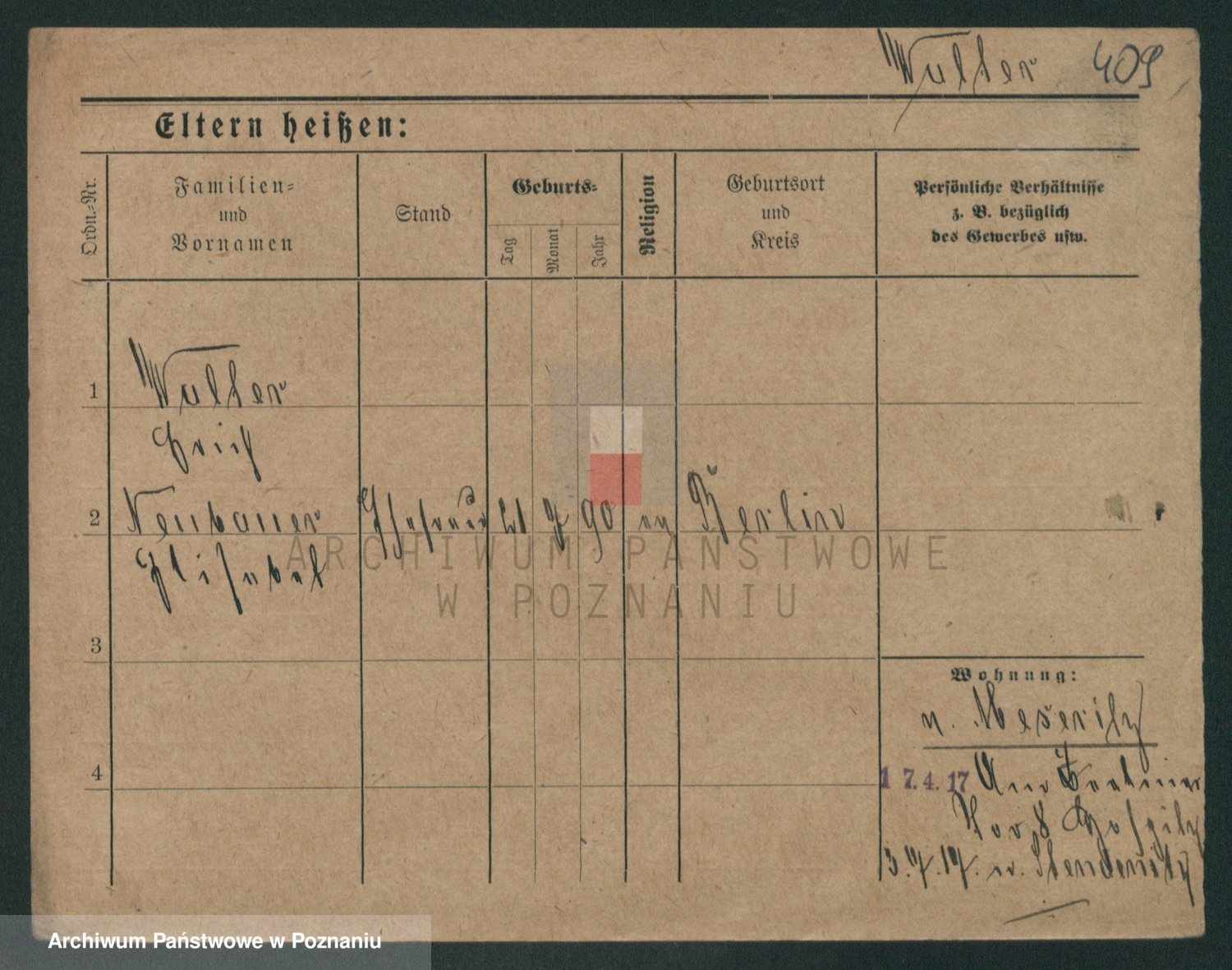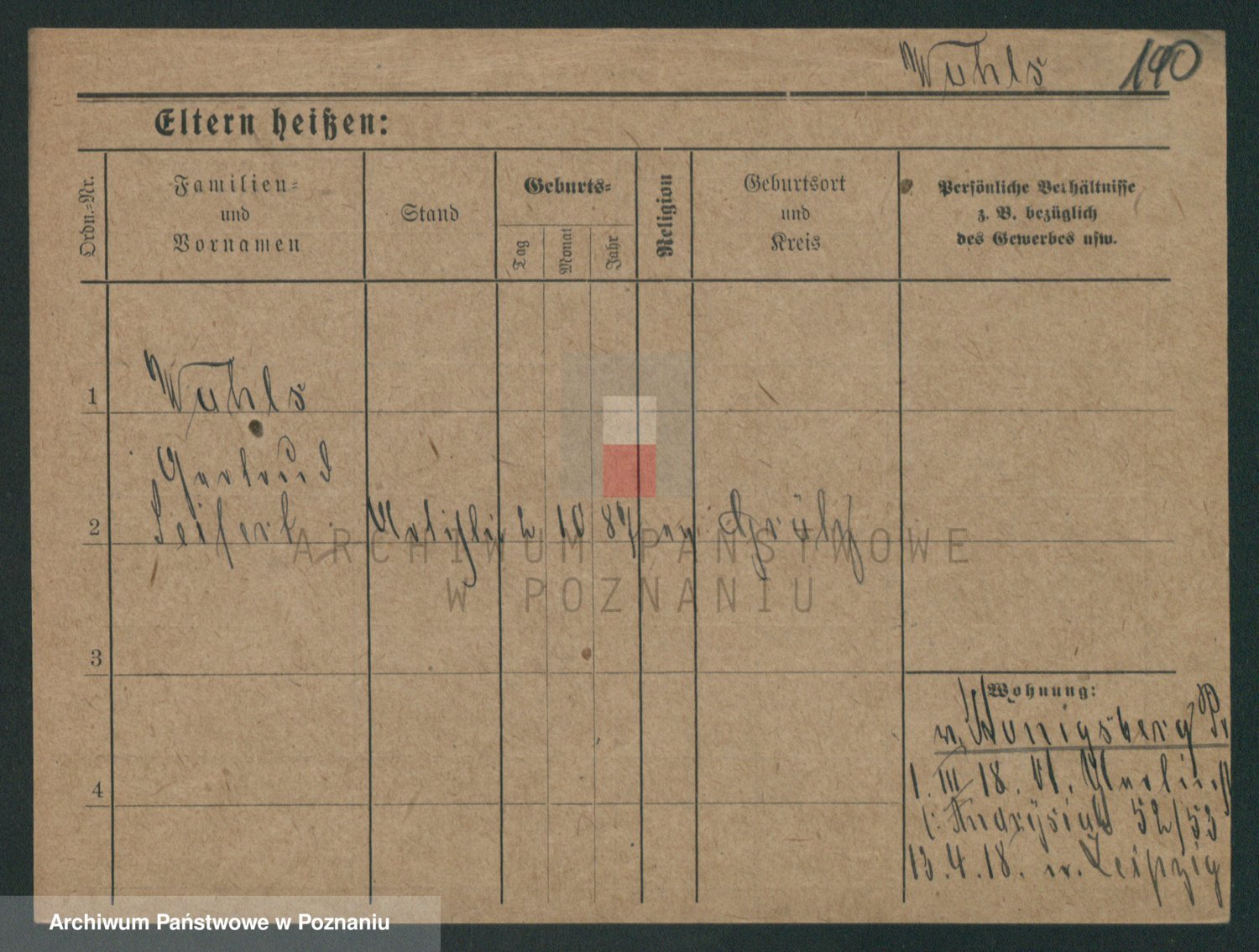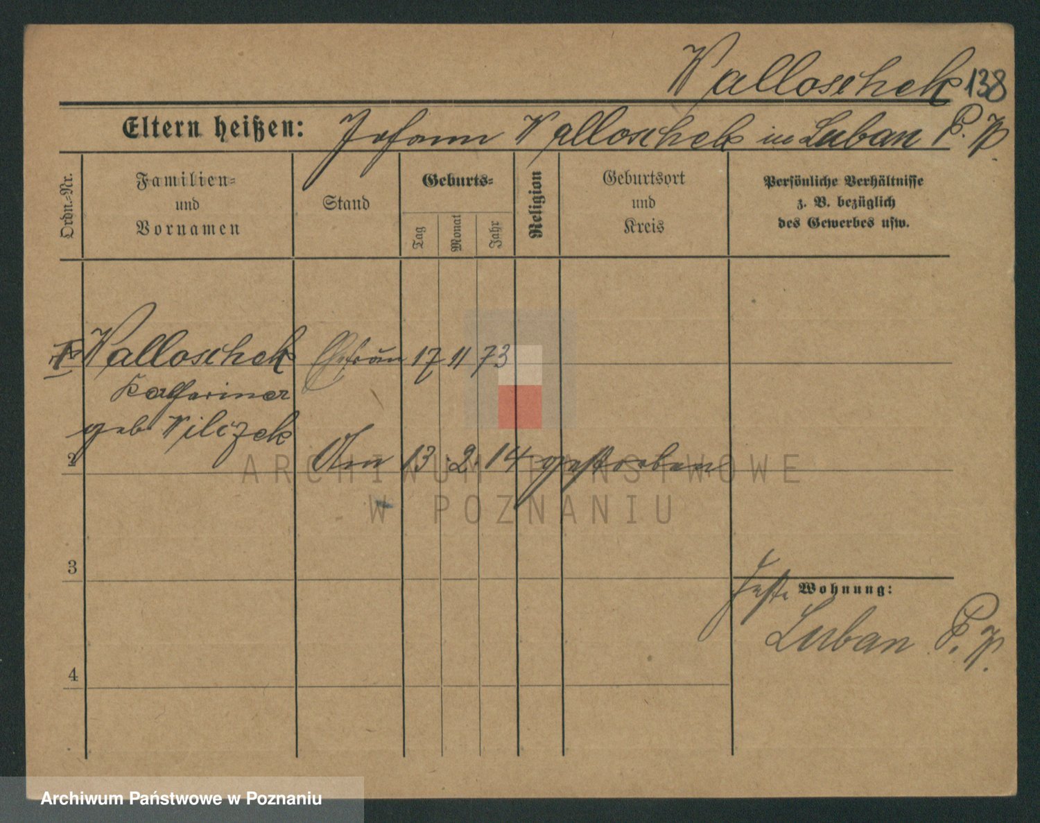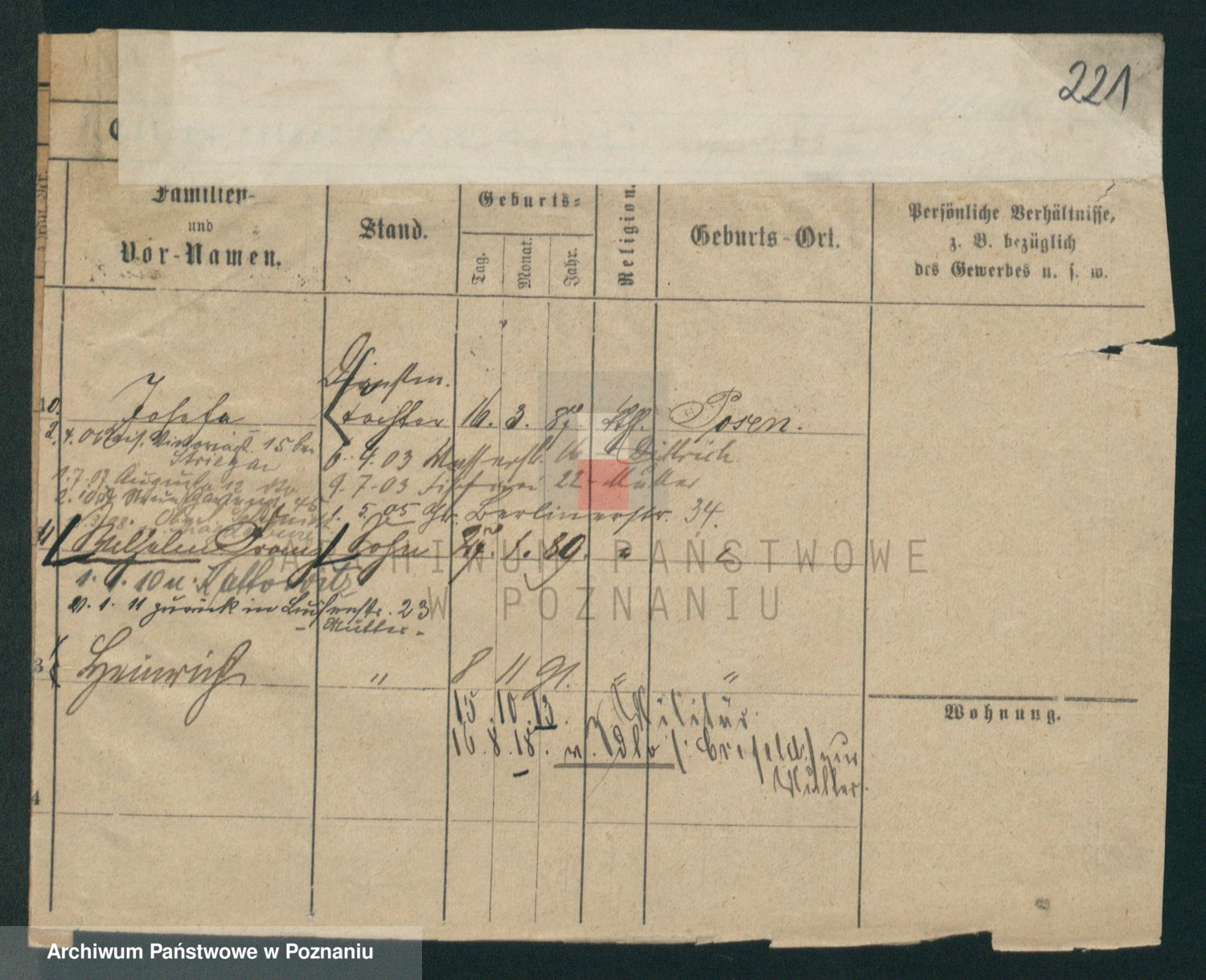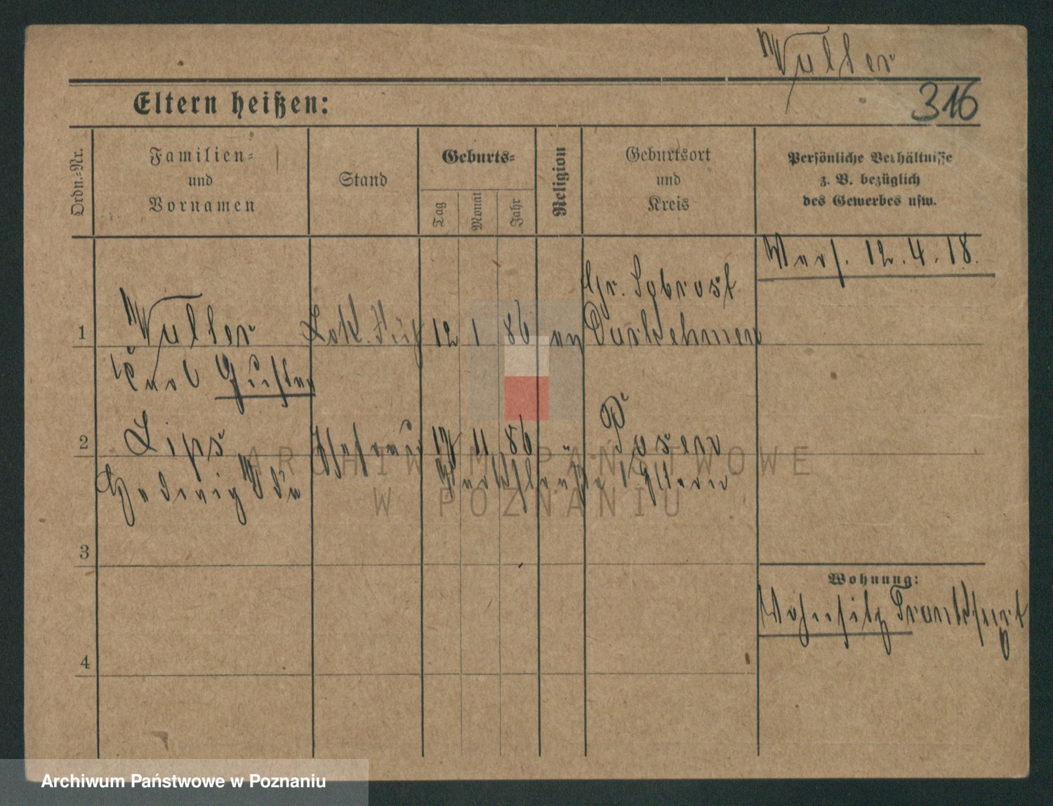 Podgląd karty osobowej dostępny jest po kliknięciu na nazwisko lub ikonkę karty. Można dokonywać powiększenia (ikony na górze) lub przechodzić między kolejnymi skanami (strzałki po bokach).