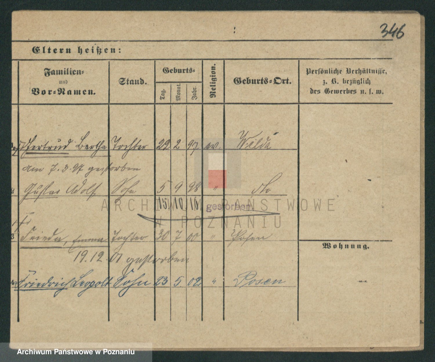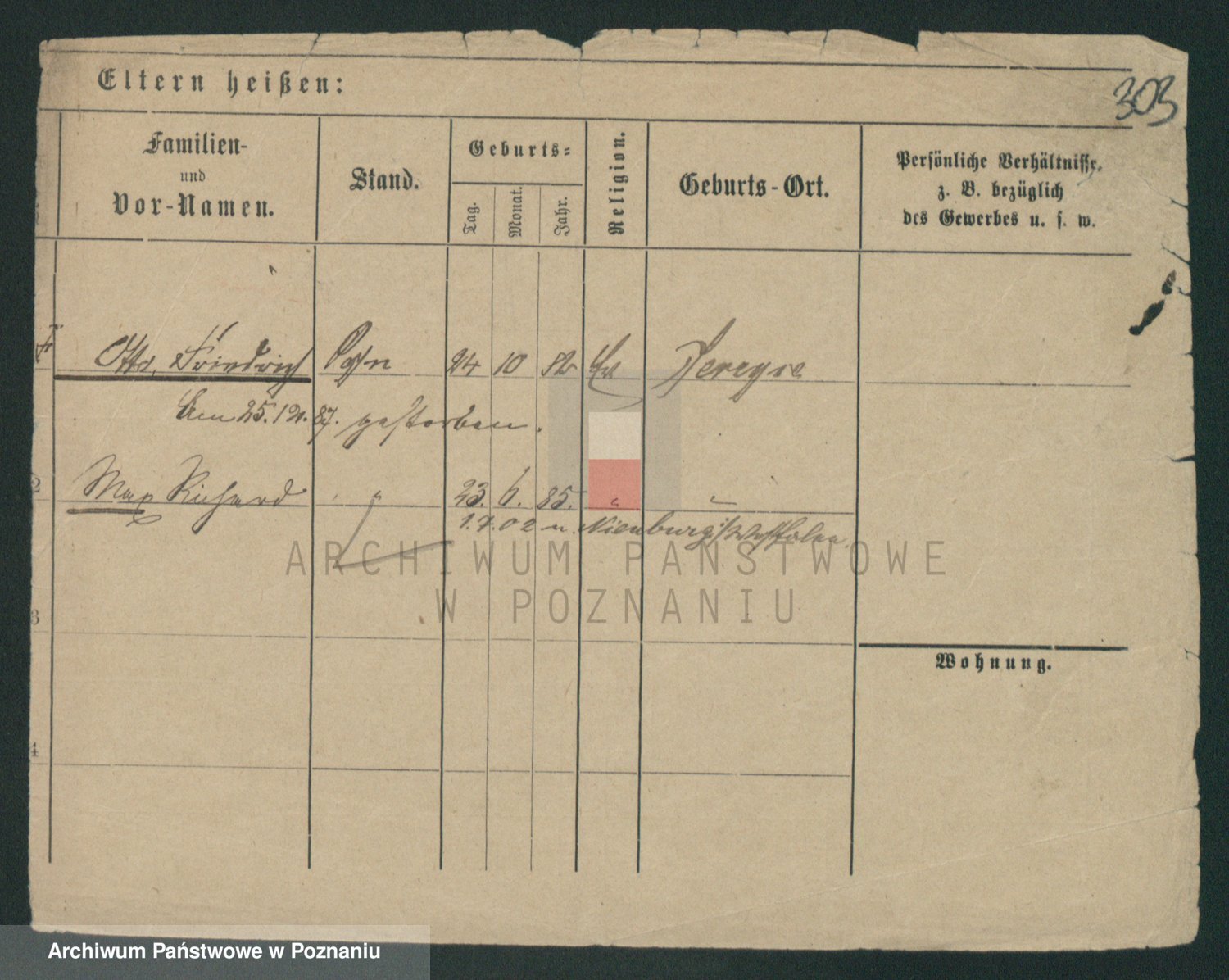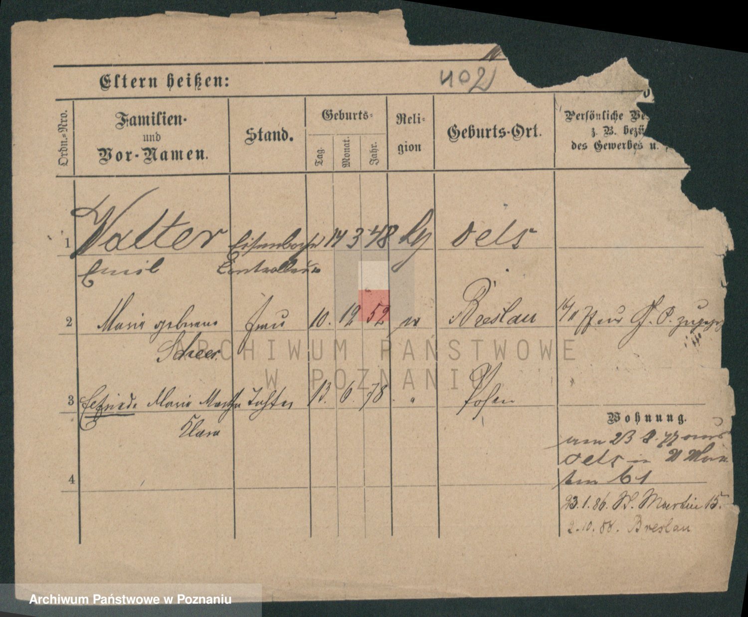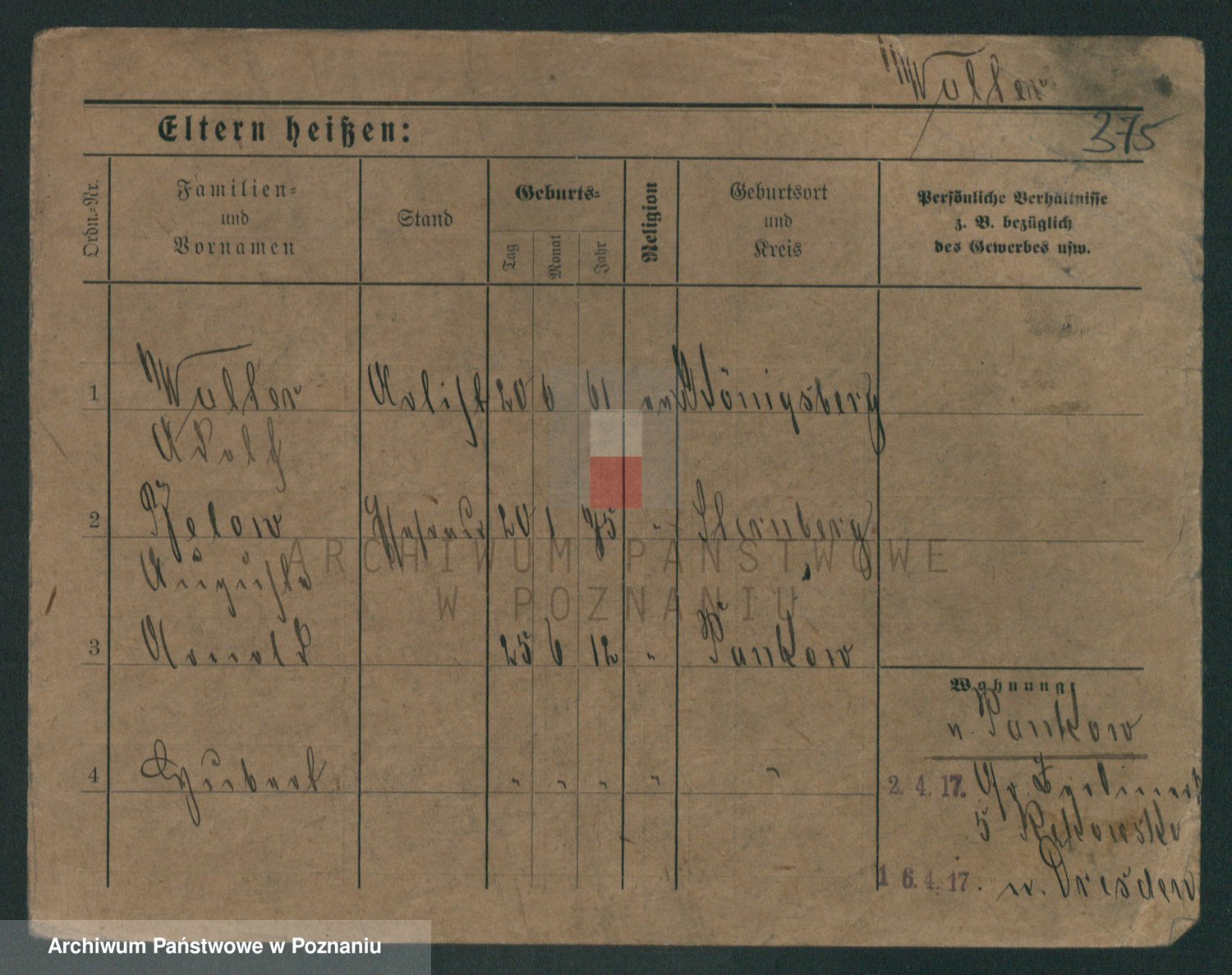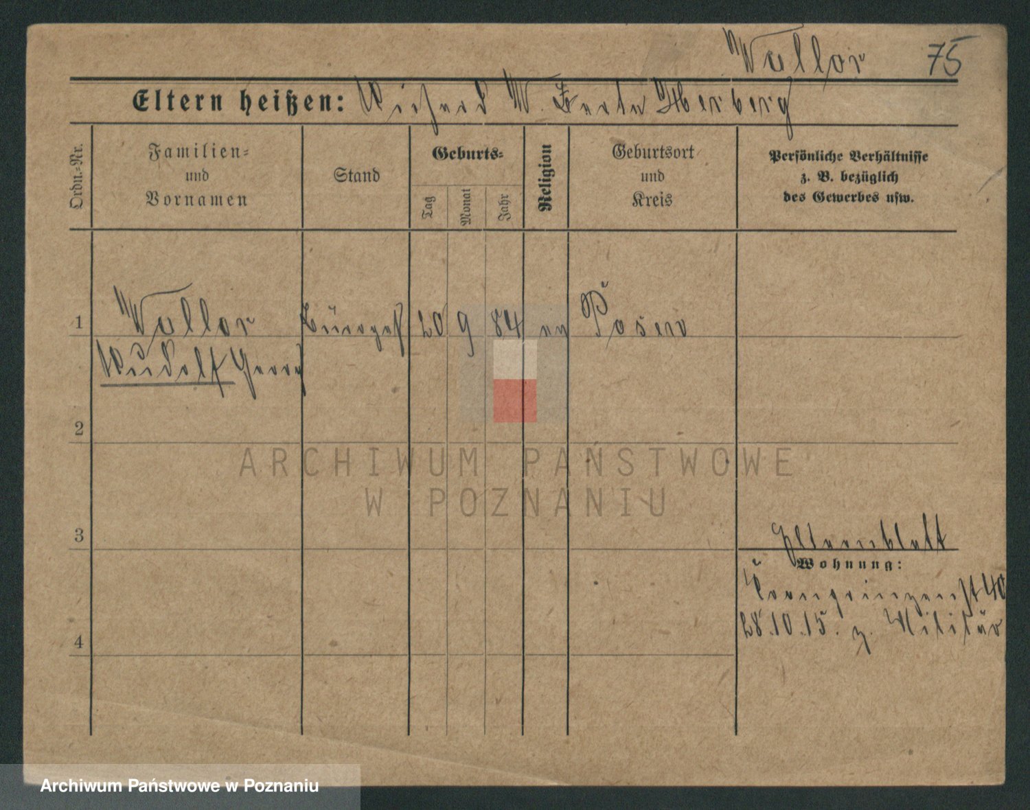Podgląd karty osobowej dostępny jest po kliknięciu na nazwisko lub ikonkę karty. Można dokonywać powiększenia (ikony na górze) lub przechodzić między kolejnymi skanami (strzałki po bokach).