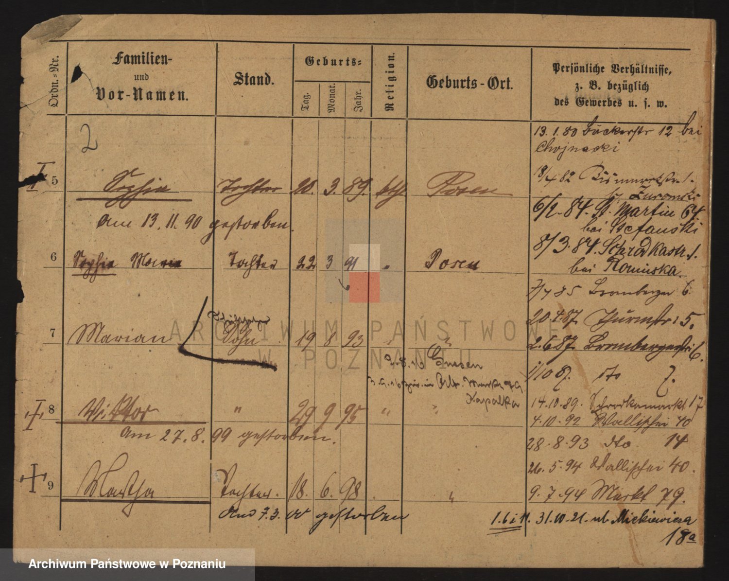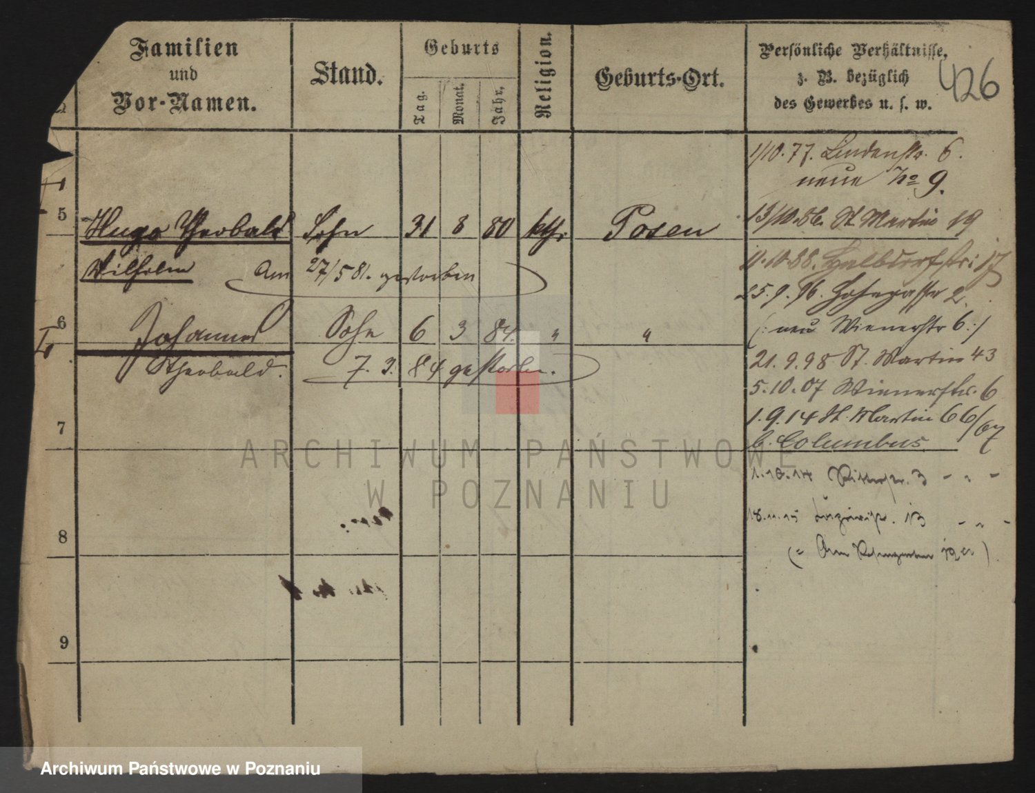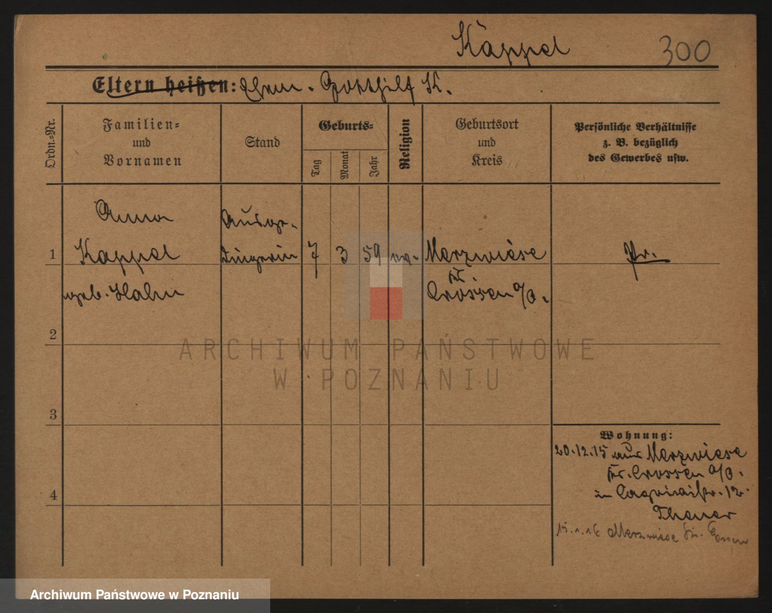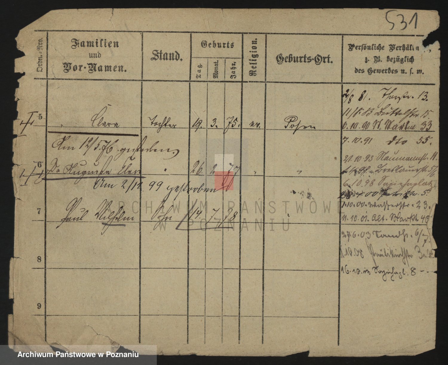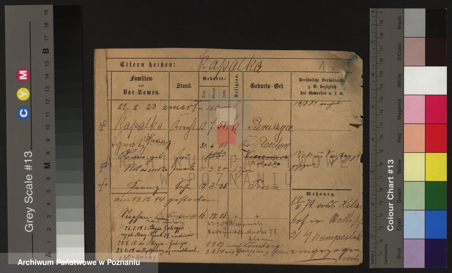 Durch Anklicken eines Namens oder Kartensymbols gelangen Sie zum Vorschau einer Personalkarte. Sie können die Ansicht vergrößern (Symbole am oberen Rand) oder zwischen den Scans wechseln (Pfeile an den Seiten).
