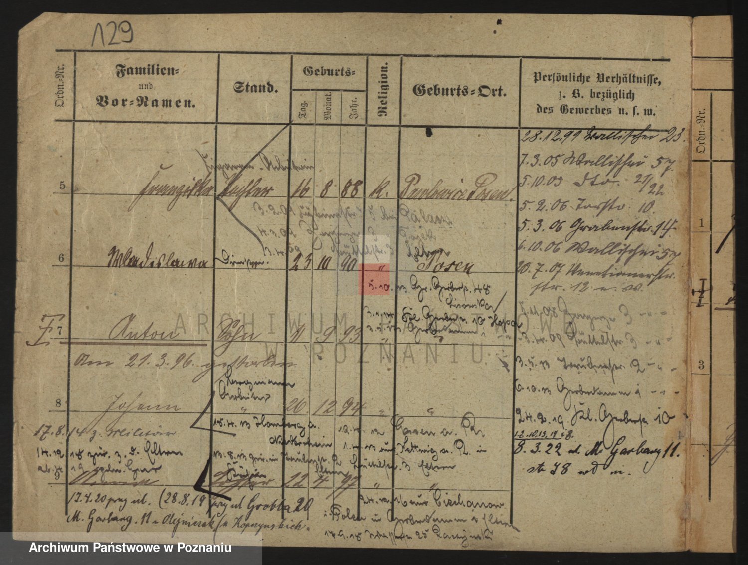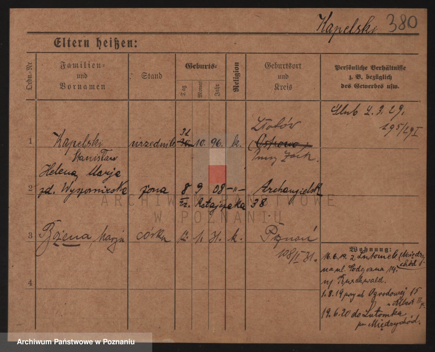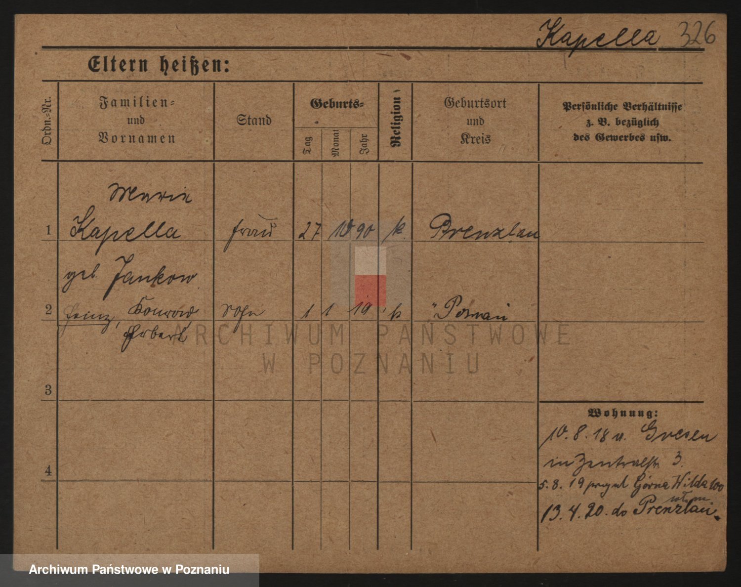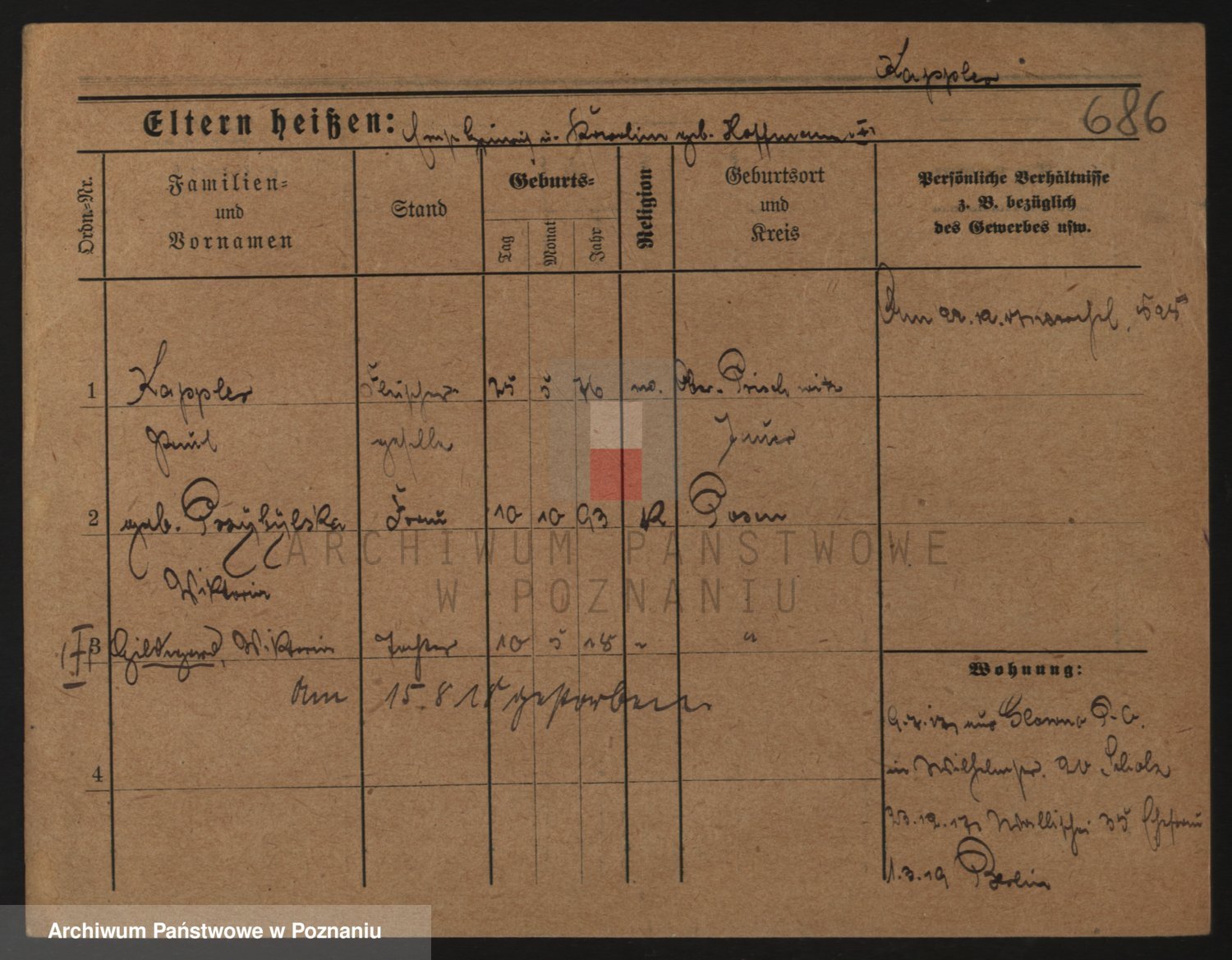 Durch Anklicken eines Namens oder Kartensymbols gelangen Sie zum Vorschau einer Personalkarte. Sie können die Ansicht vergrößern (Symbole am oberen Rand) oder zwischen den Scans wechseln (Pfeile an den Seiten).