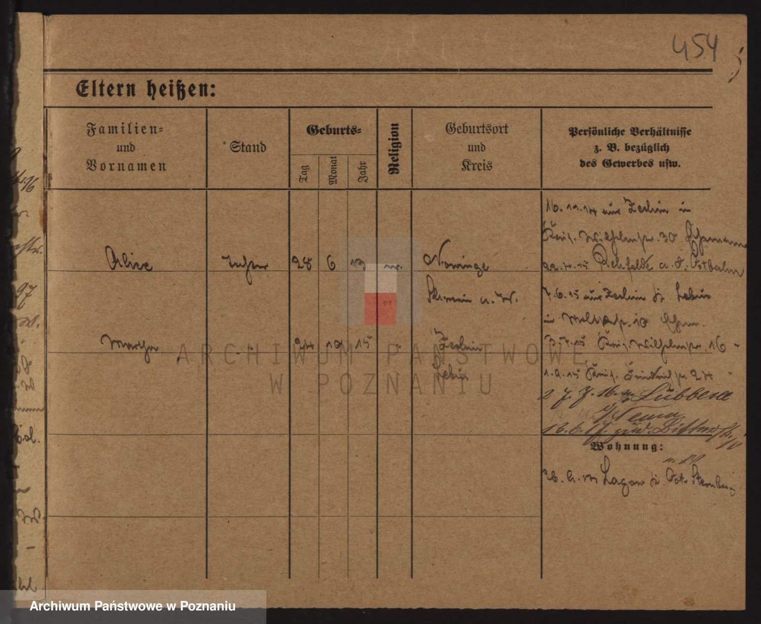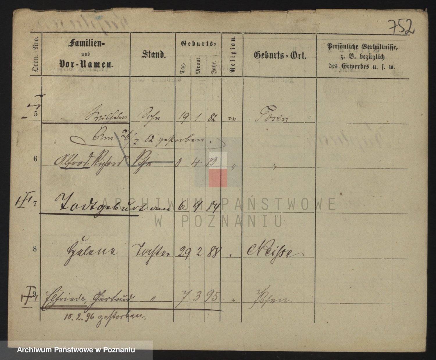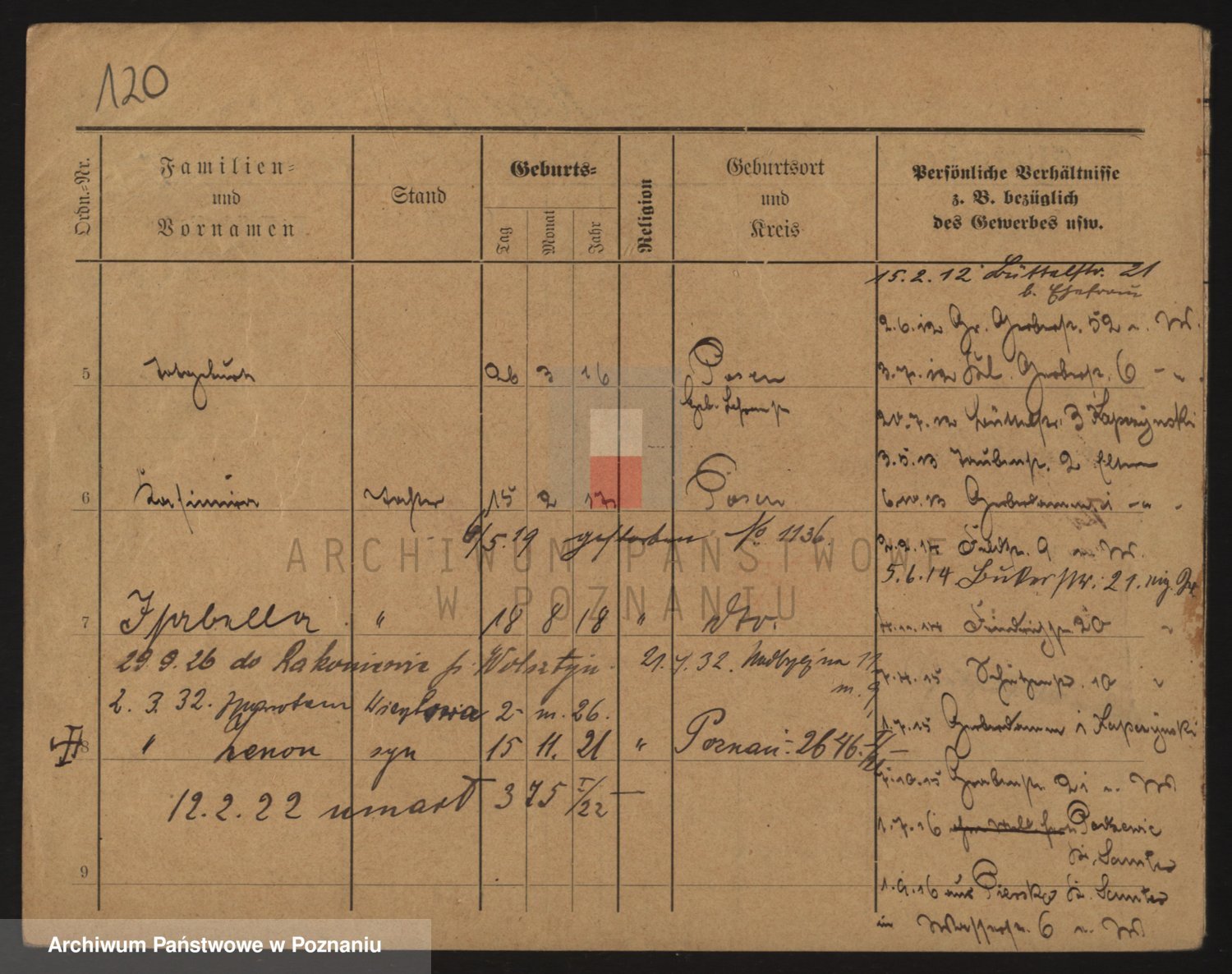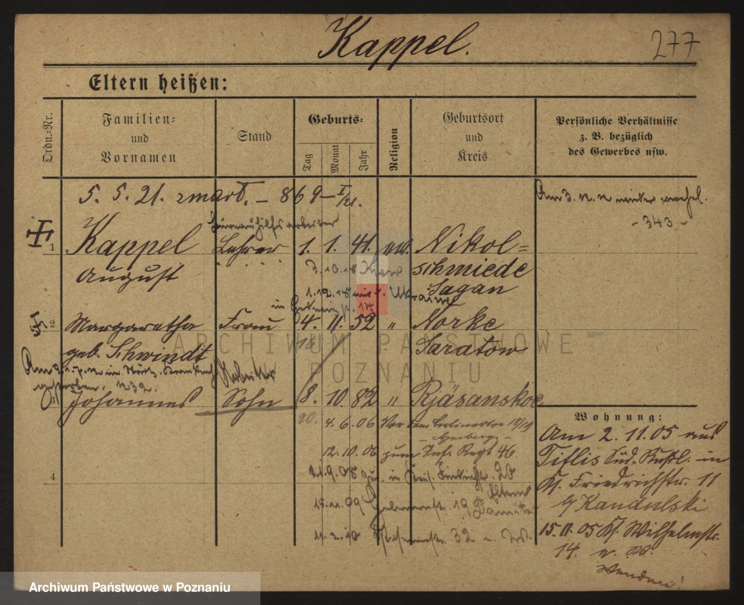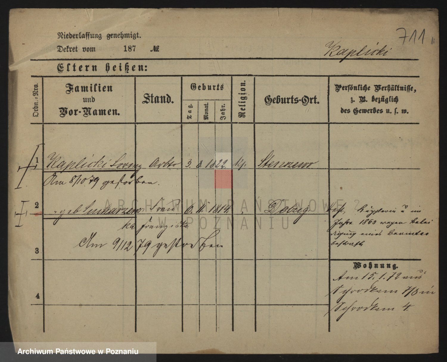 Durch Anklicken eines Namens oder Kartensymbols gelangen Sie zum Vorschau einer Personalkarte. Sie können die Ansicht vergrößern (Symbole am oberen Rand) oder zwischen den Scans wechseln (Pfeile an den Seiten).
