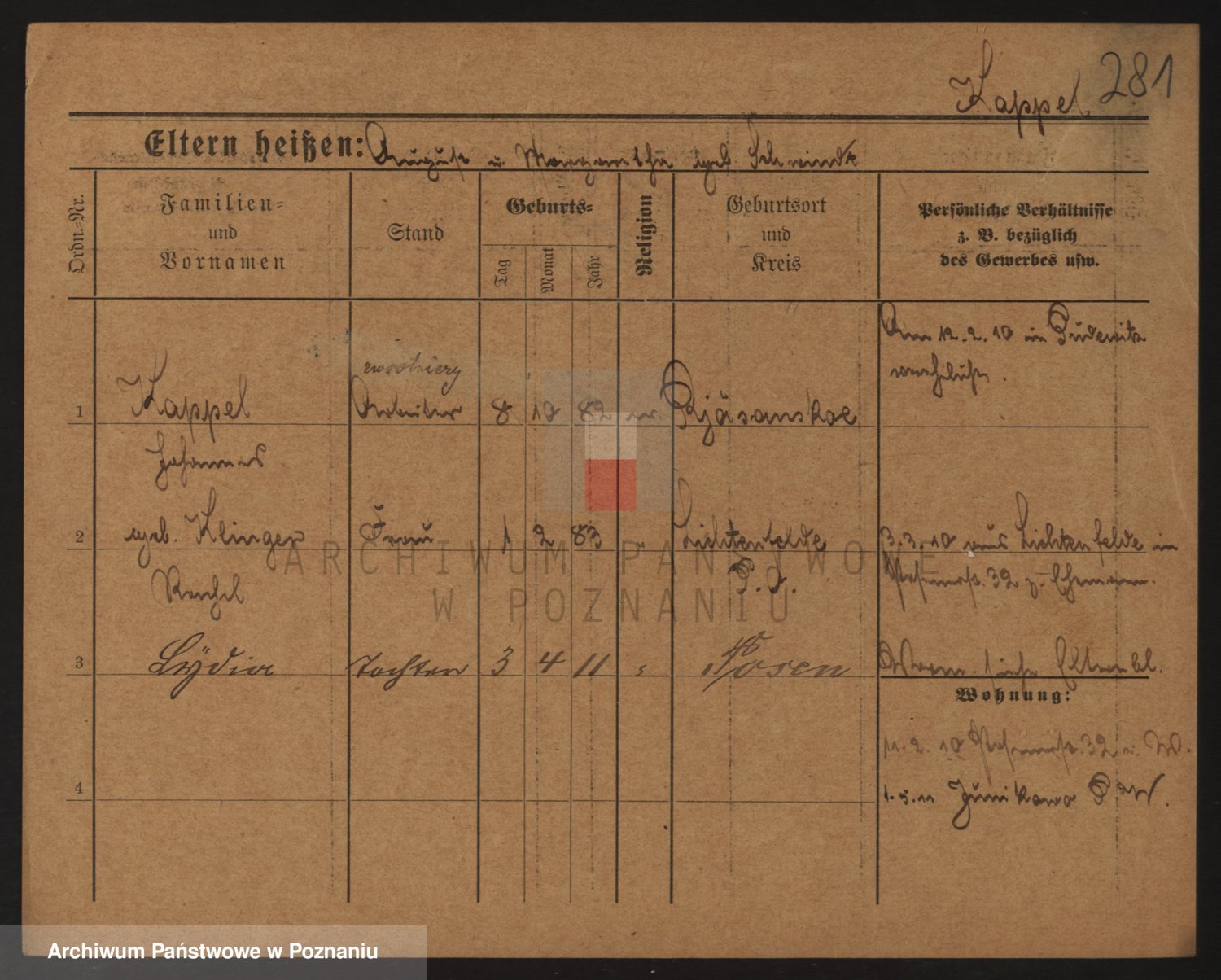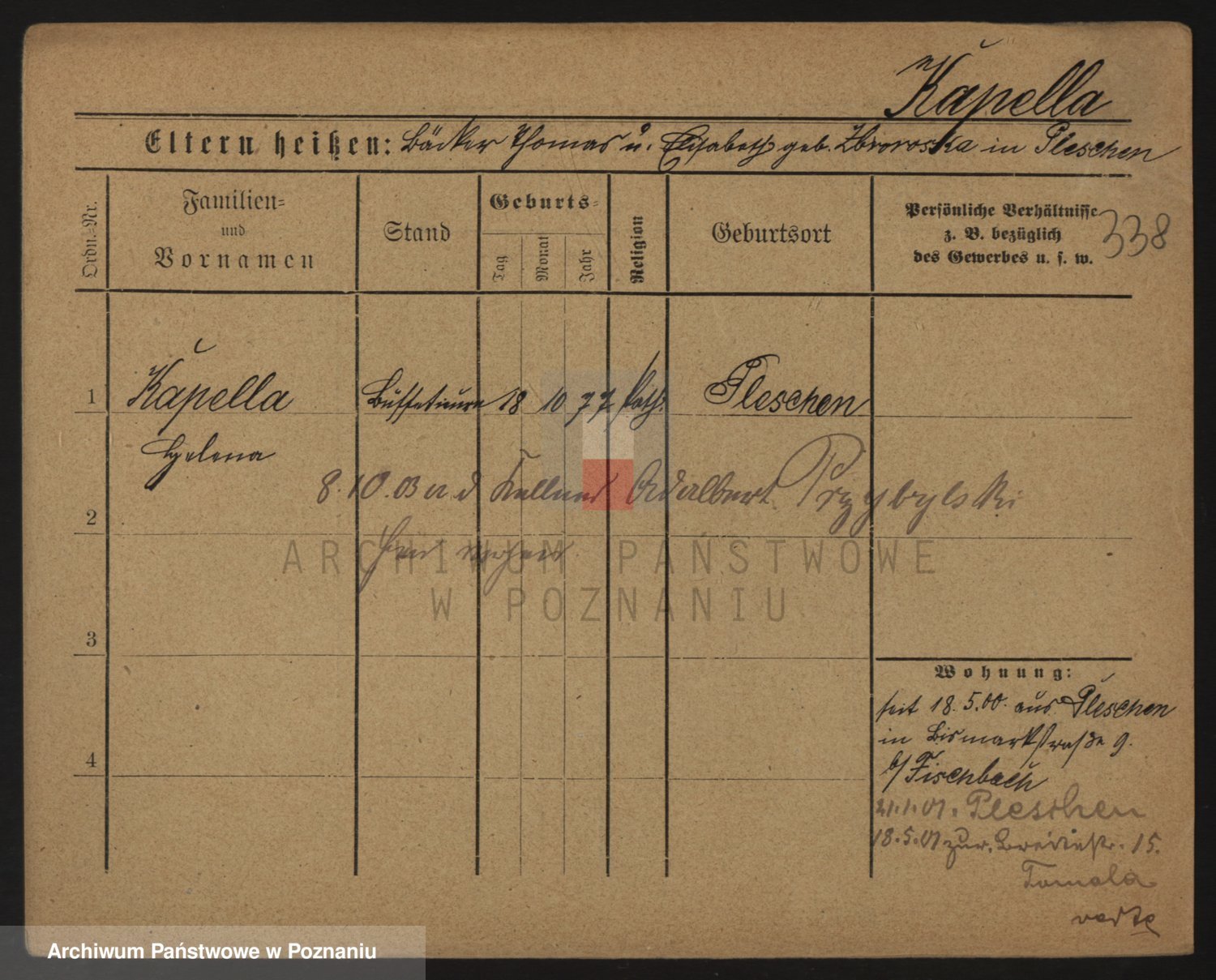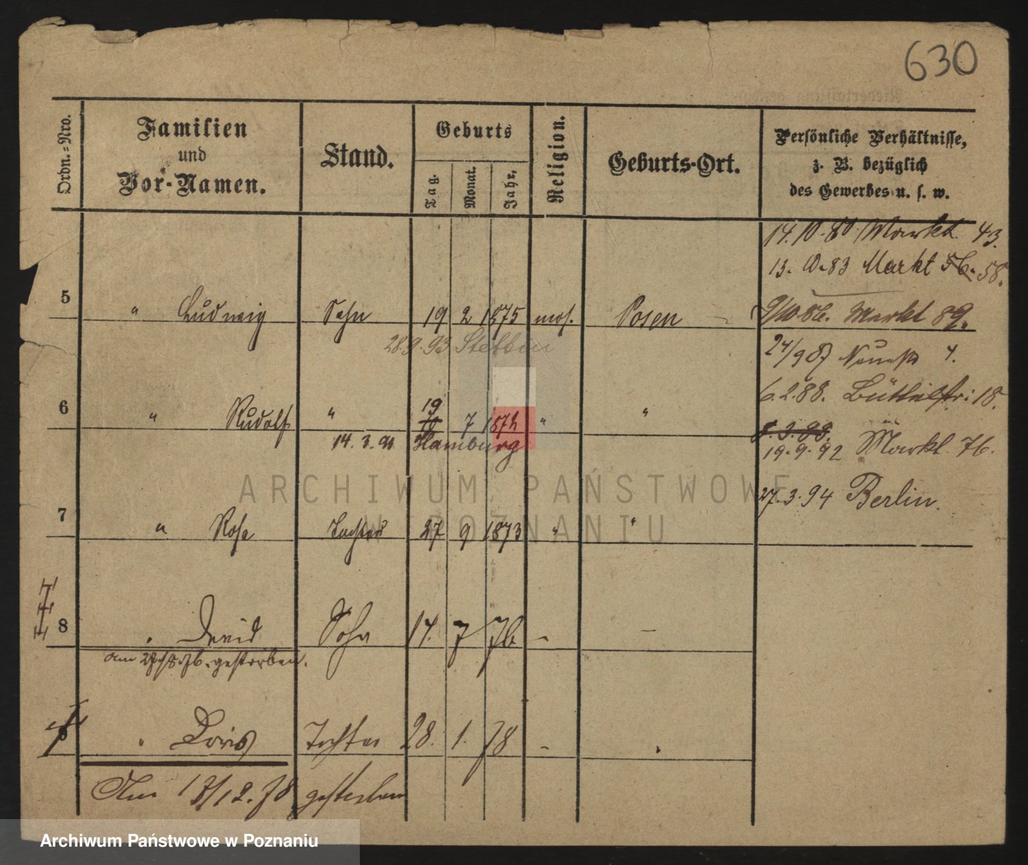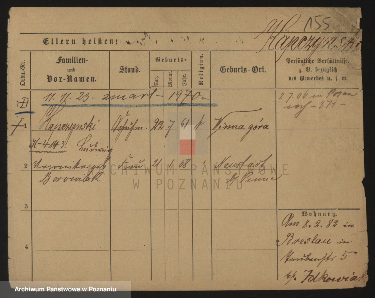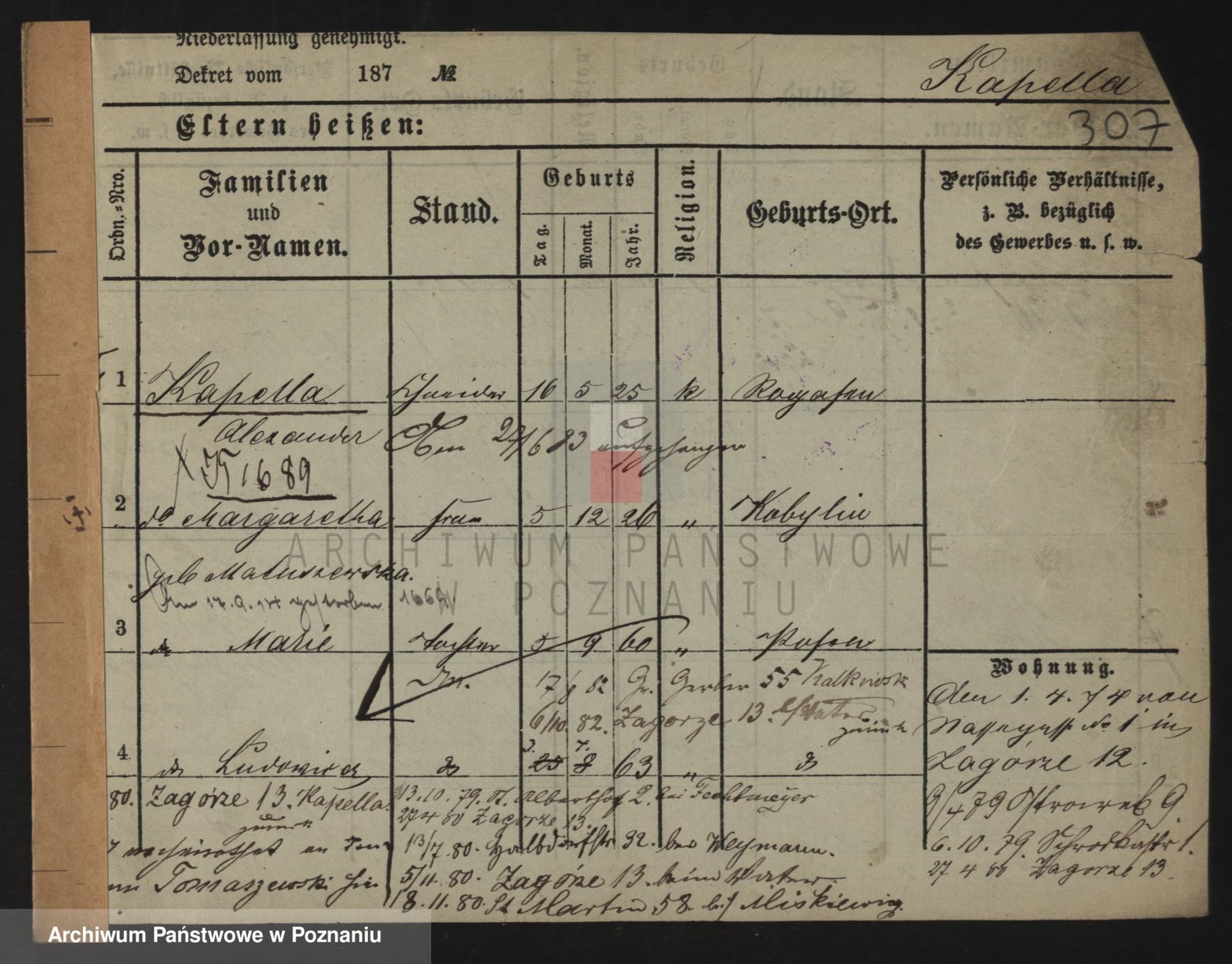 Durch Anklicken eines Namens oder Kartensymbols gelangen Sie zum Vorschau einer Personalkarte. Sie können die Ansicht vergrößern (Symbole am oberen Rand) oder zwischen den Scans wechseln (Pfeile an den Seiten).