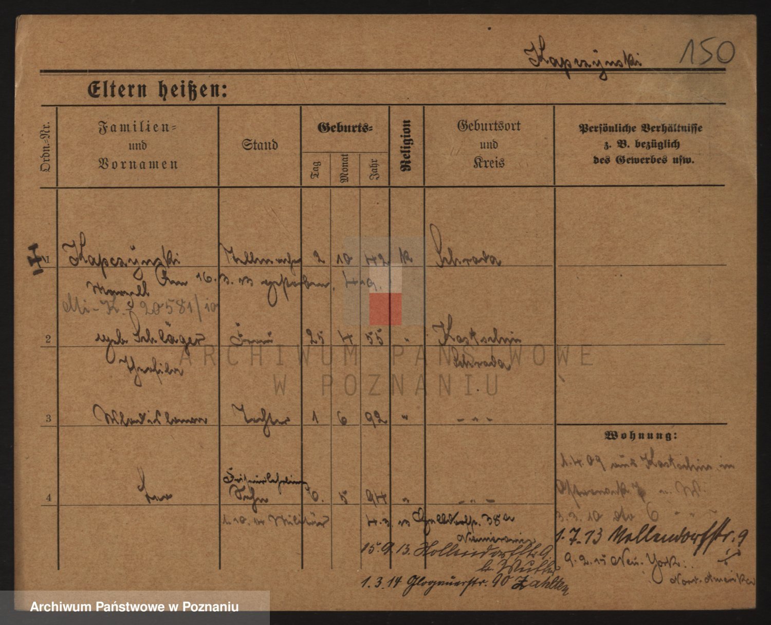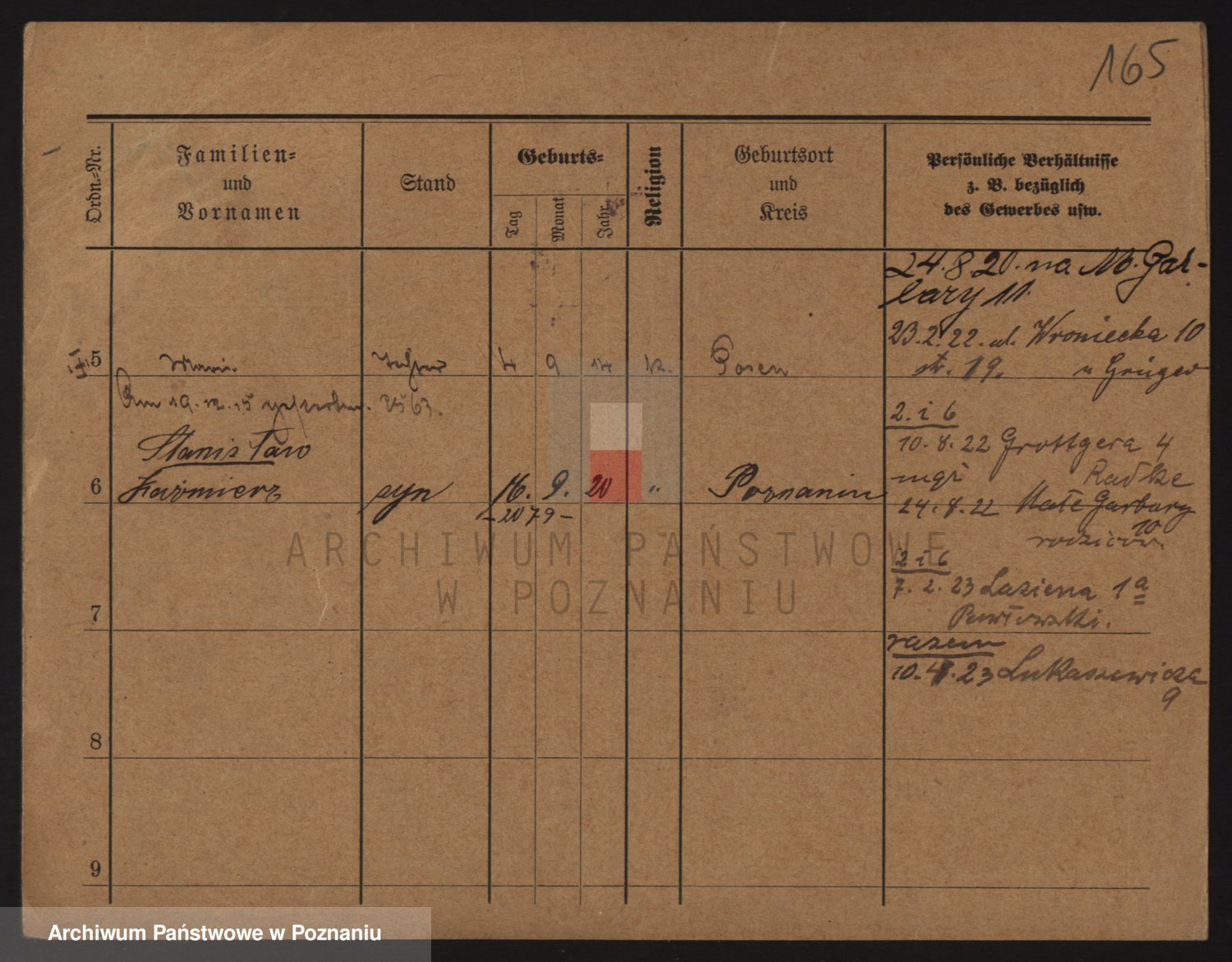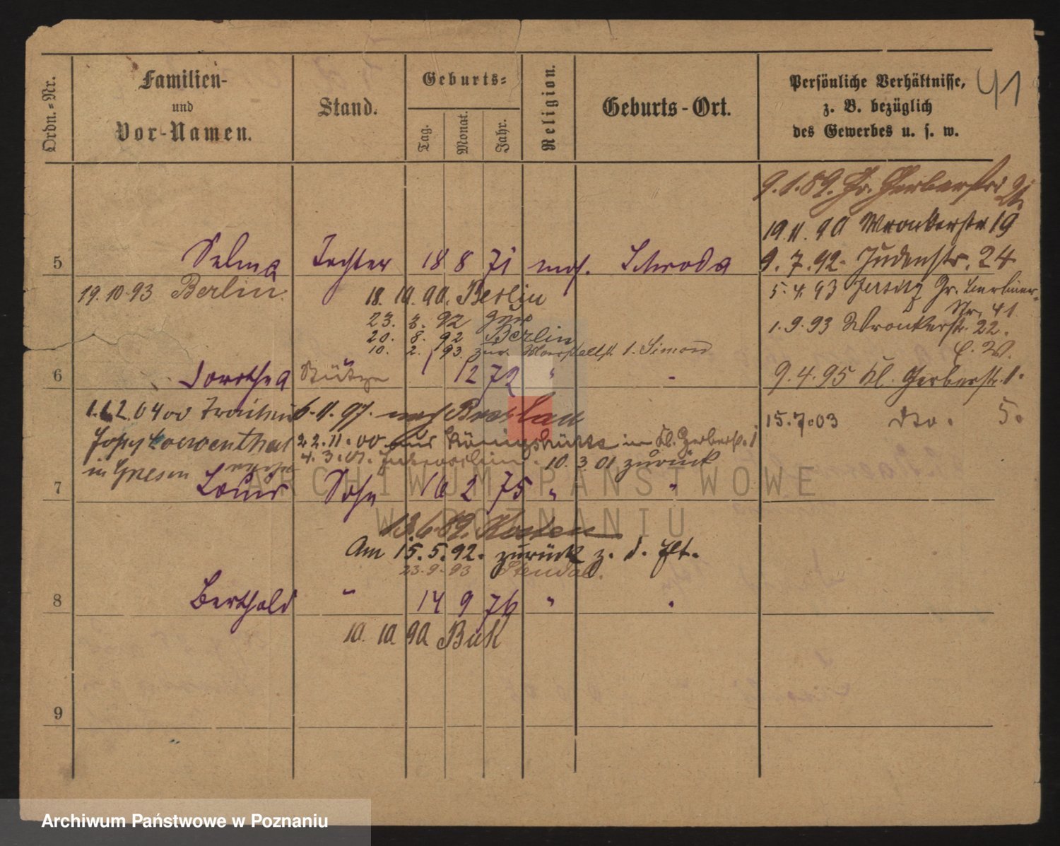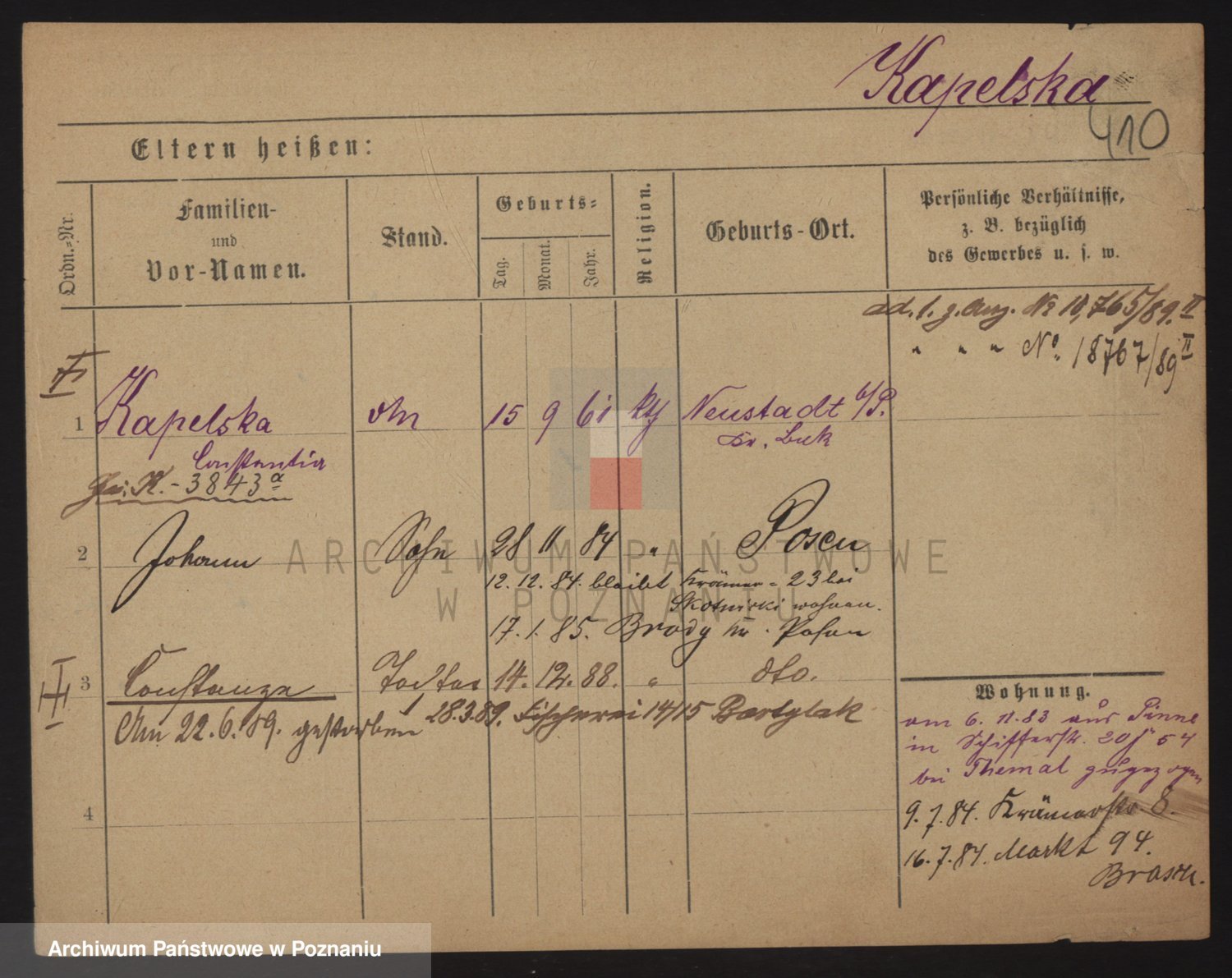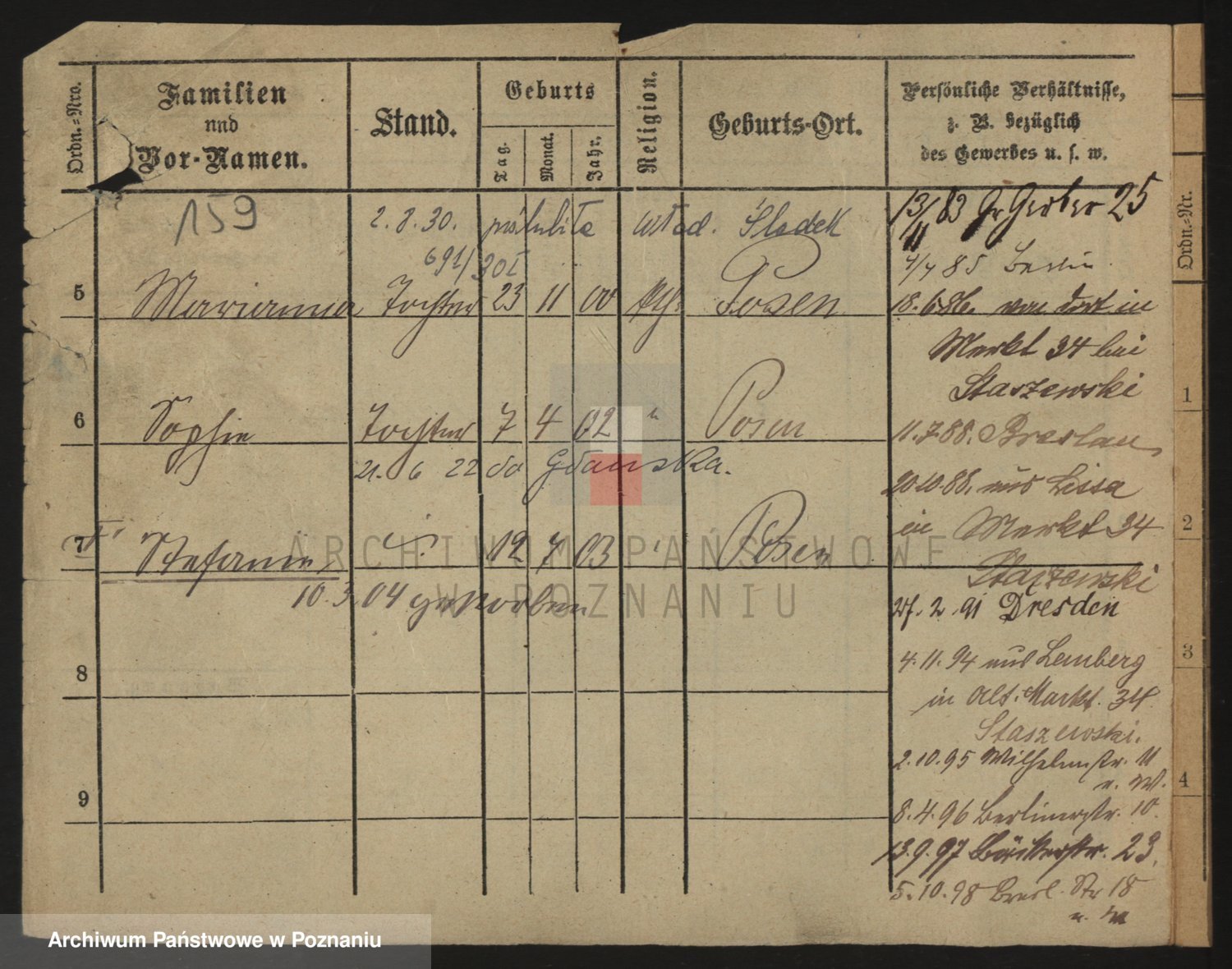 Durch Anklicken eines Namens oder Kartensymbols gelangen Sie zum Vorschau einer Personalkarte. Sie können die Ansicht vergrößern (Symbole am oberen Rand) oder zwischen den Scans wechseln (Pfeile an den Seiten).