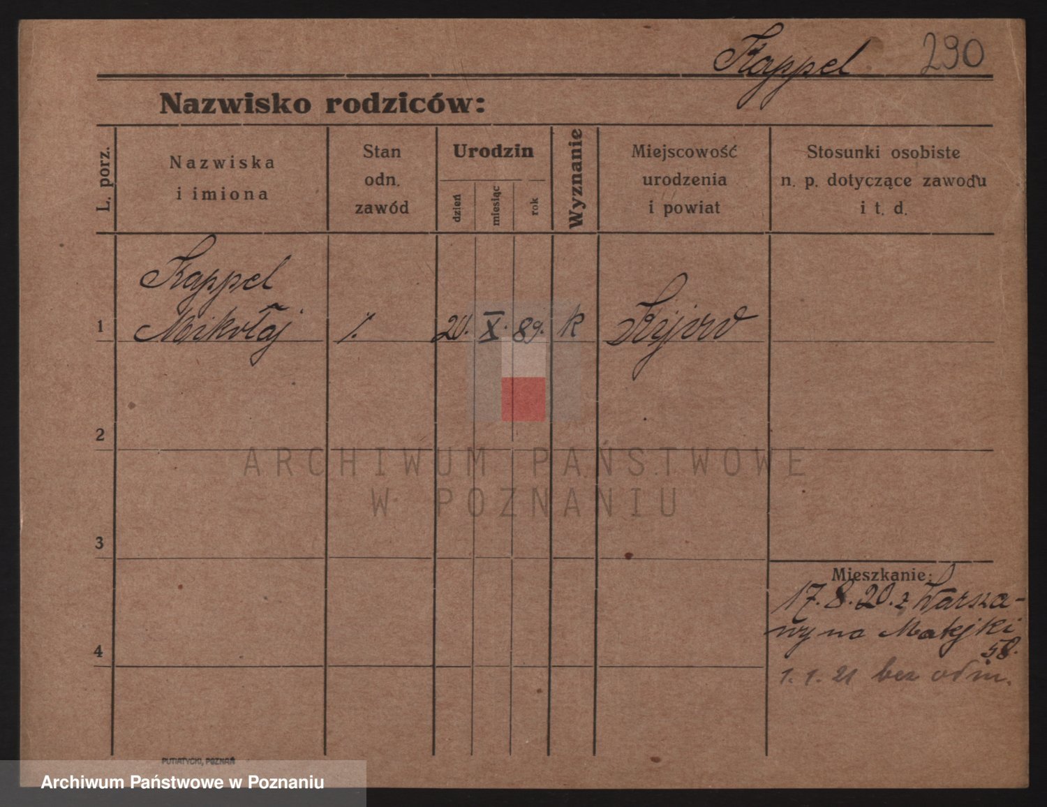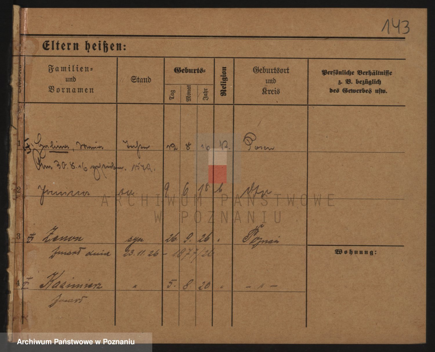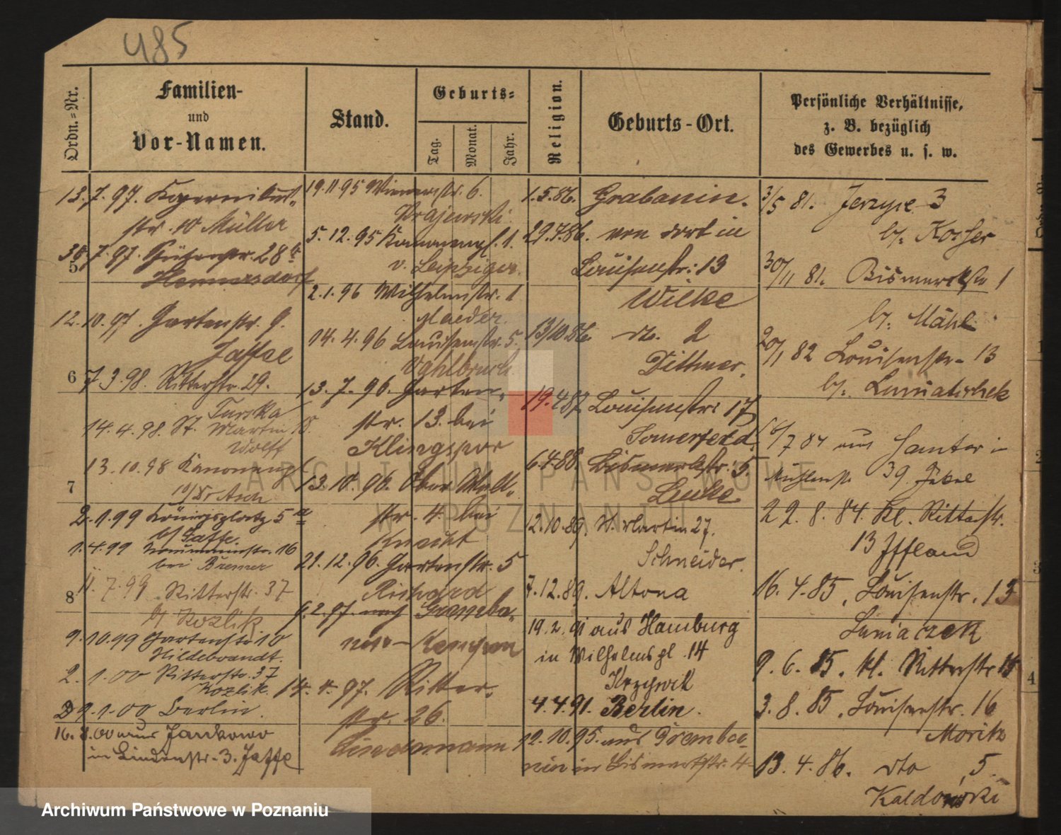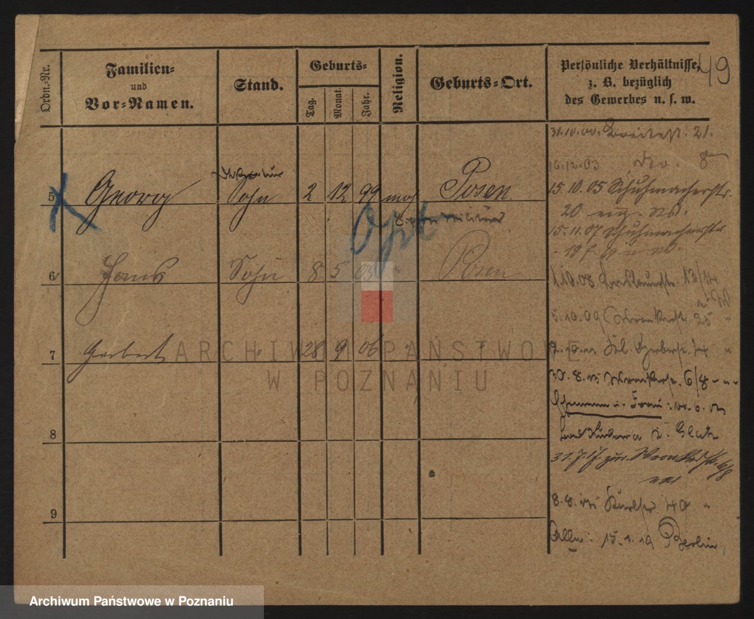 Durch Anklicken eines Namens oder Kartensymbols gelangen Sie zum Vorschau einer Personalkarte. Sie können die Ansicht vergrößern (Symbole am oberen Rand) oder zwischen den Scans wechseln (Pfeile an den Seiten).