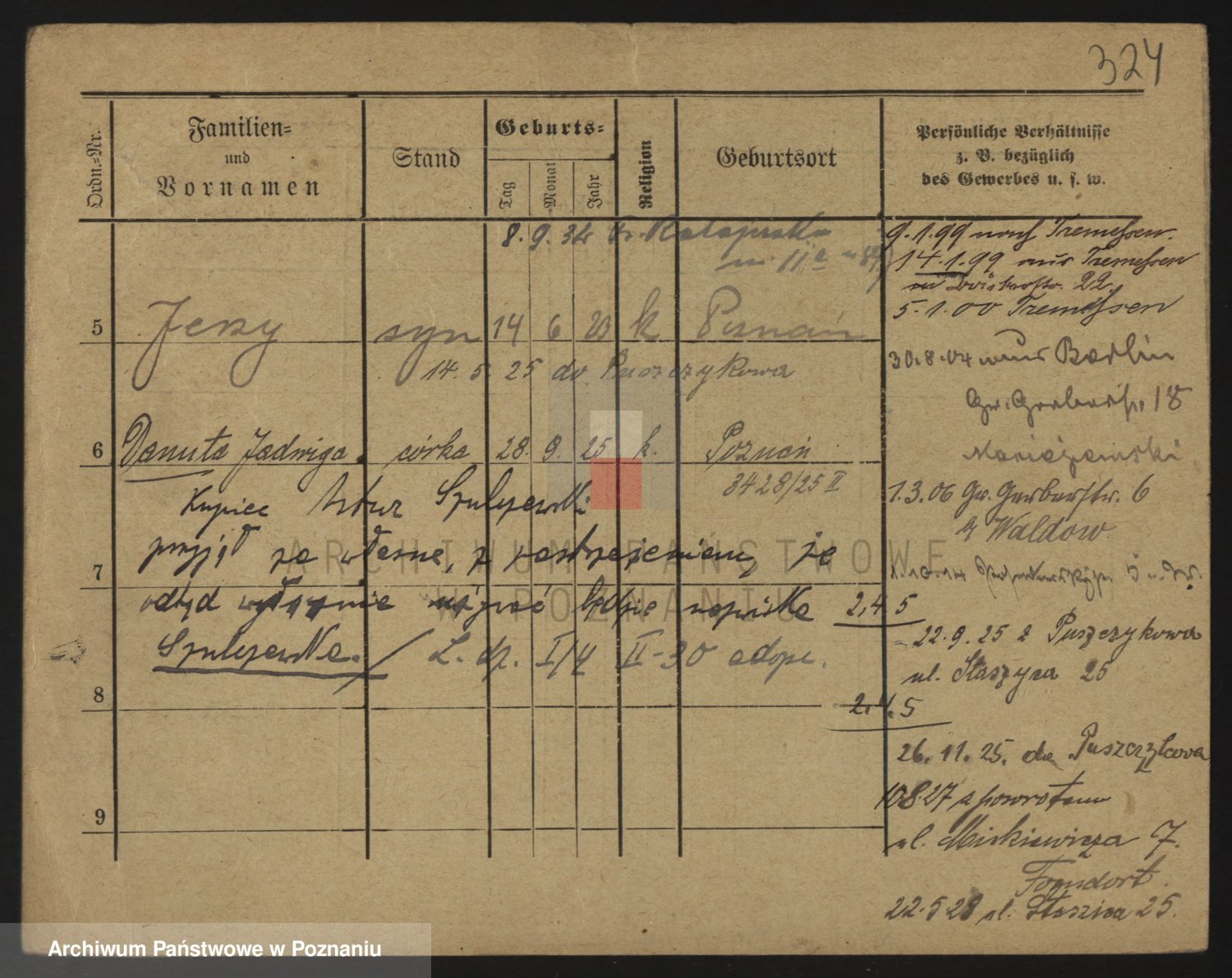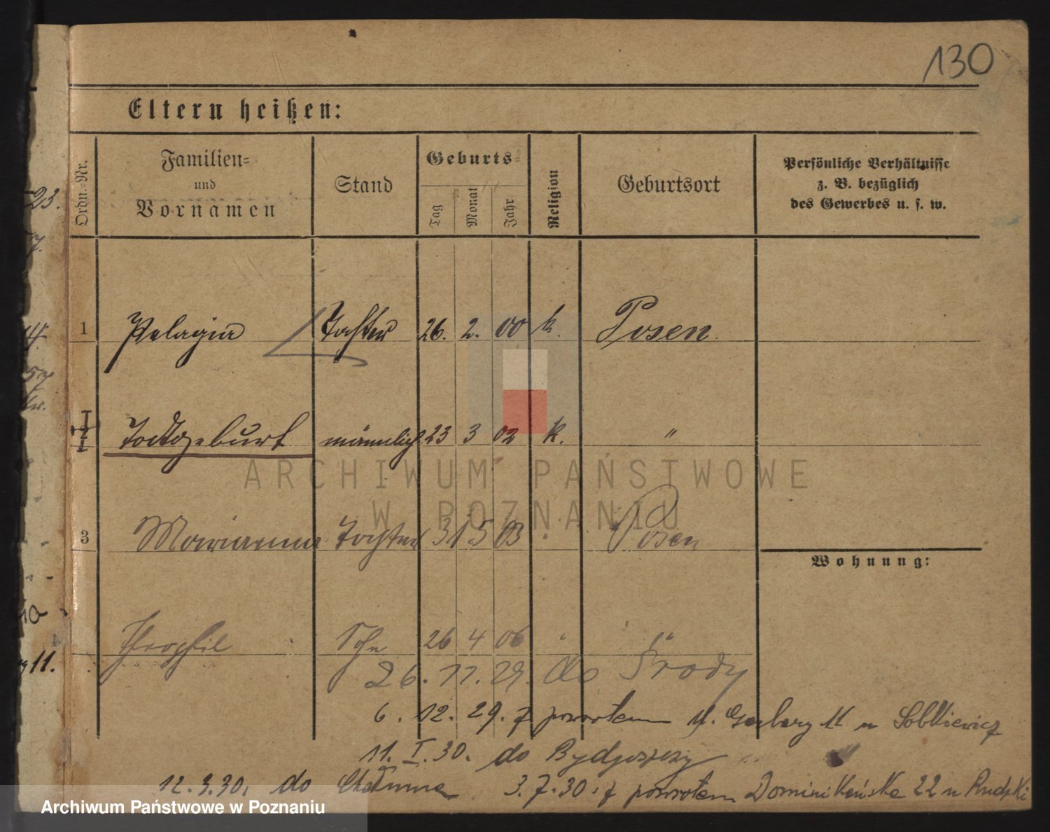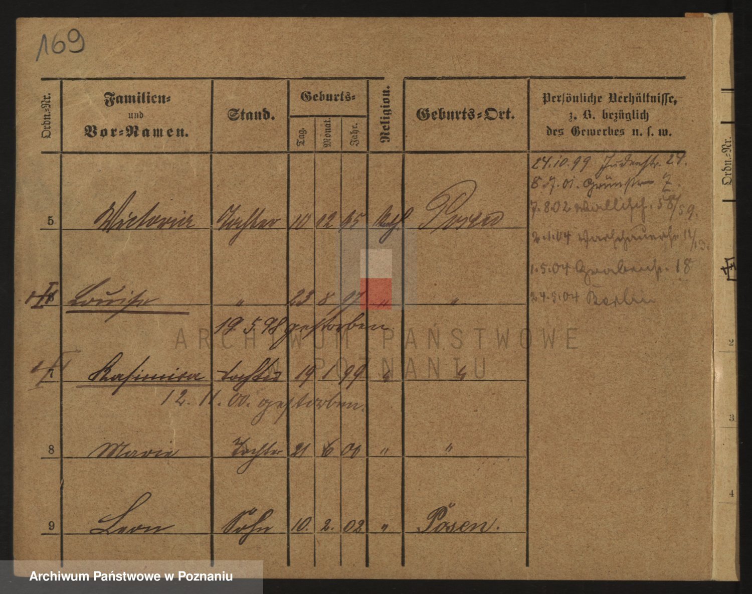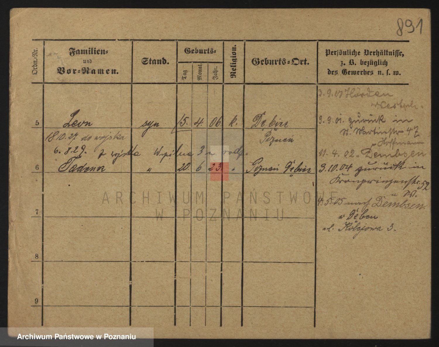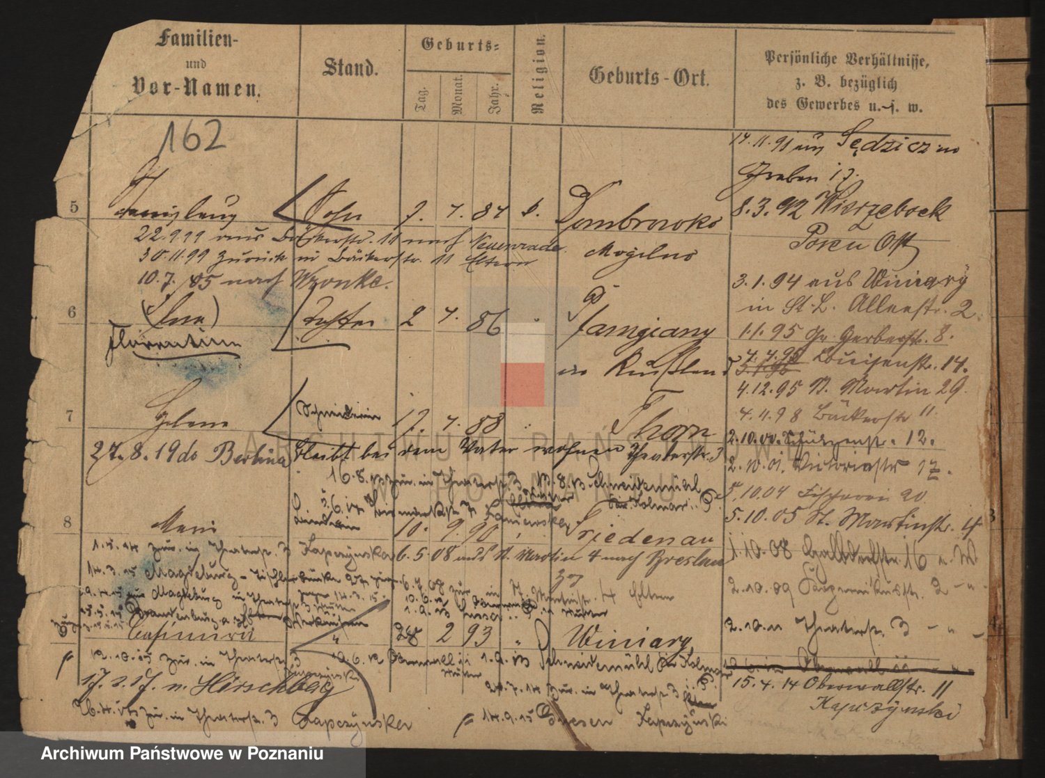 Durch Anklicken eines Namens oder Kartensymbols gelangen Sie zum Vorschau einer Personalkarte. Sie können die Ansicht vergrößern (Symbole am oberen Rand) oder zwischen den Scans wechseln (Pfeile an den Seiten).