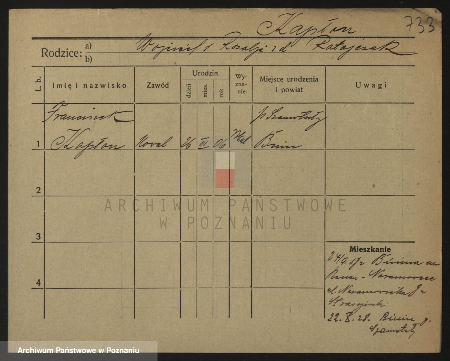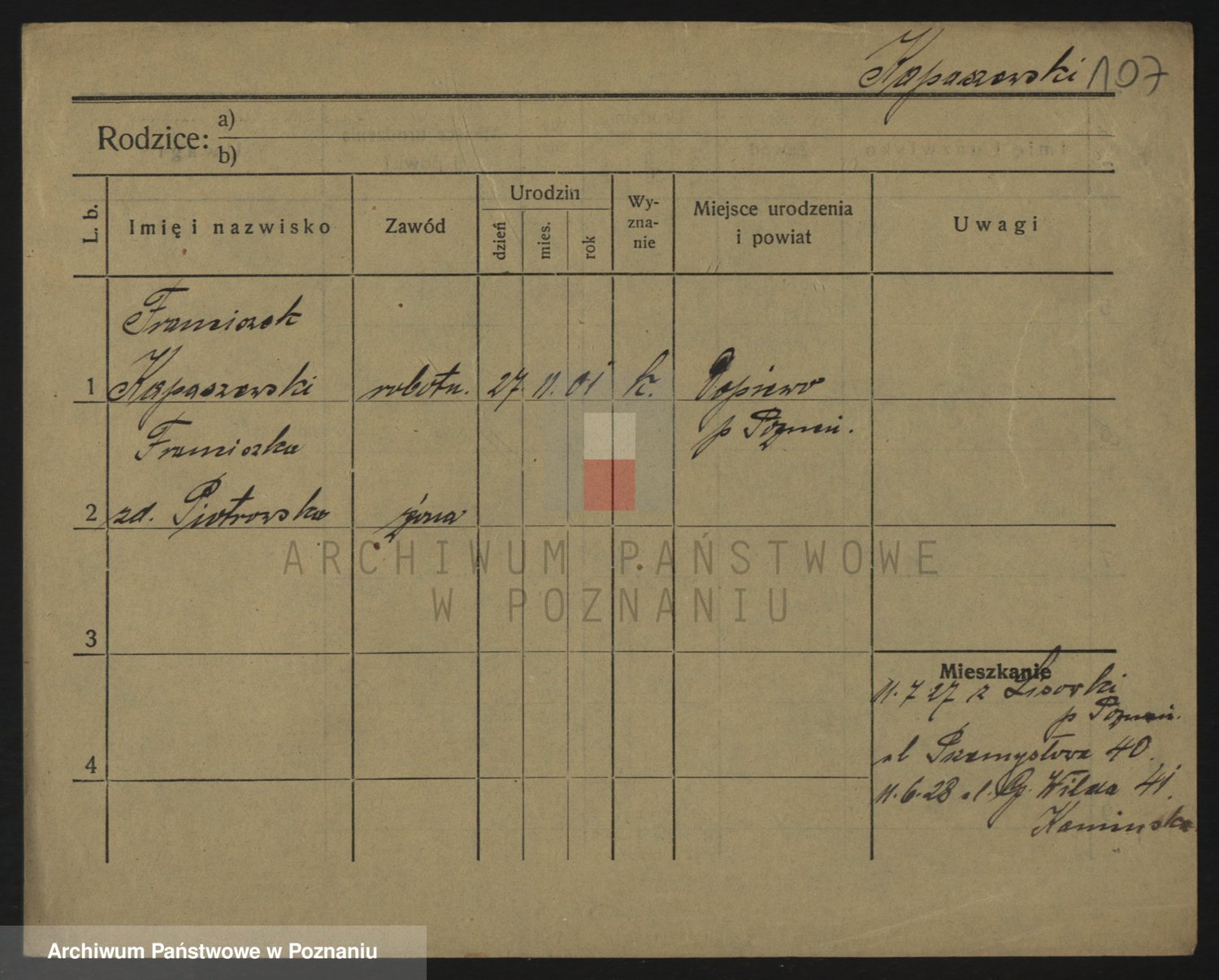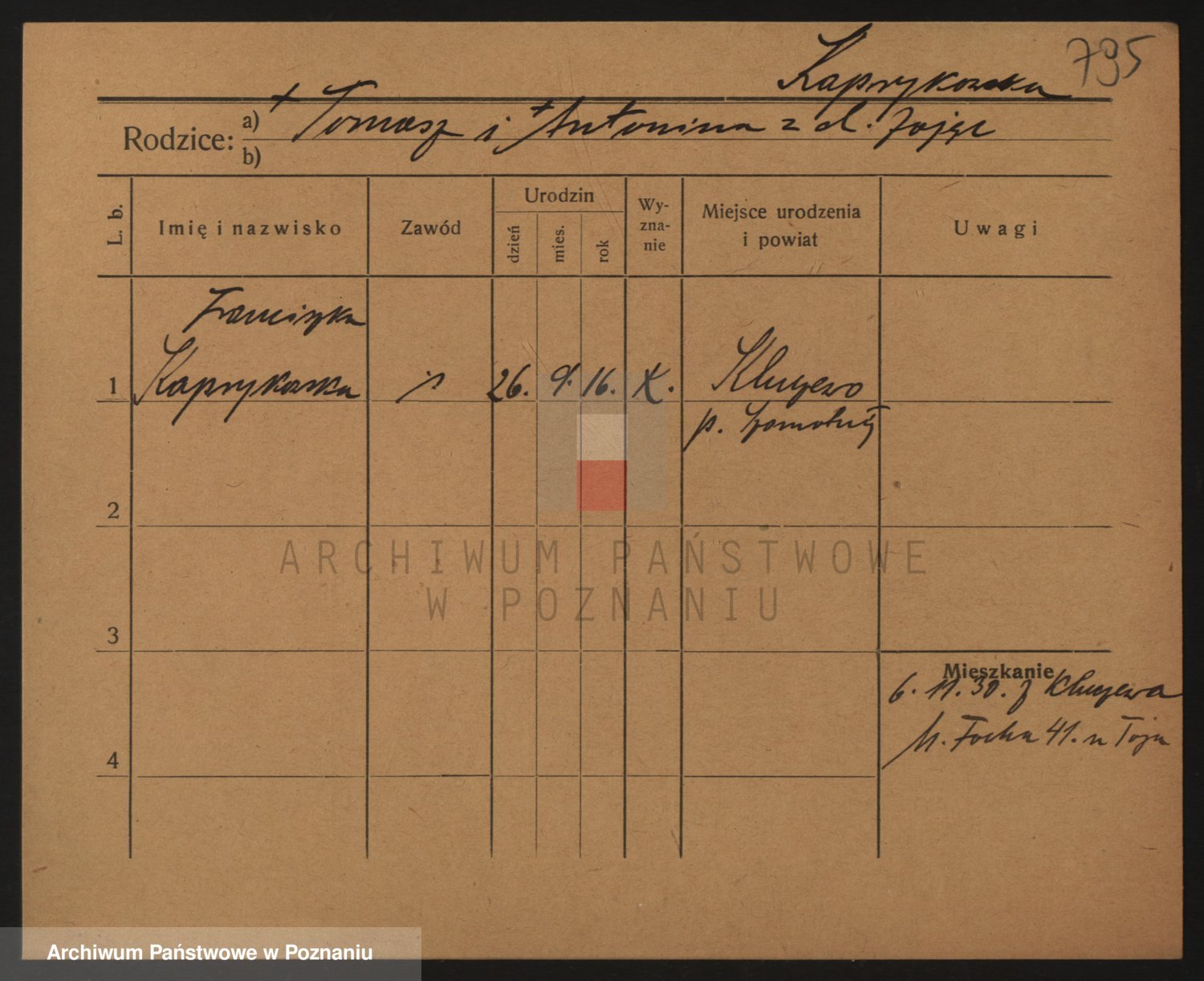 Kaptur, Franciszka