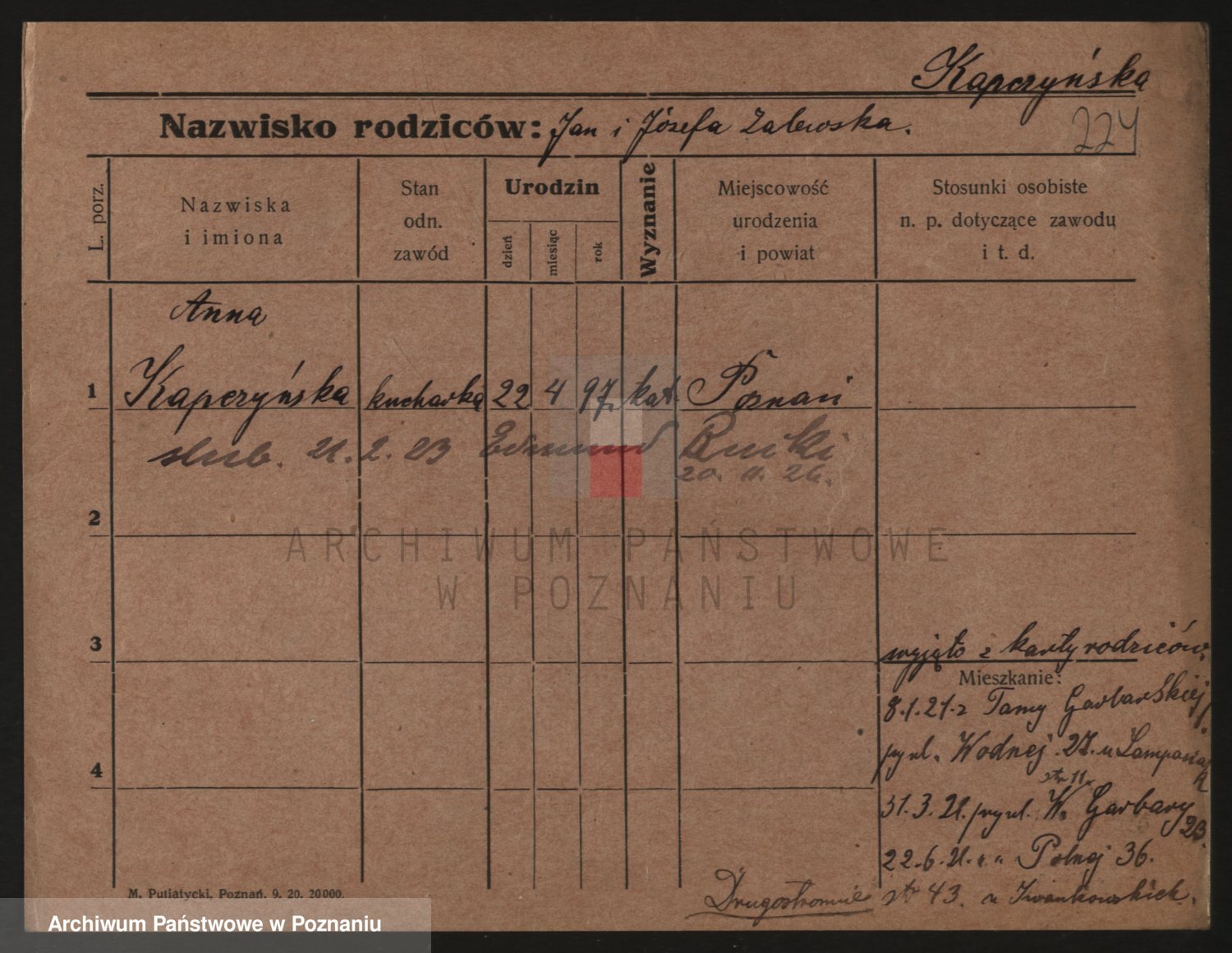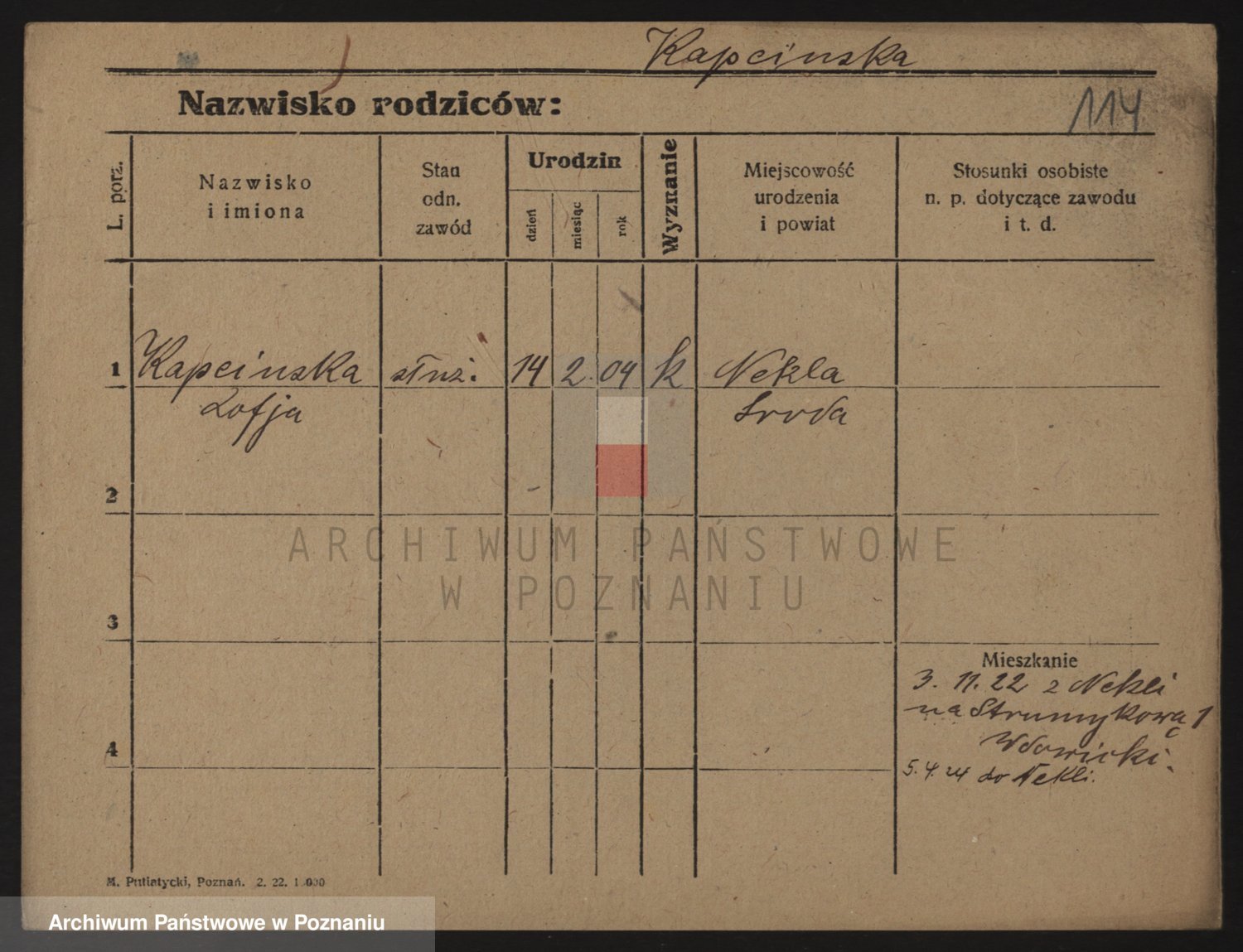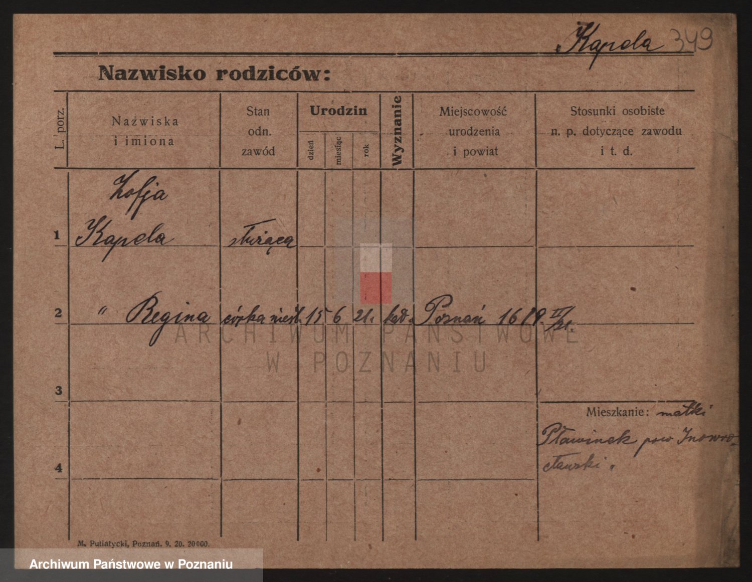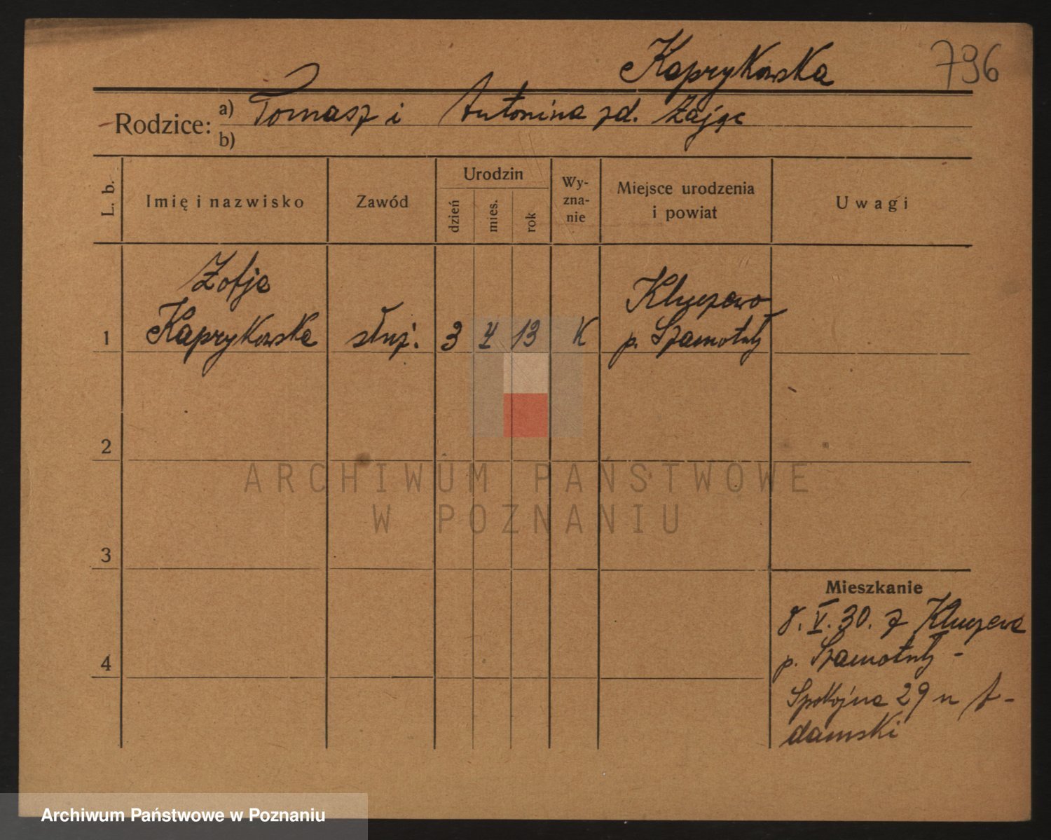 Kapałka, Zofja Stanisława