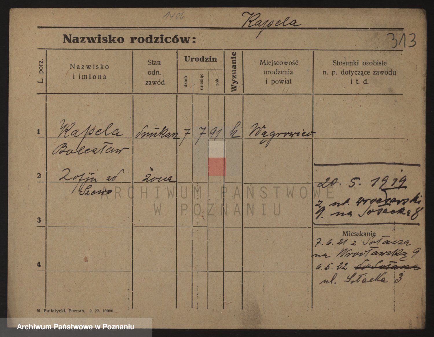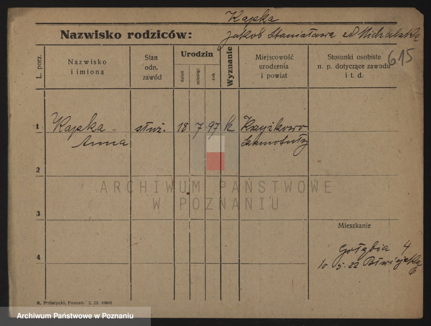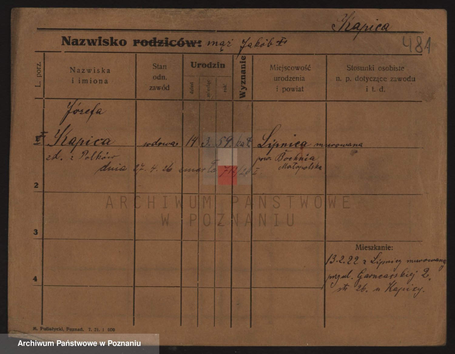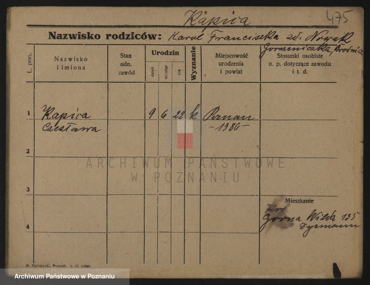 Kapałka, Zofja Stanisława