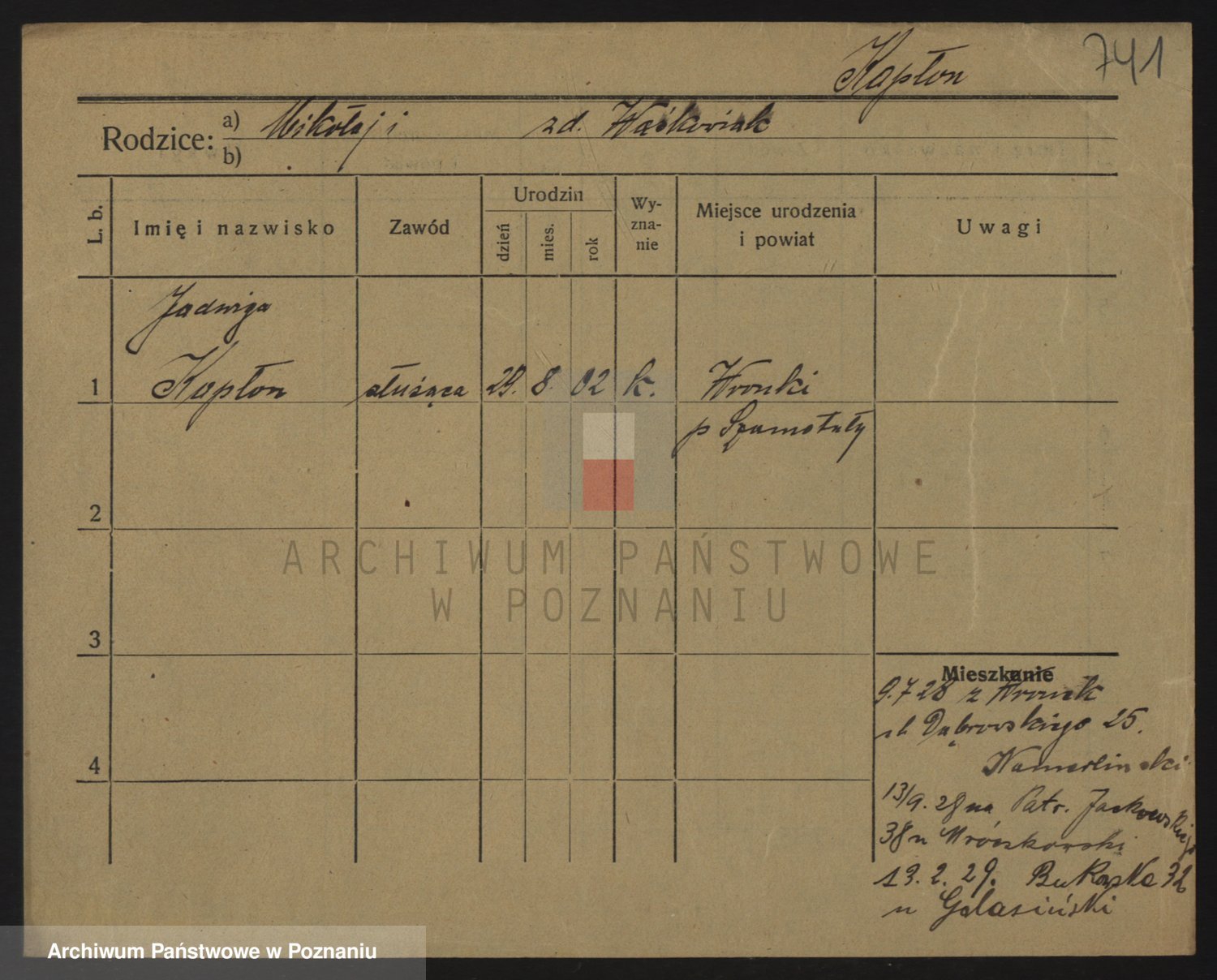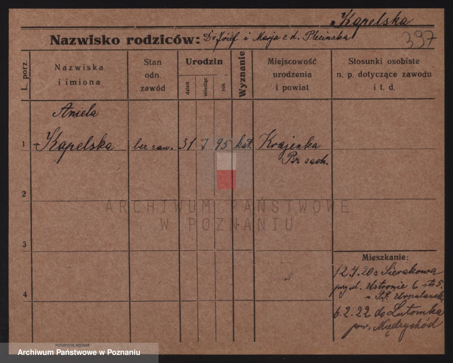 Kapalski z d. Urbisz, Marja