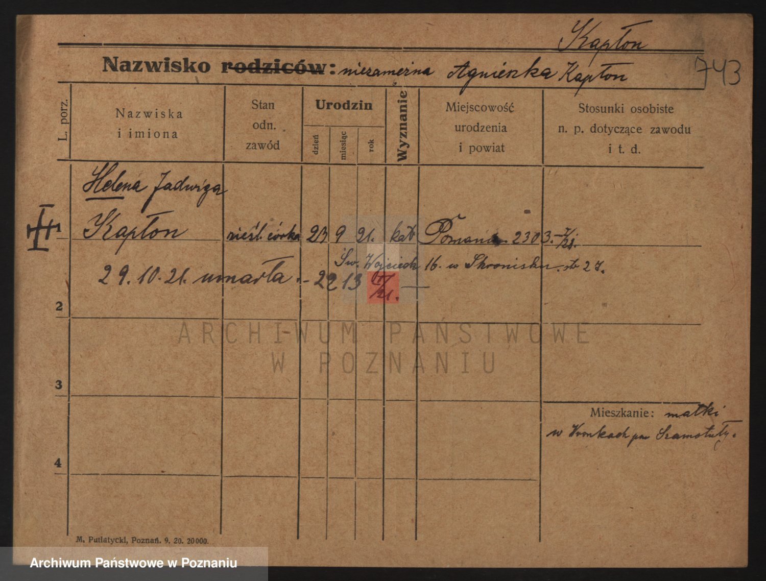 Kaptur, Teodozja Stanisława