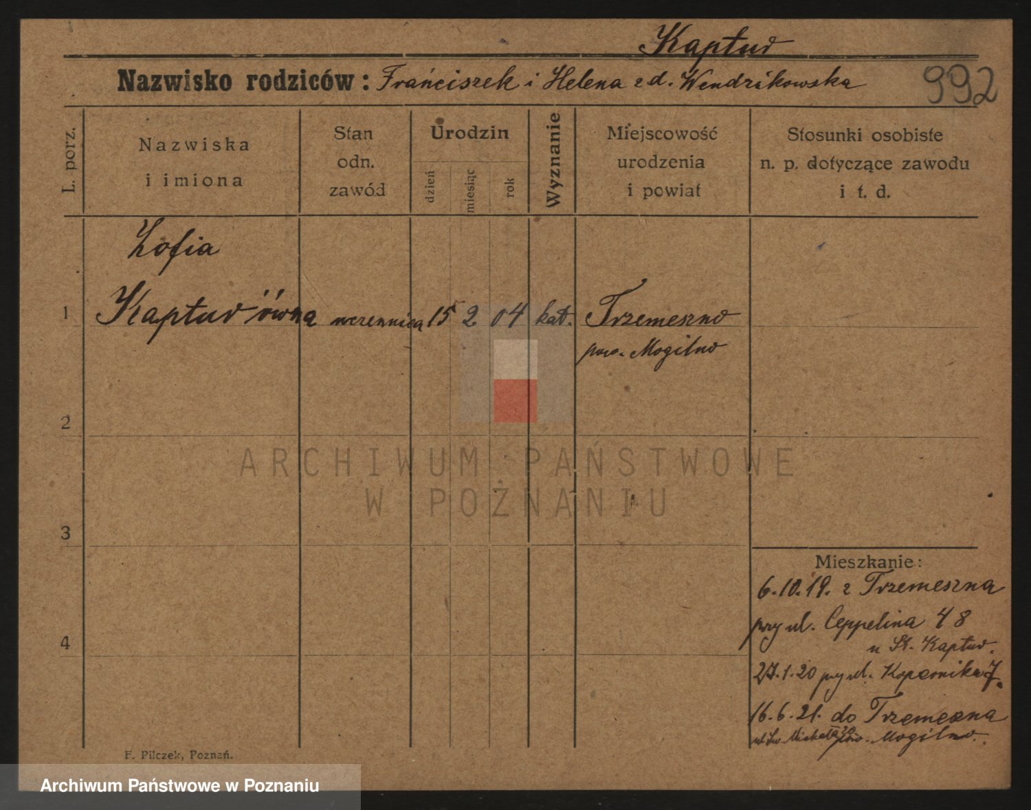 Kaptur, Zofia