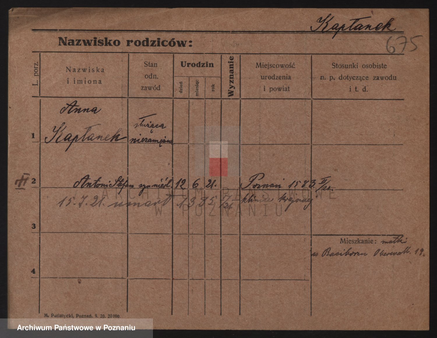 Kapalka z d. Kolasinska, Anna