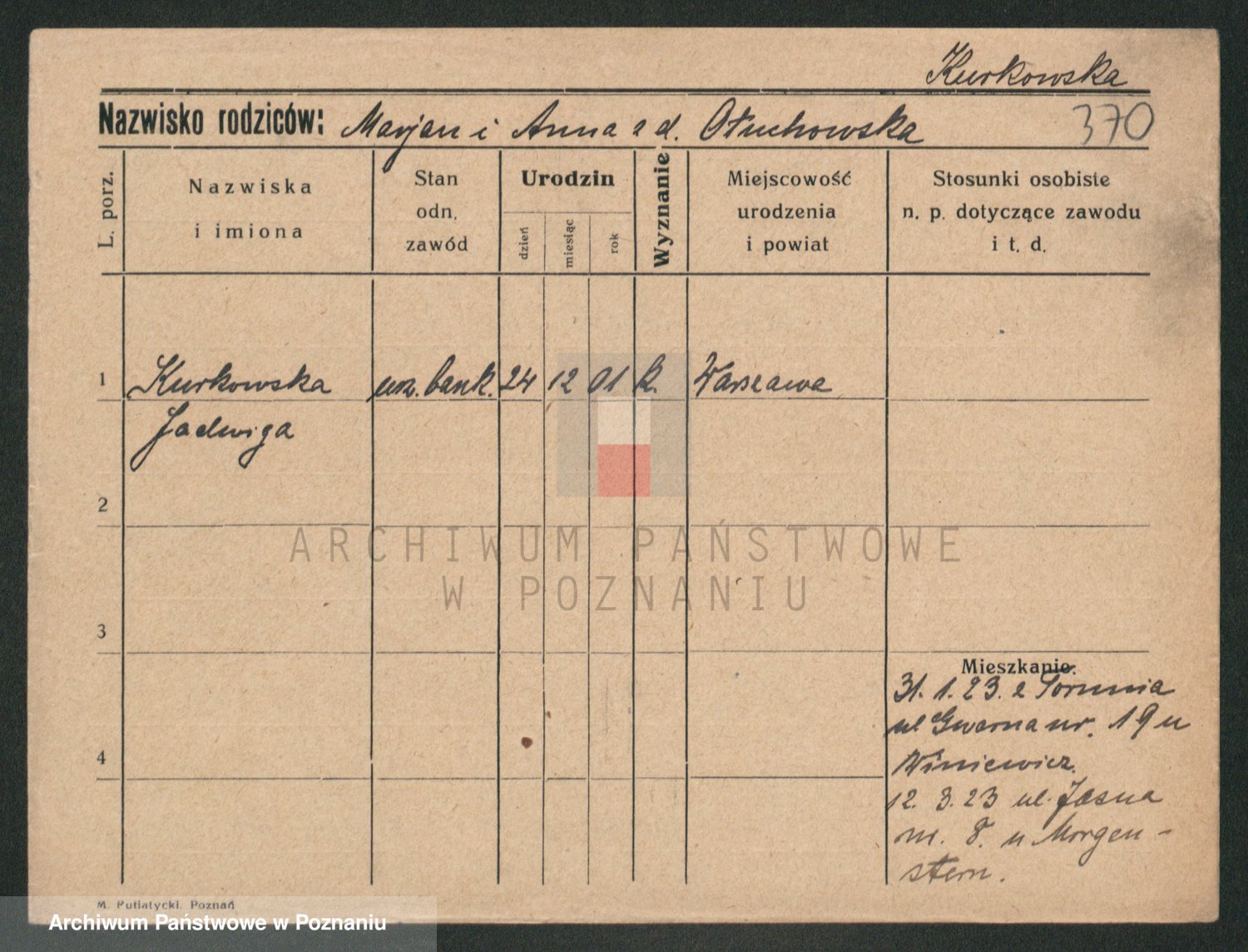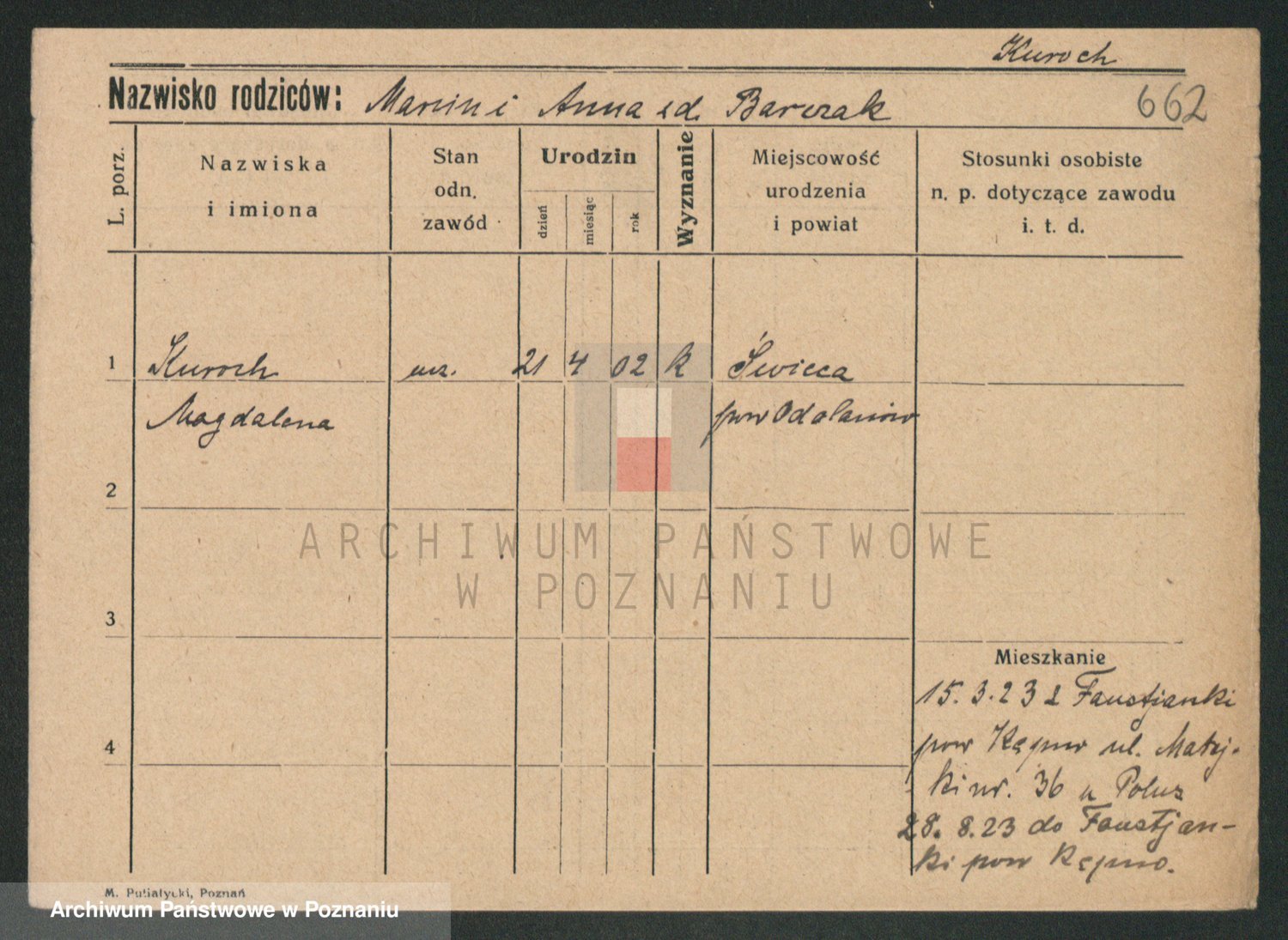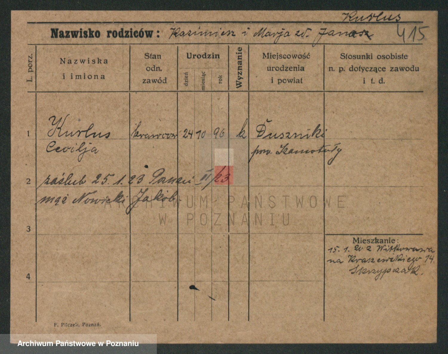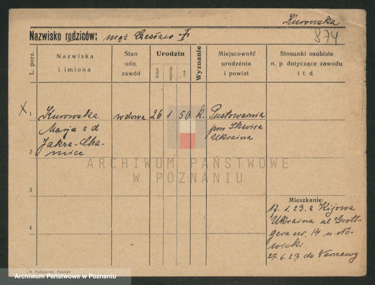 Kurpisz z d. Nowakowska, Marja