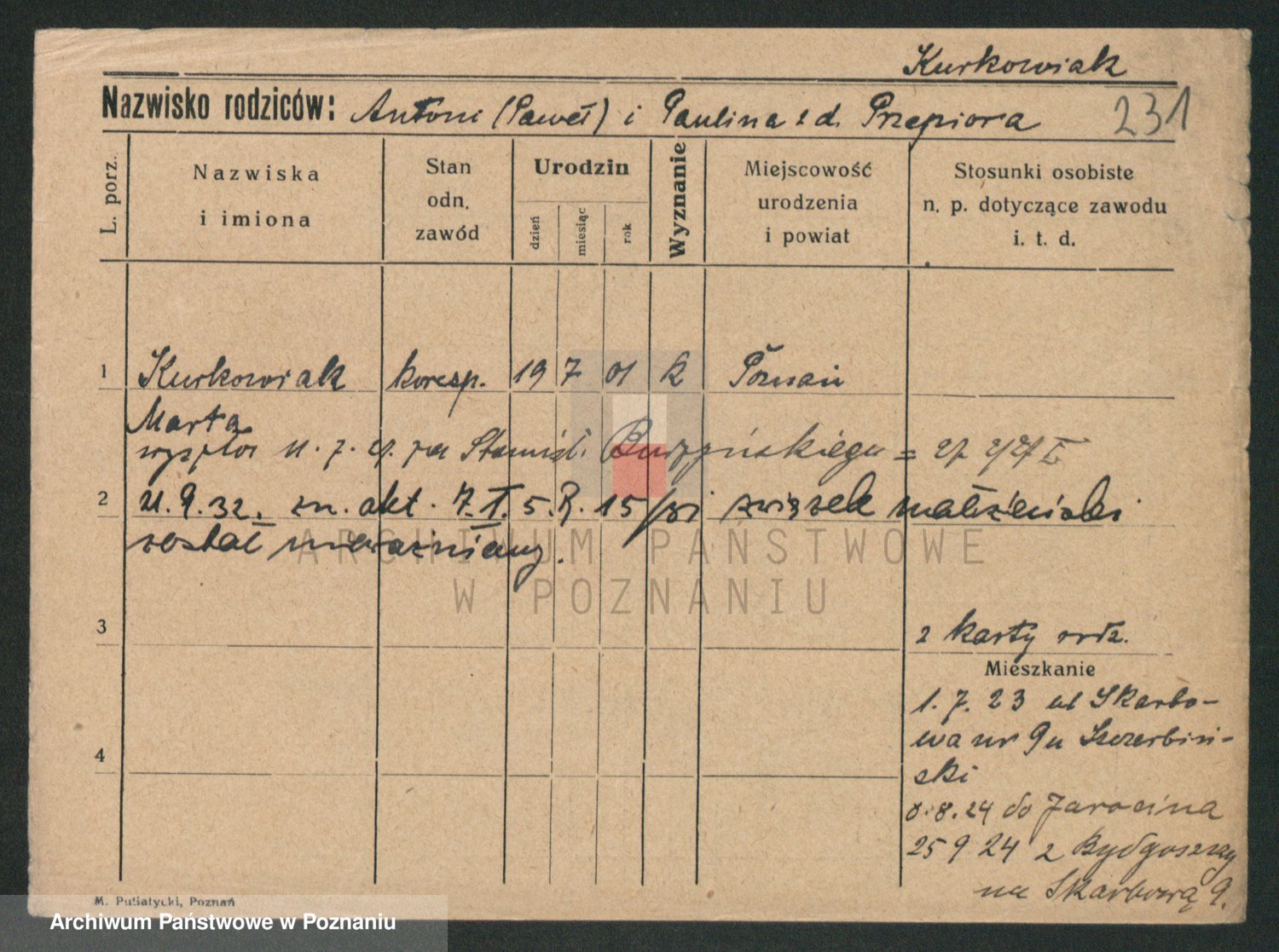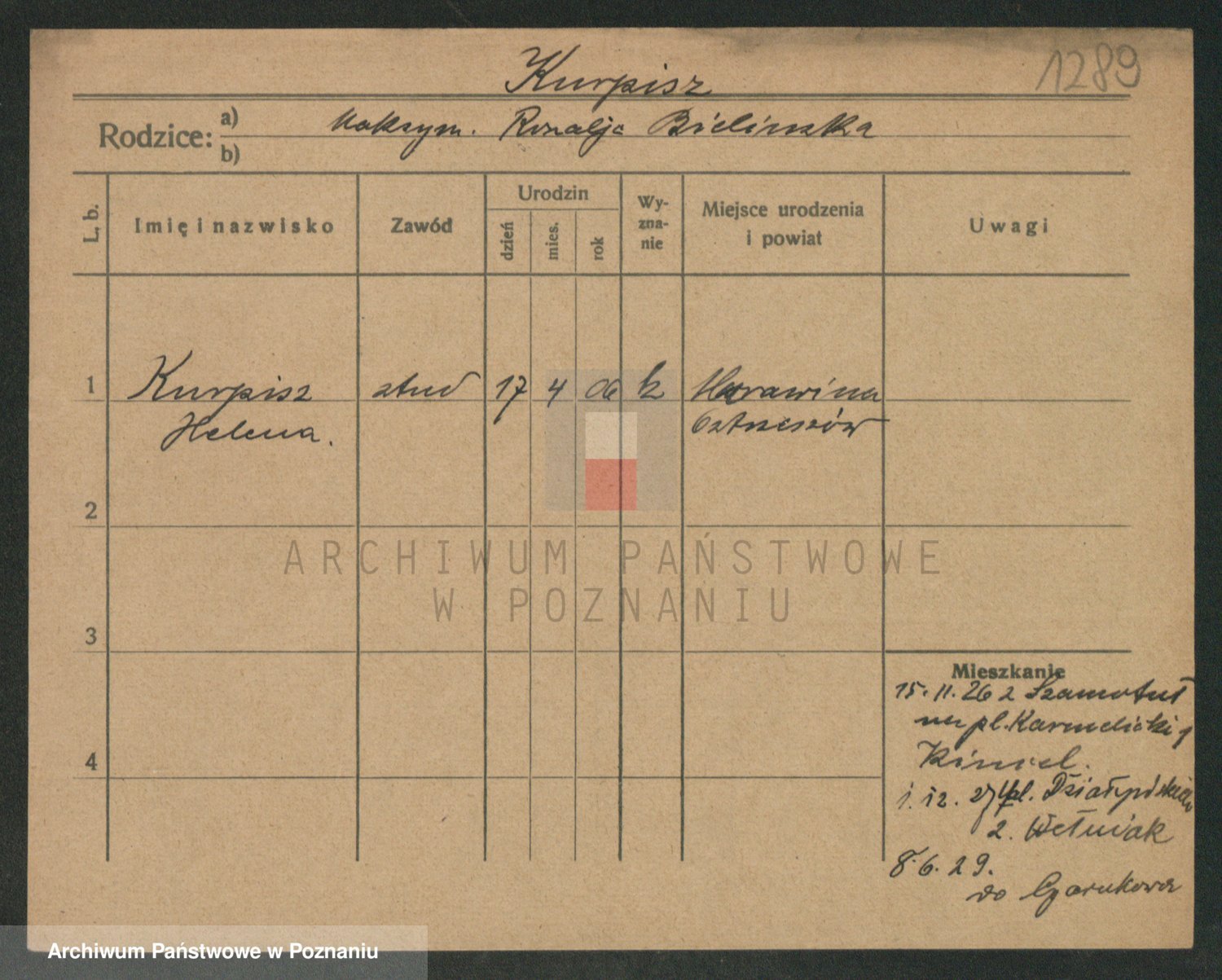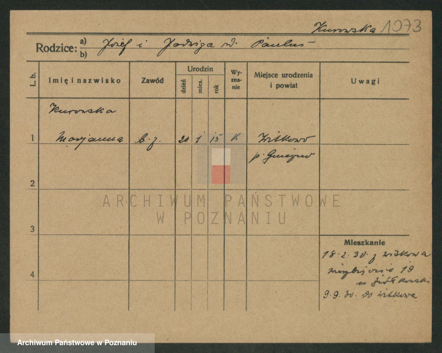 Kurpisz z d. Nowakowska, Marja