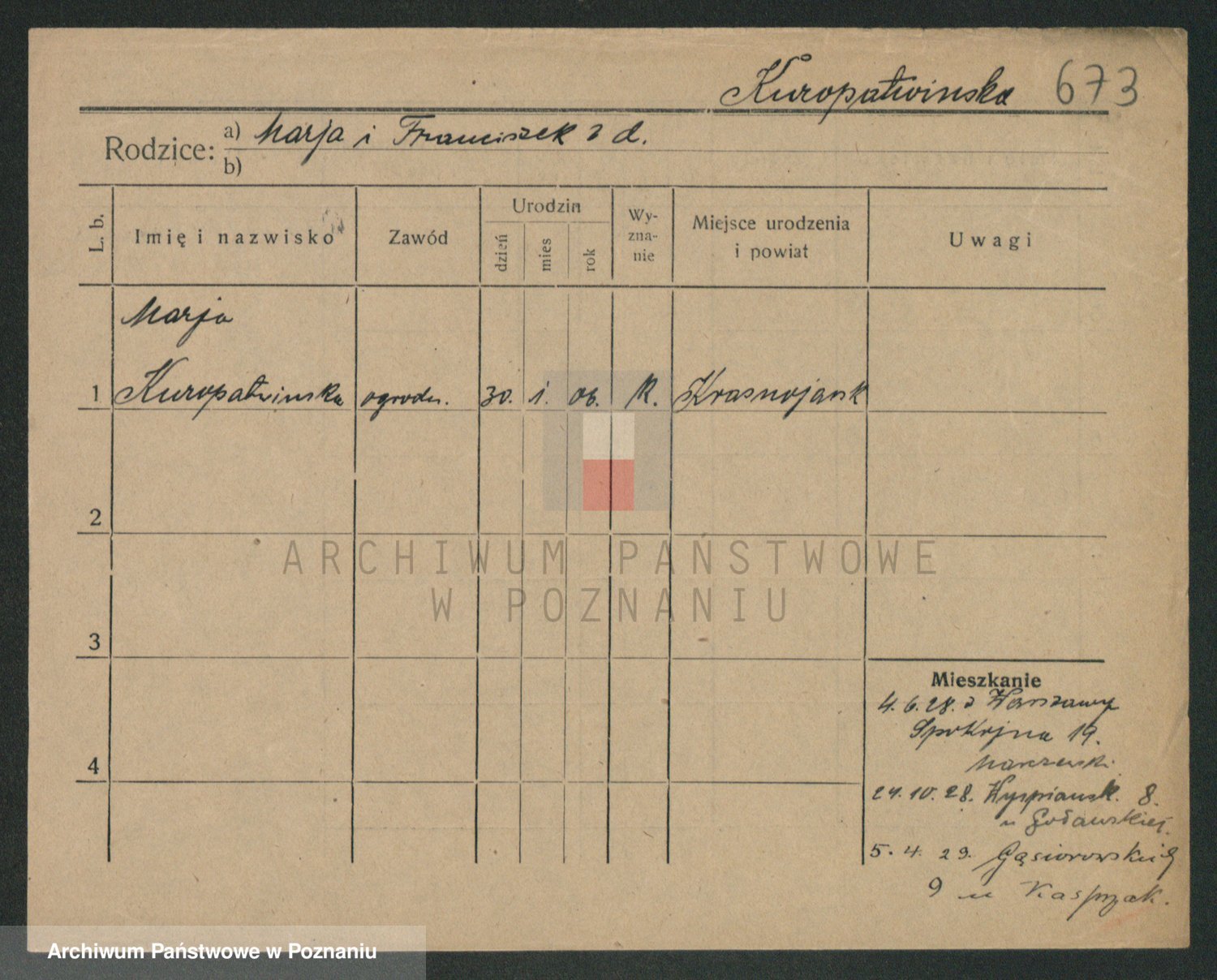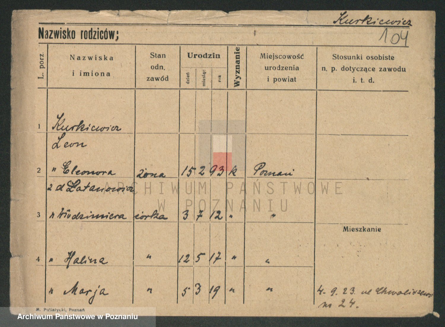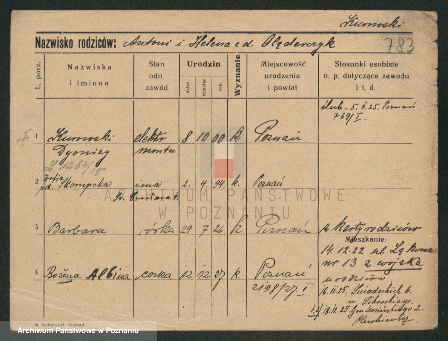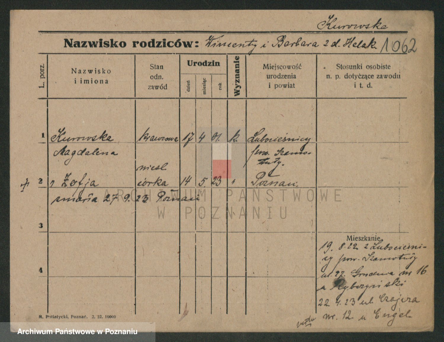 Kurpisz z d. Nowakowska, Marja