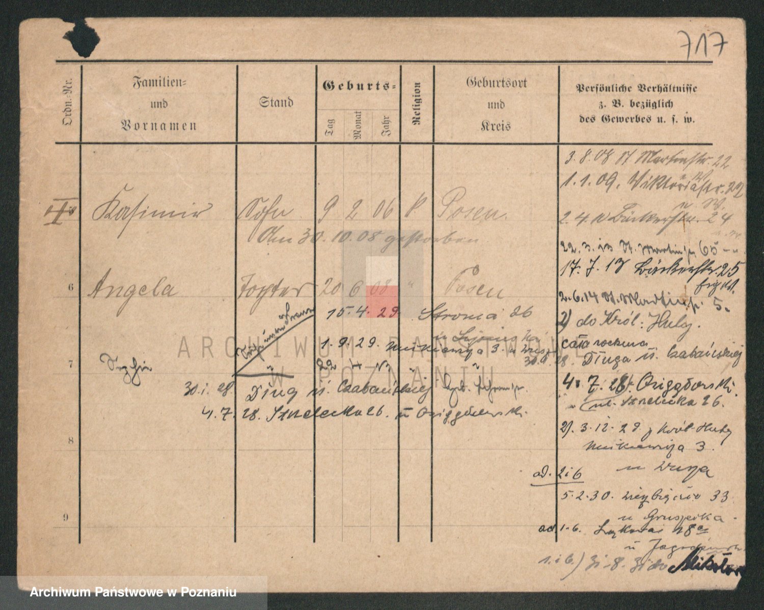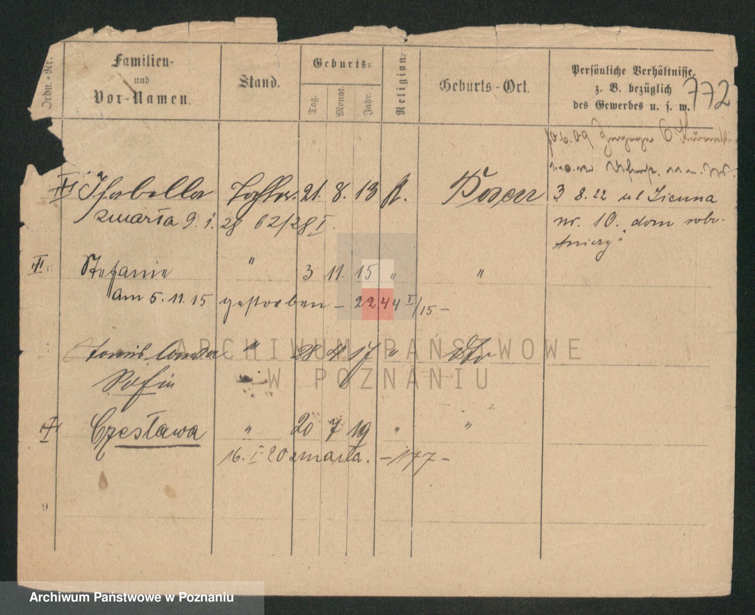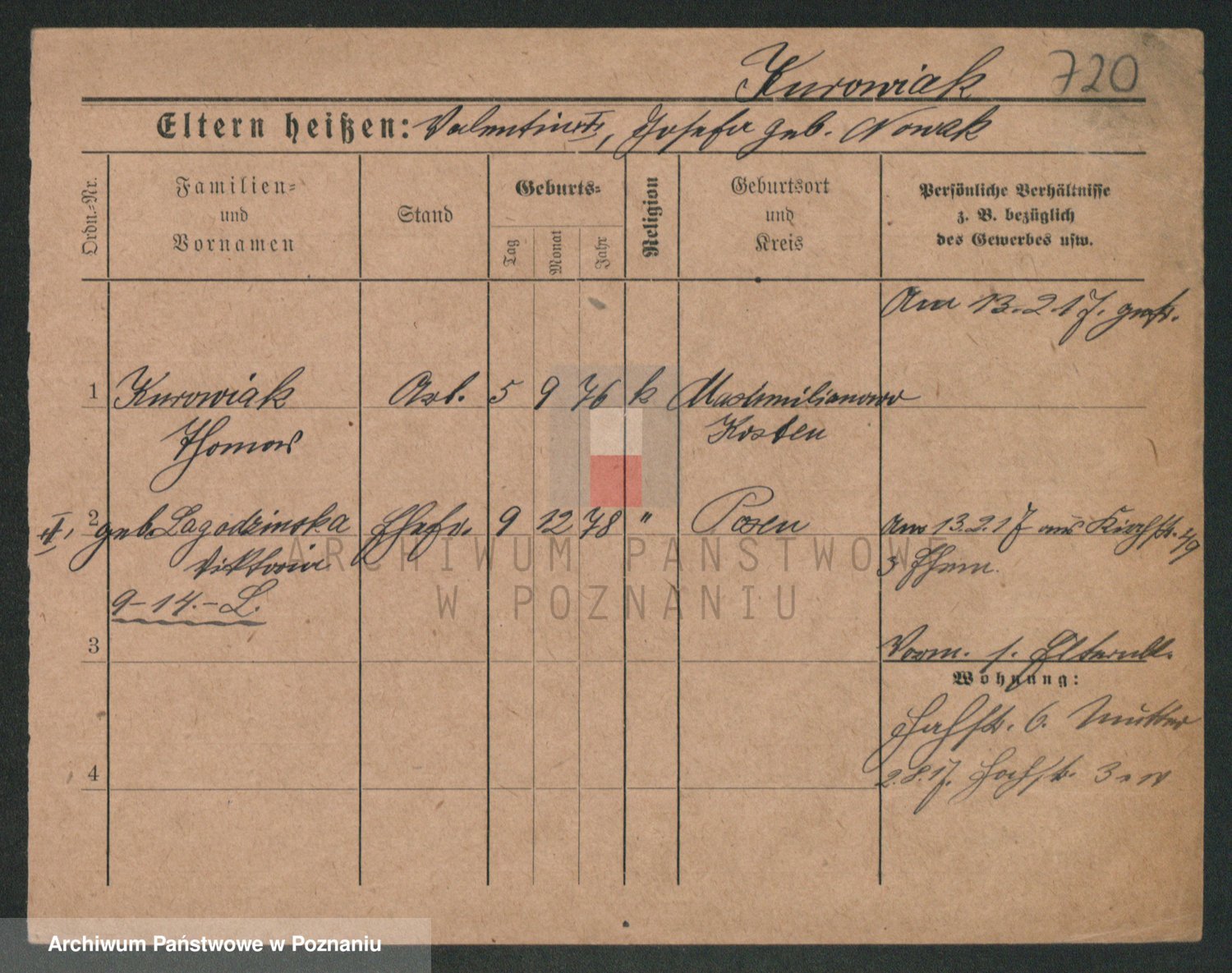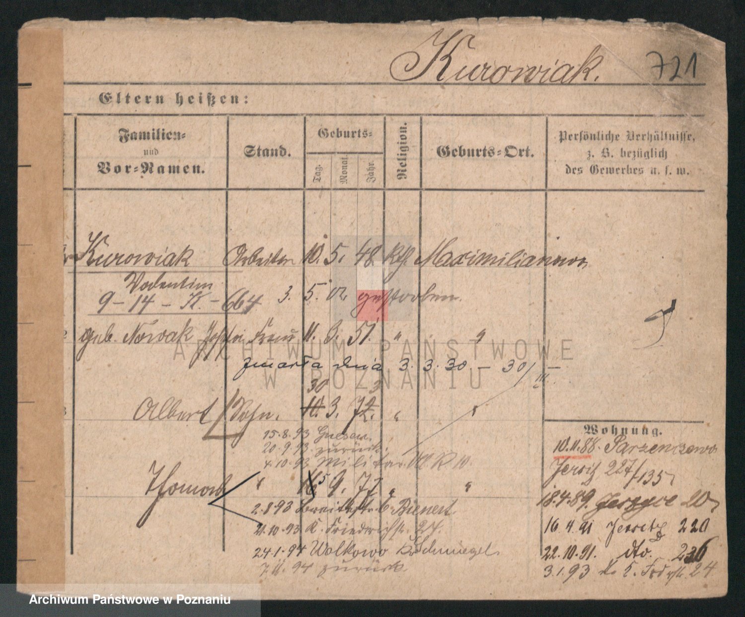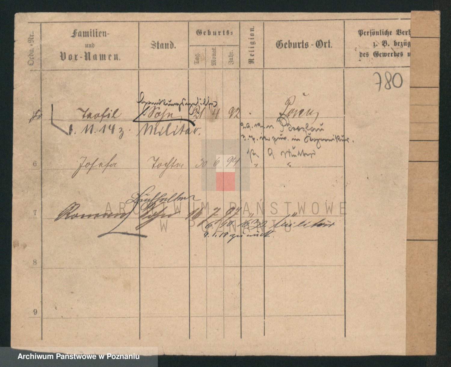 Durch Anklicken eines Namens oder Kartensymbols gelangen Sie zum Vorschau einer Personalkarte. Sie können die Ansicht vergrößern (Symbole am oberen Rand) oder zwischen den Scans wechseln (Pfeile an den Seiten).