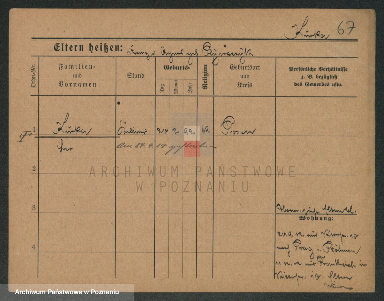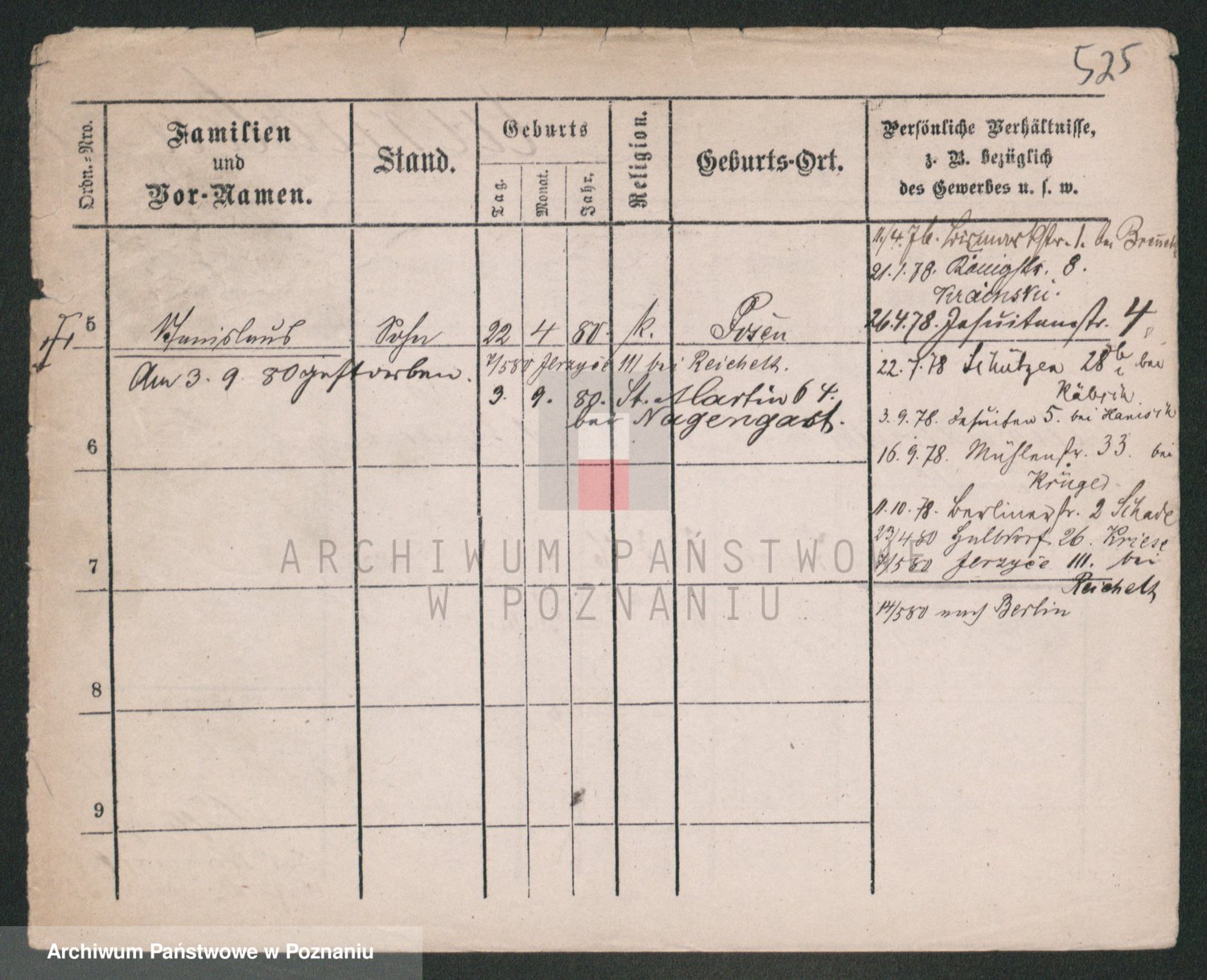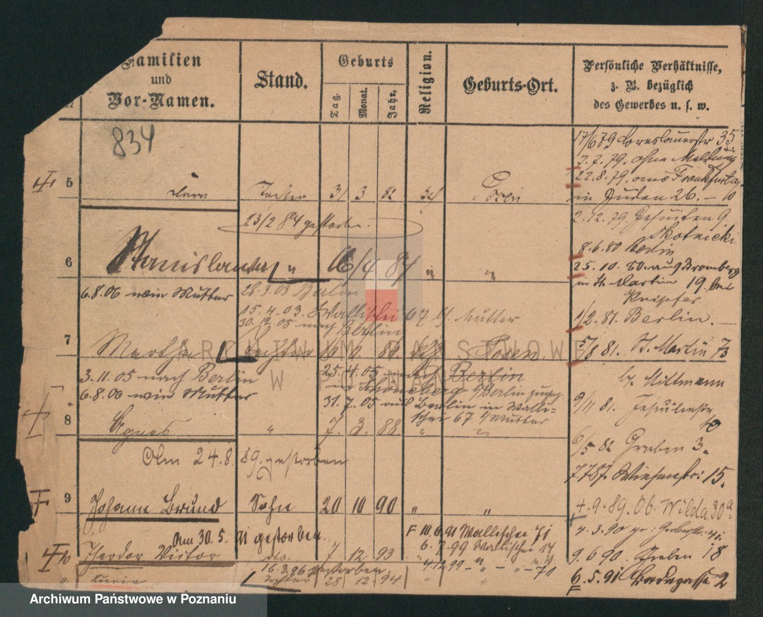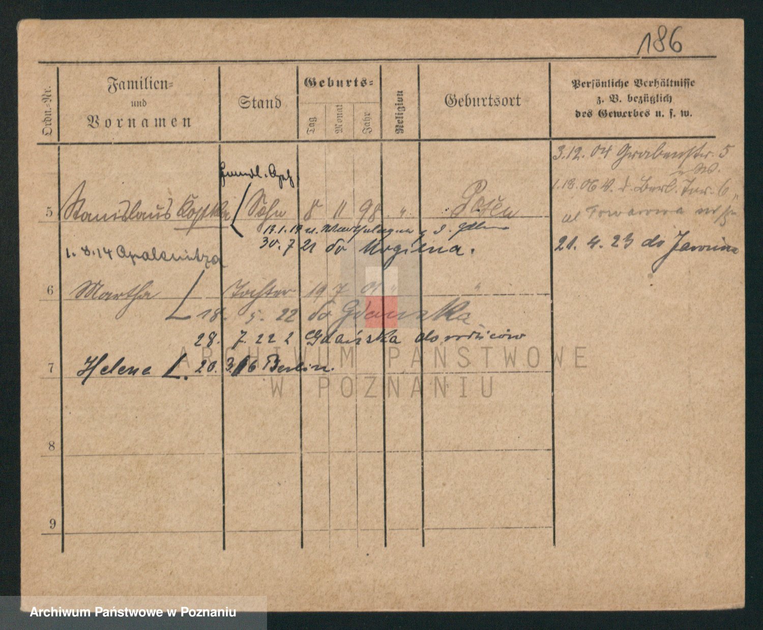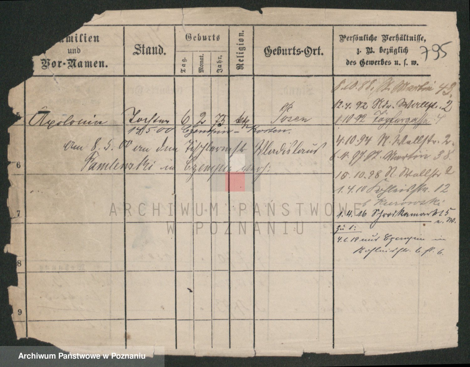 Durch Anklicken eines Namens oder Kartensymbols gelangen Sie zum Vorschau einer Personalkarte. Sie können die Ansicht vergrößern (Symbole am oberen Rand) oder zwischen den Scans wechseln (Pfeile an den Seiten).