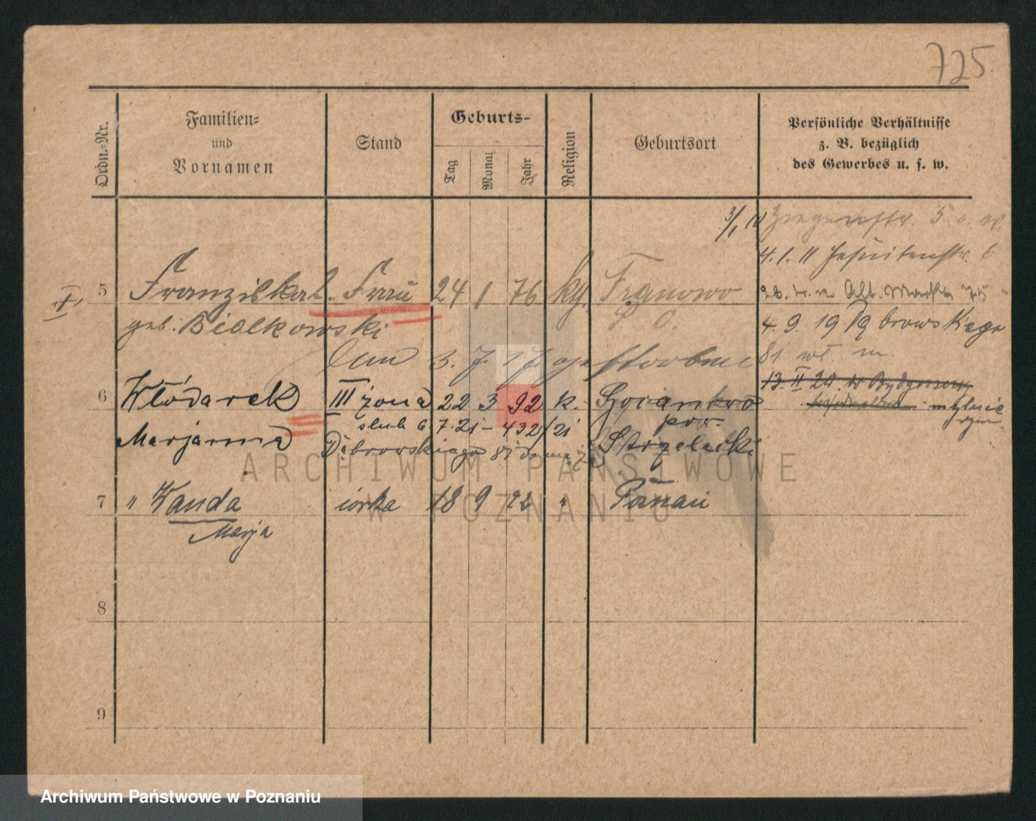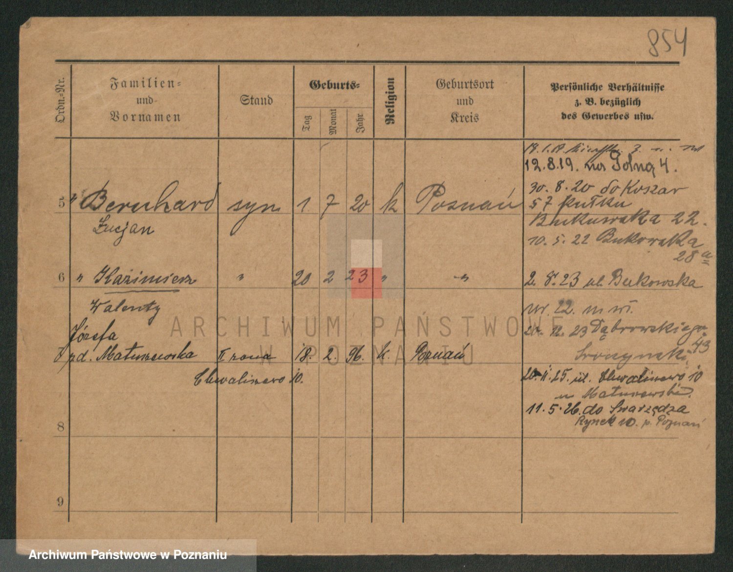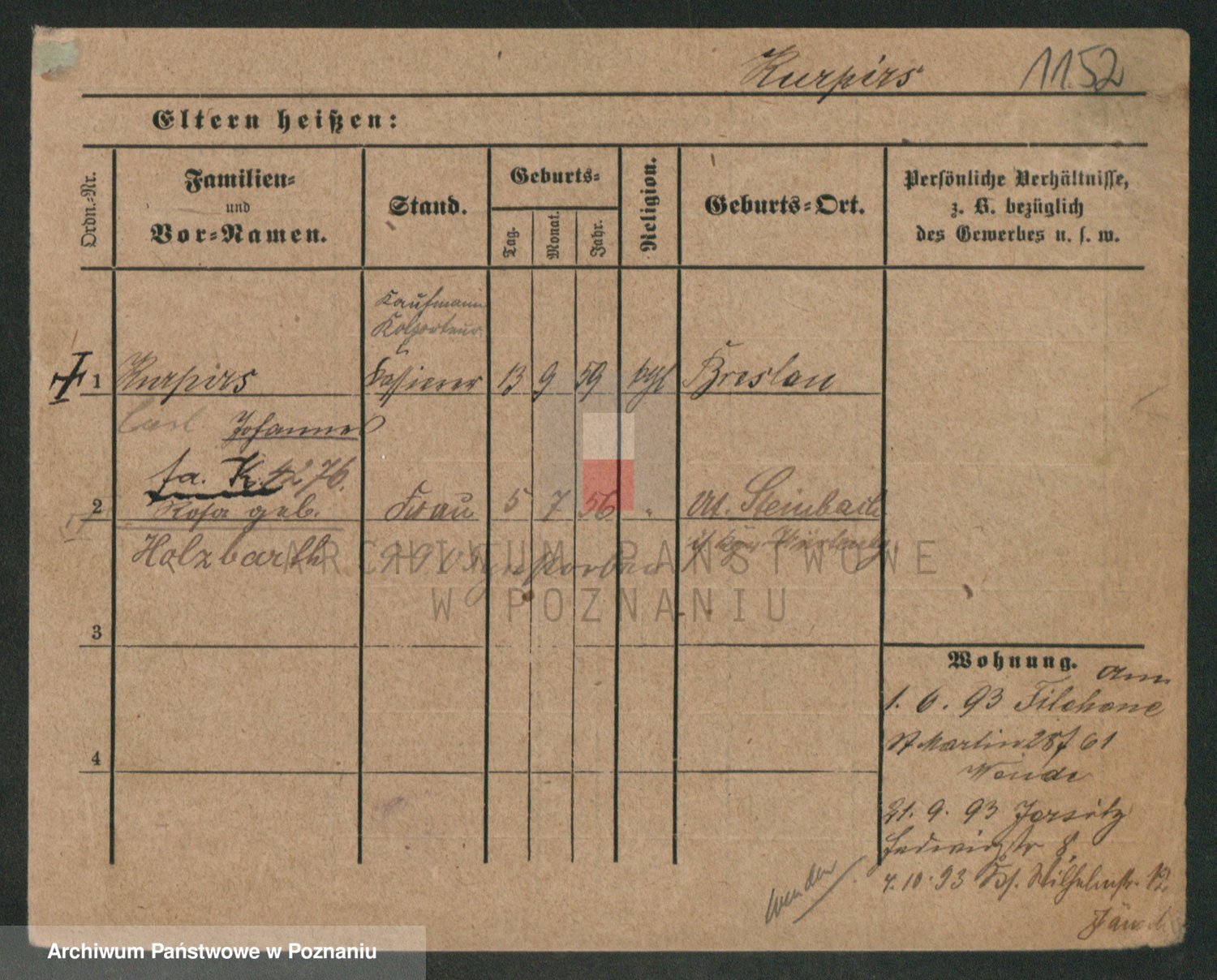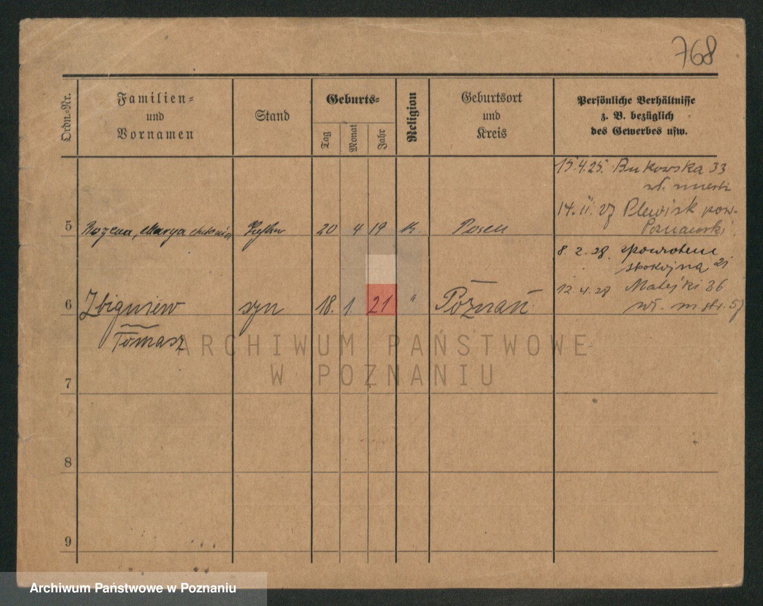 Durch Anklicken eines Namens oder Kartensymbols gelangen Sie zum Vorschau einer Personalkarte. Sie können die Ansicht vergrößern (Symbole am oberen Rand) oder zwischen den Scans wechseln (Pfeile an den Seiten).