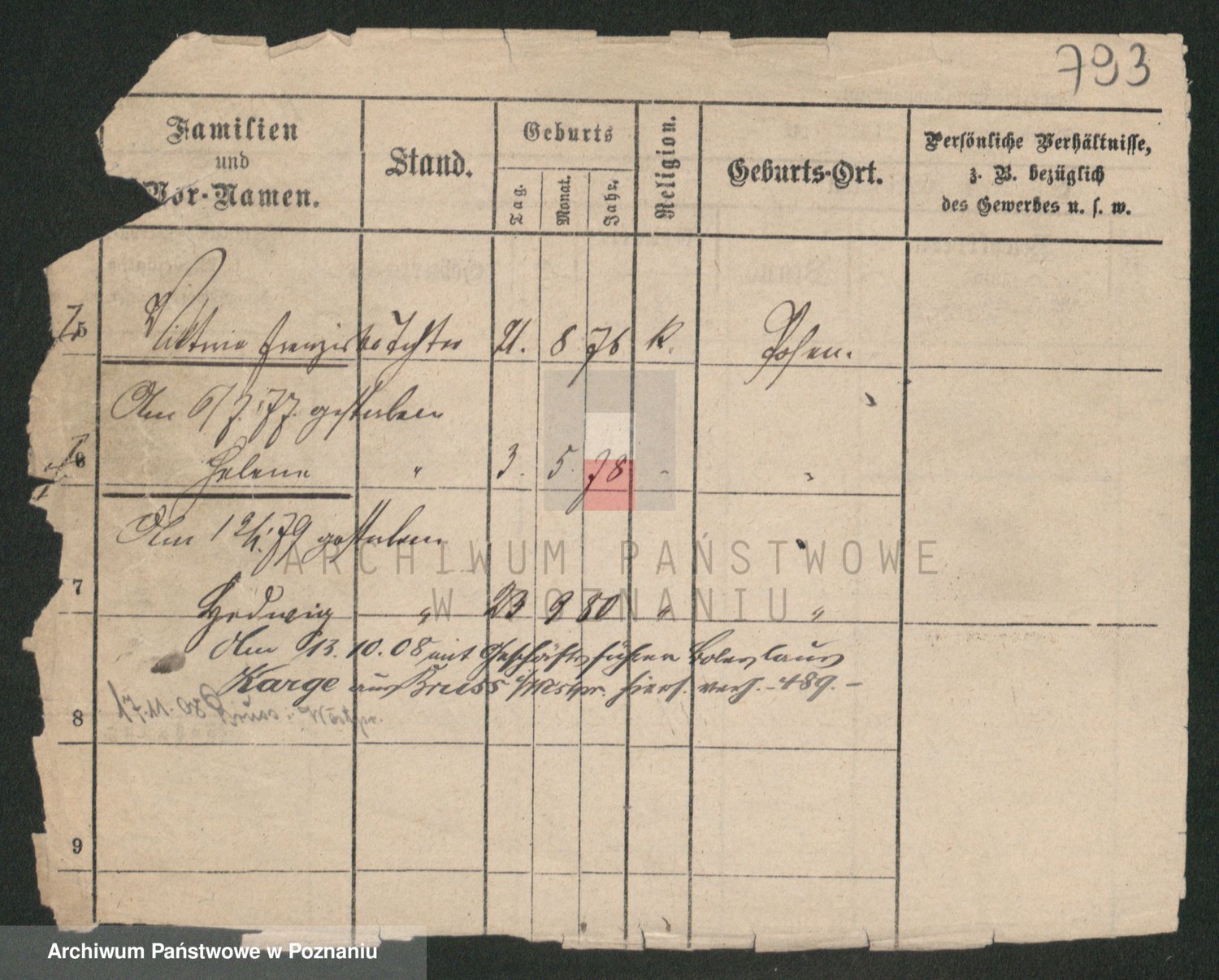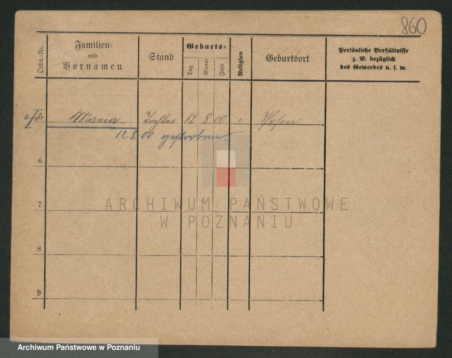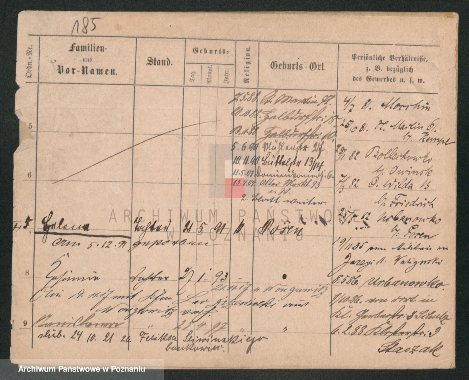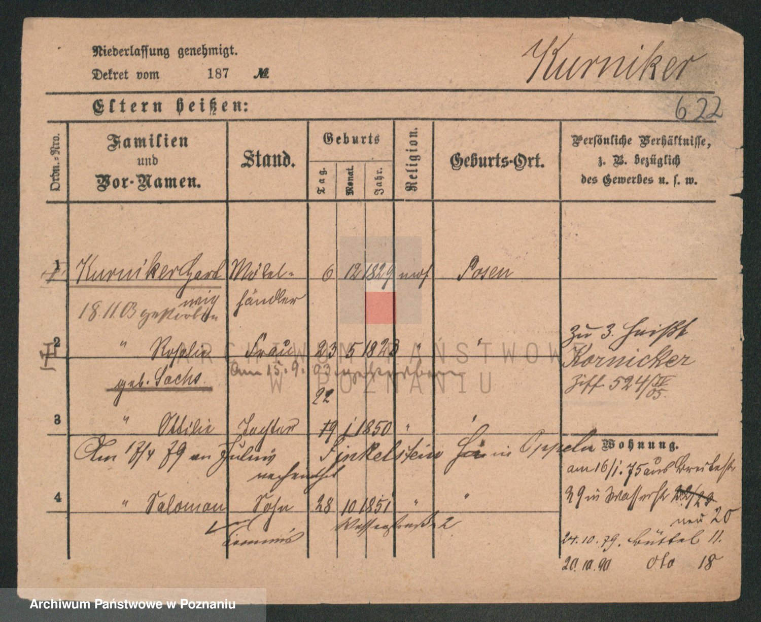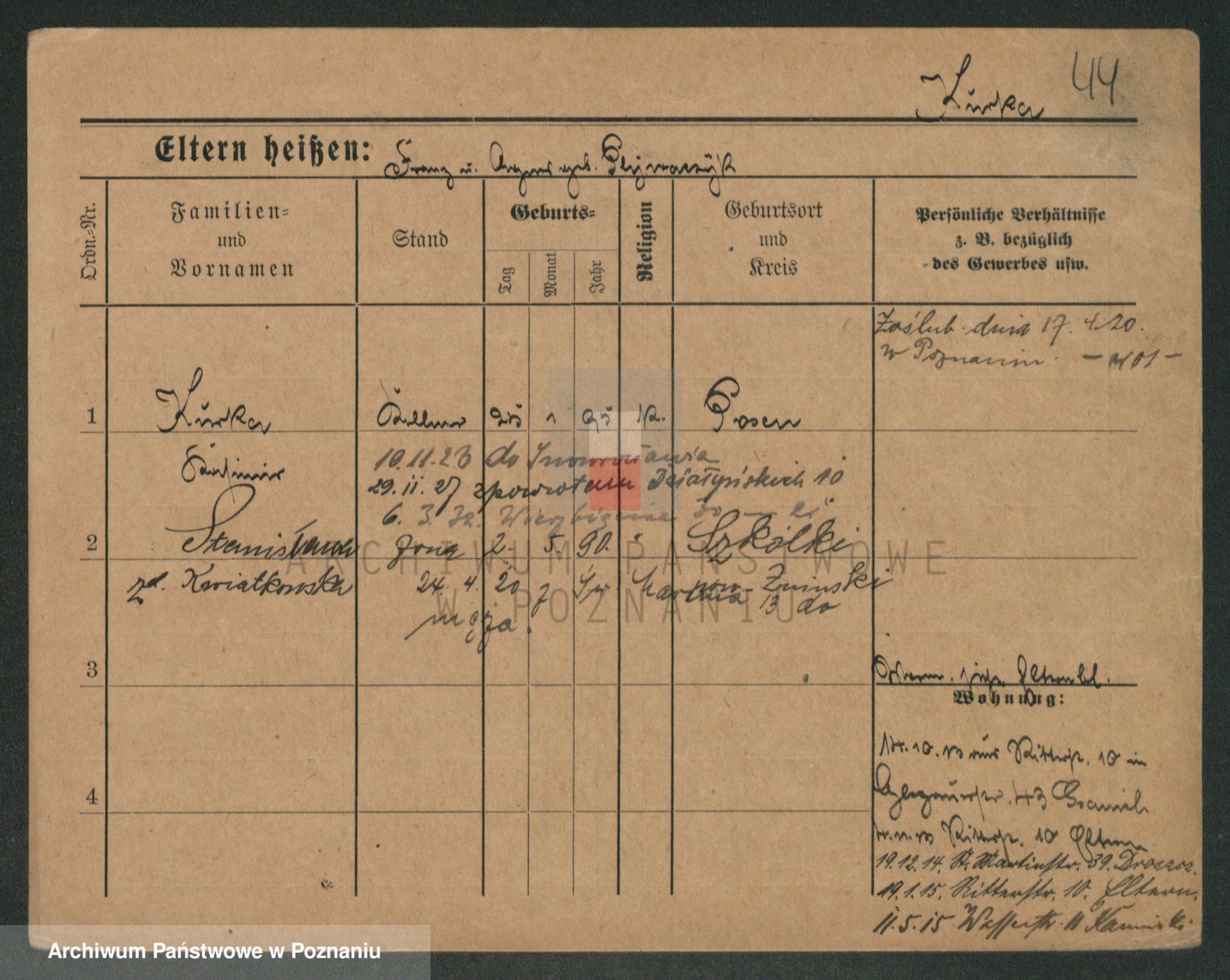Durch Anklicken eines Namens oder Kartensymbols gelangen Sie zum Vorschau einer Personalkarte. Sie können die Ansicht vergrößern (Symbole am oberen Rand) oder zwischen den Scans wechseln (Pfeile an den Seiten).