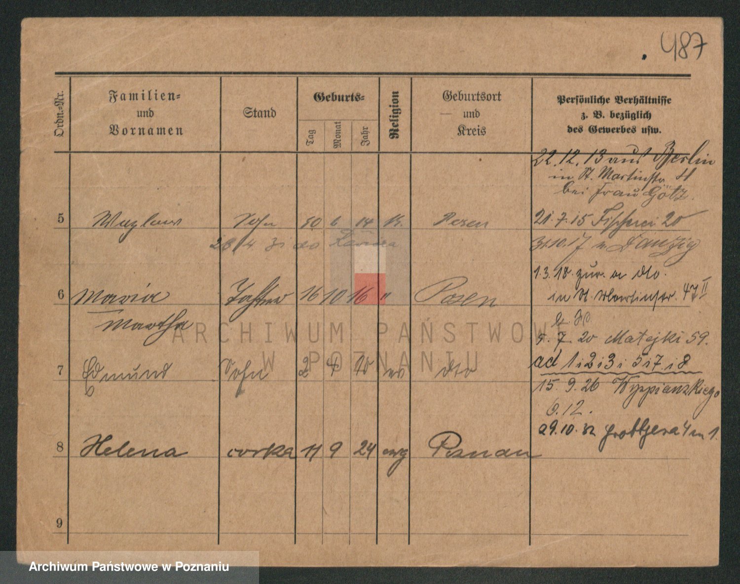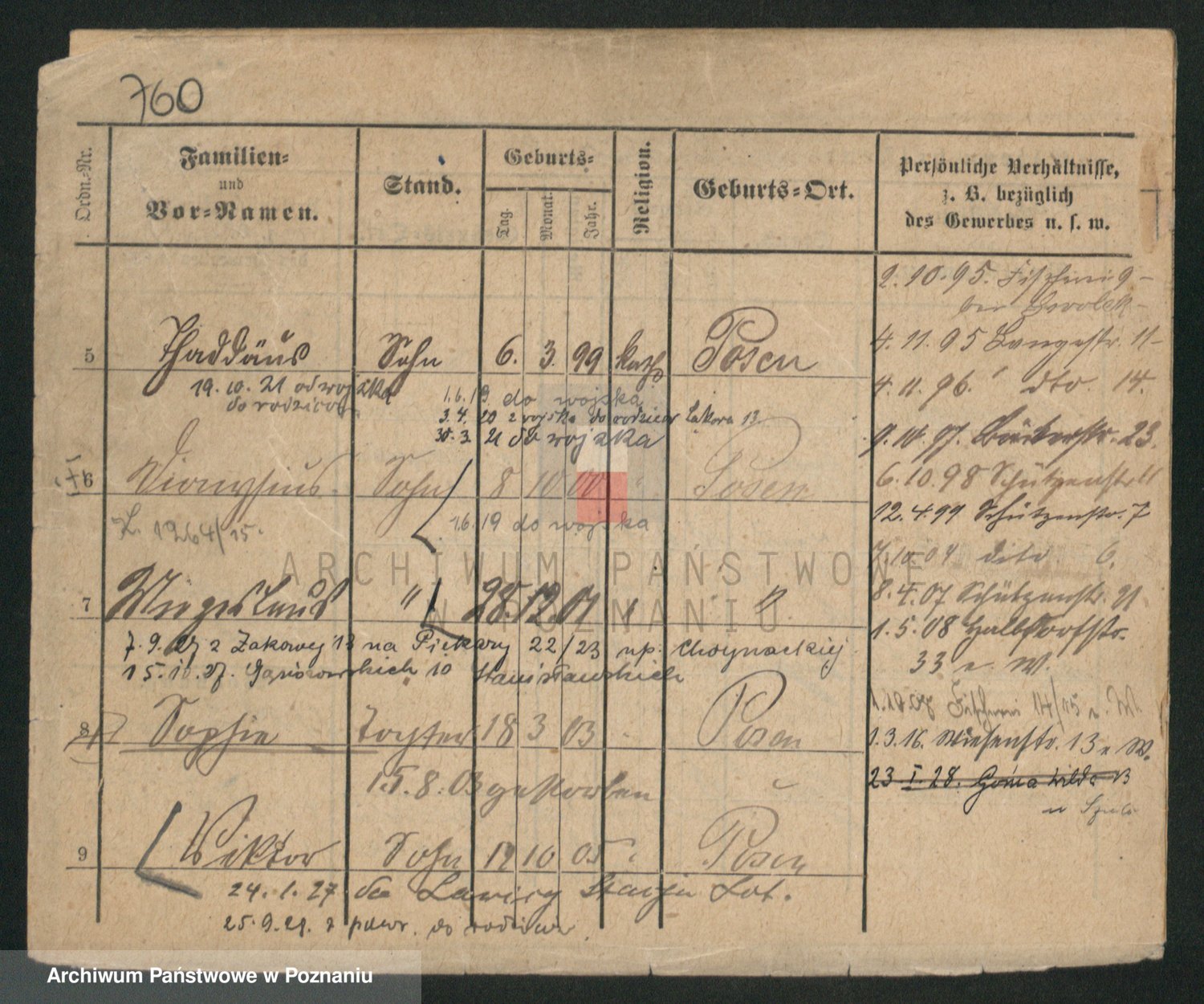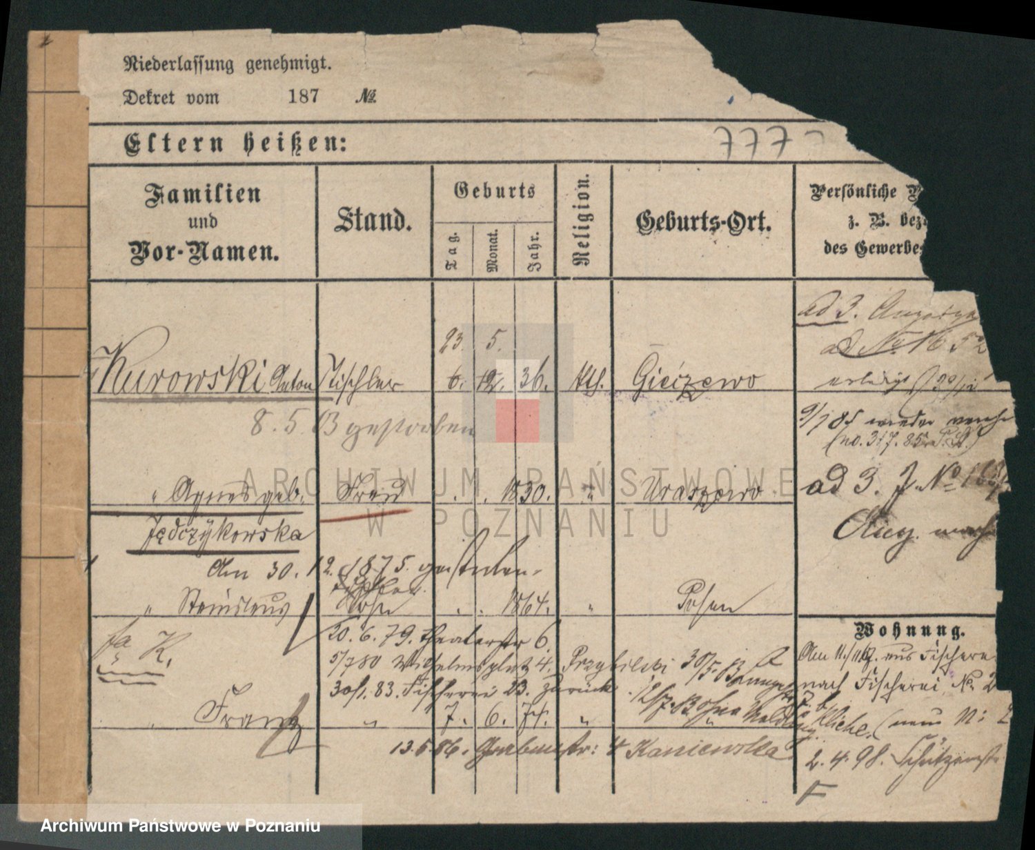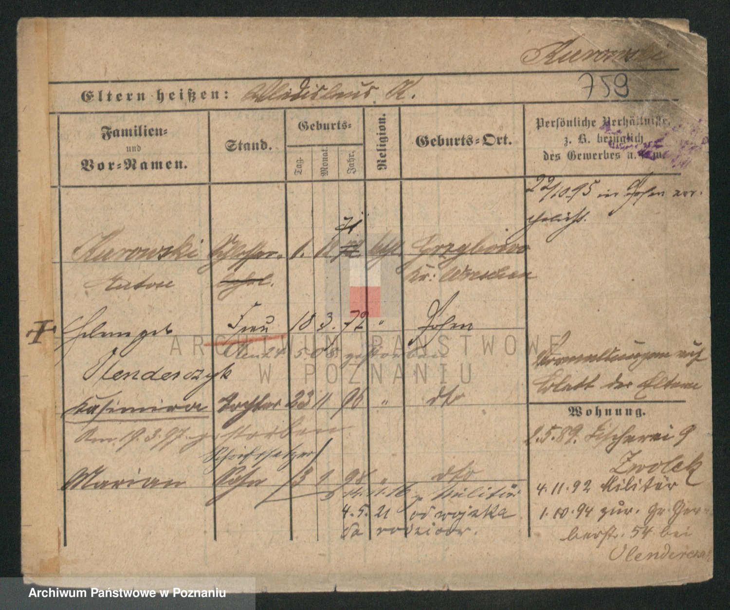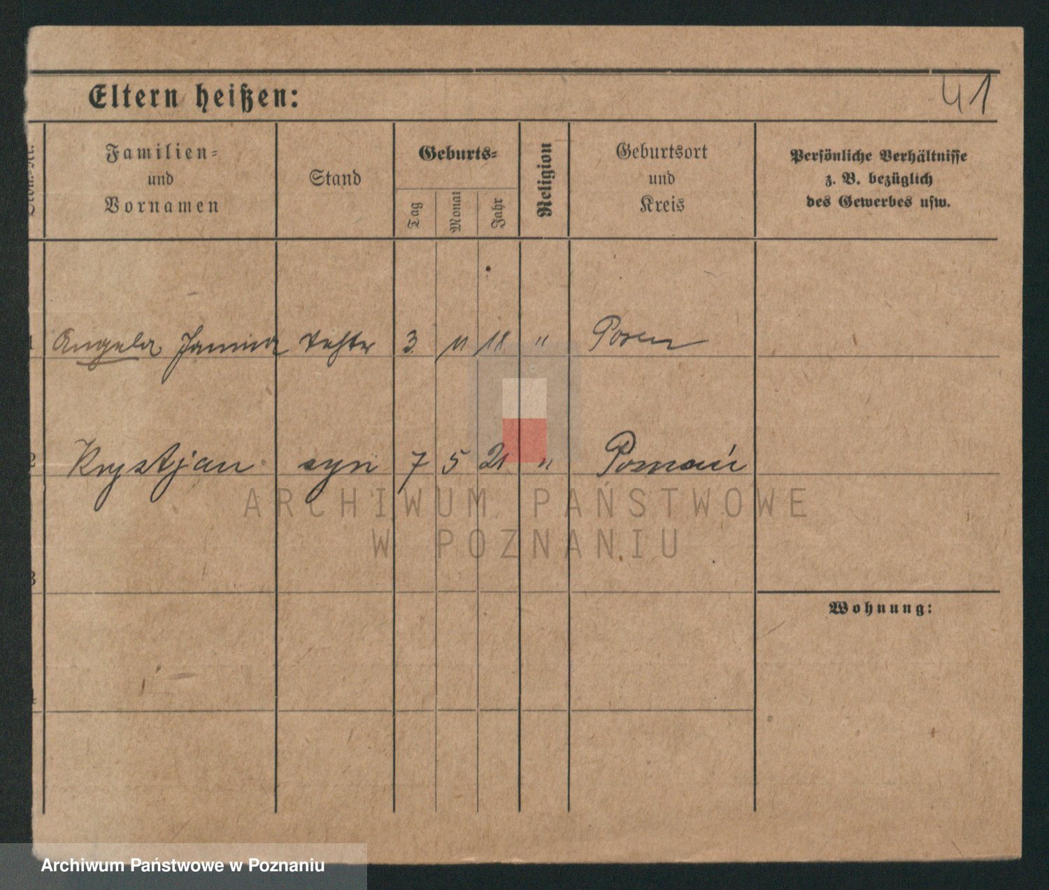 Durch Anklicken eines Namens oder Kartensymbols gelangen Sie zum Vorschau einer Personalkarte. Sie können die Ansicht vergrößern (Symbole am oberen Rand) oder zwischen den Scans wechseln (Pfeile an den Seiten).