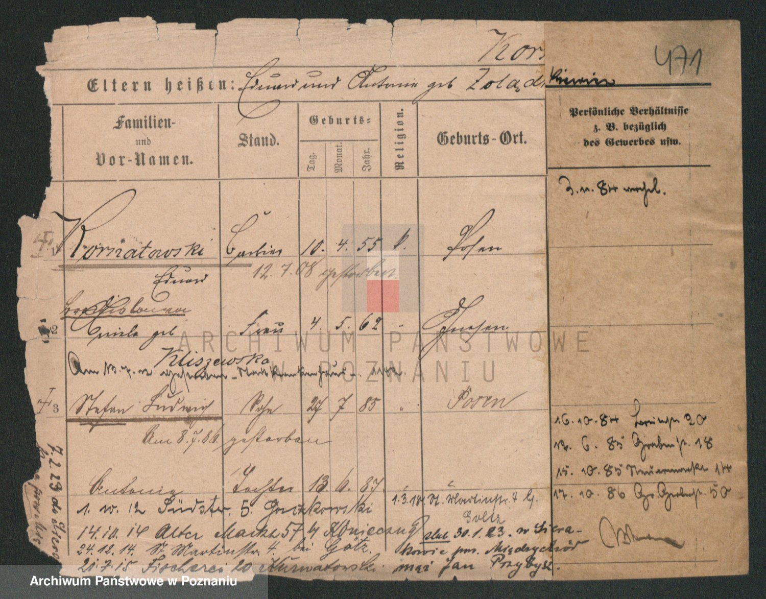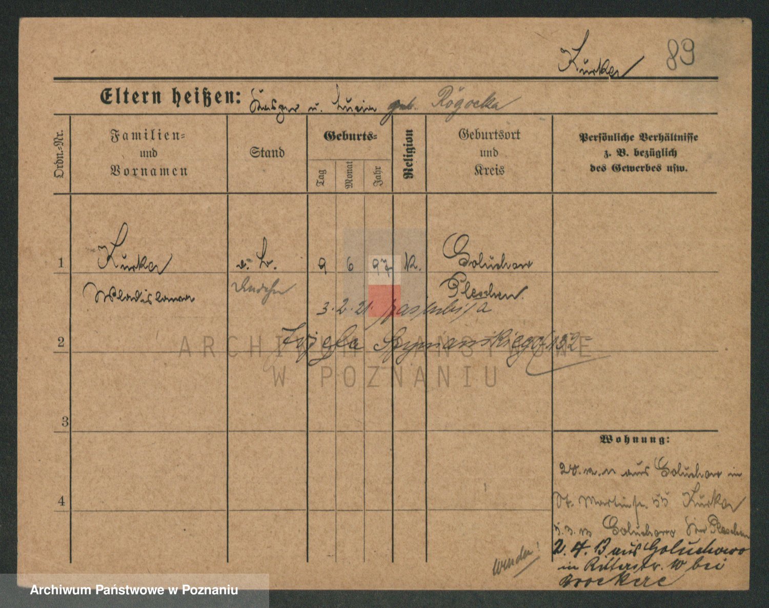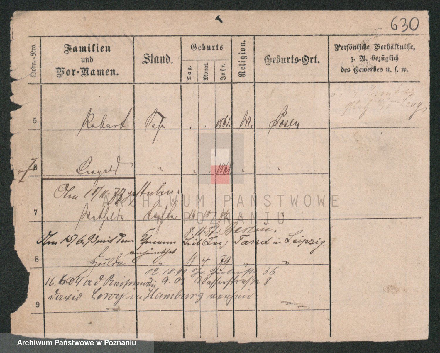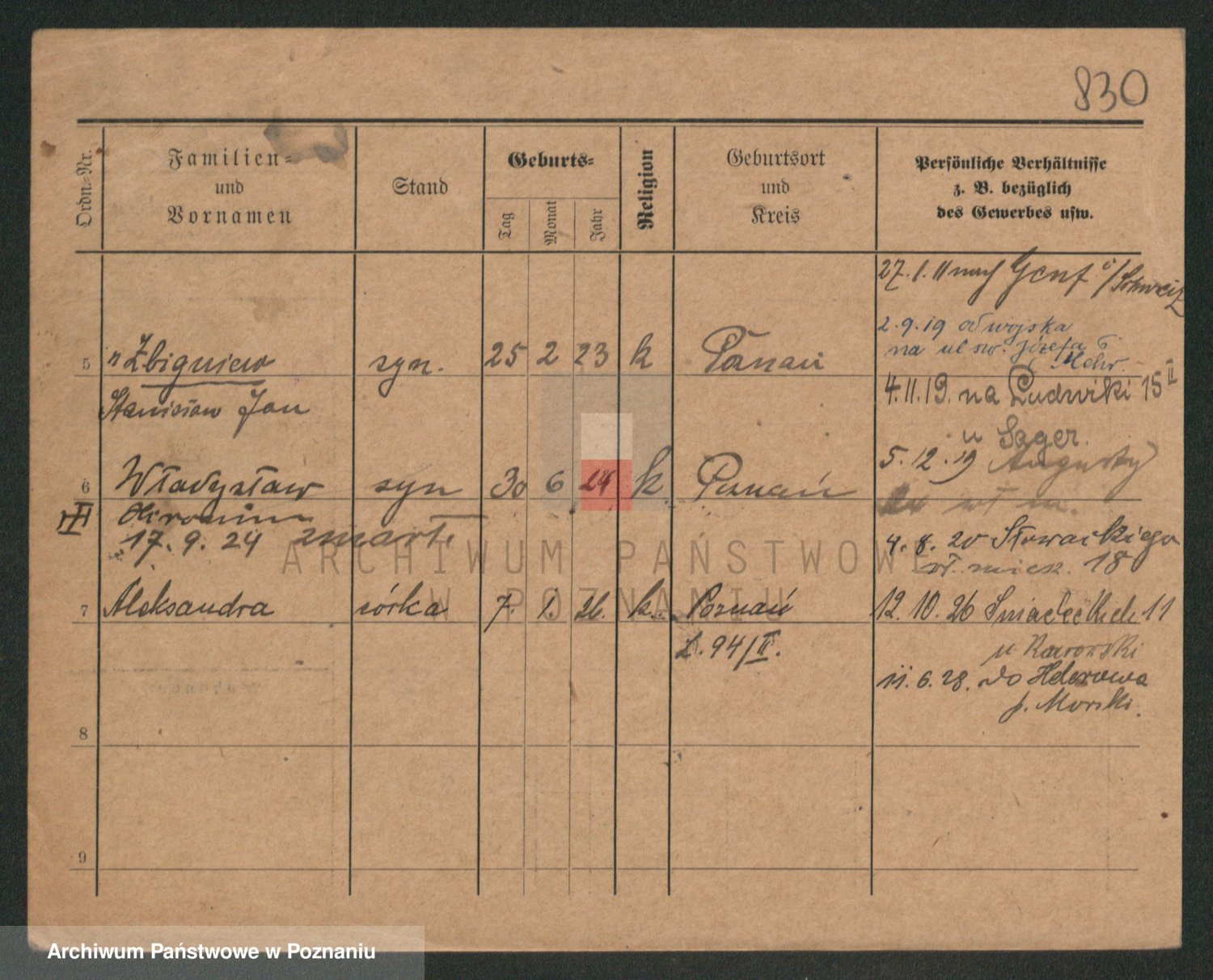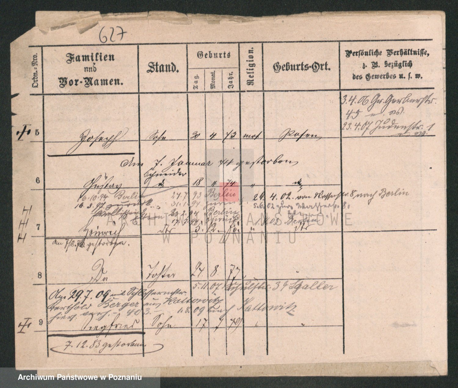 Durch Anklicken eines Namens oder Kartensymbols gelangen Sie zum Vorschau einer Personalkarte. Sie können die Ansicht vergrößern (Symbole am oberen Rand) oder zwischen den Scans wechseln (Pfeile an den Seiten).