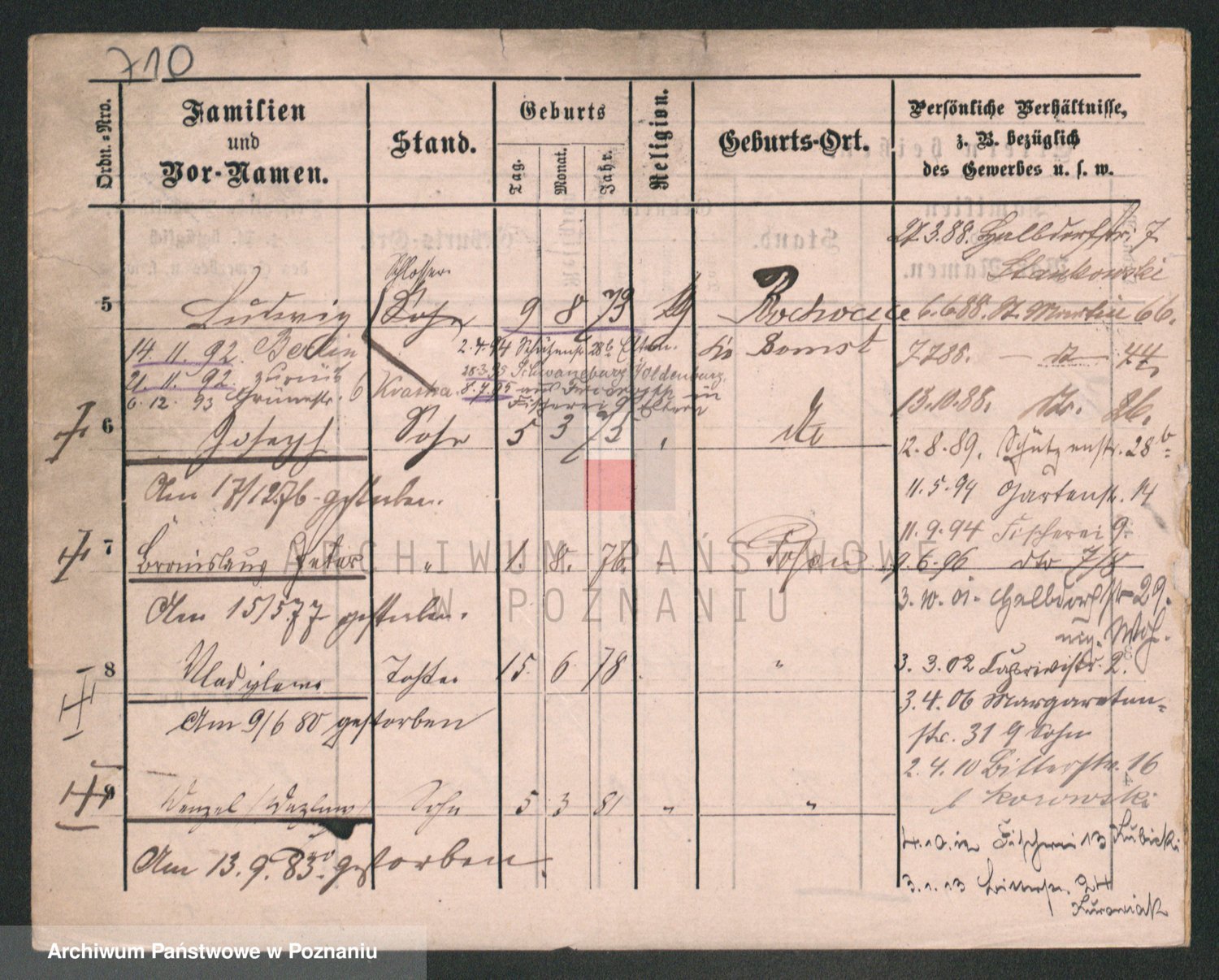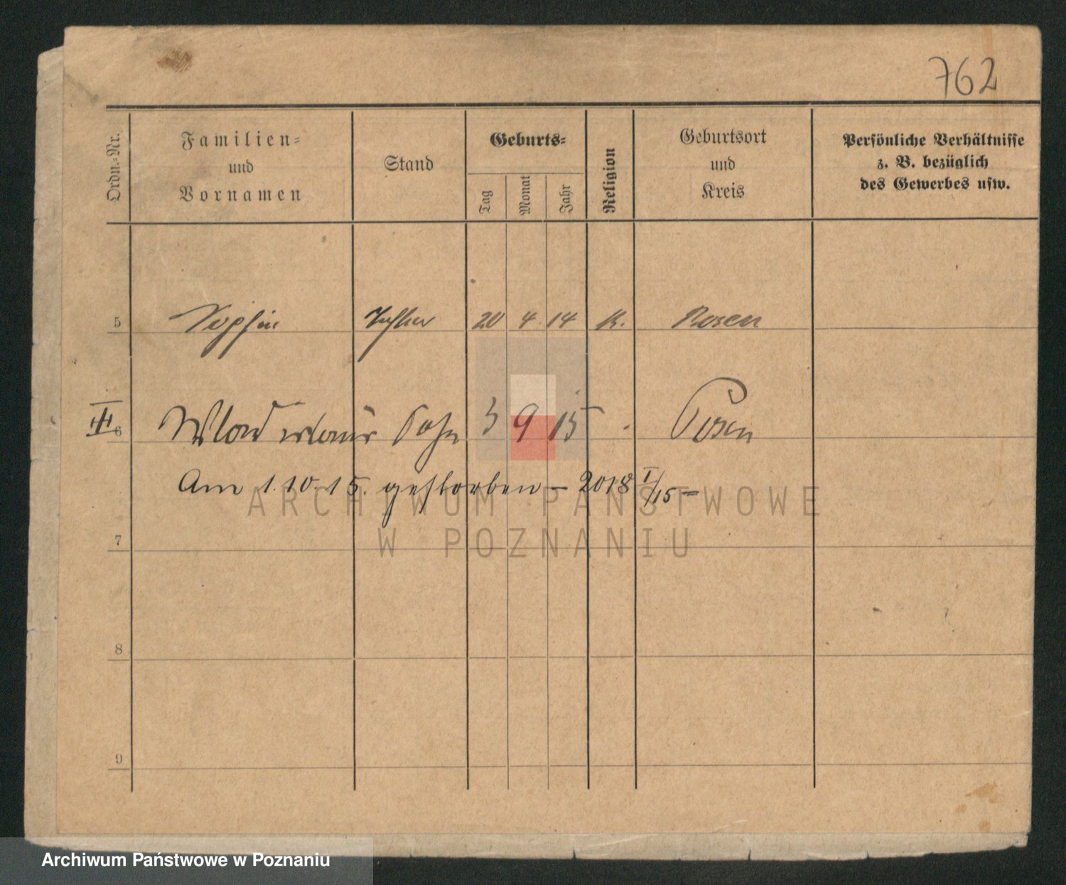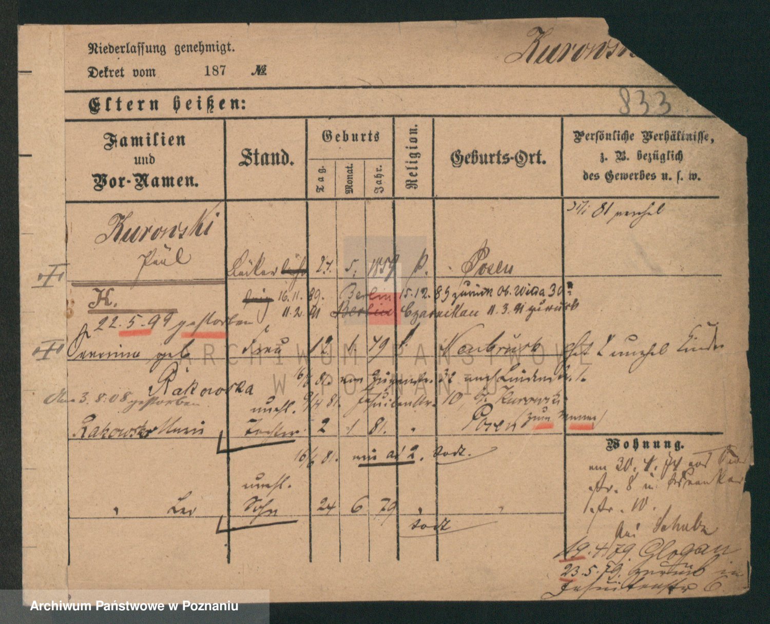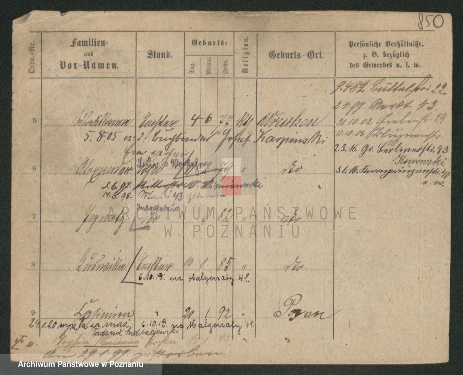 Durch Anklicken eines Namens oder Kartensymbols gelangen Sie zum Vorschau einer Personalkarte. Sie können die Ansicht vergrößern (Symbole am oberen Rand) oder zwischen den Scans wechseln (Pfeile an den Seiten).