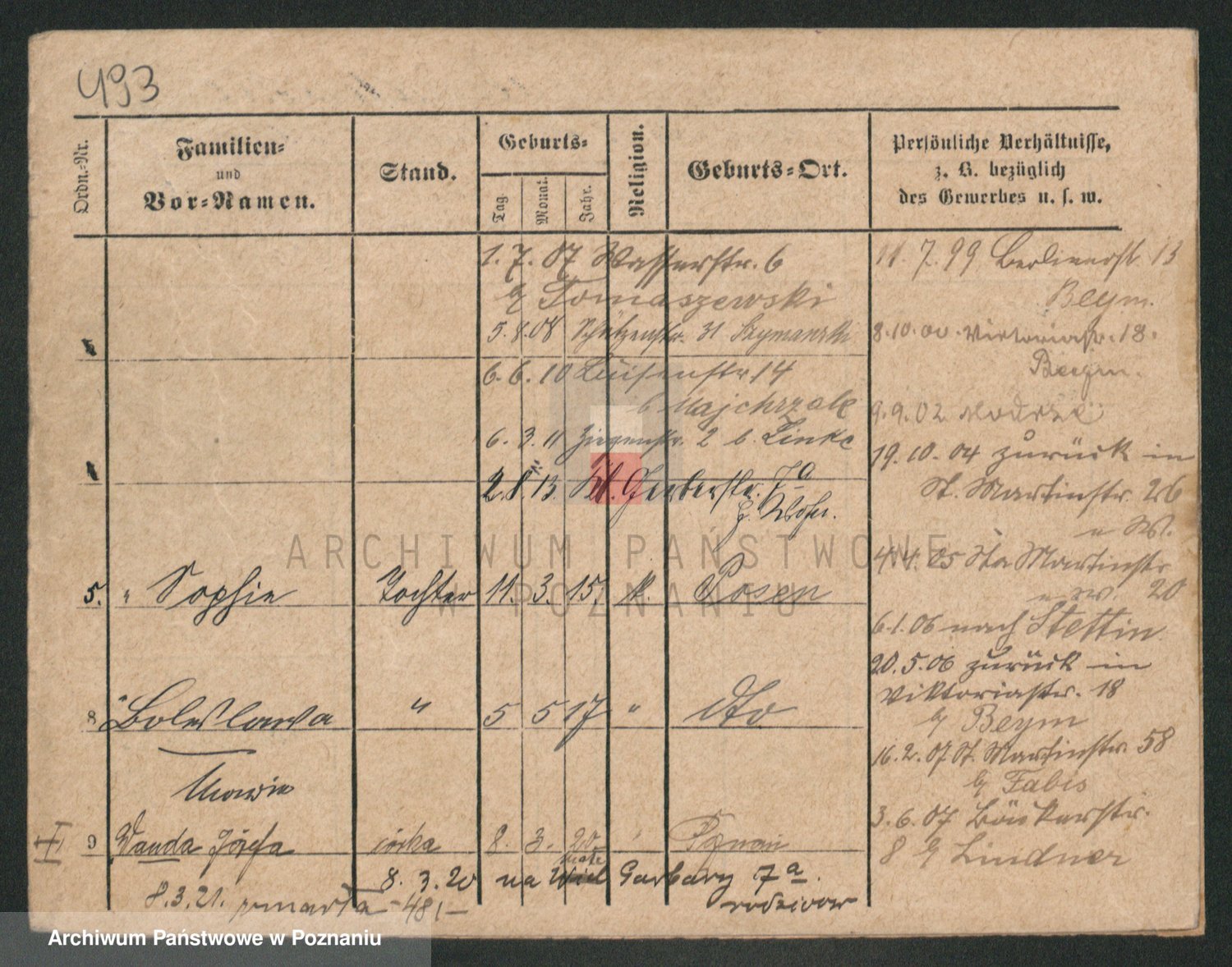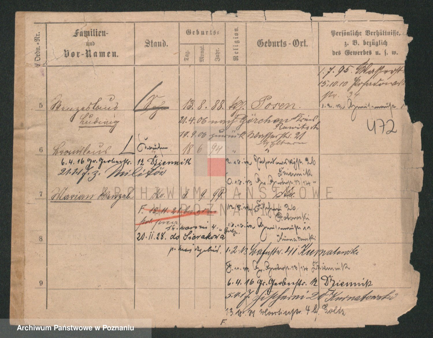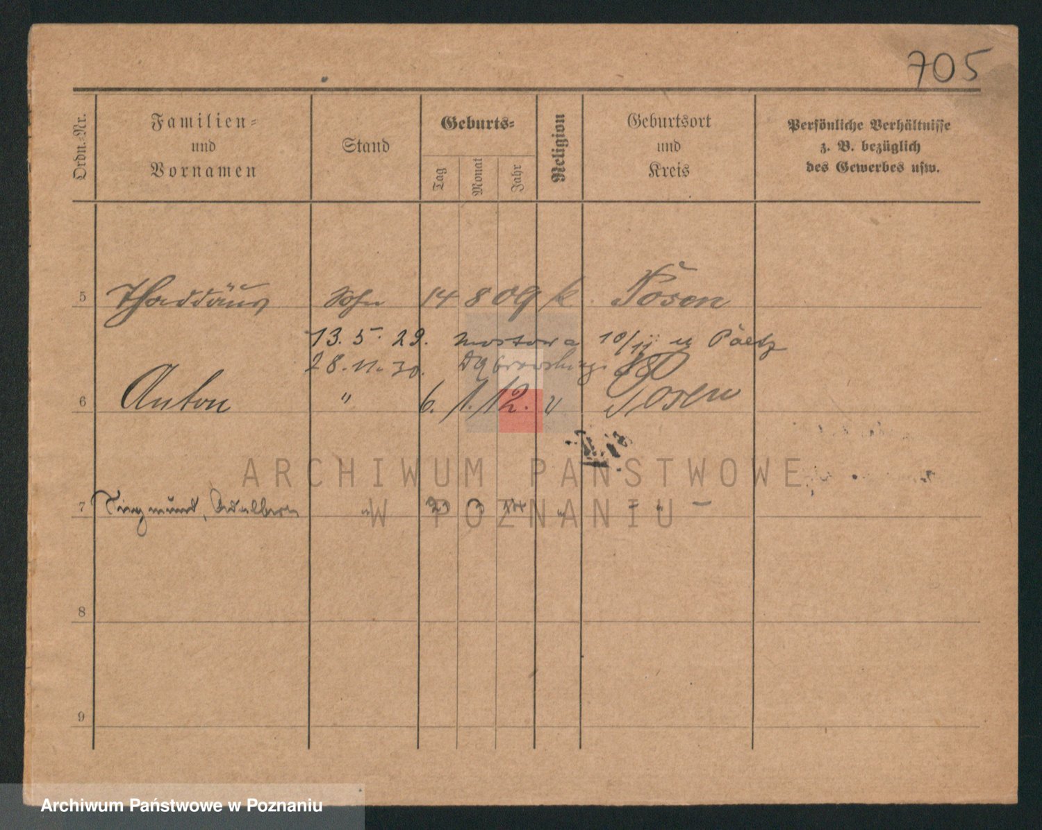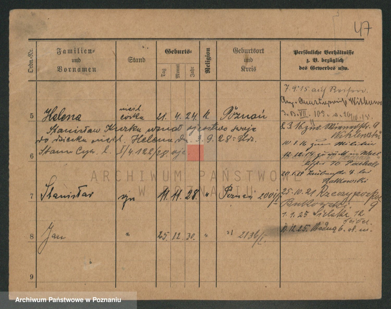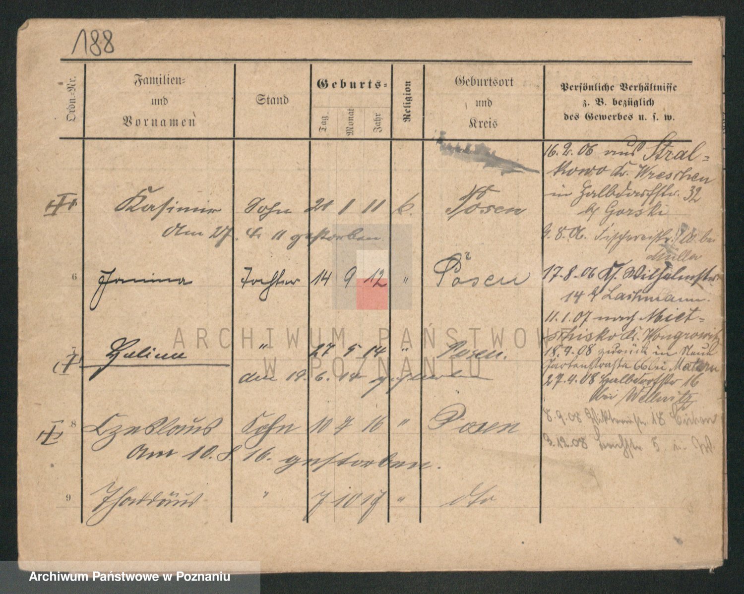 Durch Anklicken eines Namens oder Kartensymbols gelangen Sie zum Vorschau einer Personalkarte. Sie können die Ansicht vergrößern (Symbole am oberen Rand) oder zwischen den Scans wechseln (Pfeile an den Seiten).