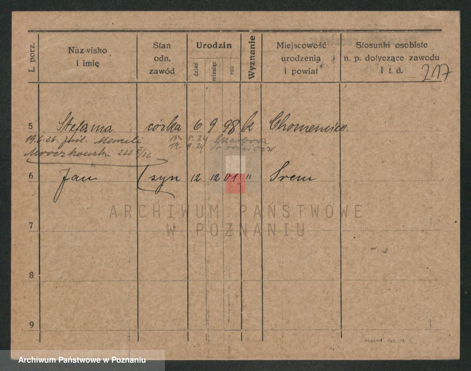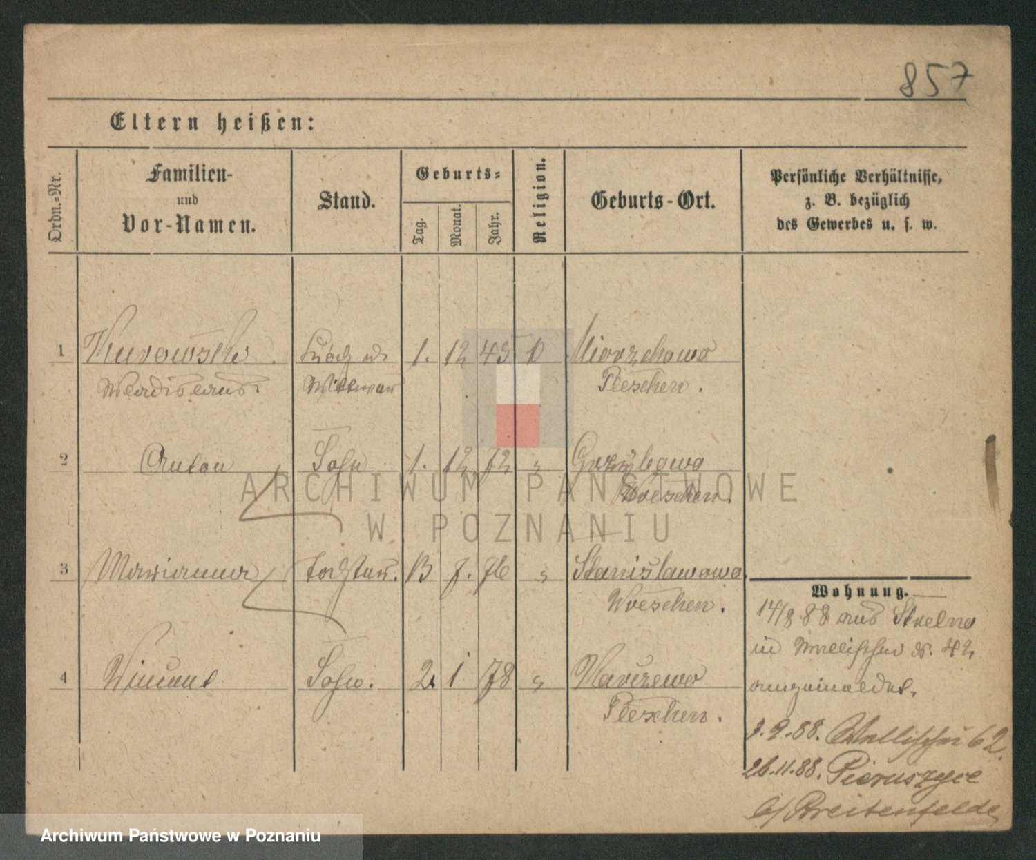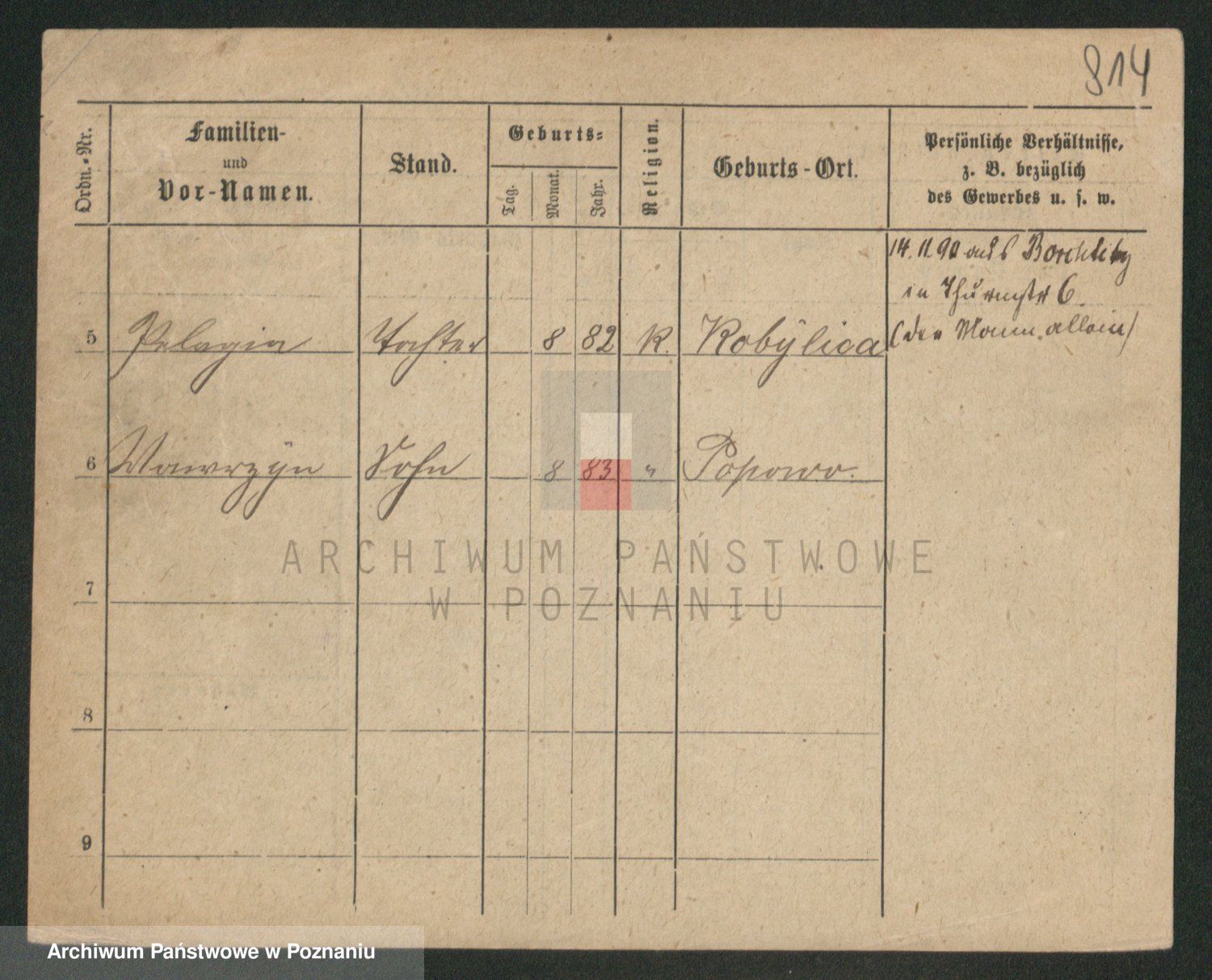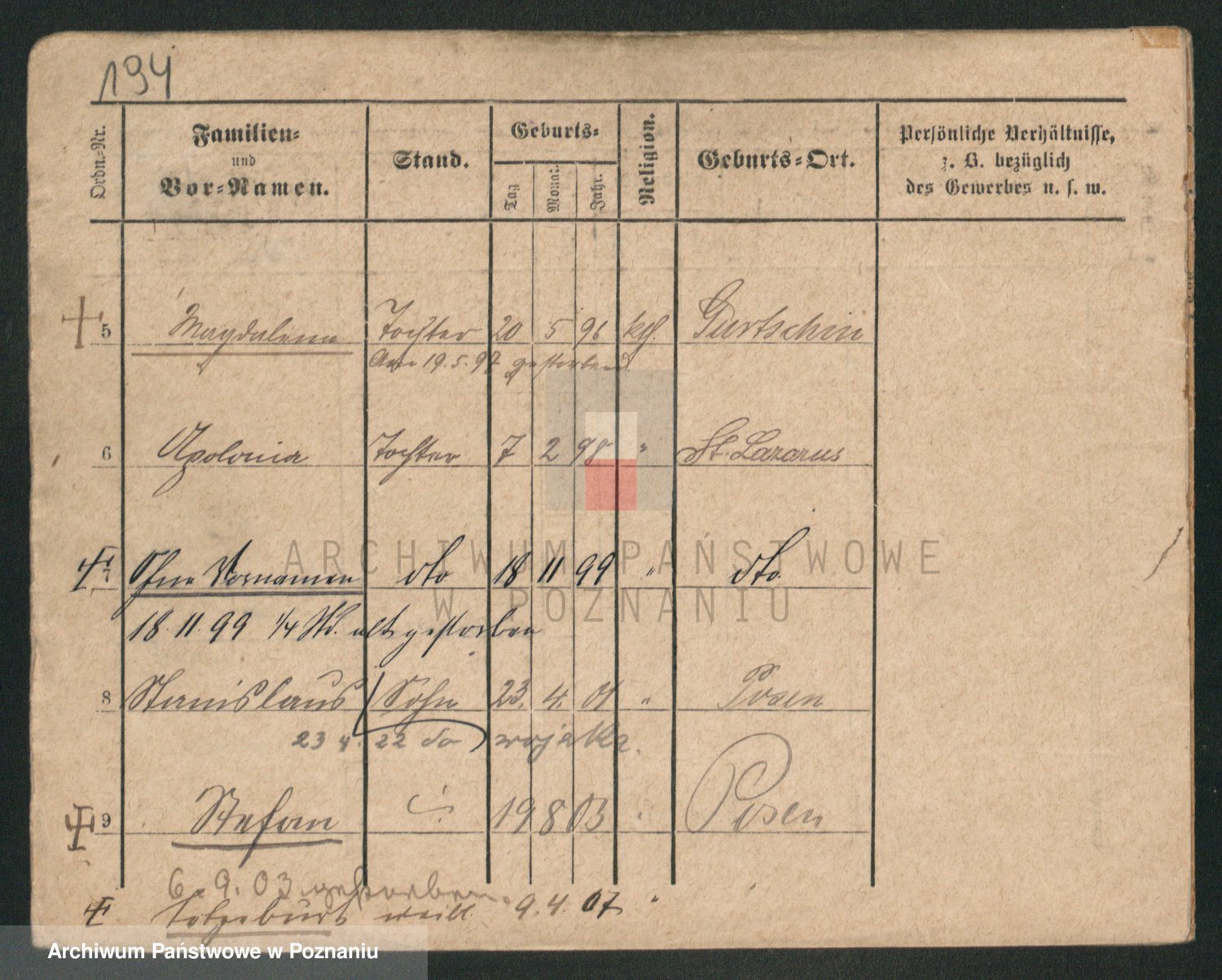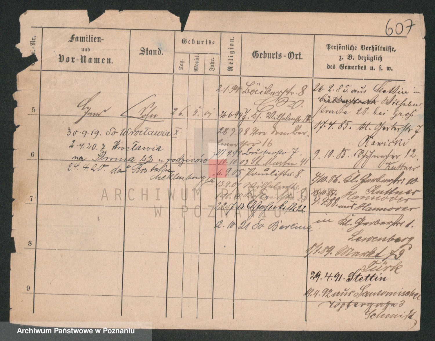 Durch Anklicken eines Namens oder Kartensymbols gelangen Sie zum Vorschau einer Personalkarte. Sie können die Ansicht vergrößern (Symbole am oberen Rand) oder zwischen den Scans wechseln (Pfeile an den Seiten).