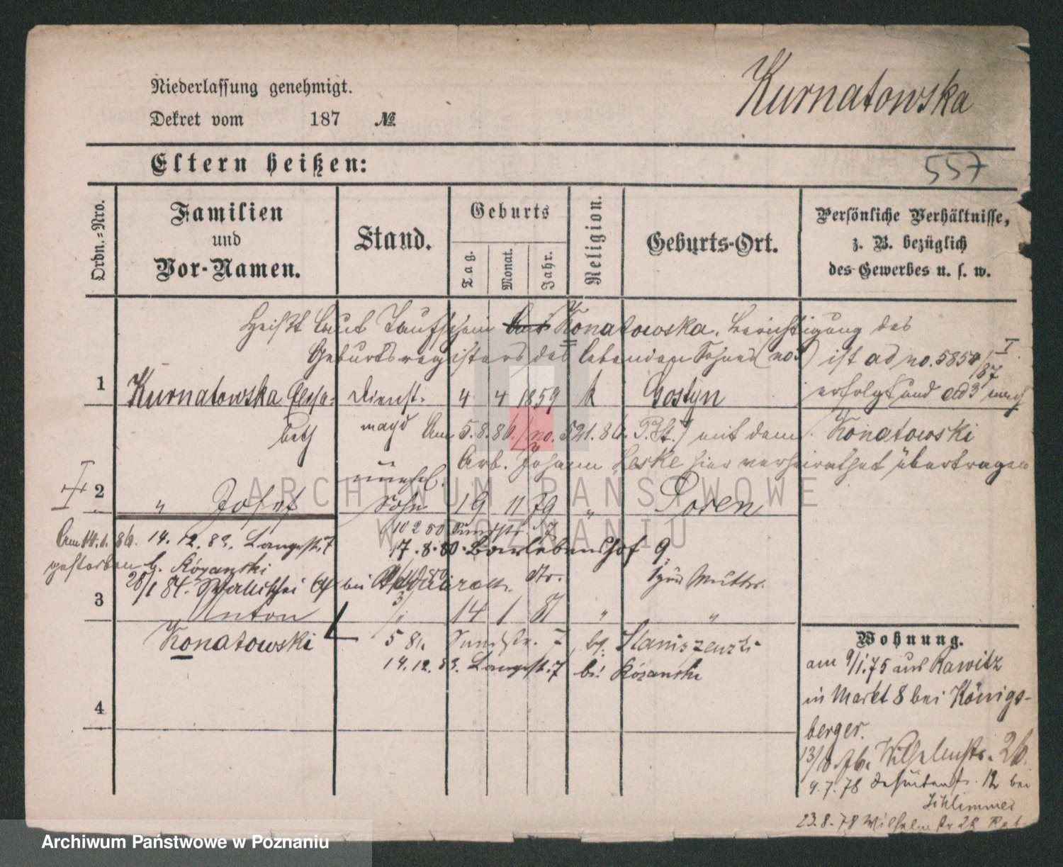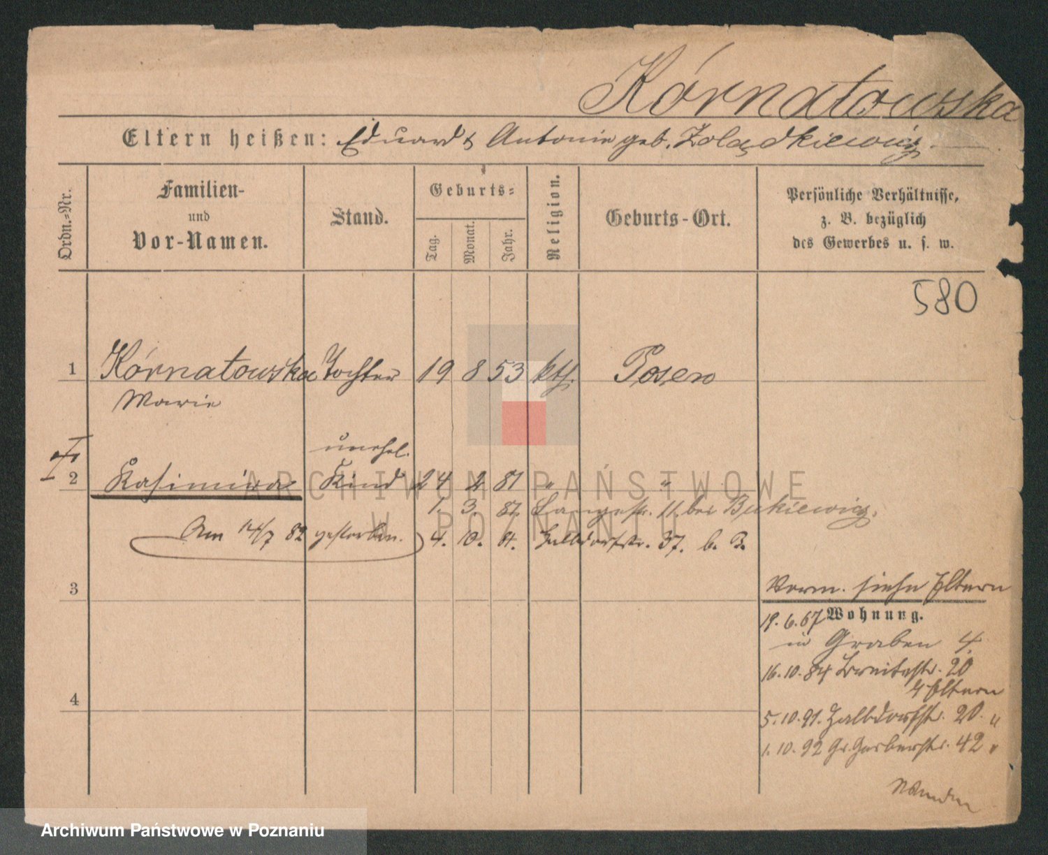 Kurjewska z d. Czosnowski, Catharina