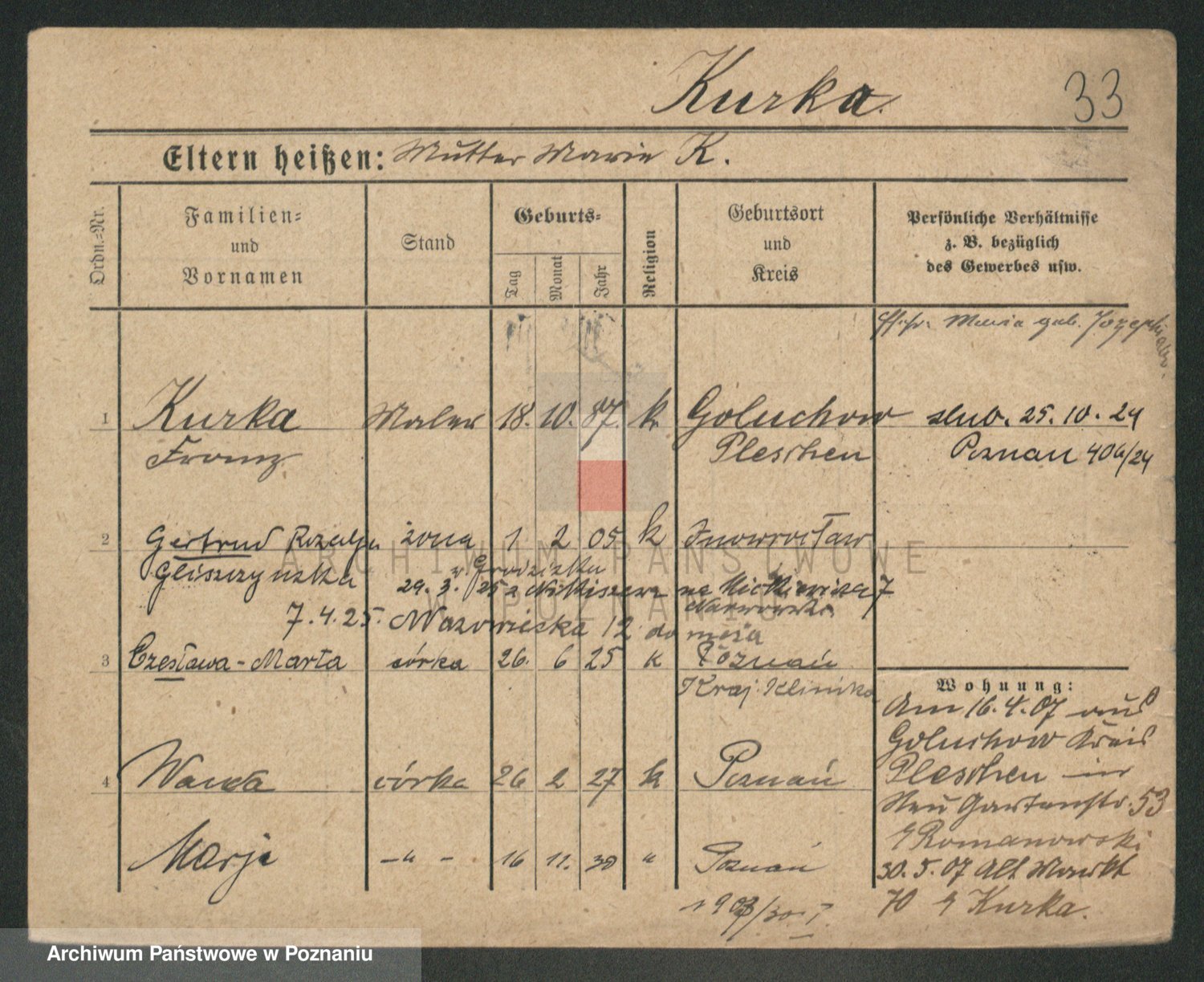 Kurka z d. Gliszczynska, Gertrud Rozalja