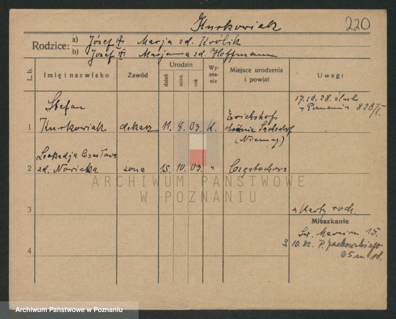 Kurka z d. Plywaczyk, Agnes
