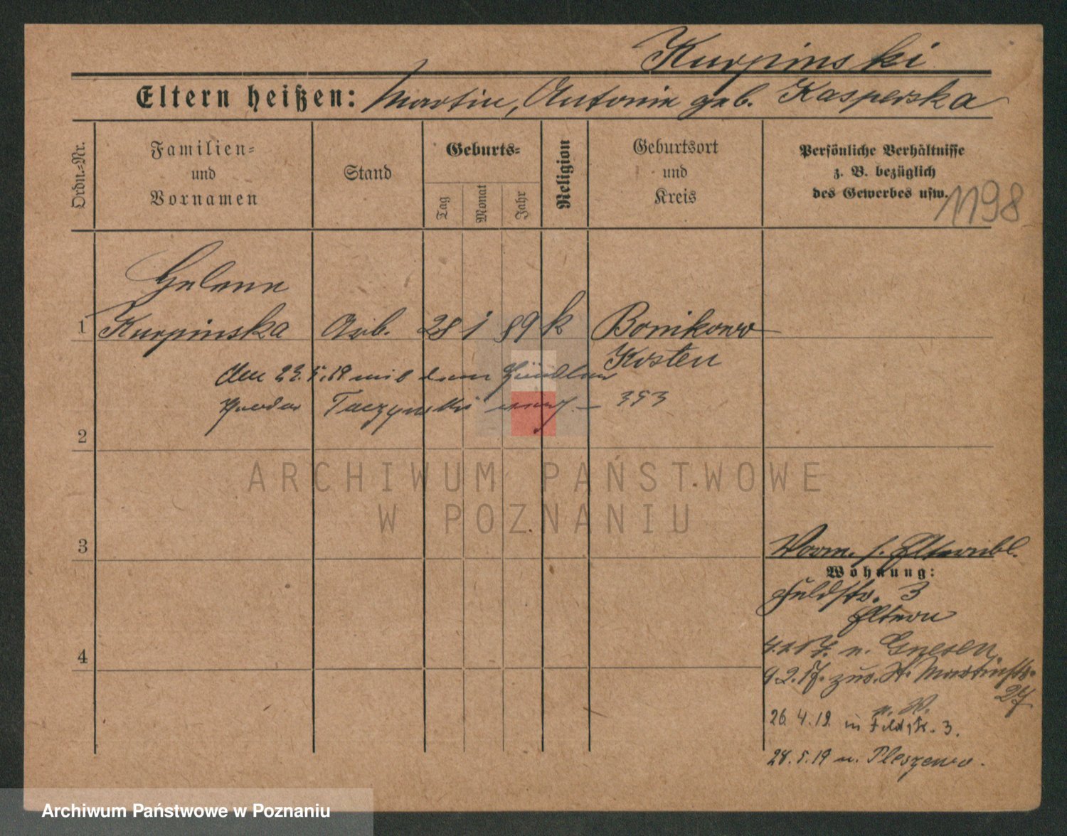 Kurpisz z d. Slawinska, Constantia